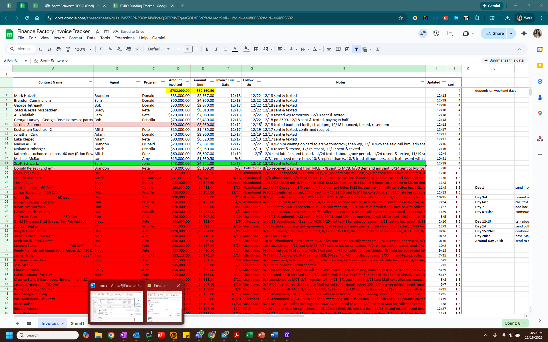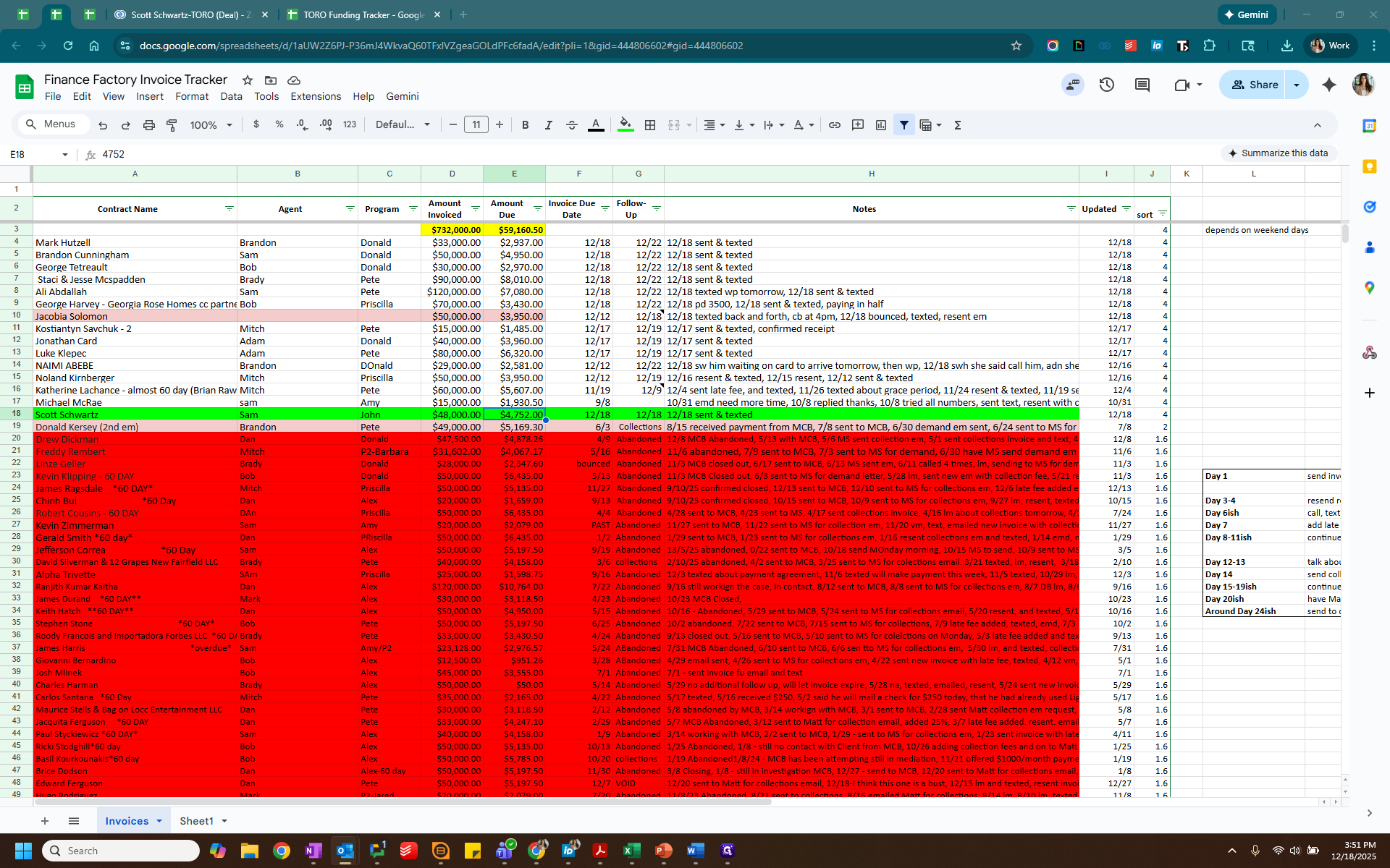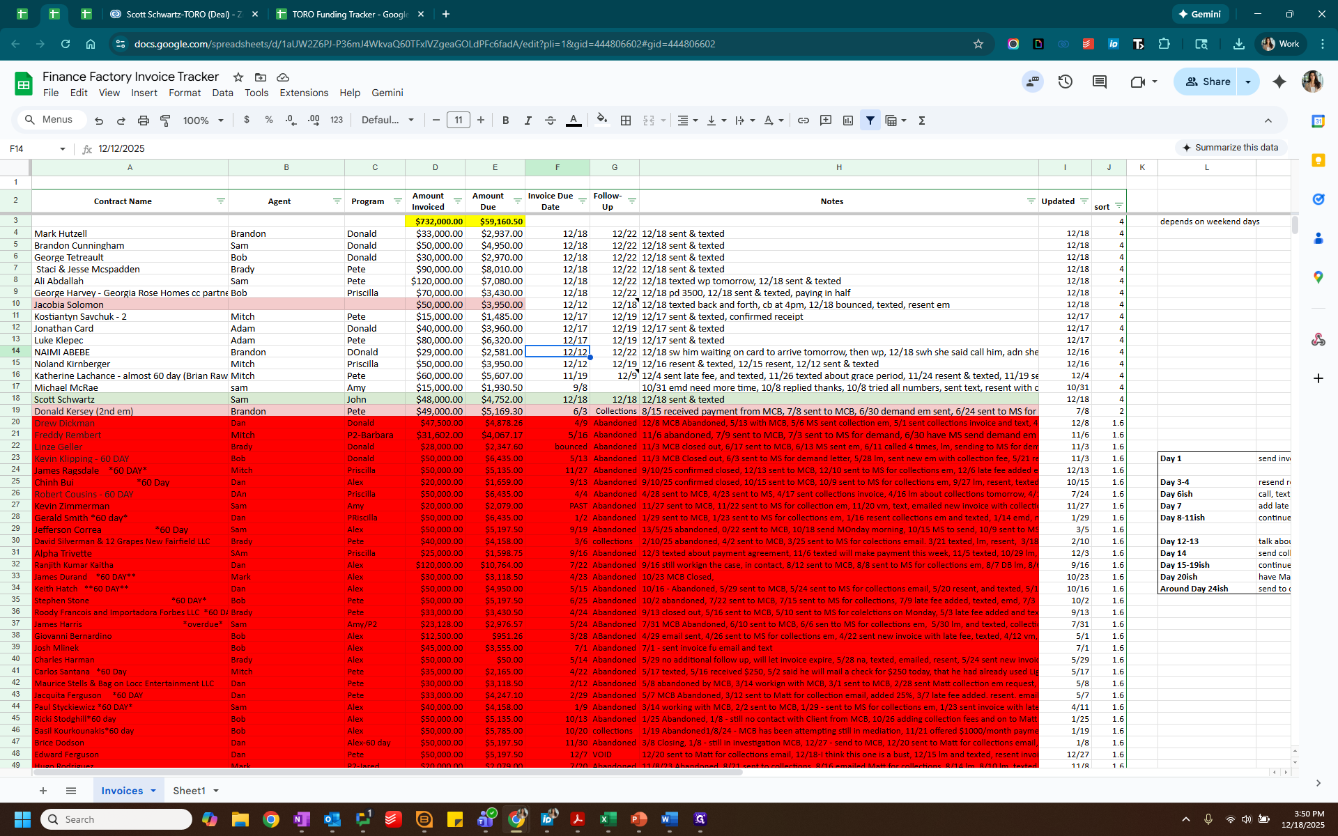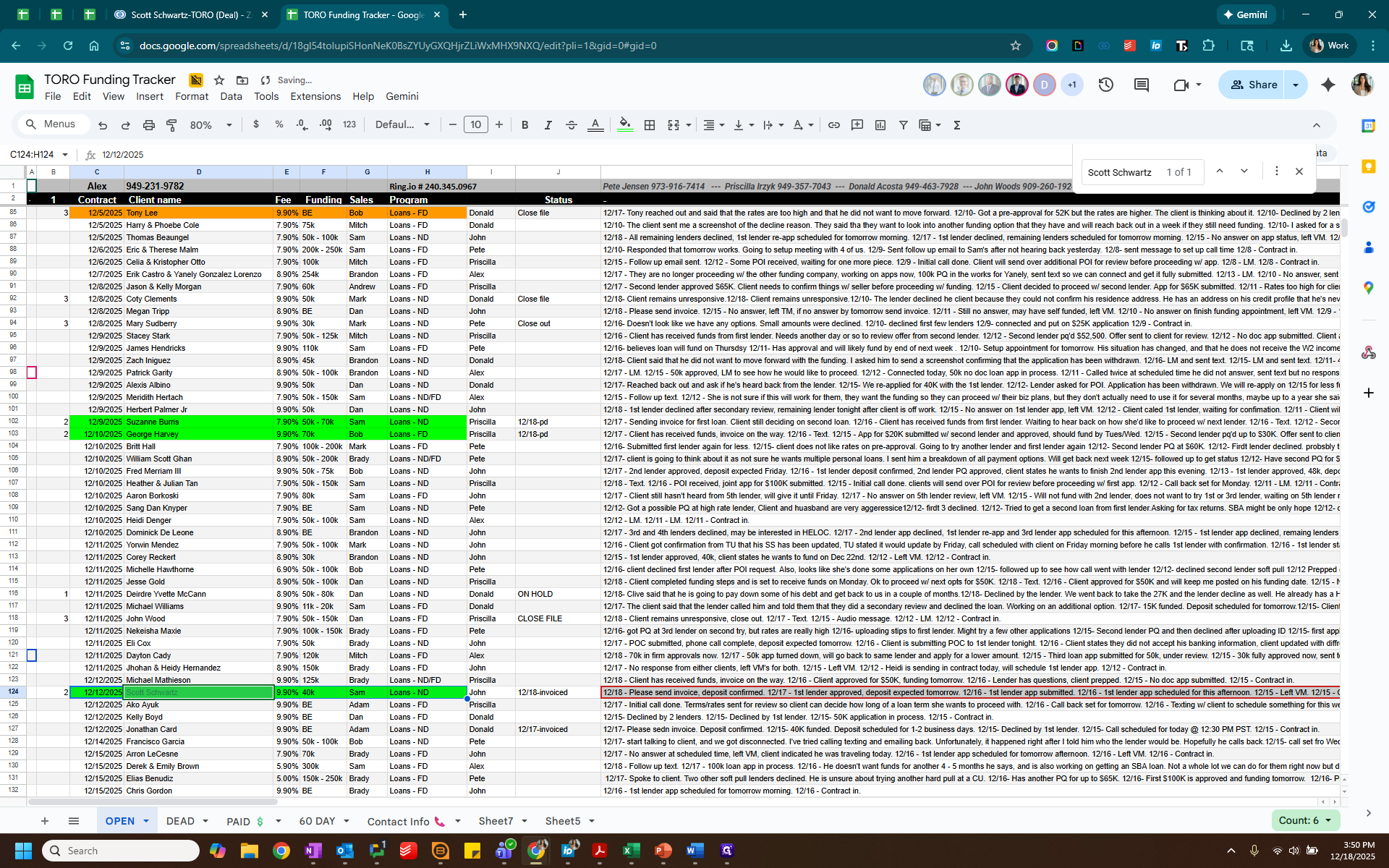 Label this as "2" for Paid. Highlight the paid client in green and change the status to "paid."