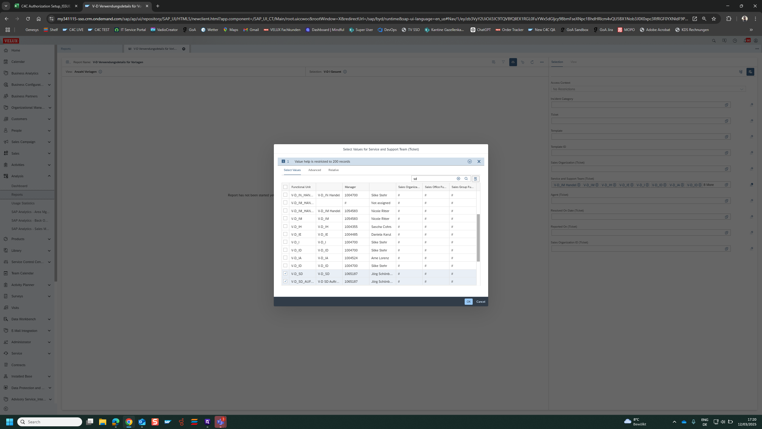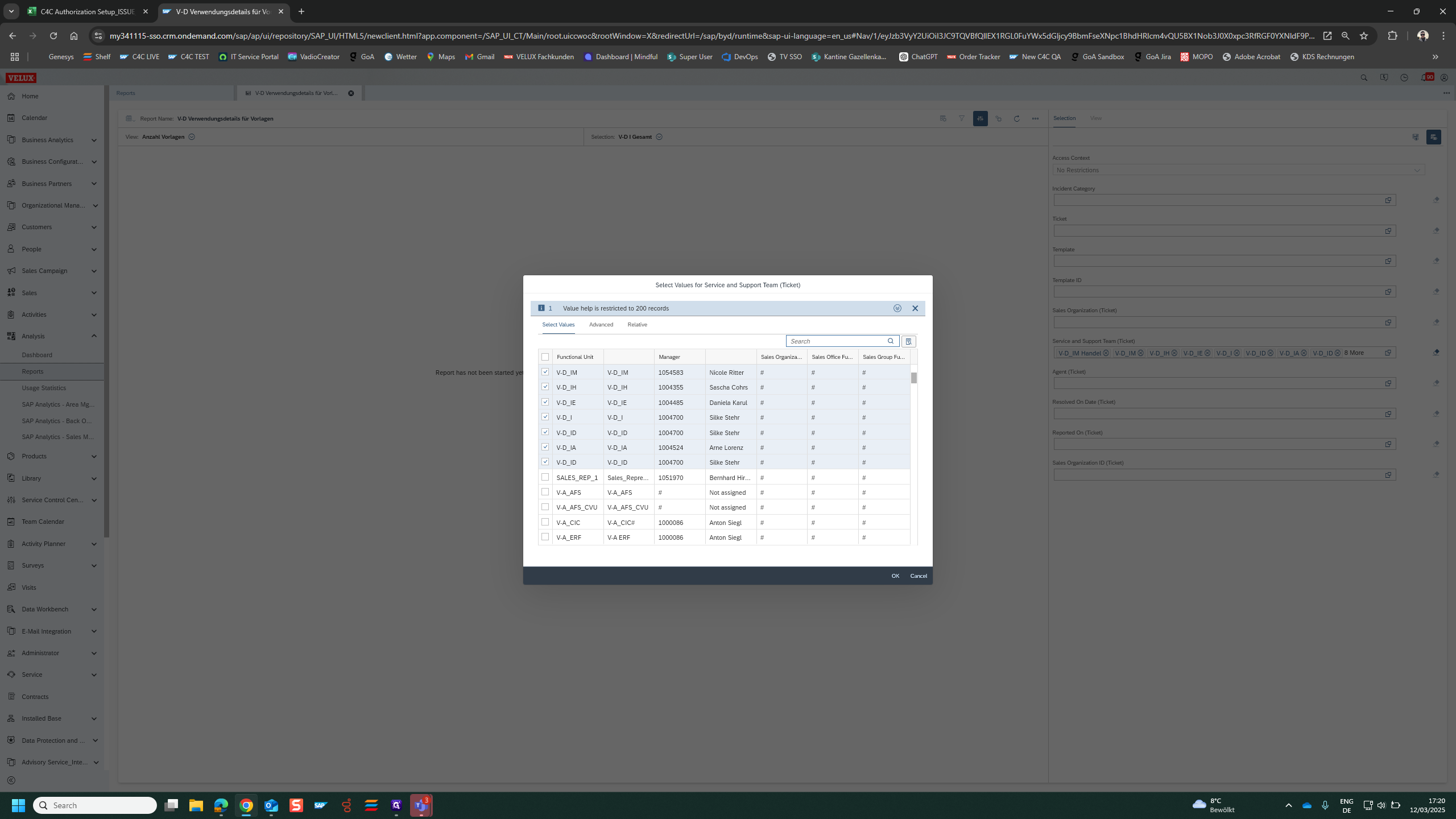 Select all relevant Teams