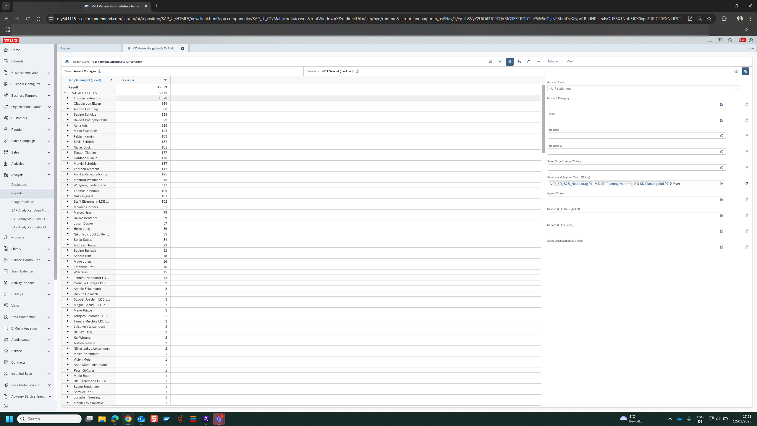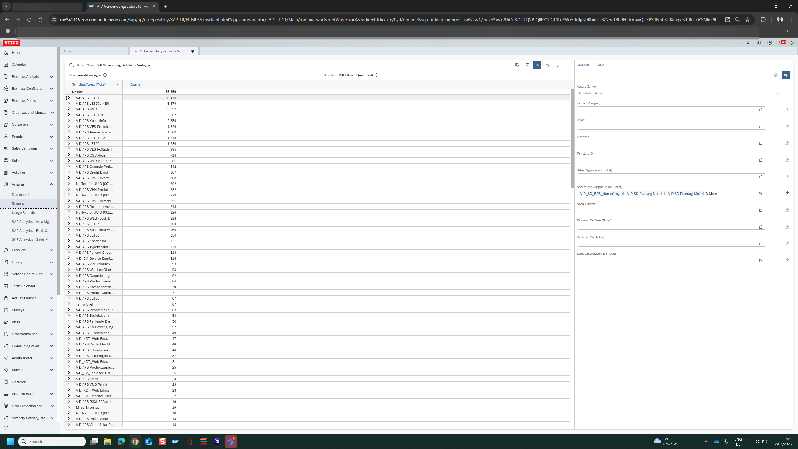 C4C - Report for Usage of Templates