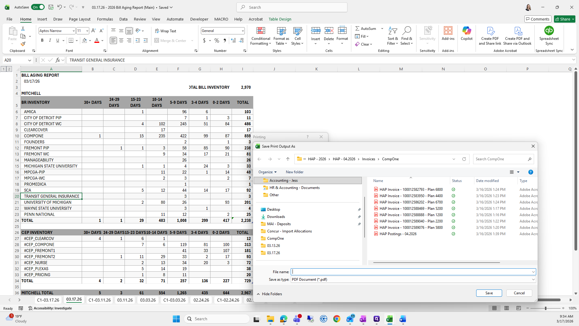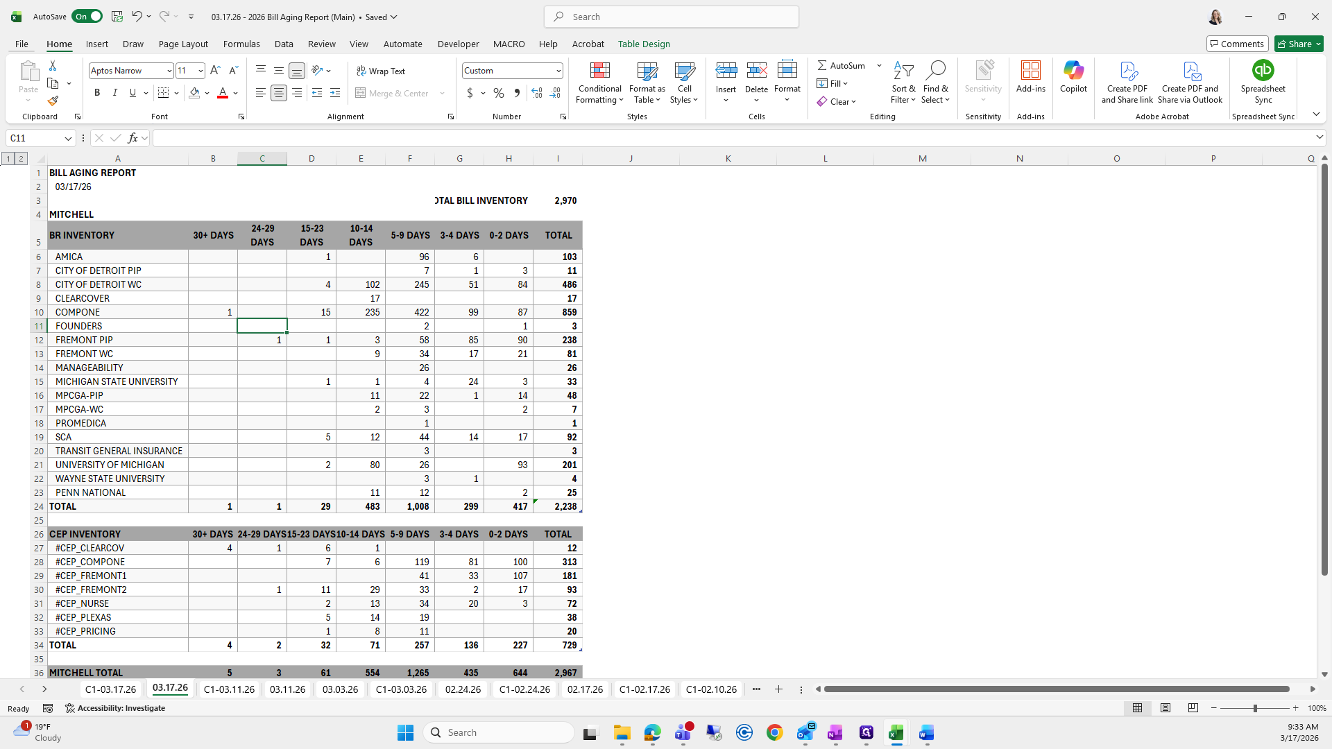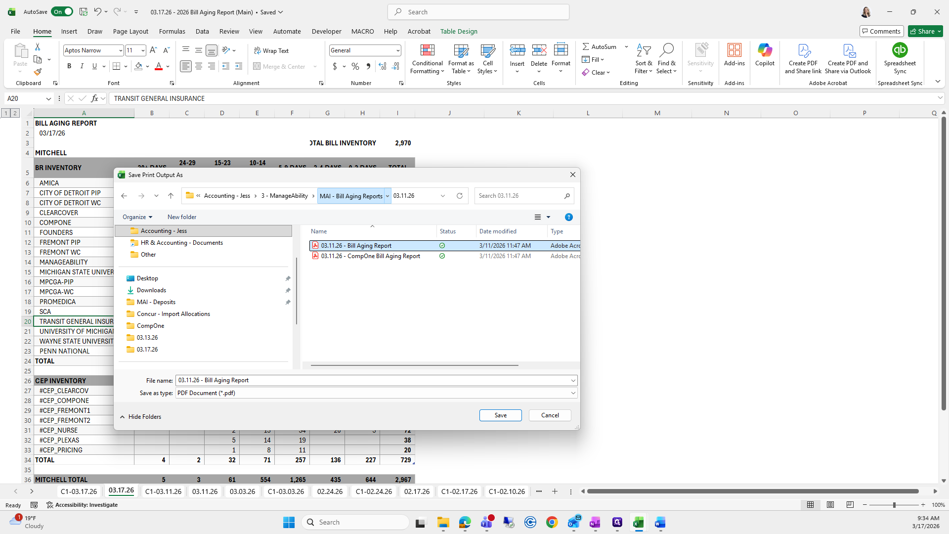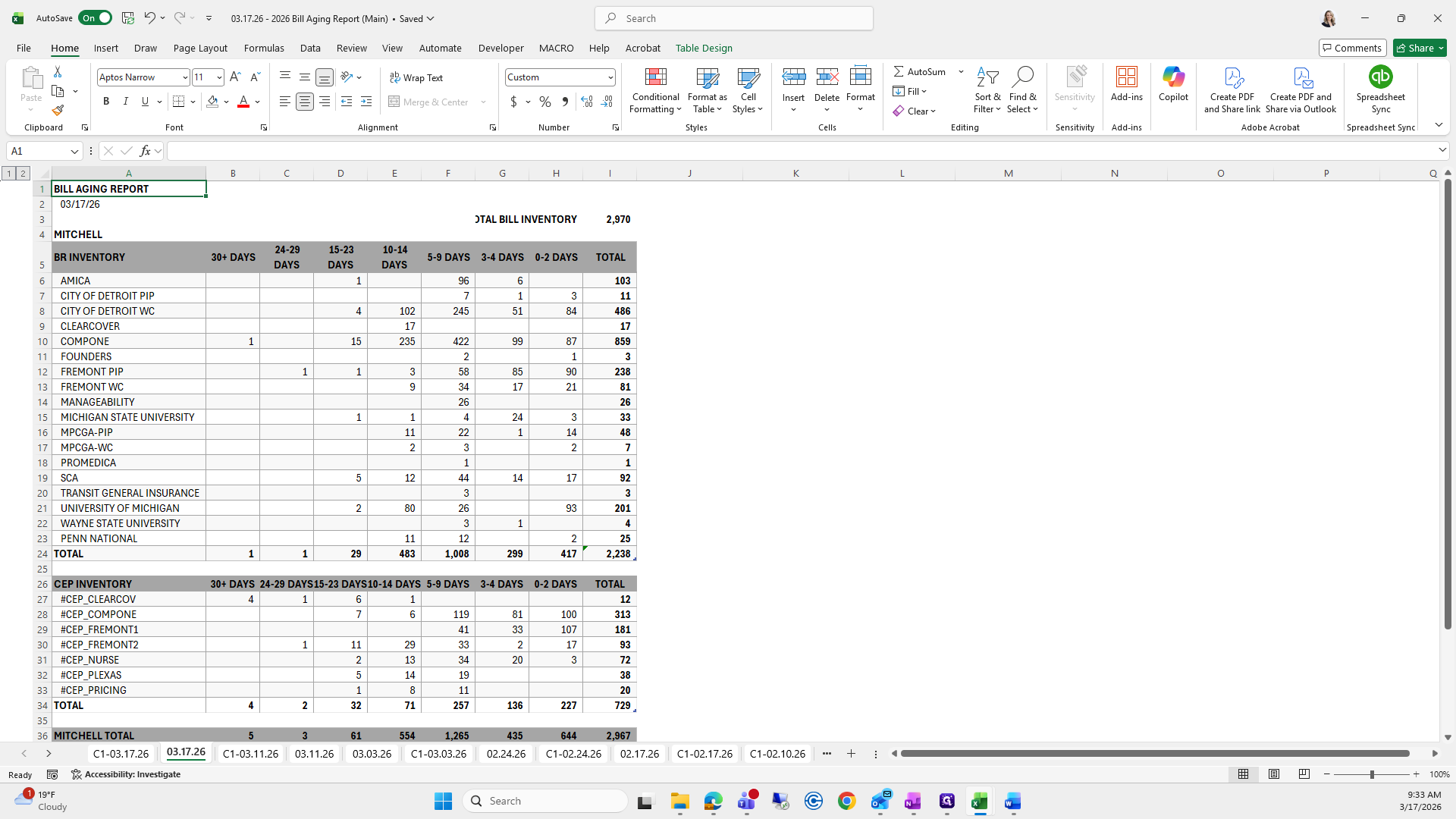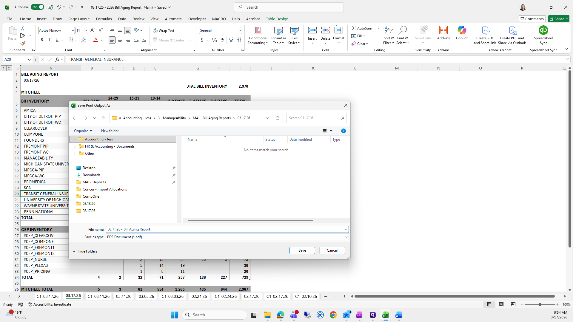 This is the bill aging report. We will try to save it again.