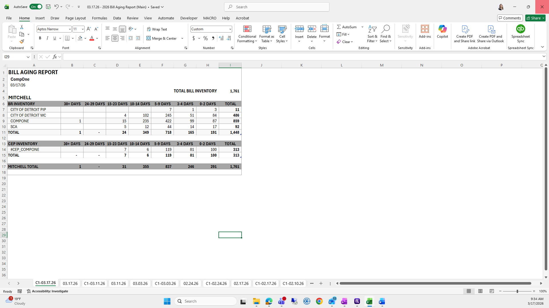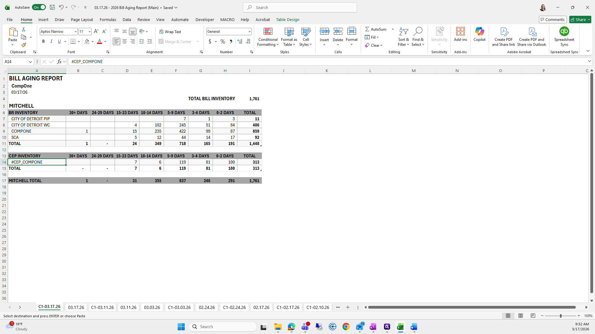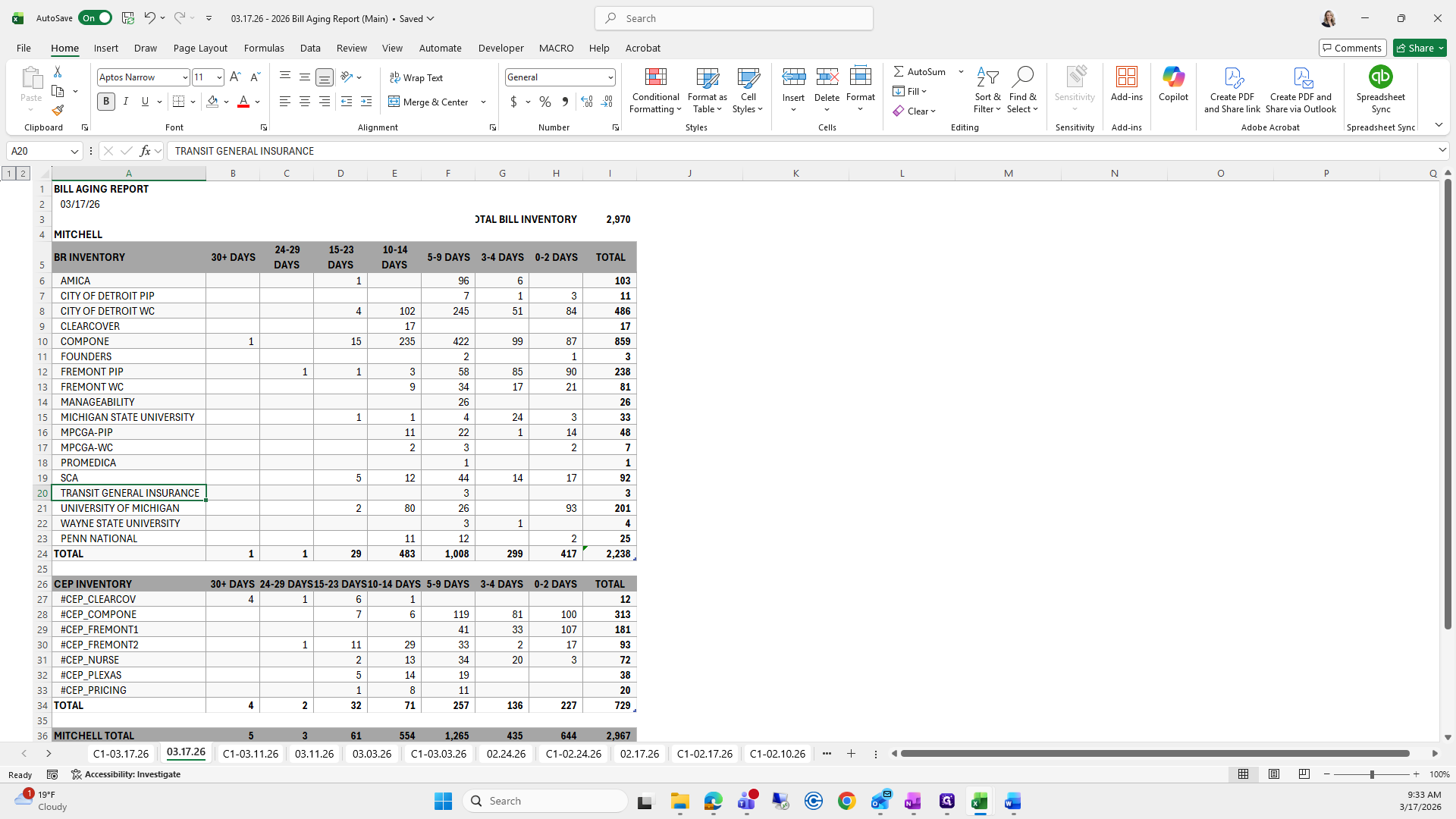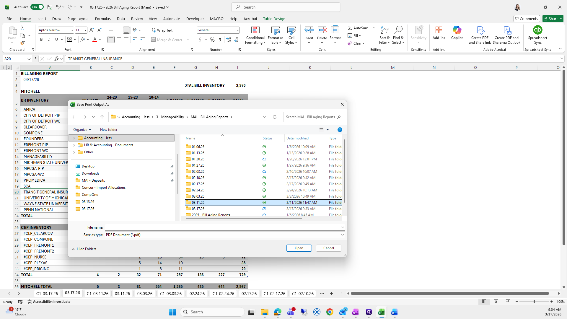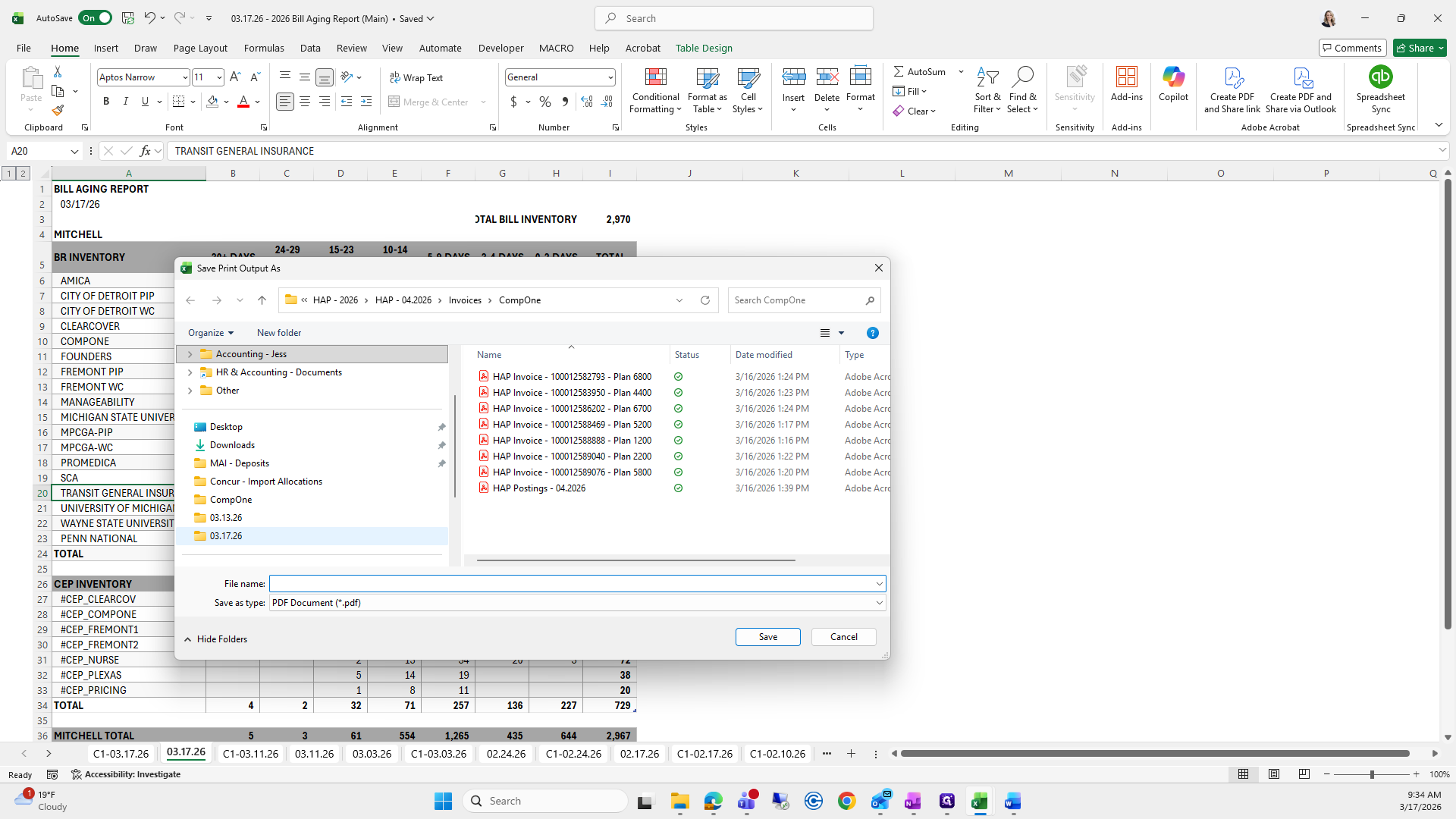 This is the bill aging report. We will try to save it again.