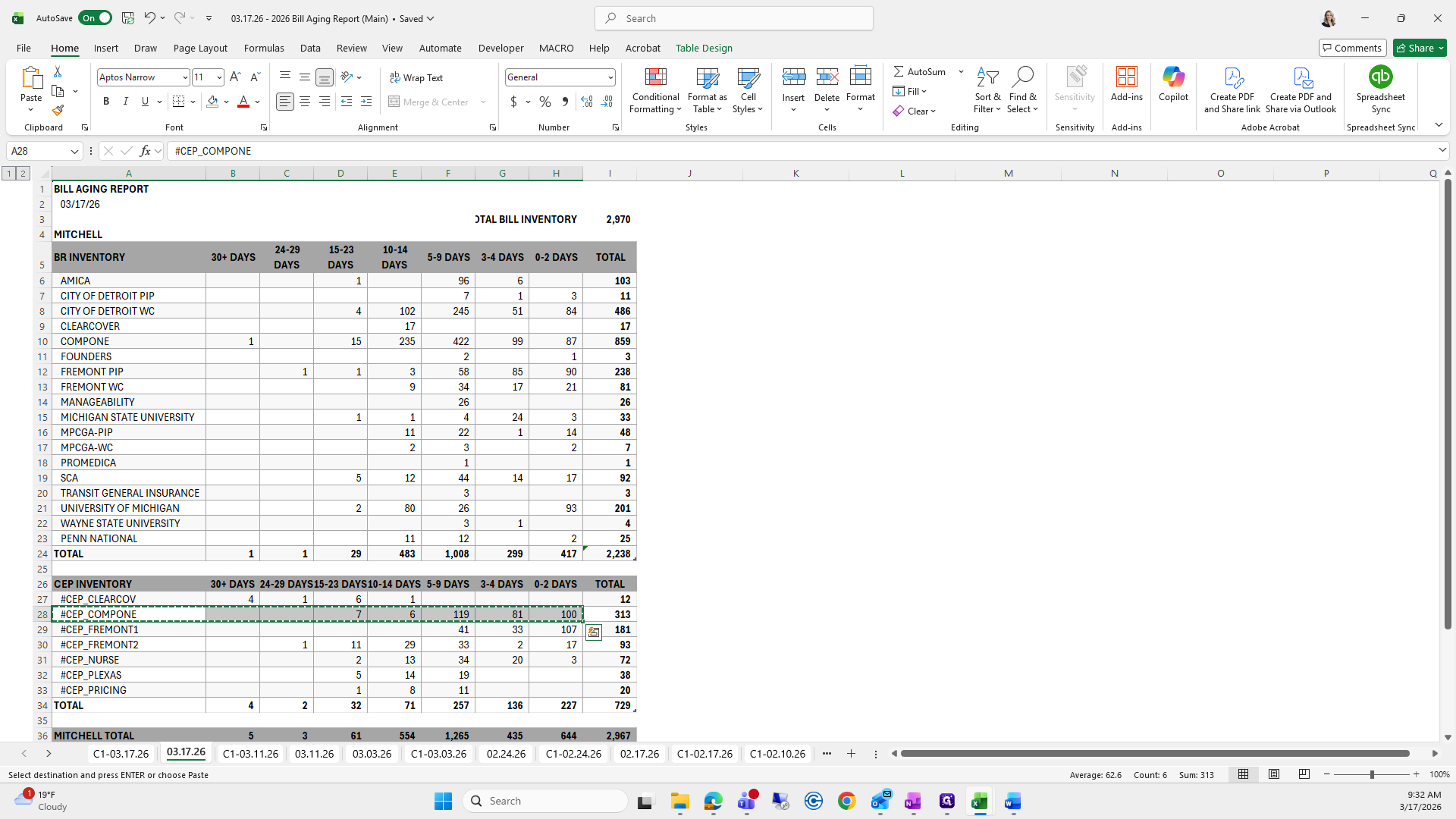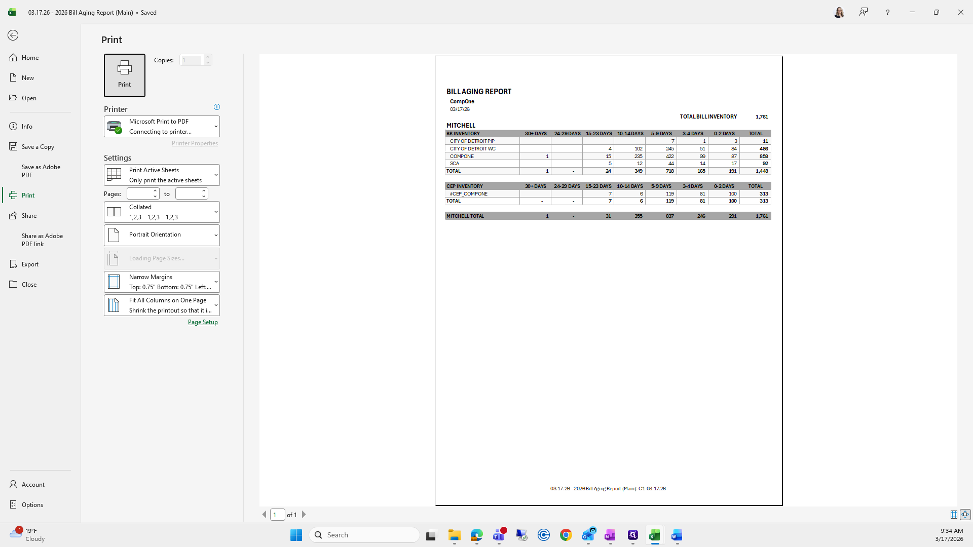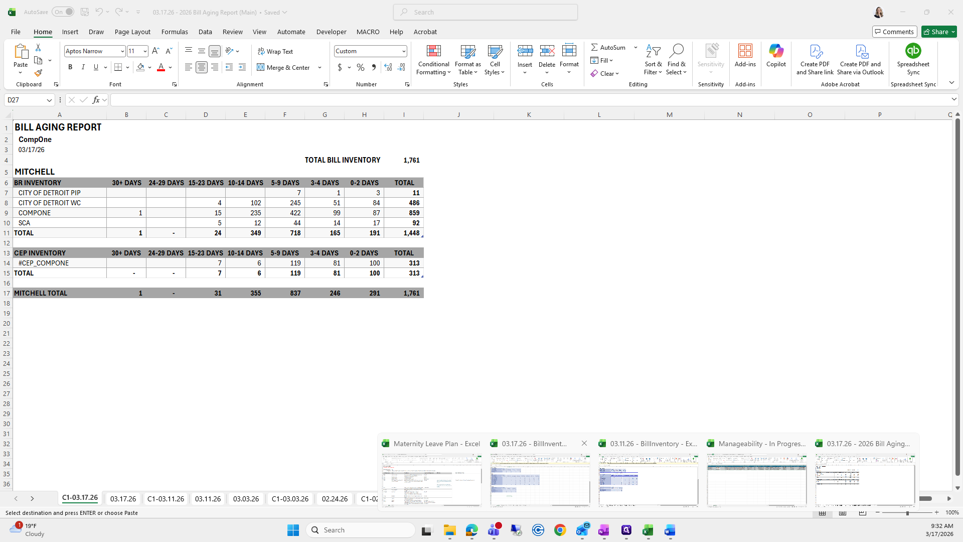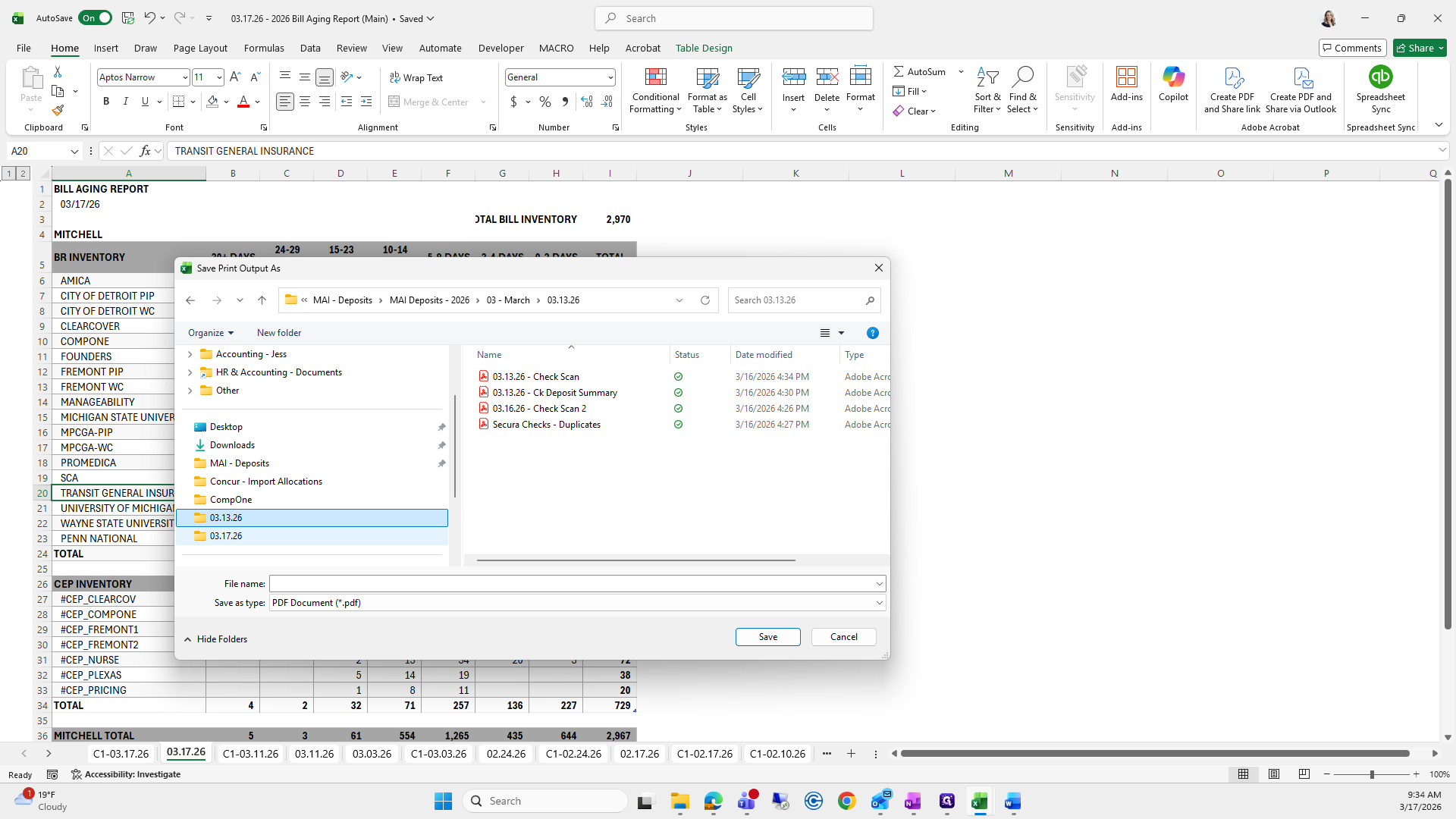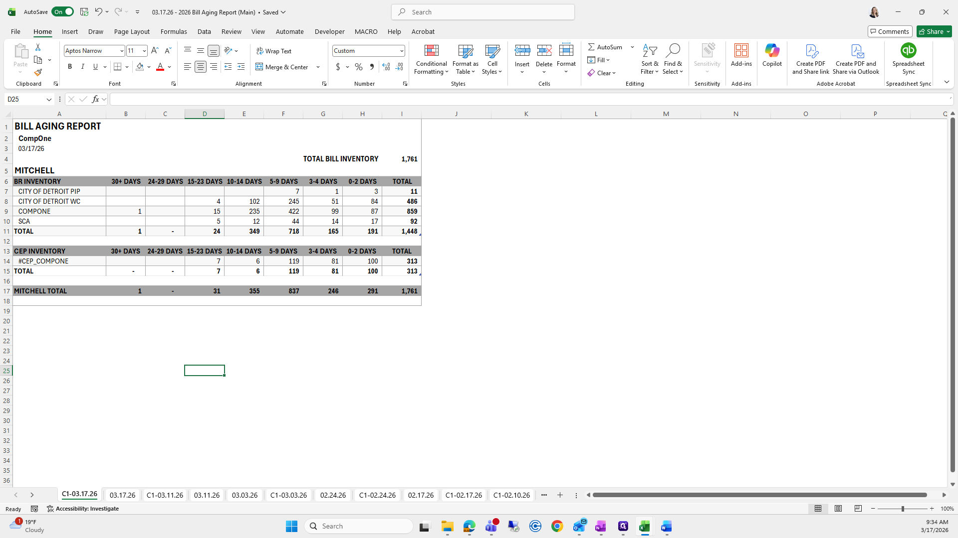 This is the bill aging report. We will try to save it again.