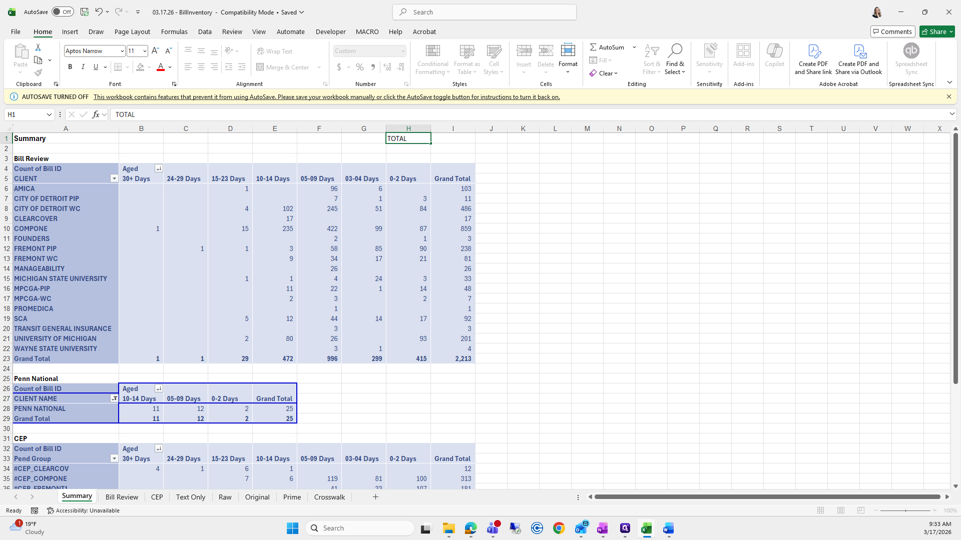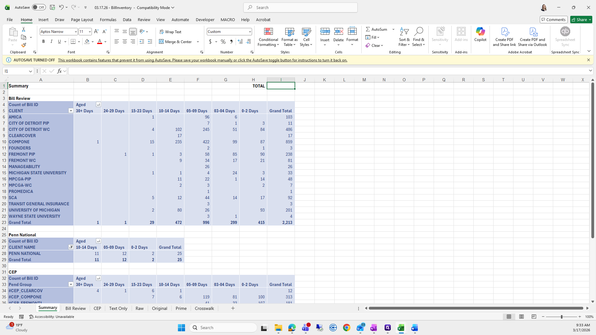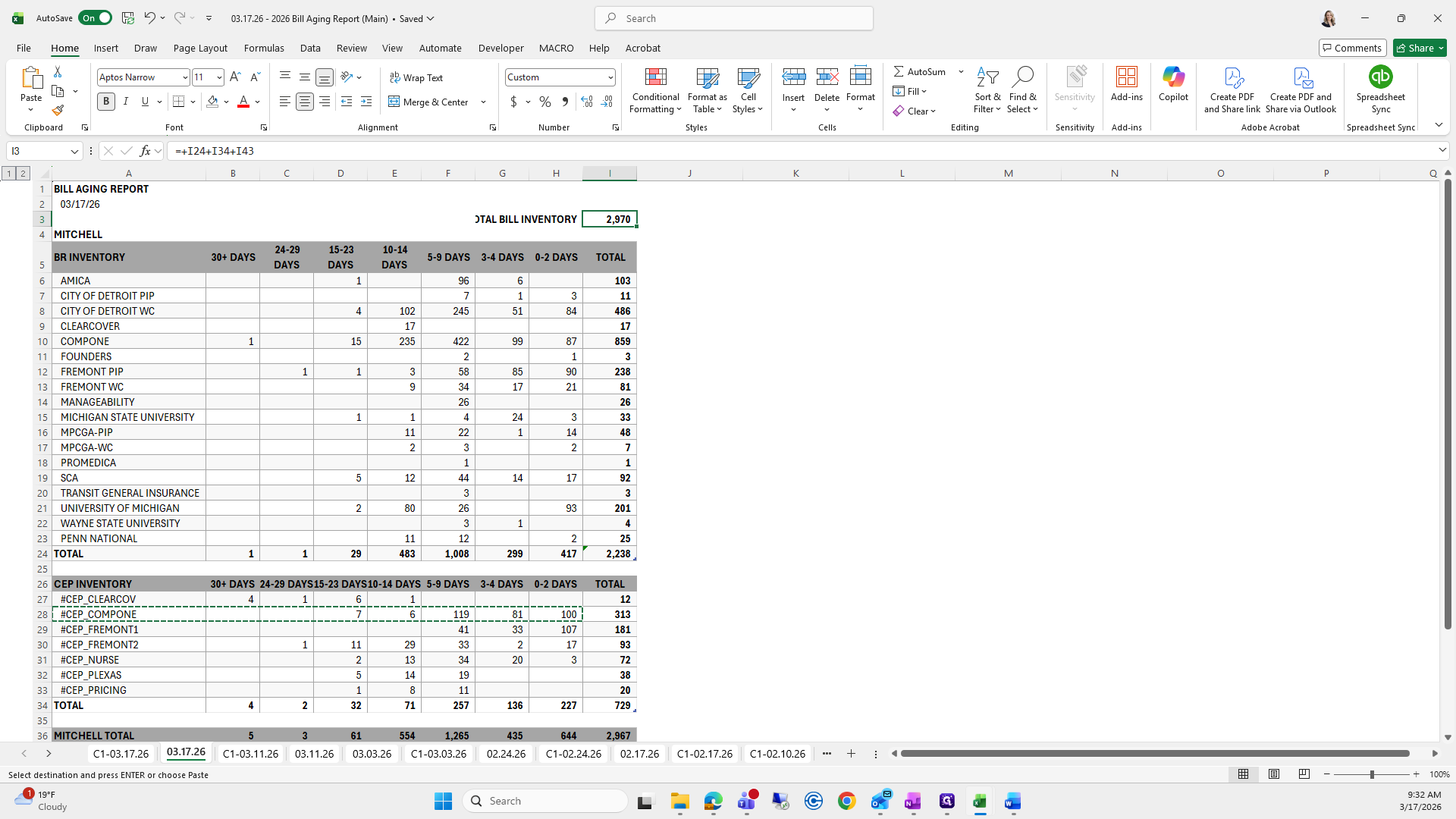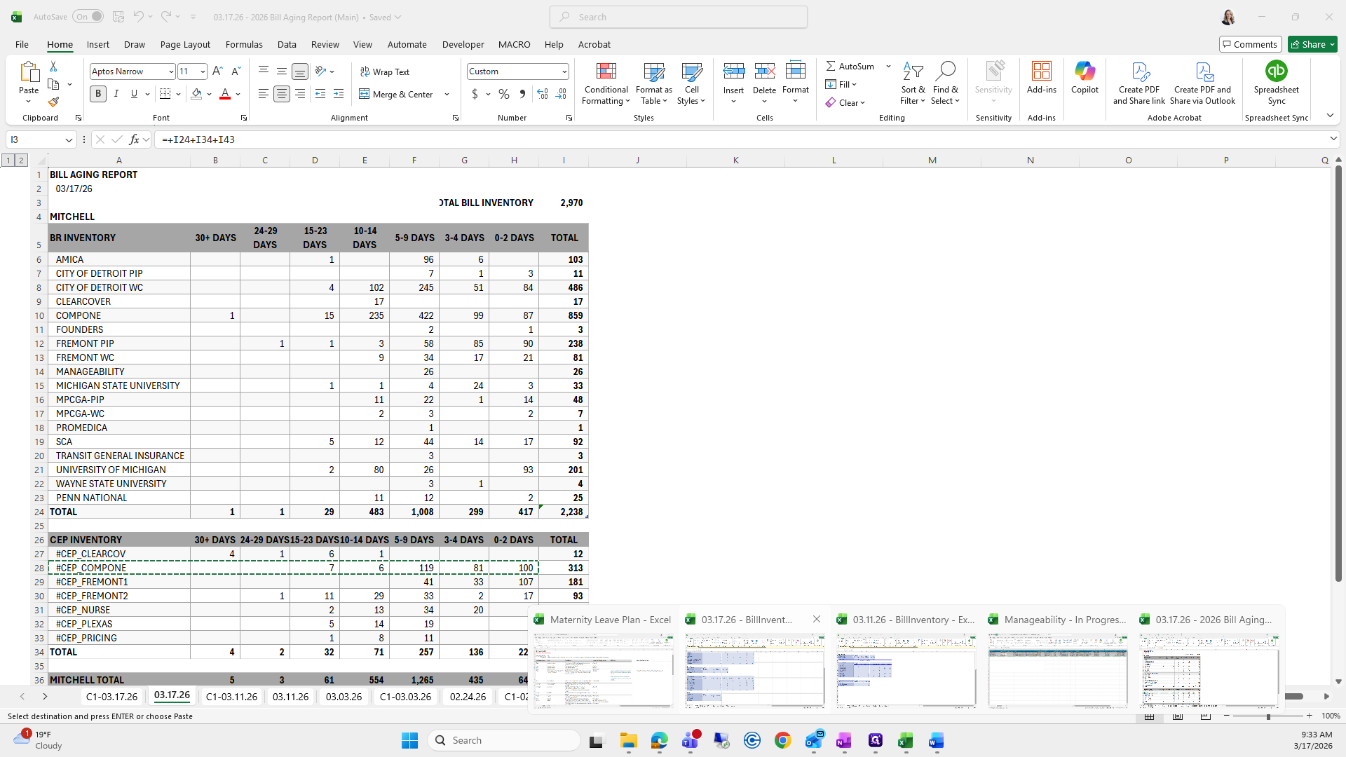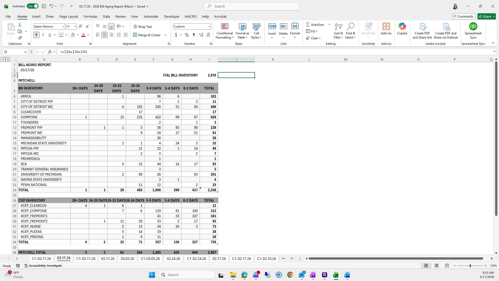 This is the bill aging report. We will try to save it again.