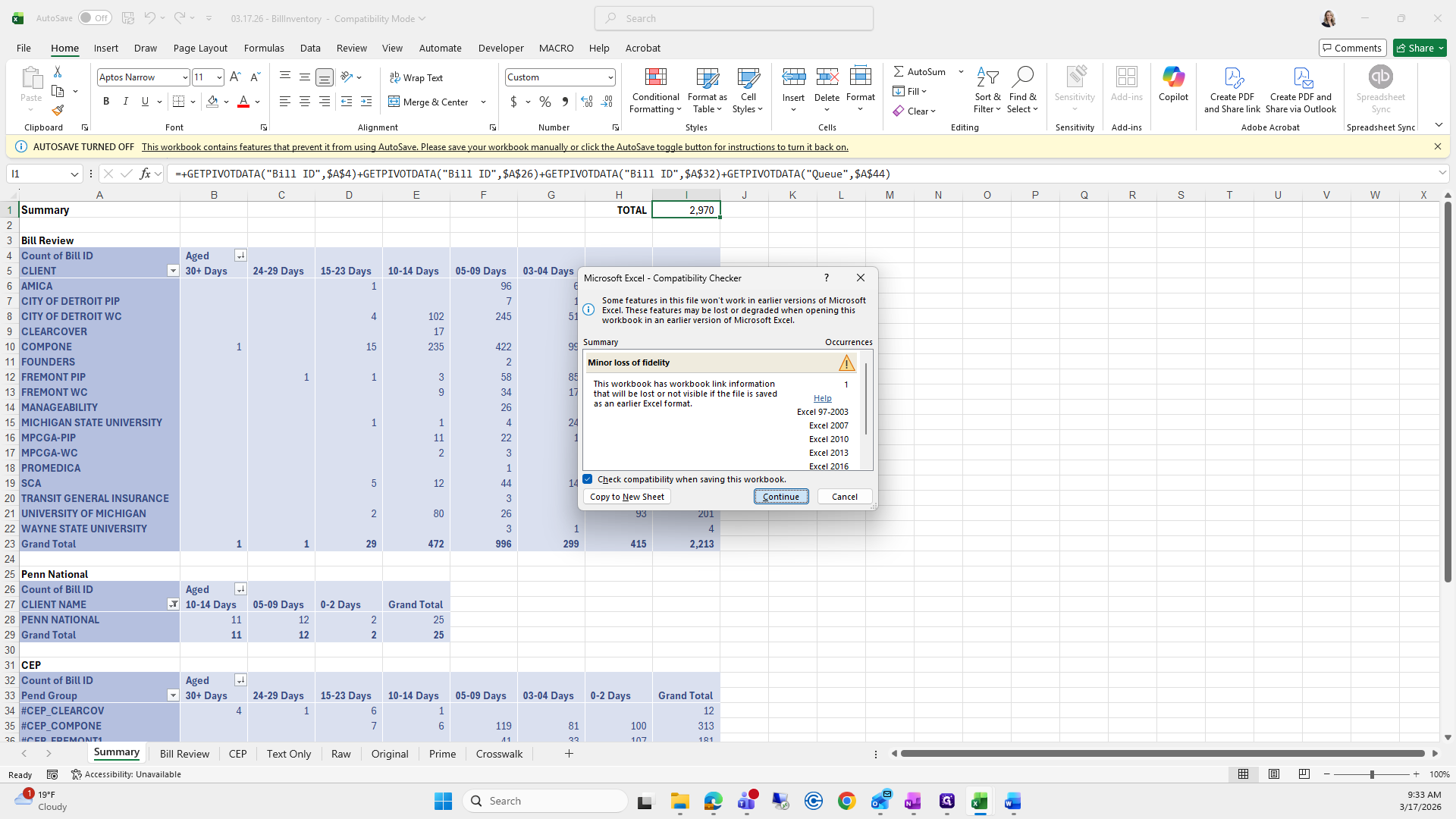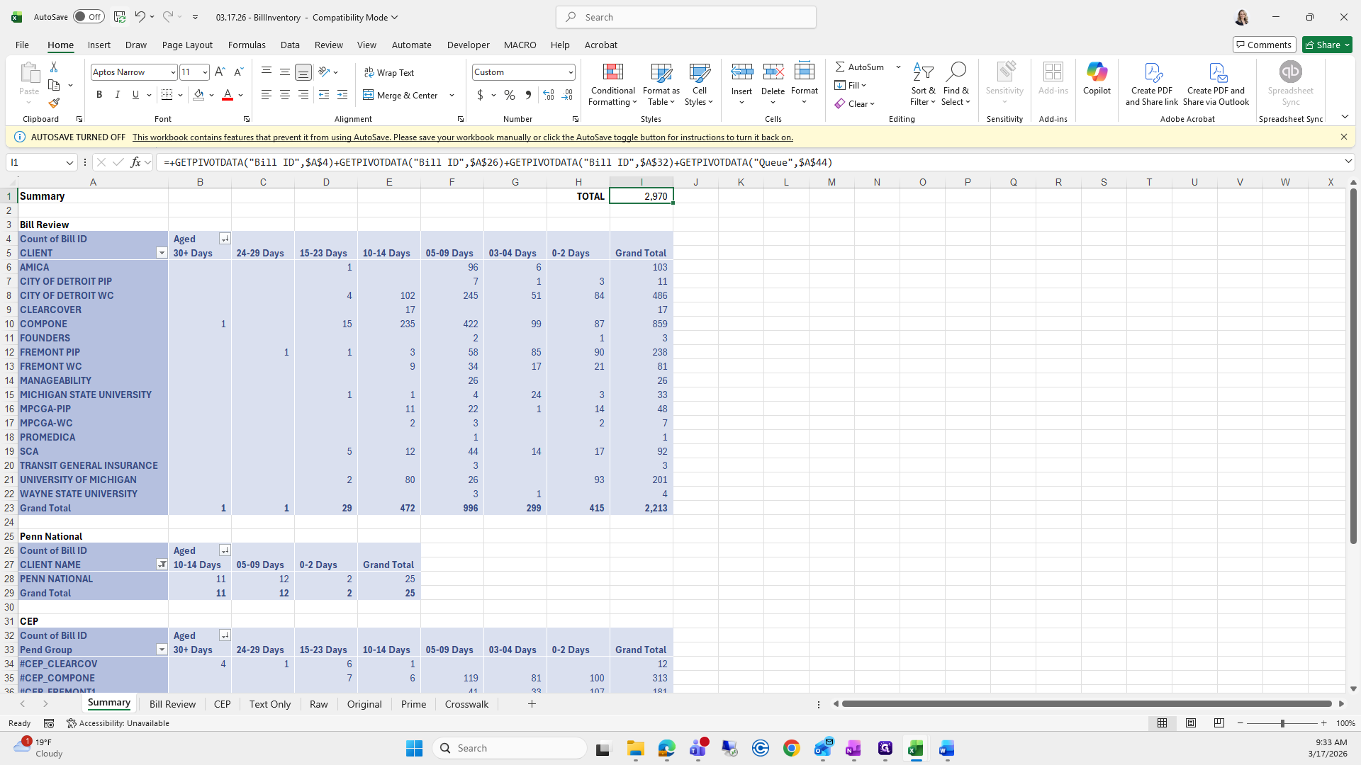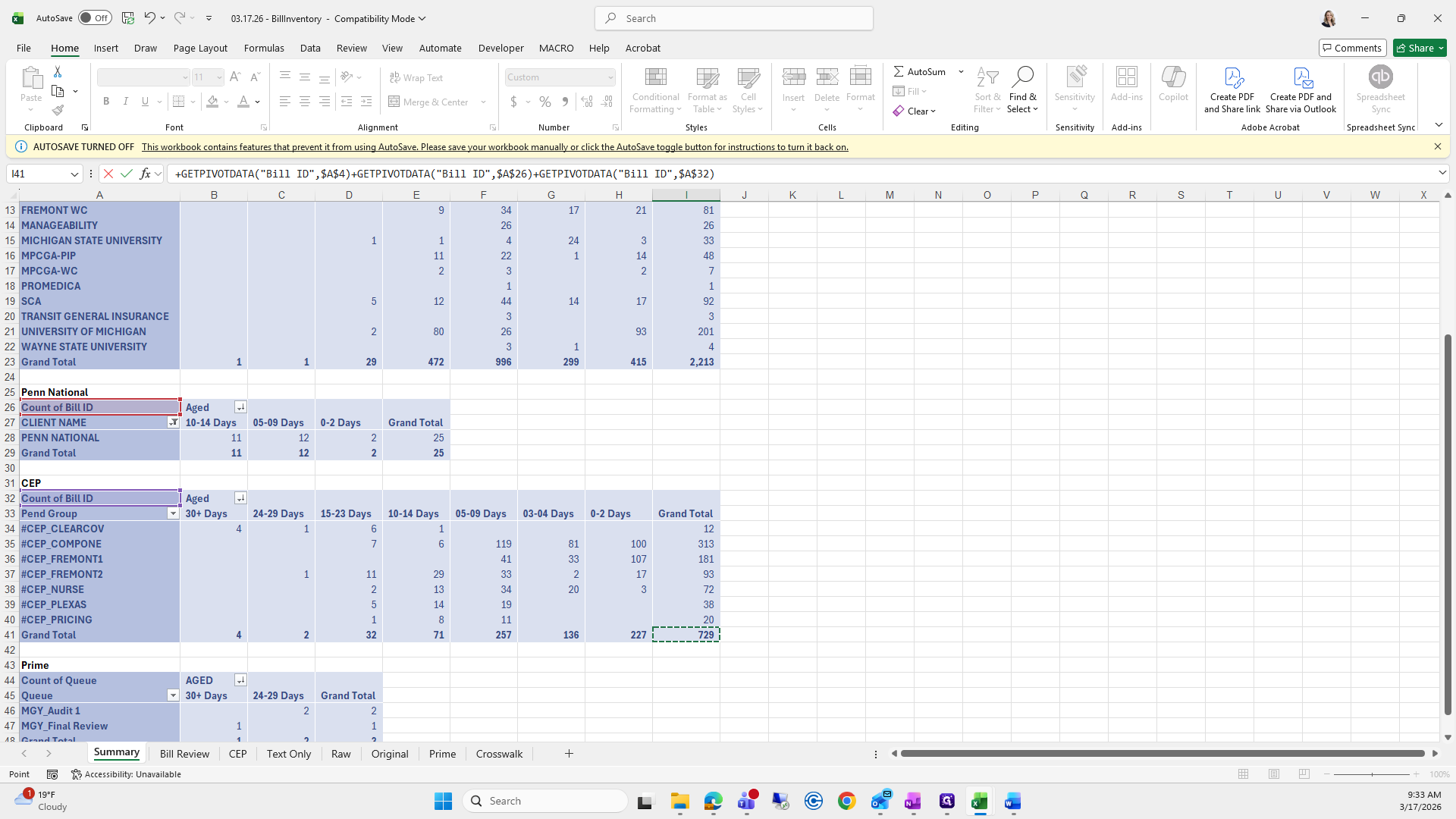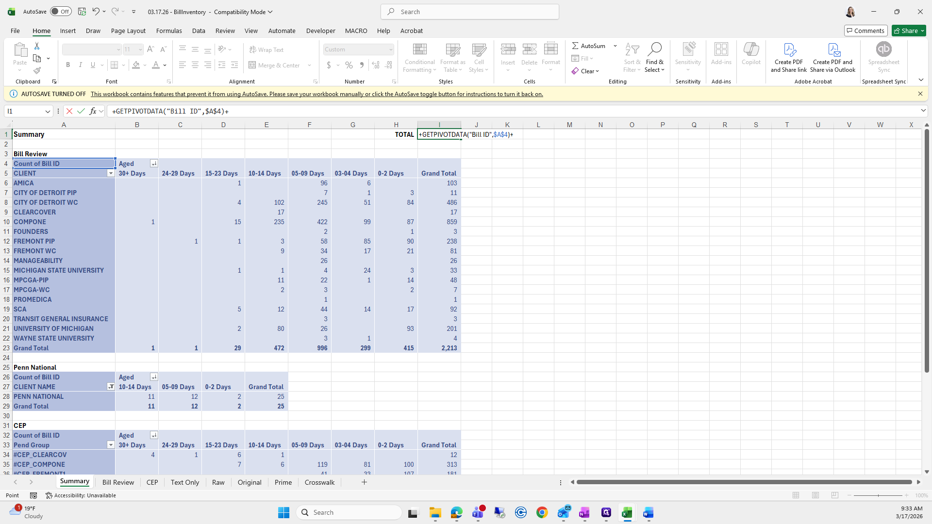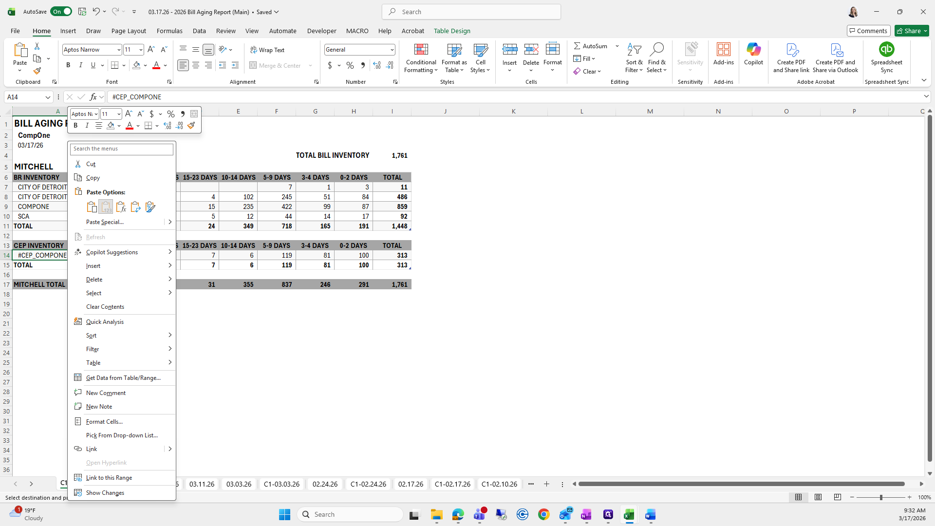 This is the bill aging report. We will try to save it again.