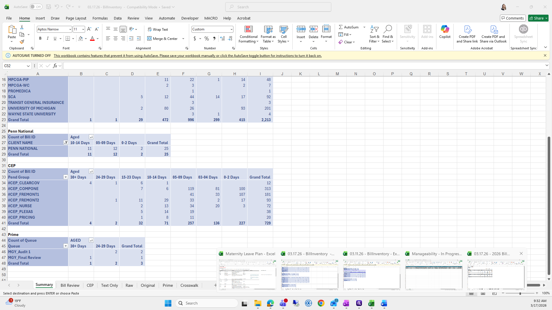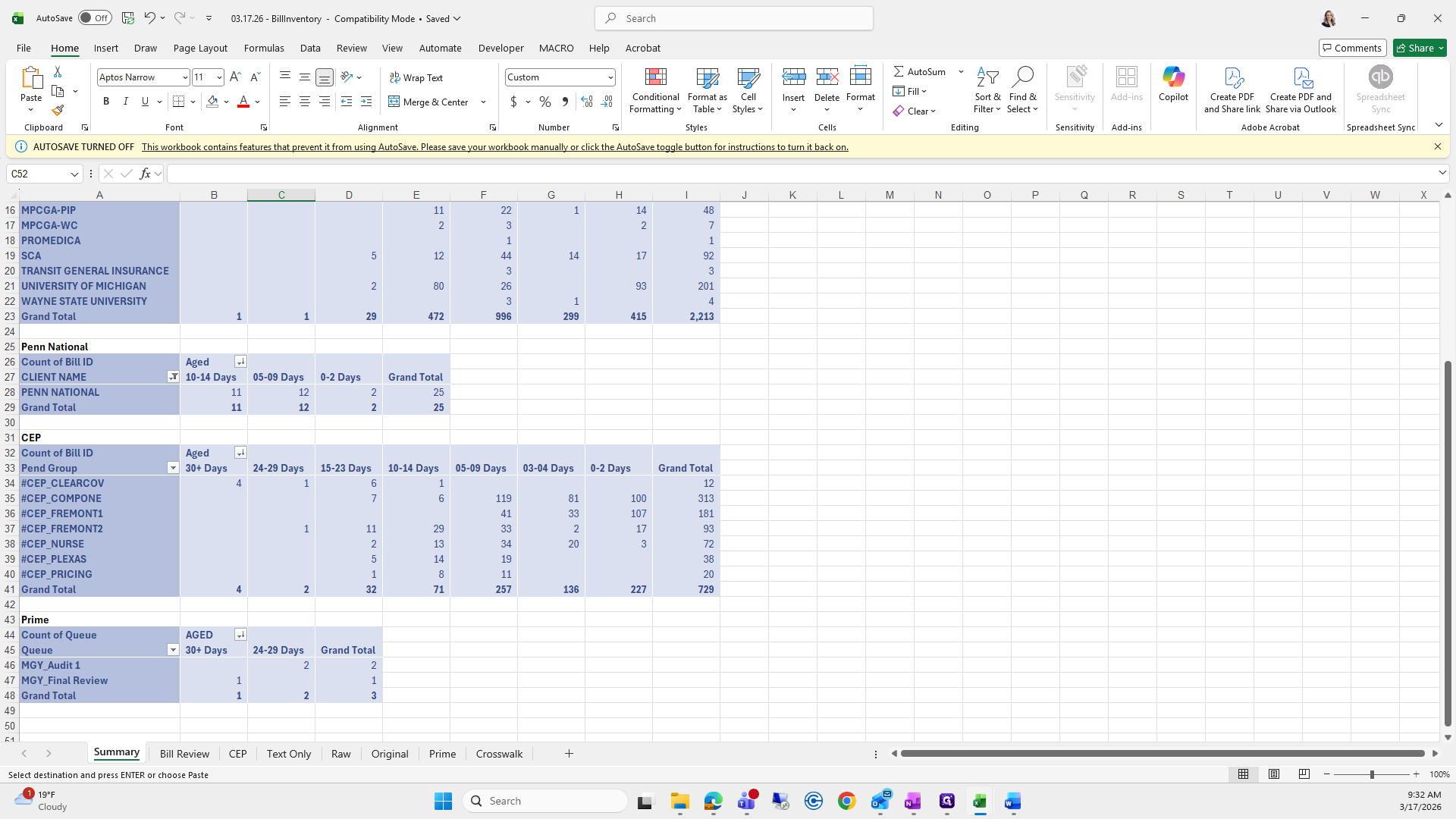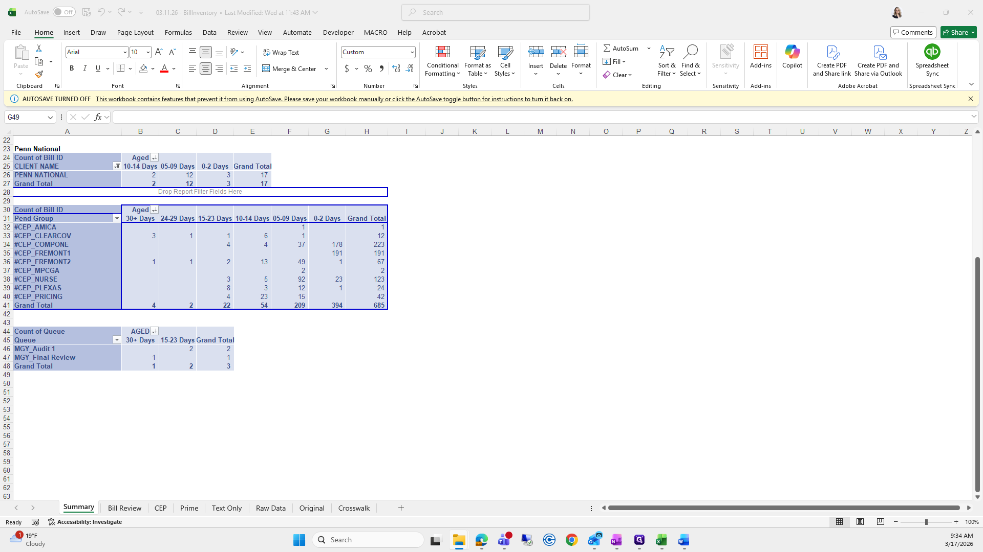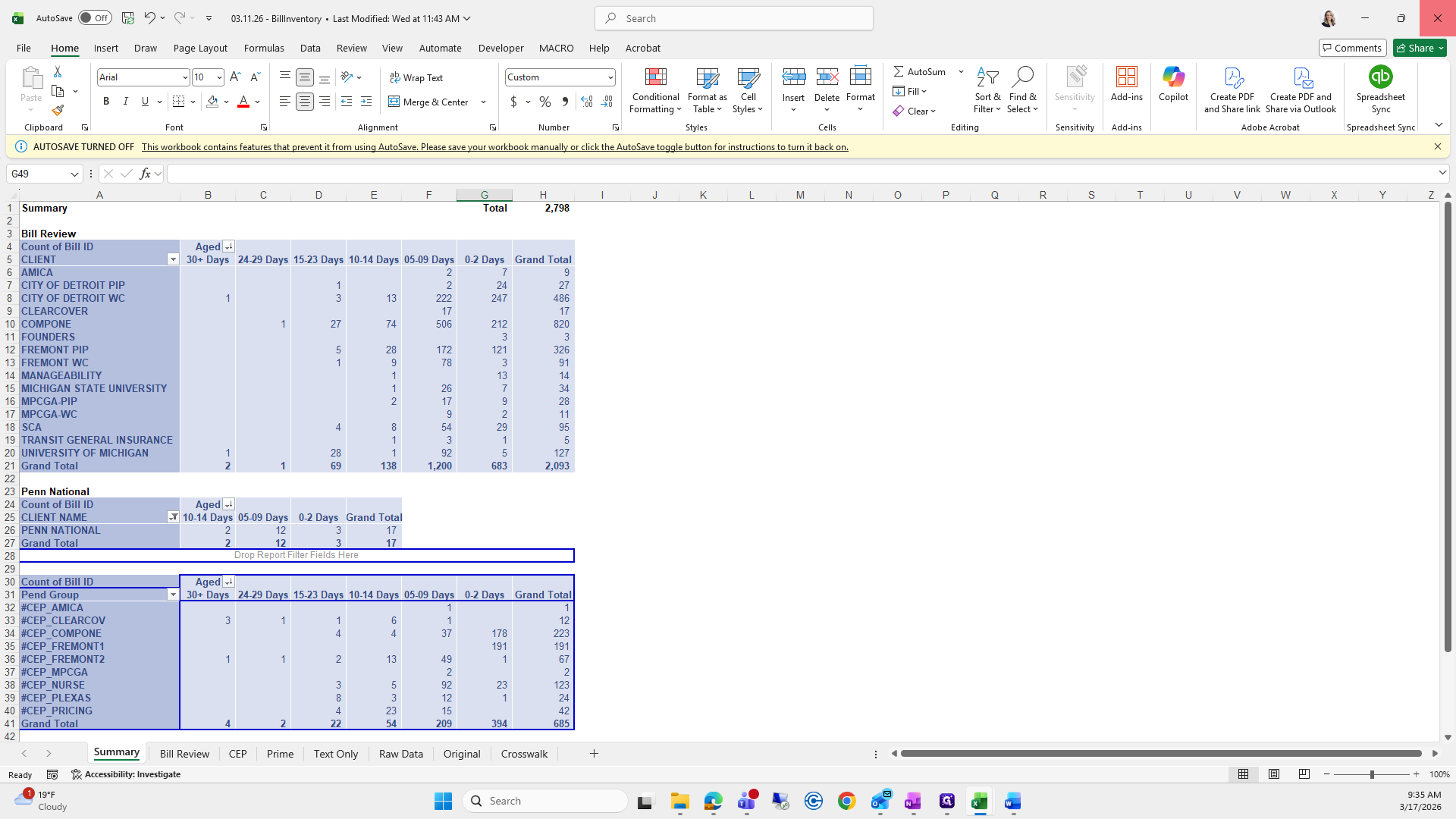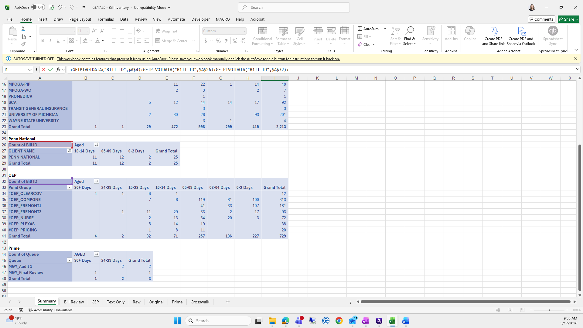 This is the bill aging report. We will try to save it again.