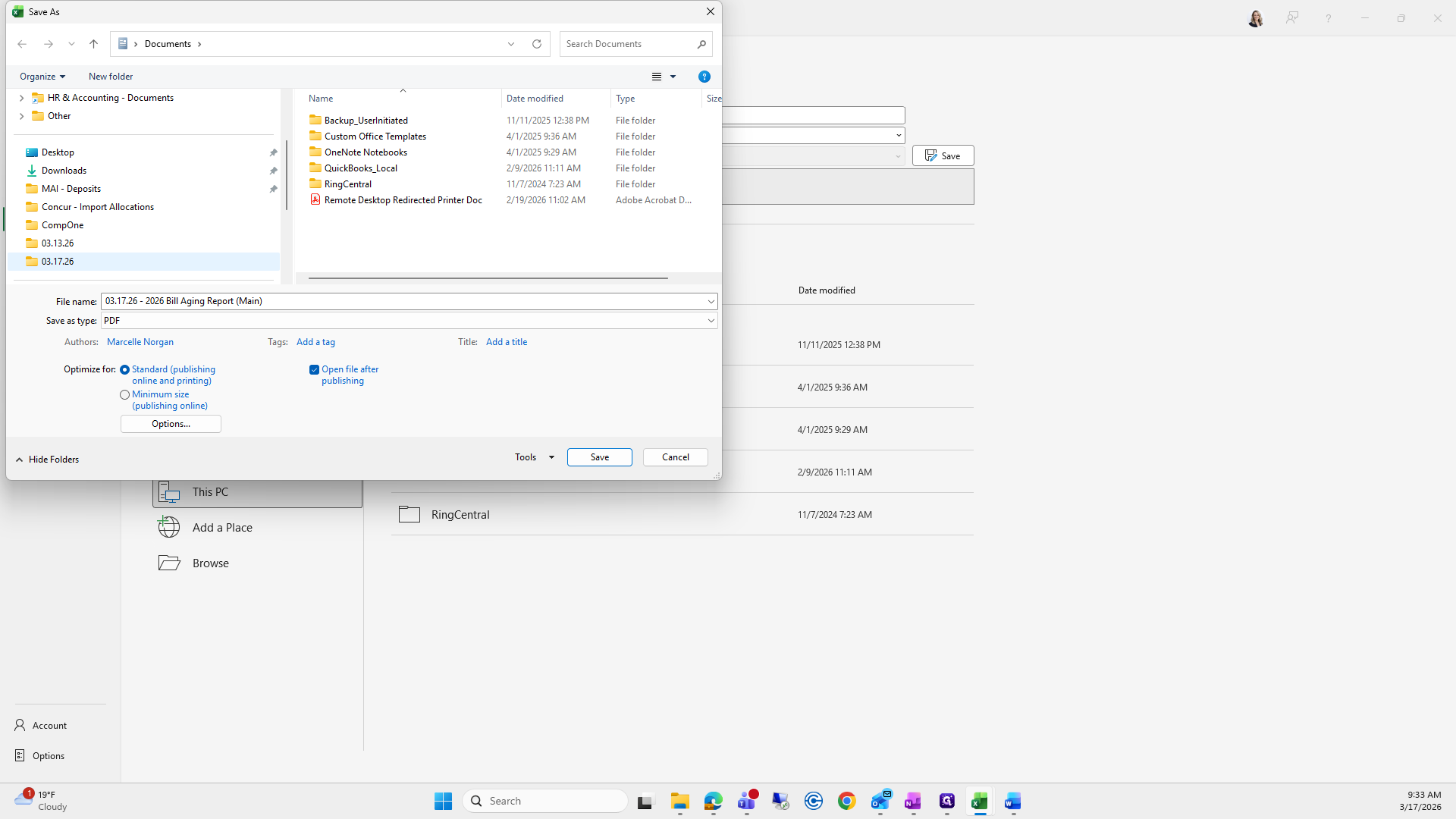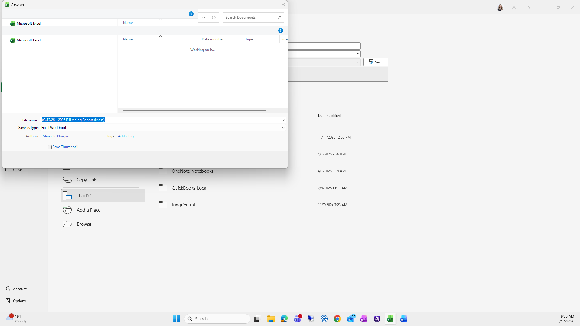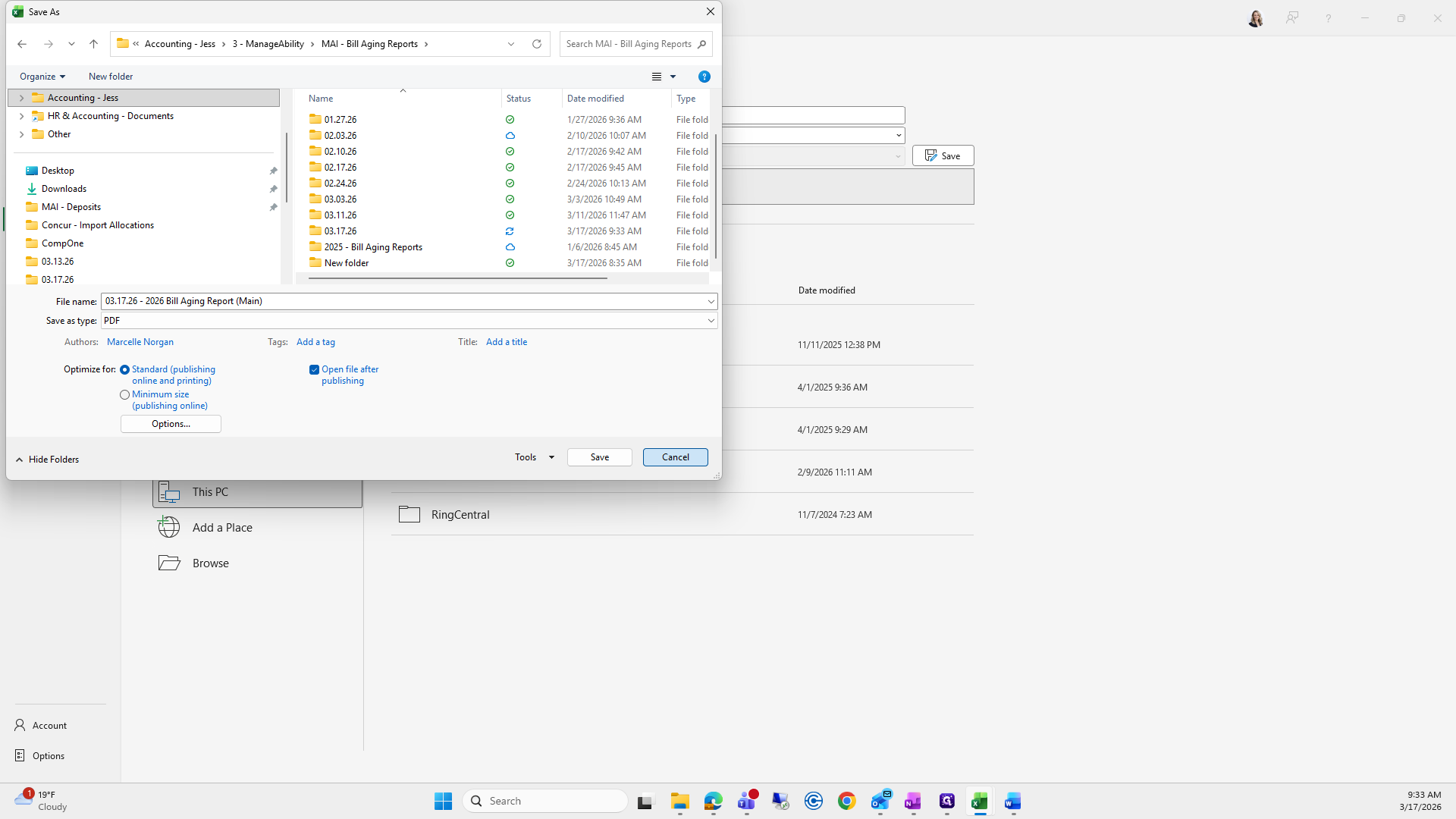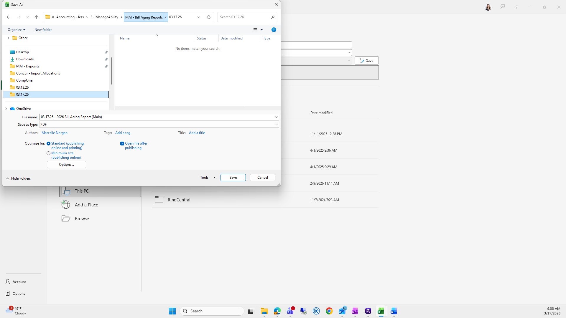 If you can't remember what to save it as, I go to the previous folder, find the bill aging report, and click it to copy the name.