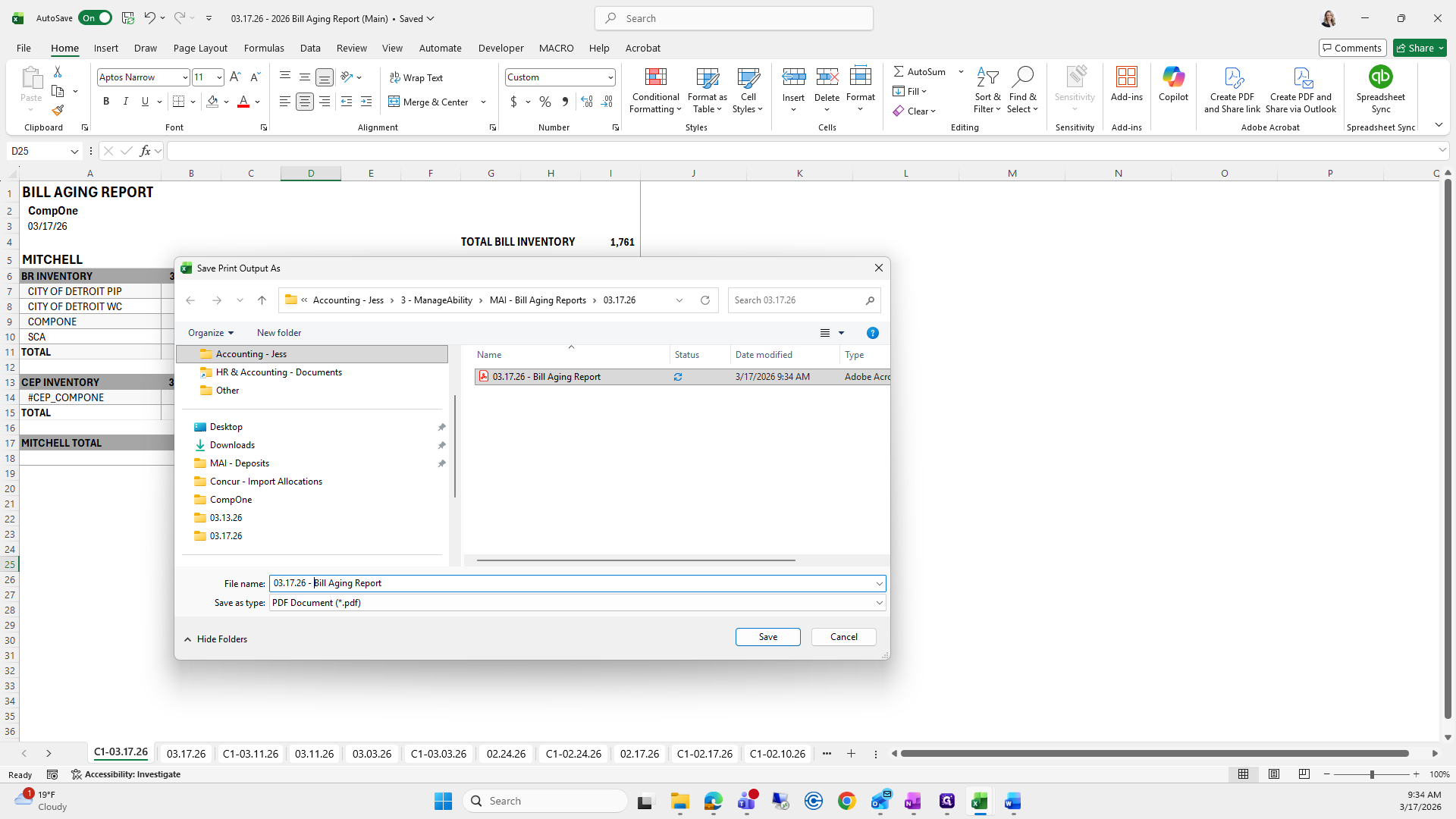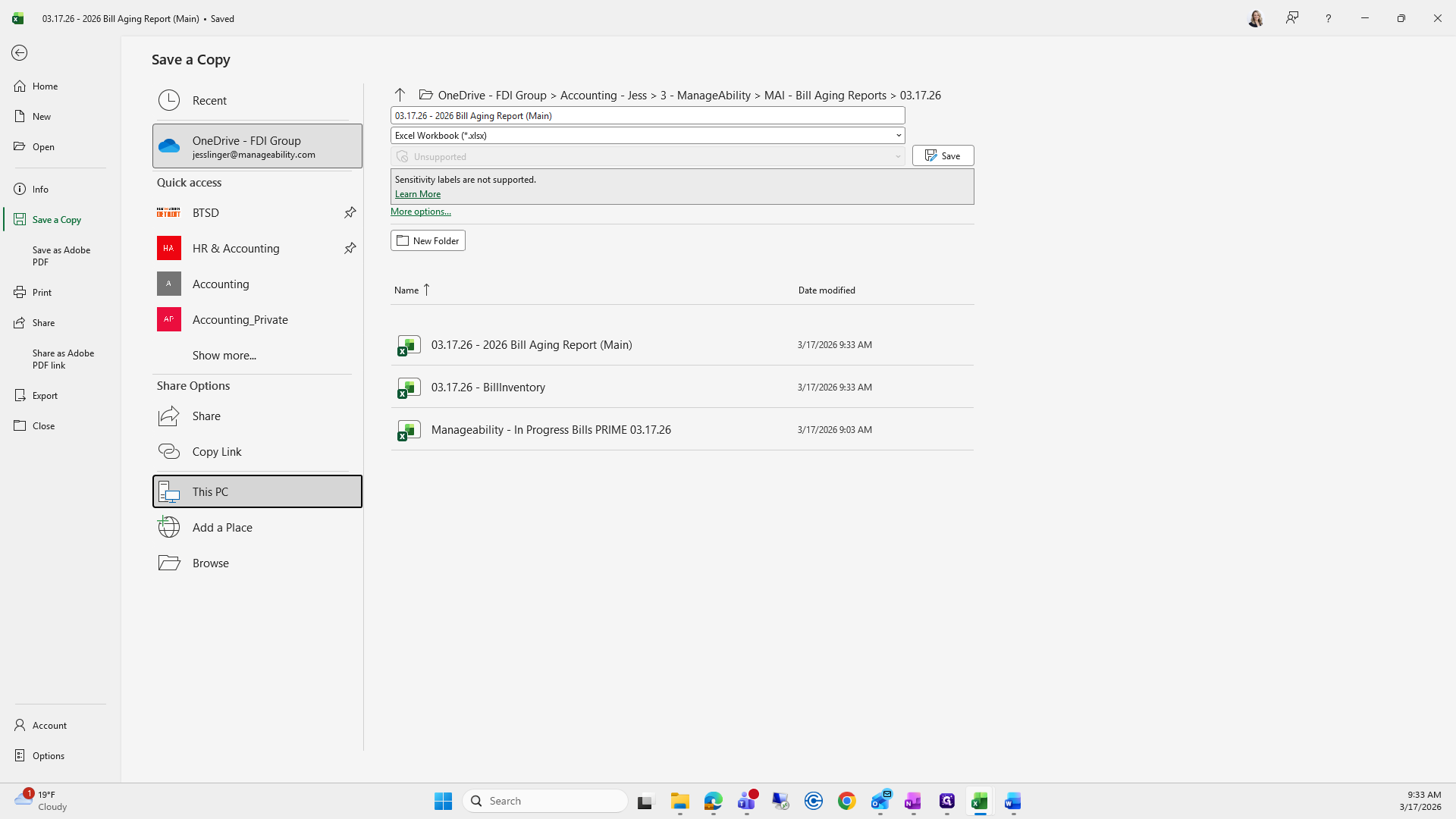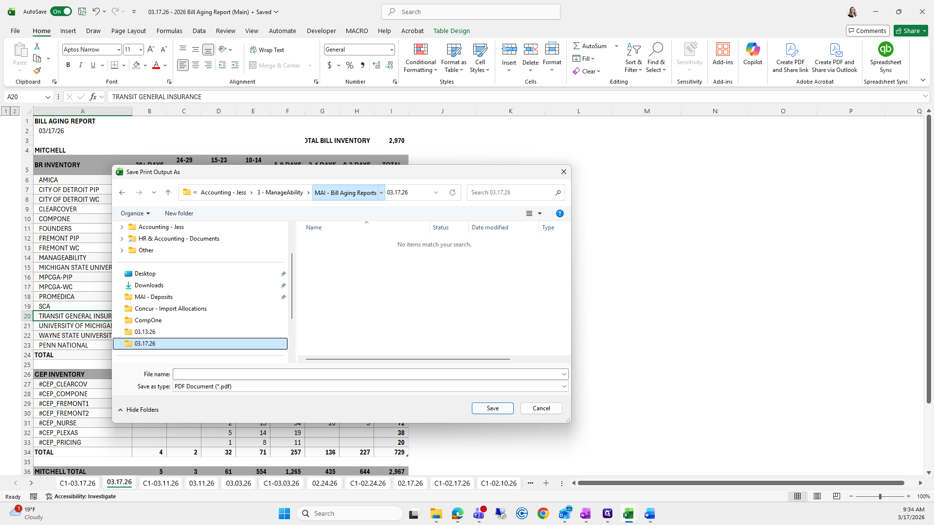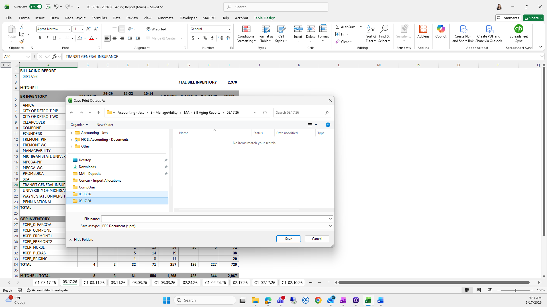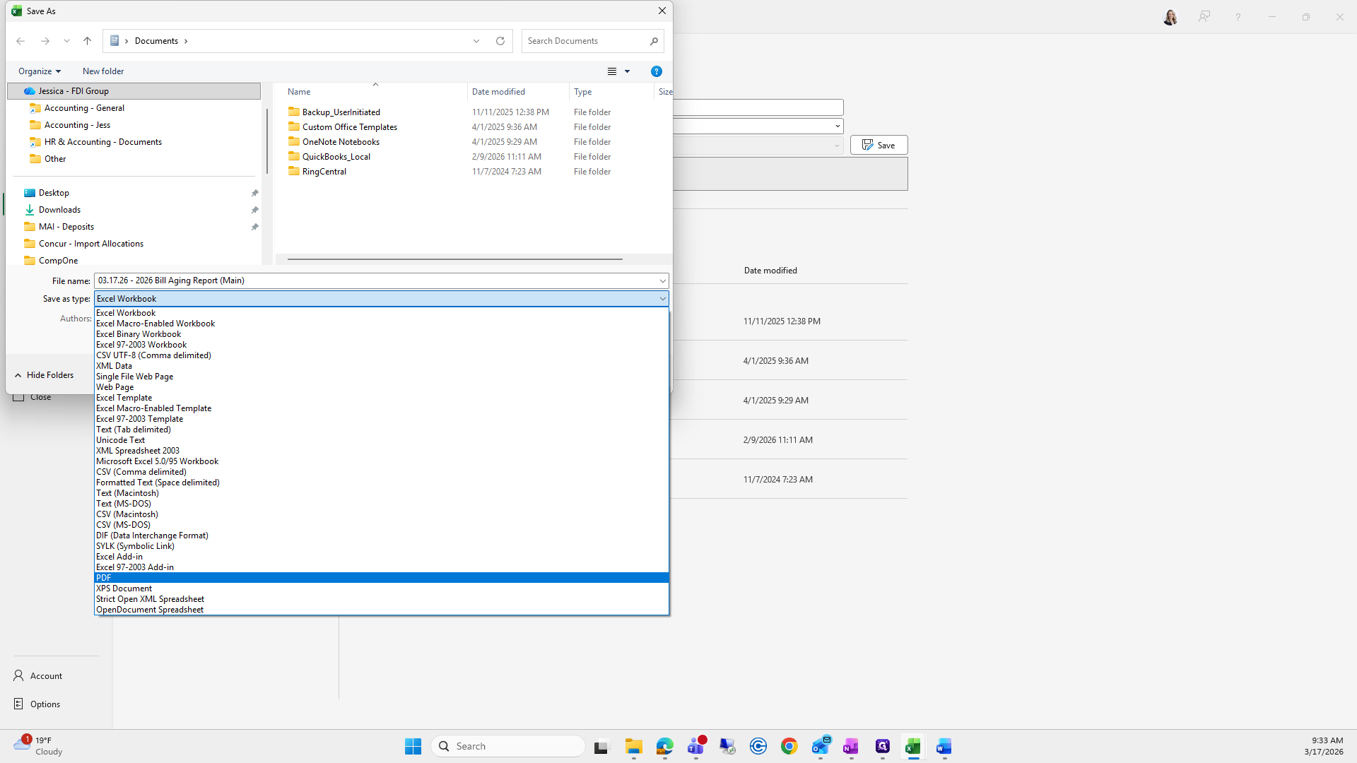 If you can't remember what to save it as, I go to the previous folder, find the bill aging report, and click it to copy the name.