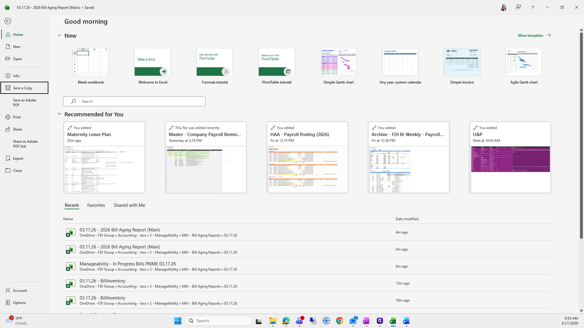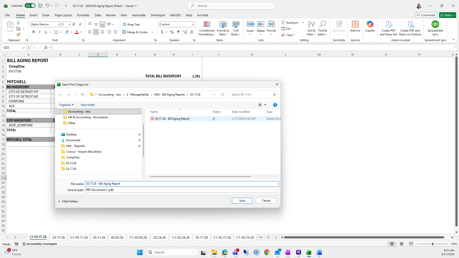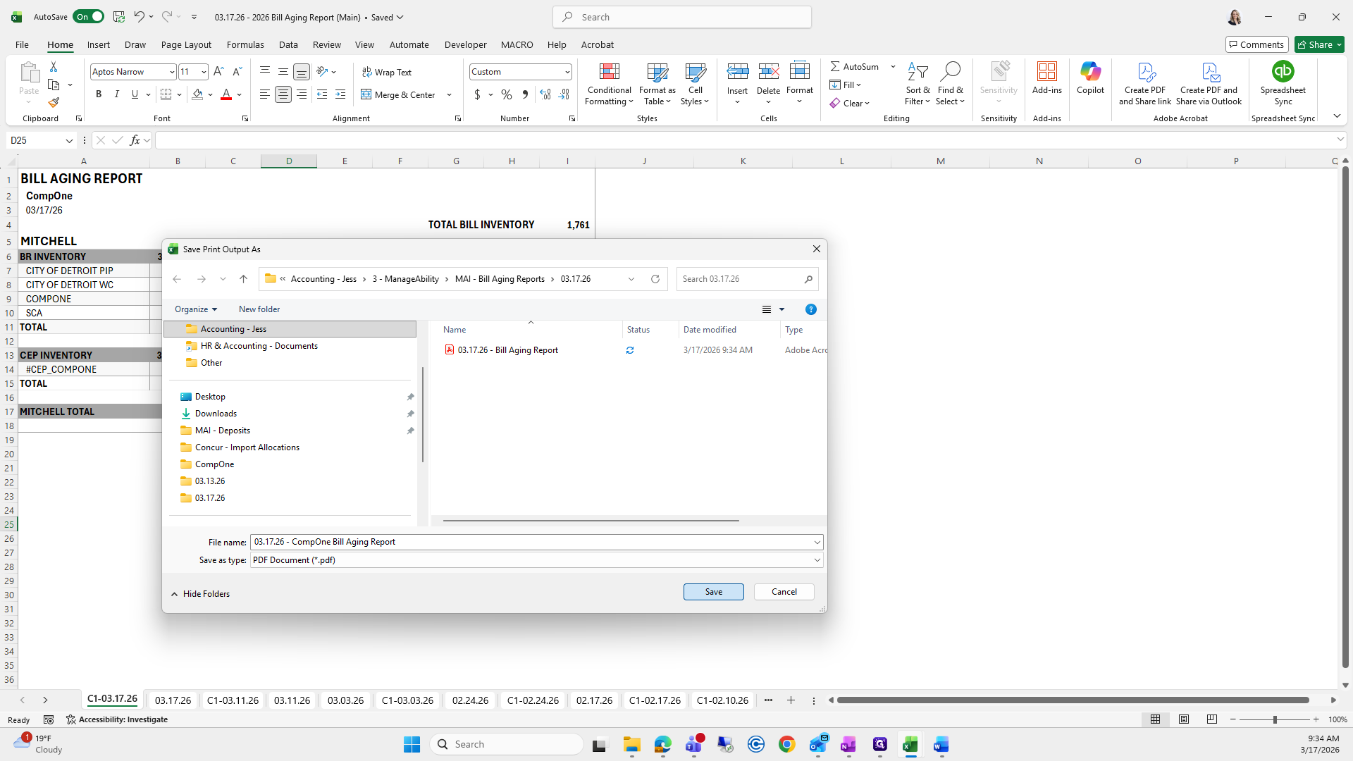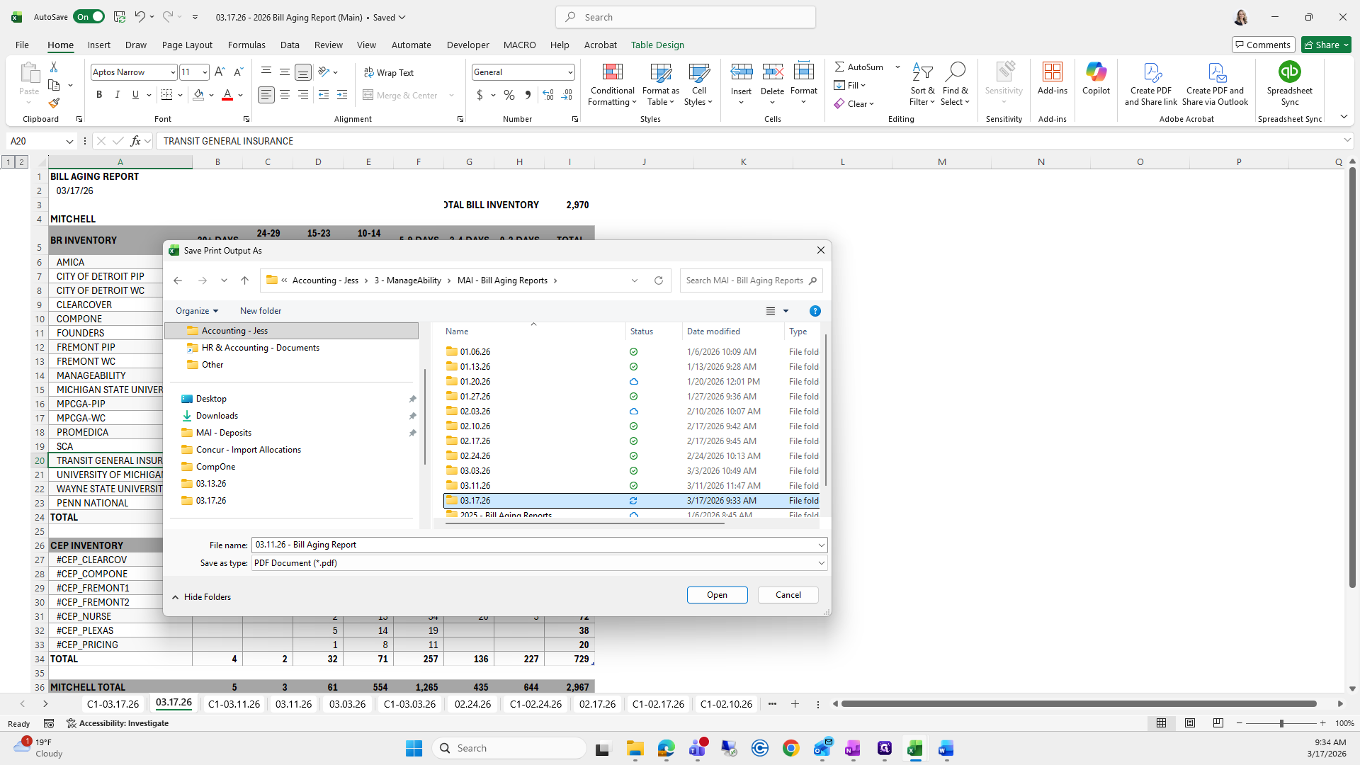 If you can't remember what to save it as, I go to the previous folder, find the bill aging report, and click it to copy the name.