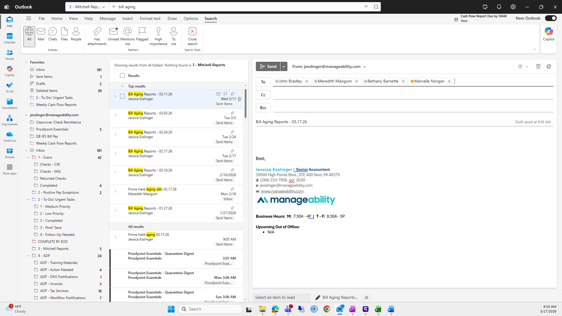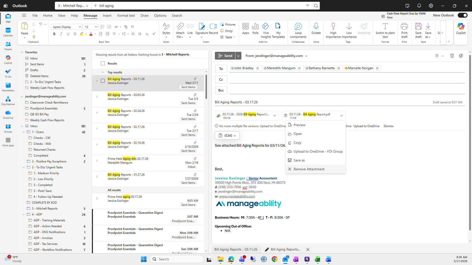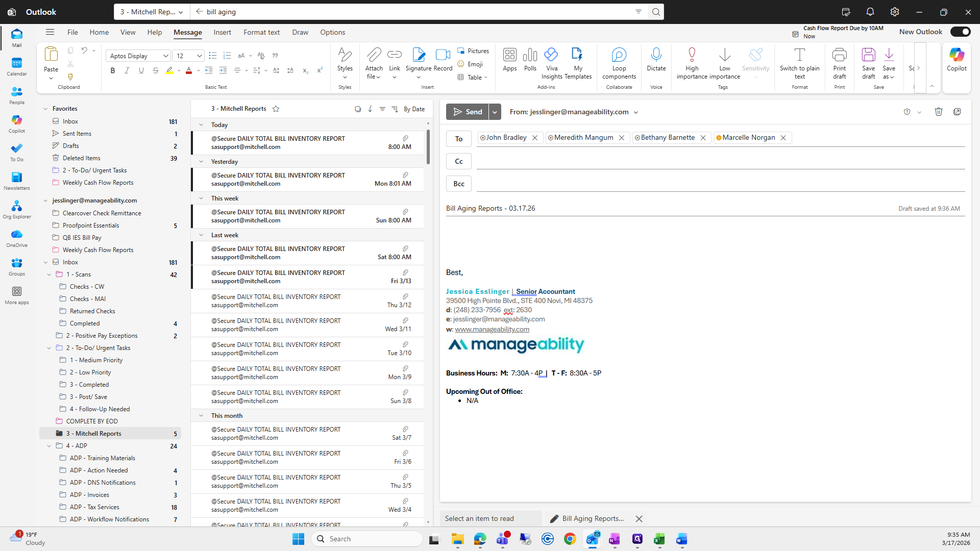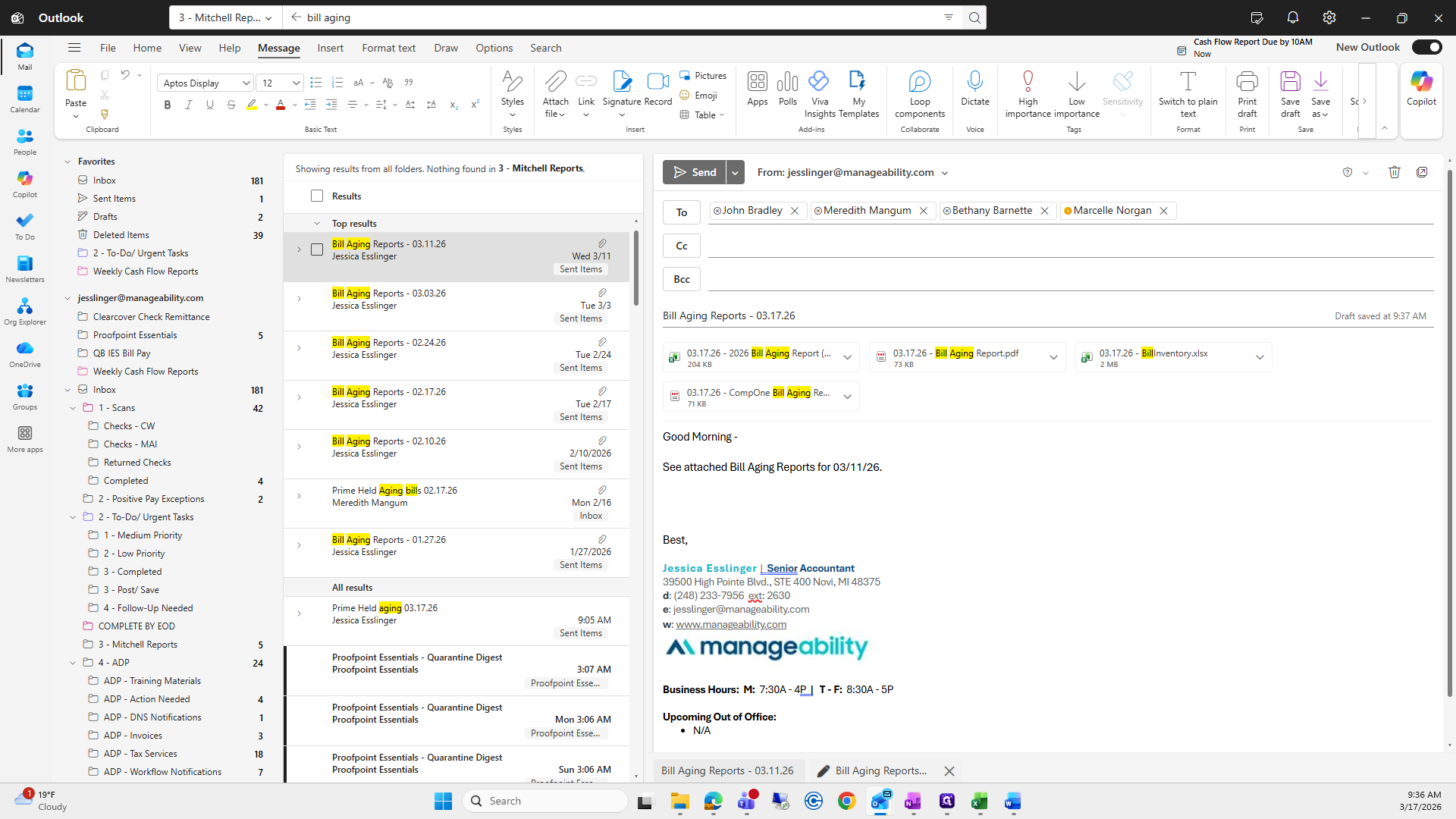 Then, enter the subject line: Bill Aging Reports, 03/17/26.