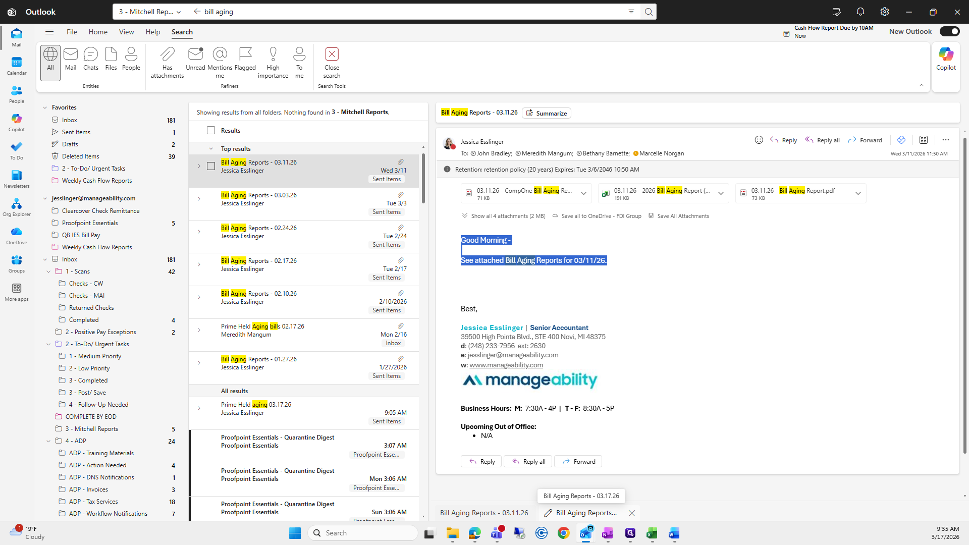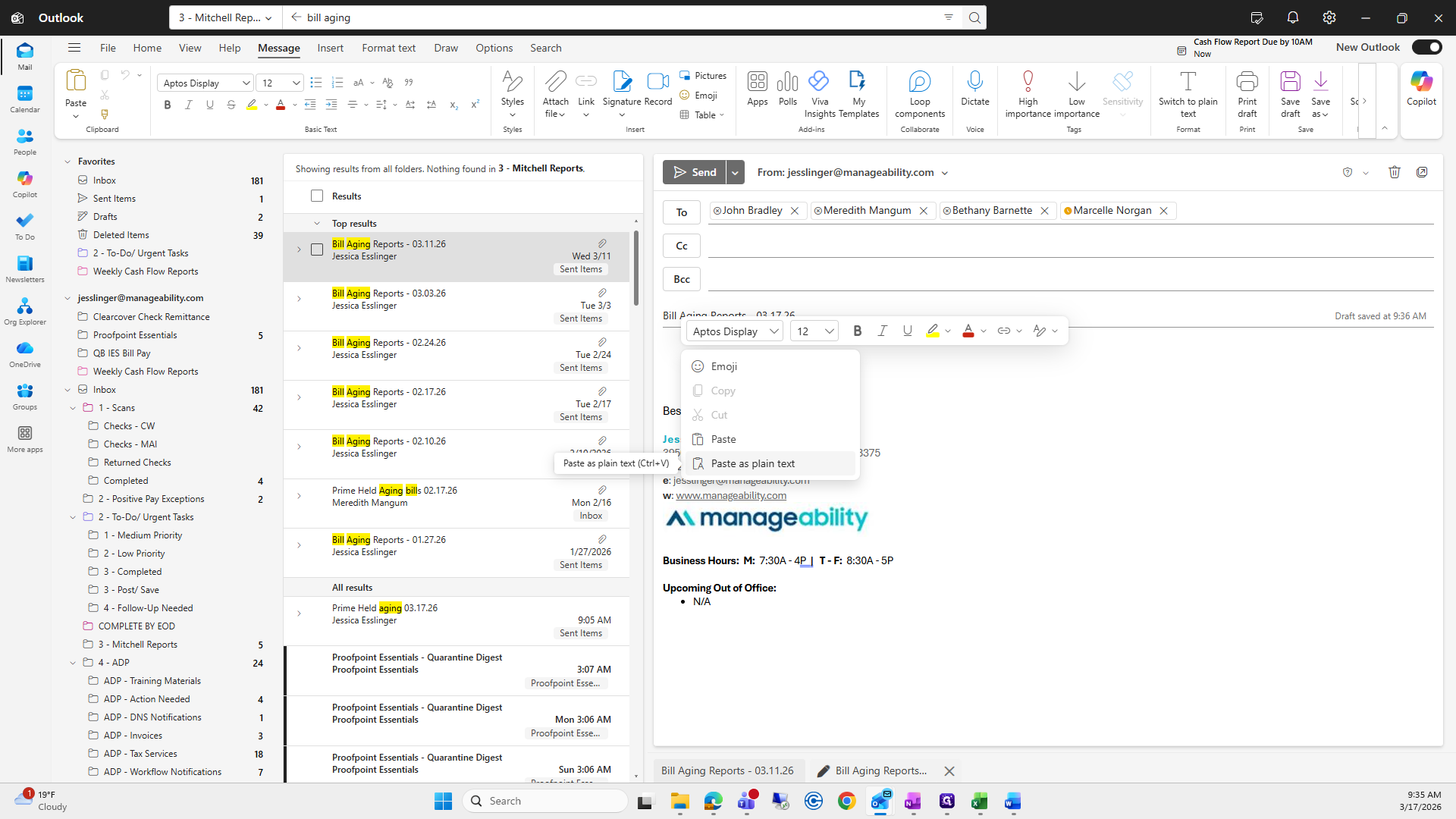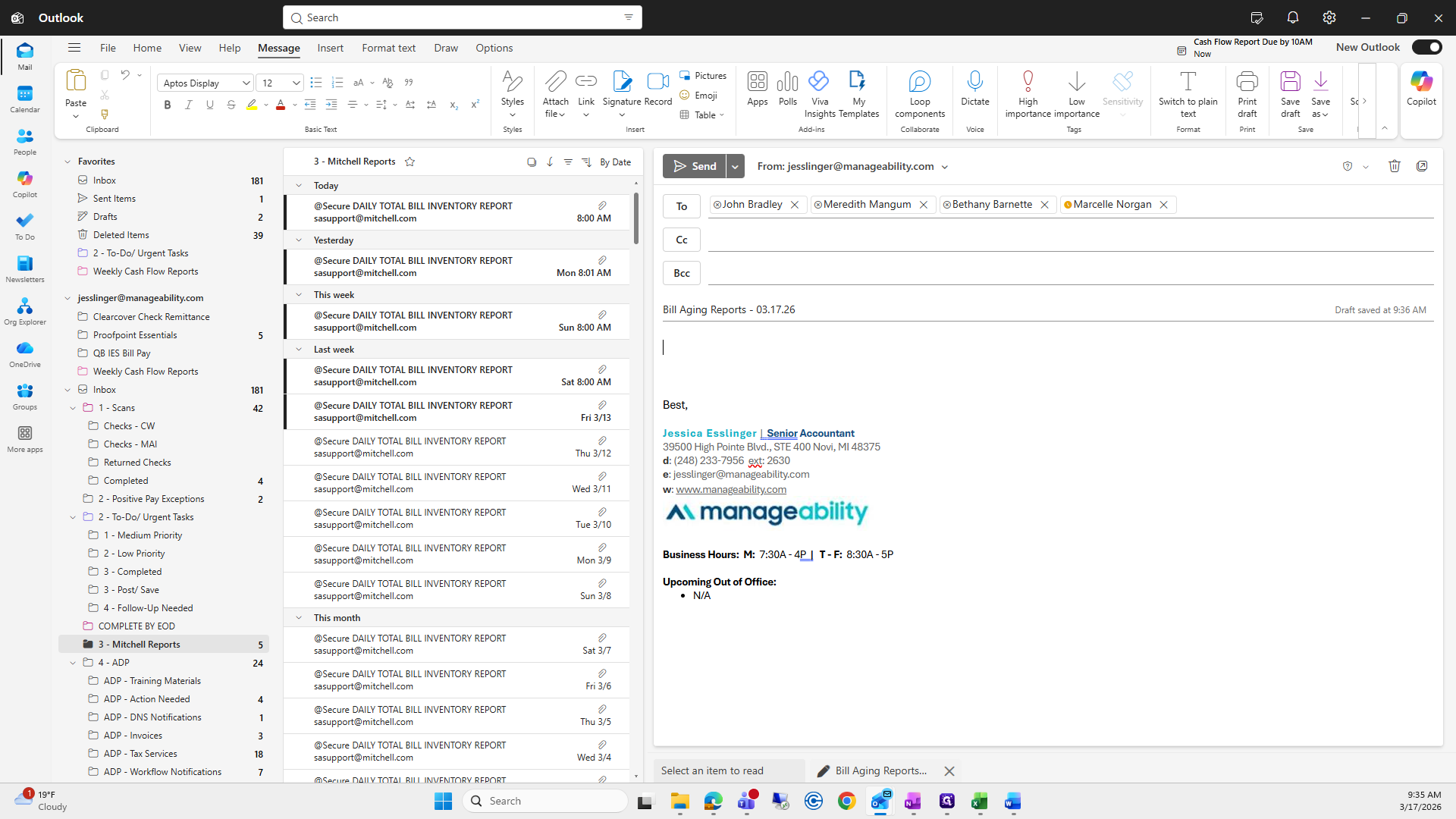 Then, enter the subject line: Bill Aging Reports, 03/17/26.