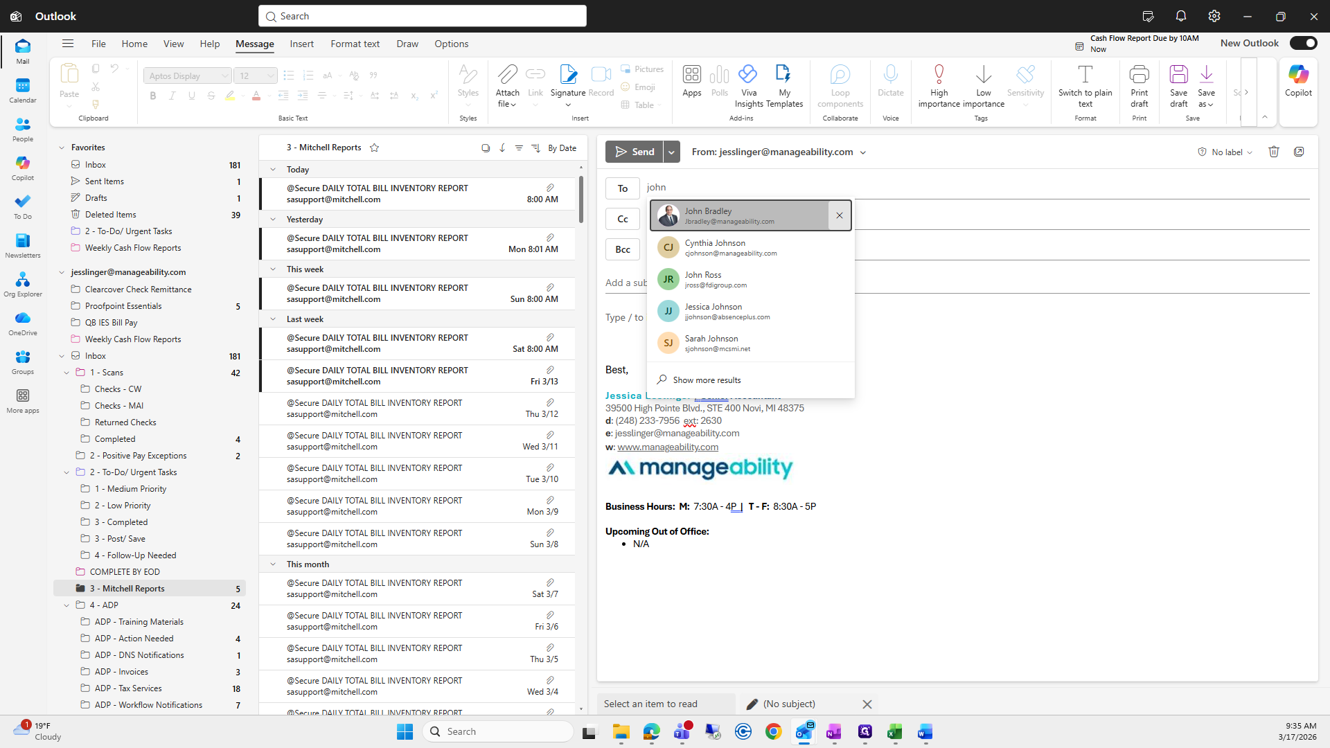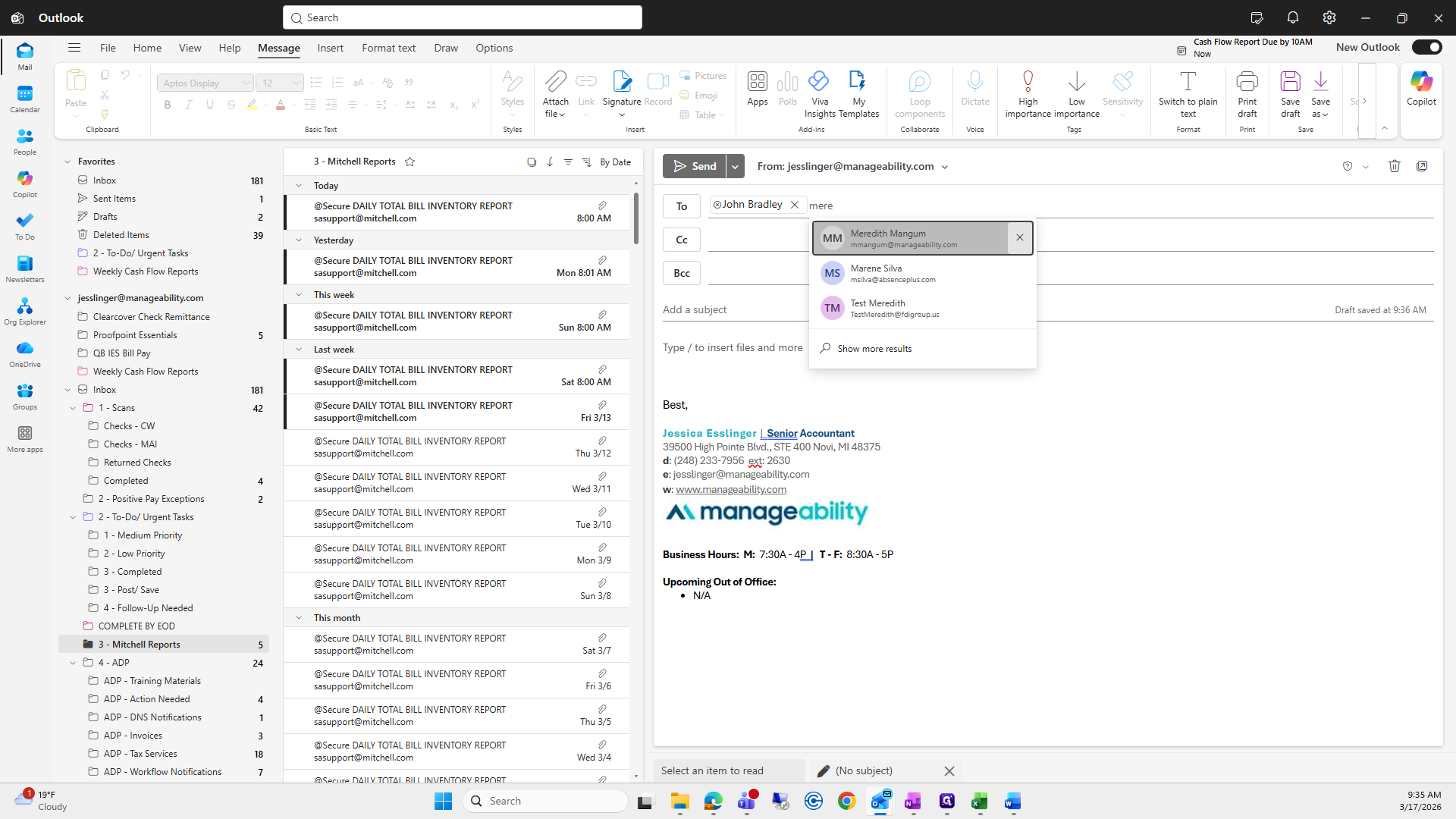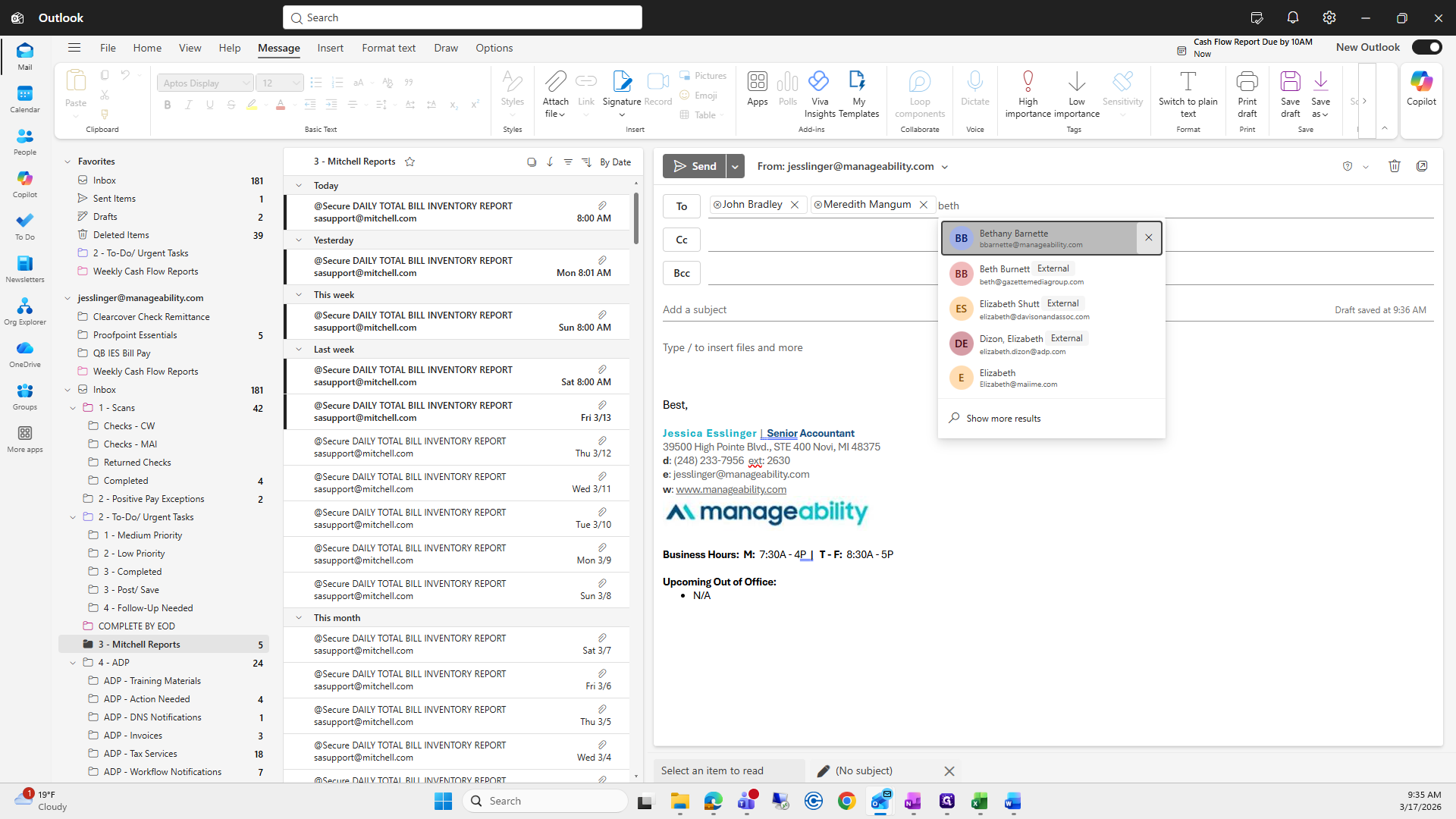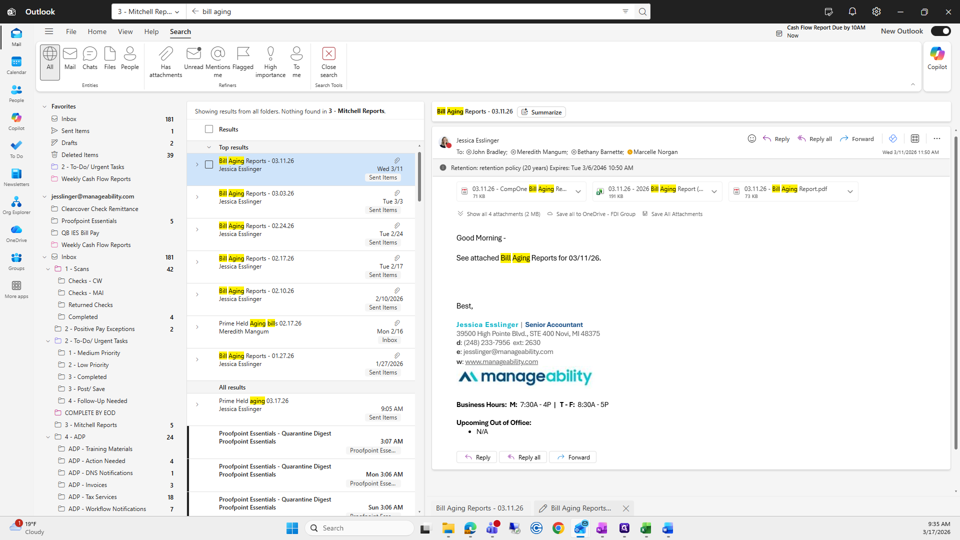 Then, enter the subject line: Bill Aging Reports, 03/17/26.