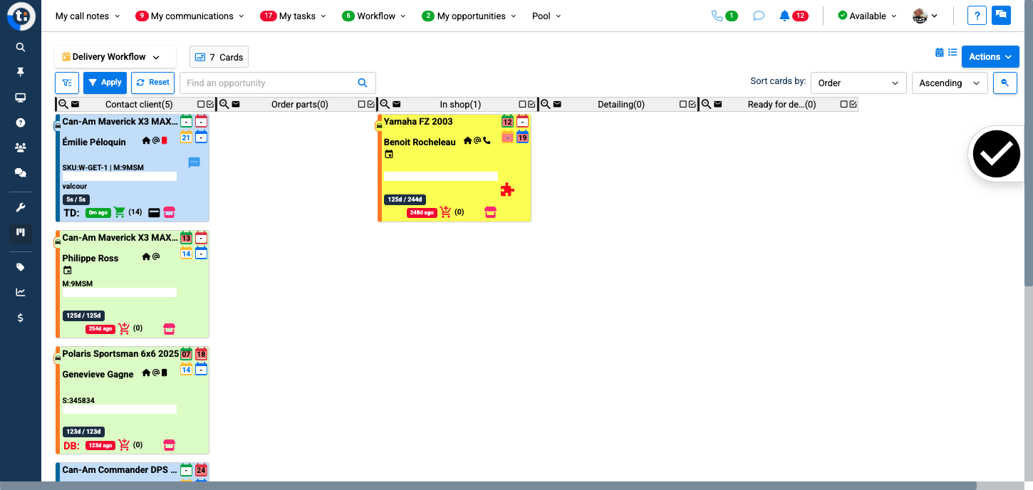 Now you can send that card to the workflow. Click on the card of the opportunity you want to send to the workflow, located on the left.