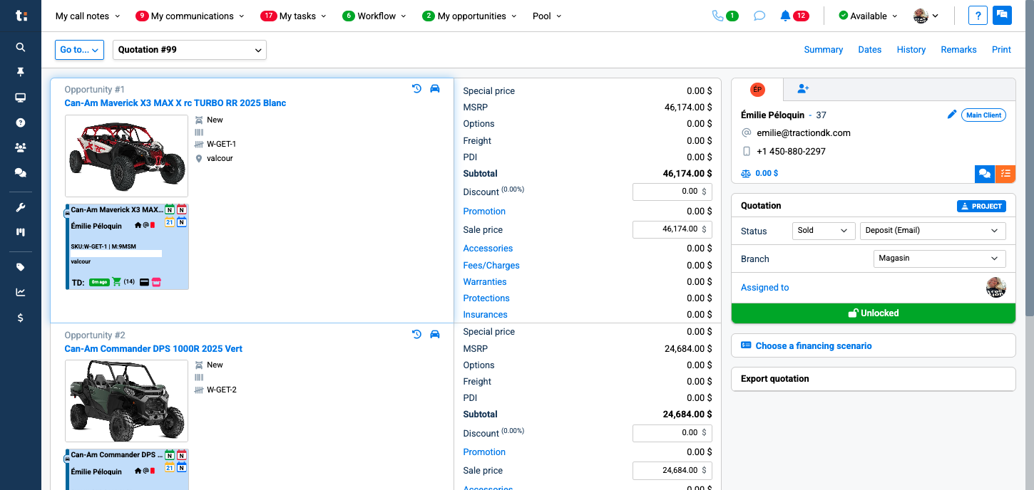 First, your quote must be sold. If it is not sold, you will not be able to send that card to the workflow. First, change the status to "sold."