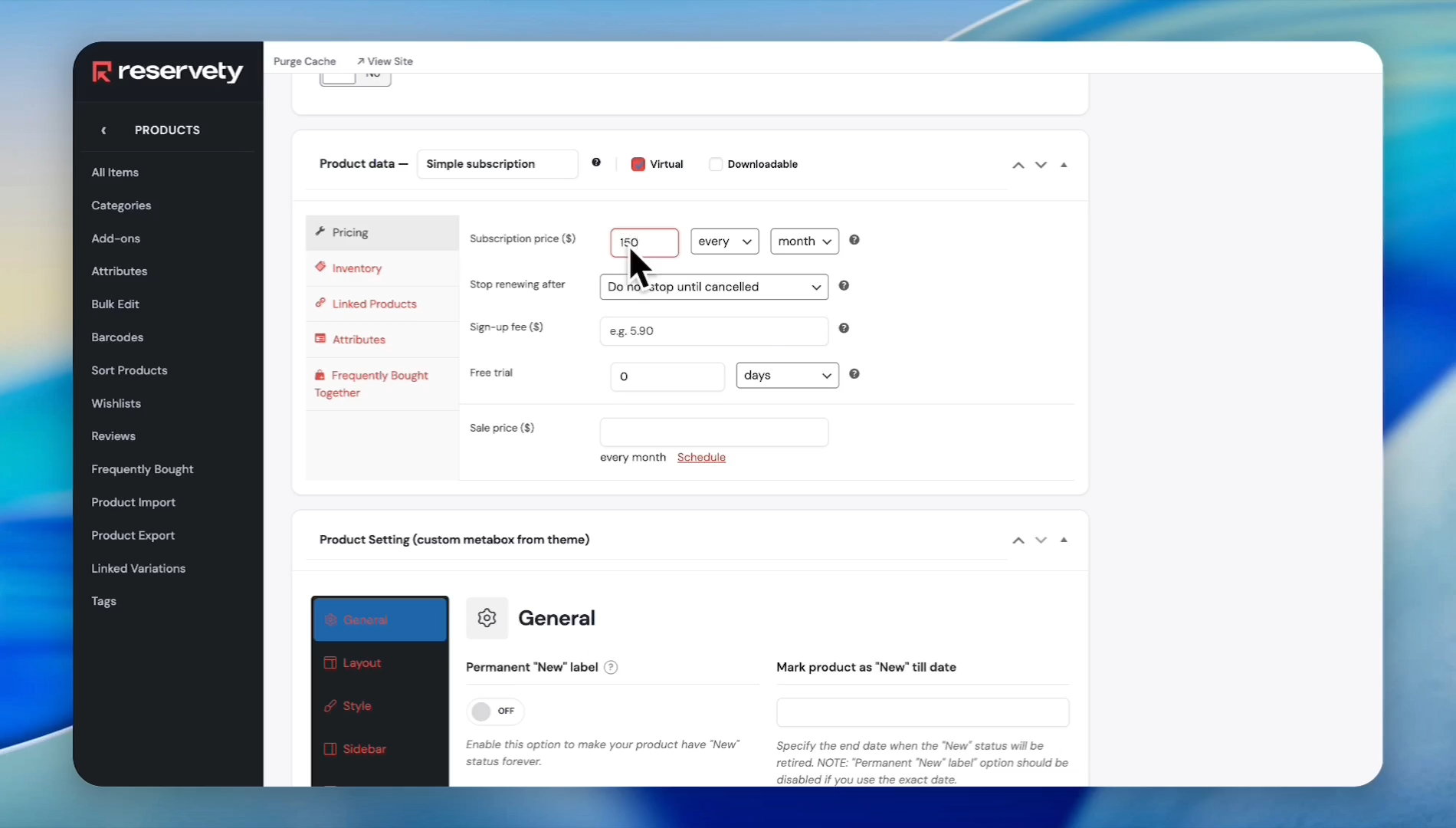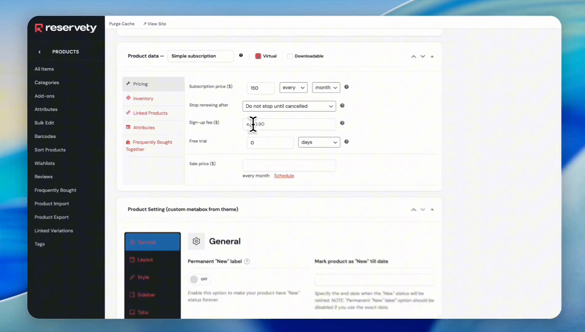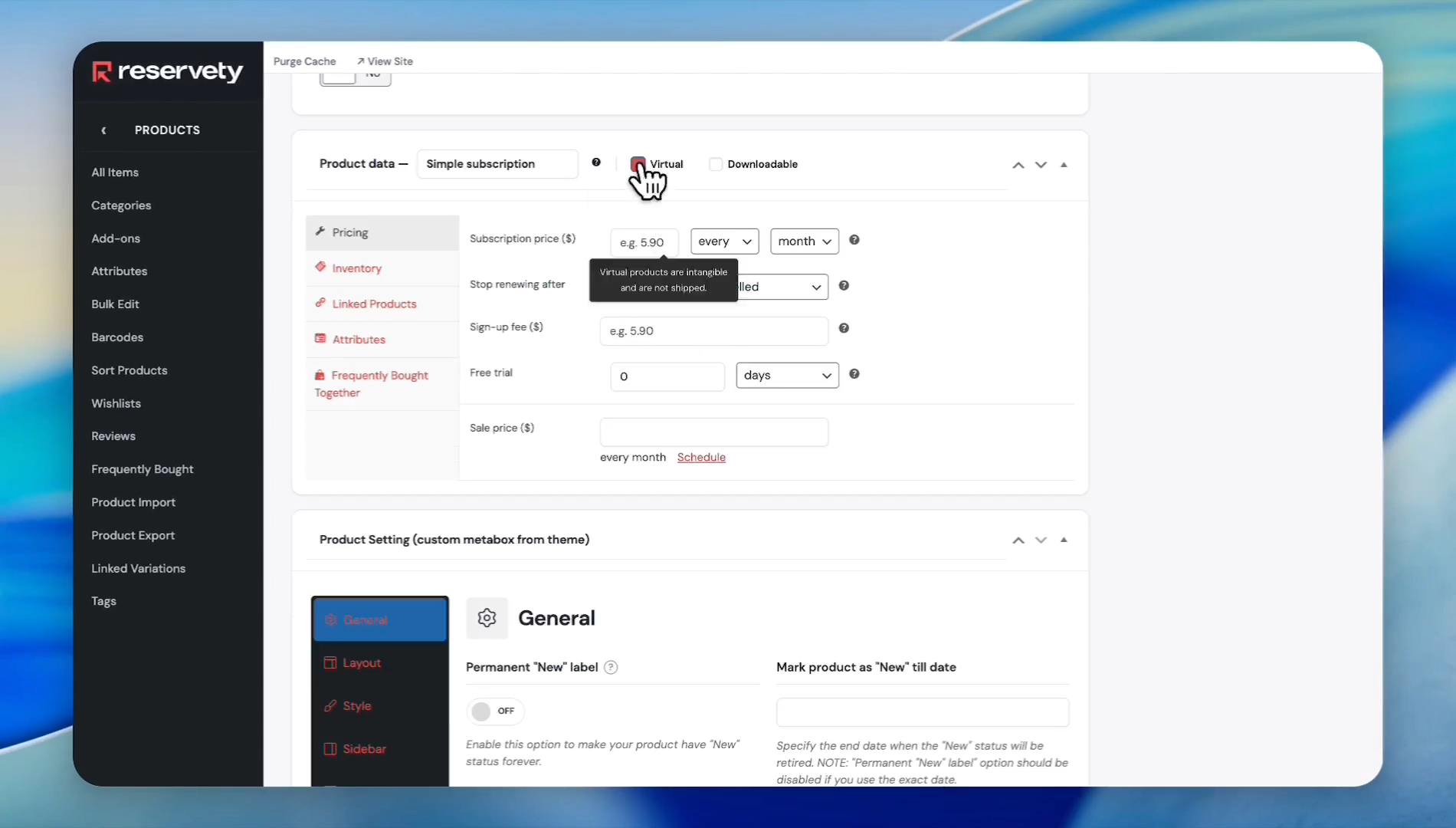 Select the Virtual checkbox since memberships do not require shipping