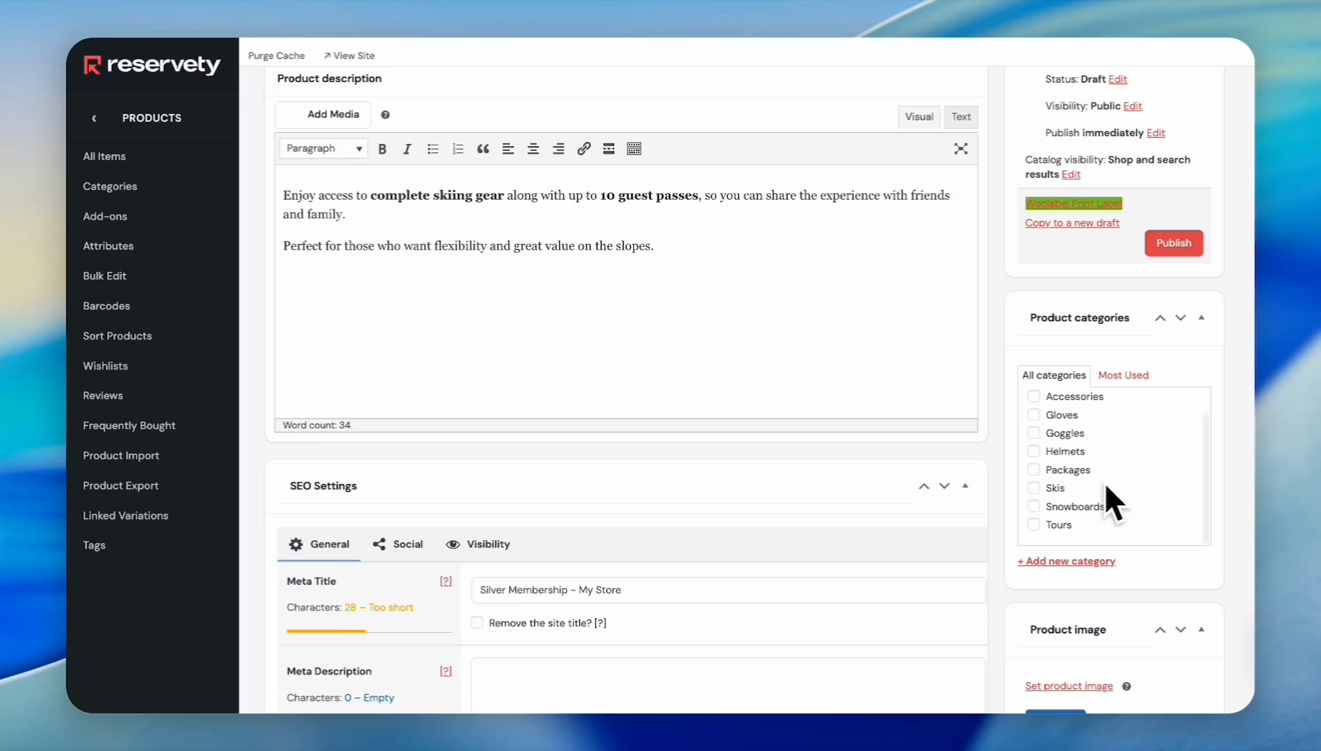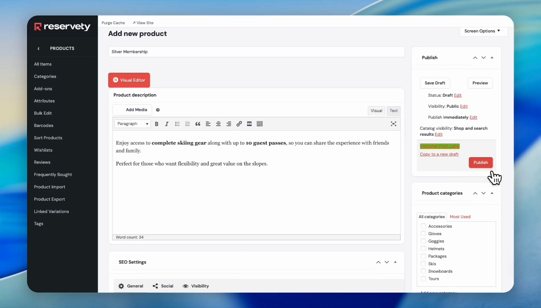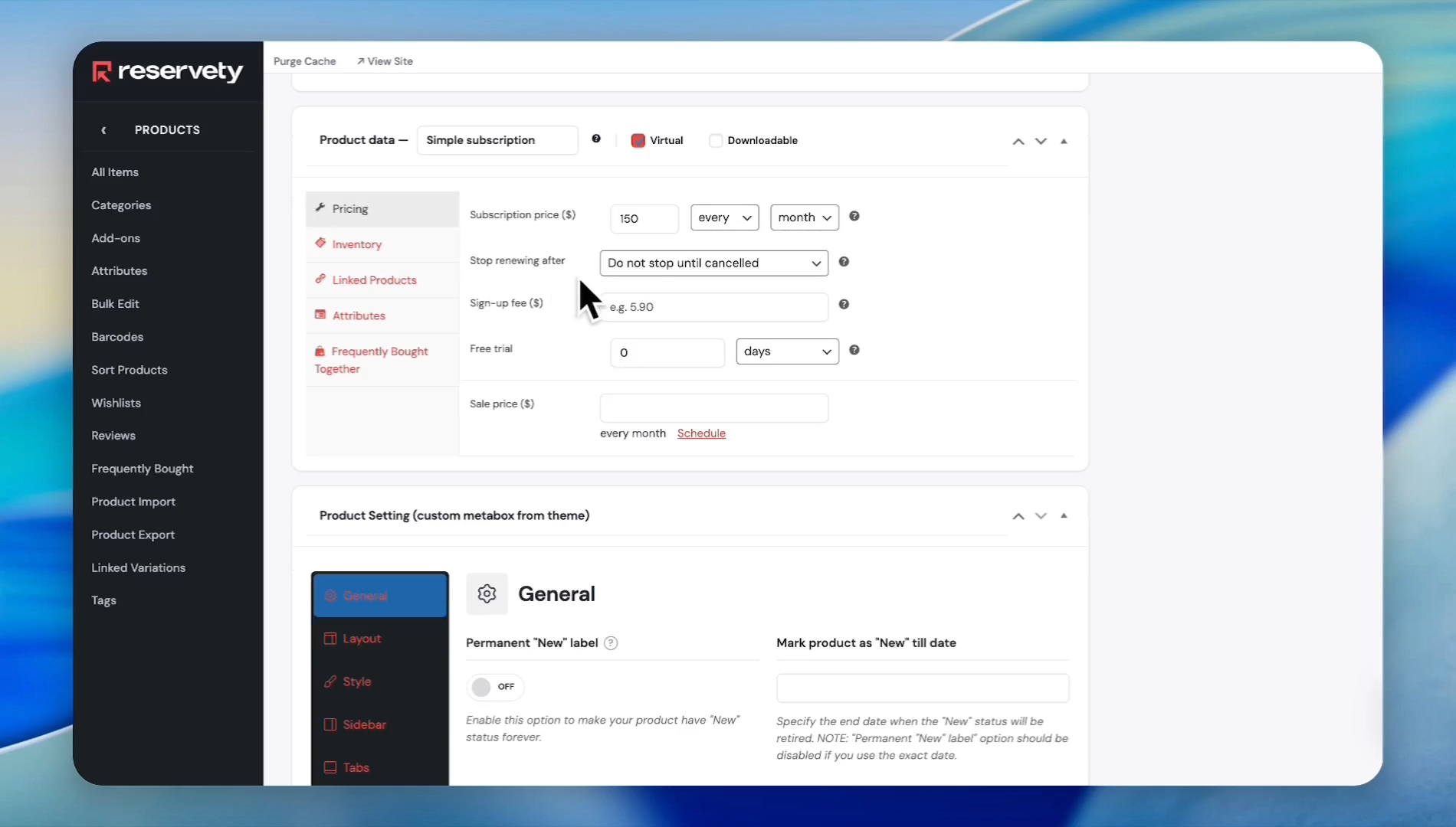 Select the Virtual checkbox since memberships do not require shipping