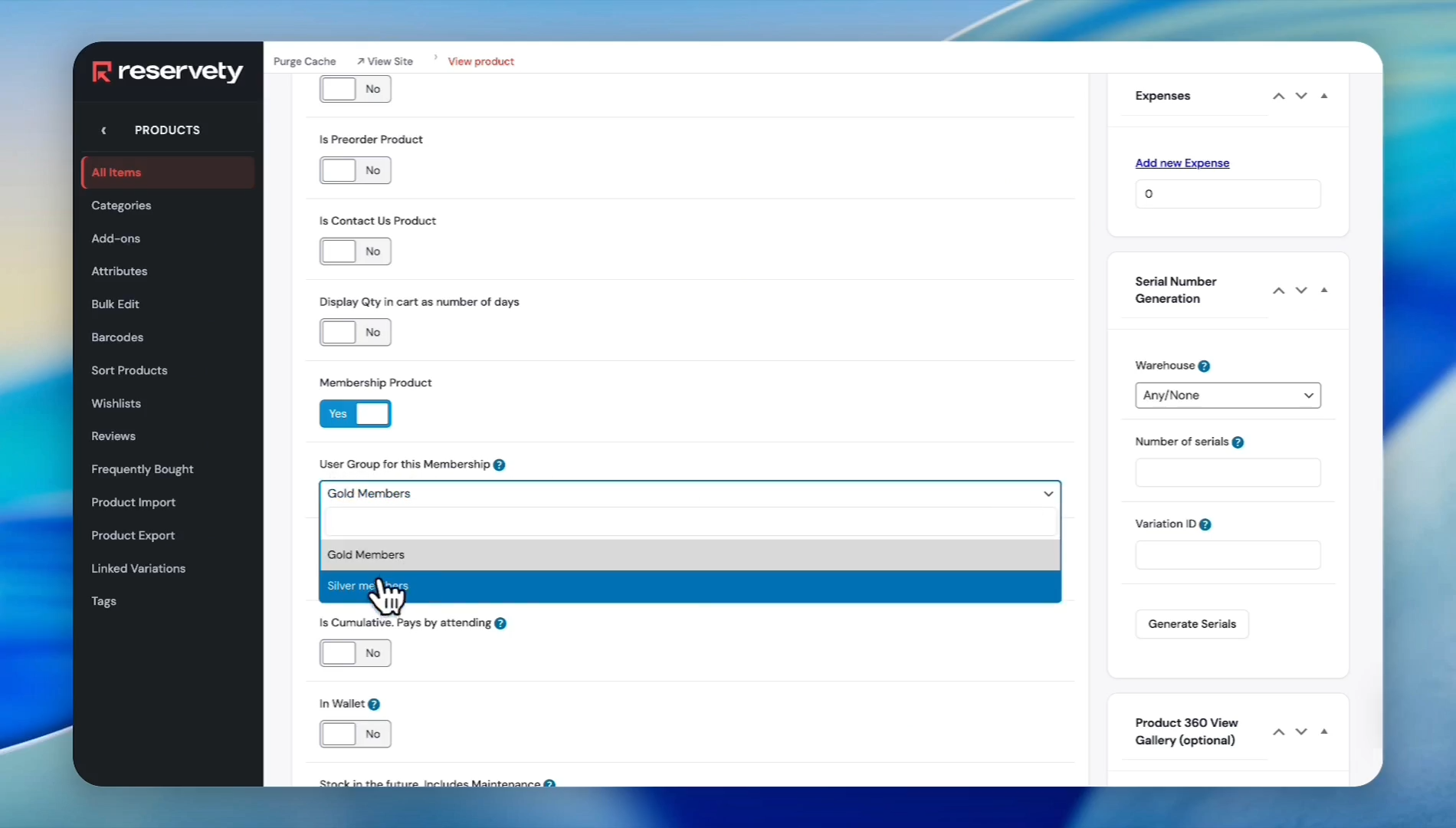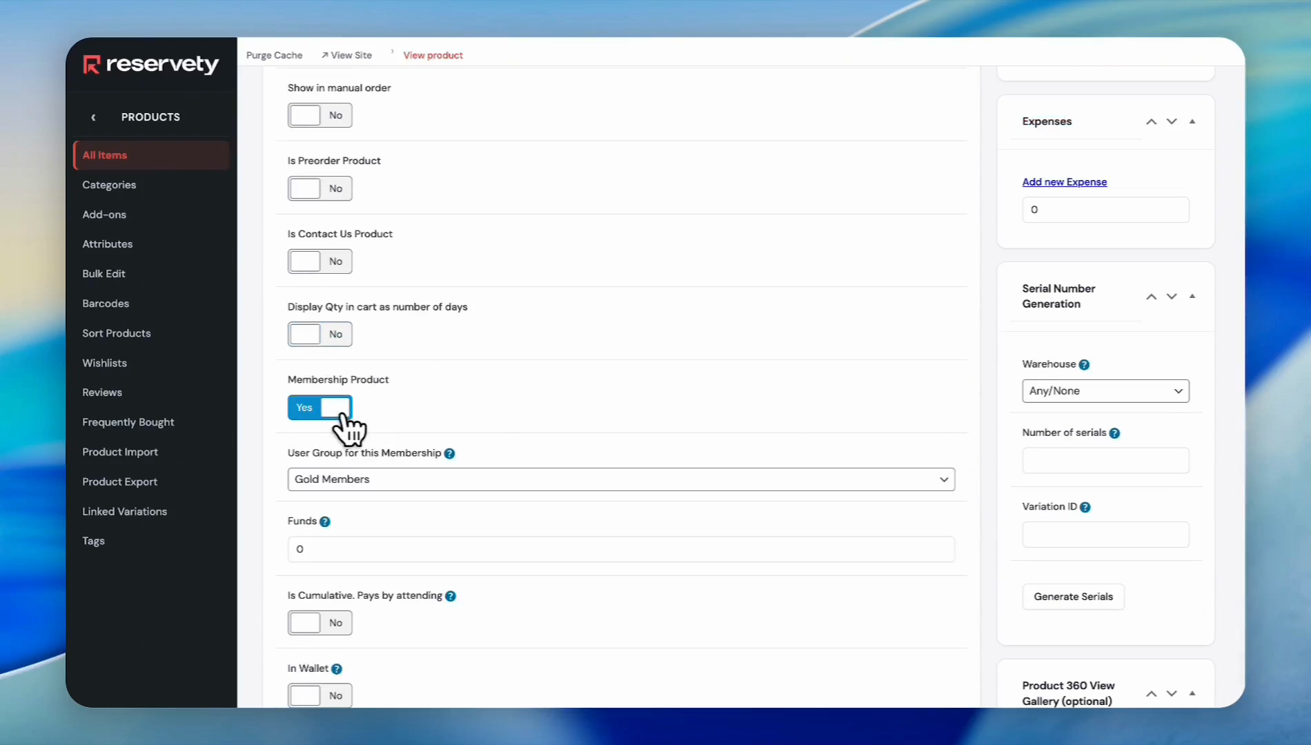Enable the Membership Product toggle