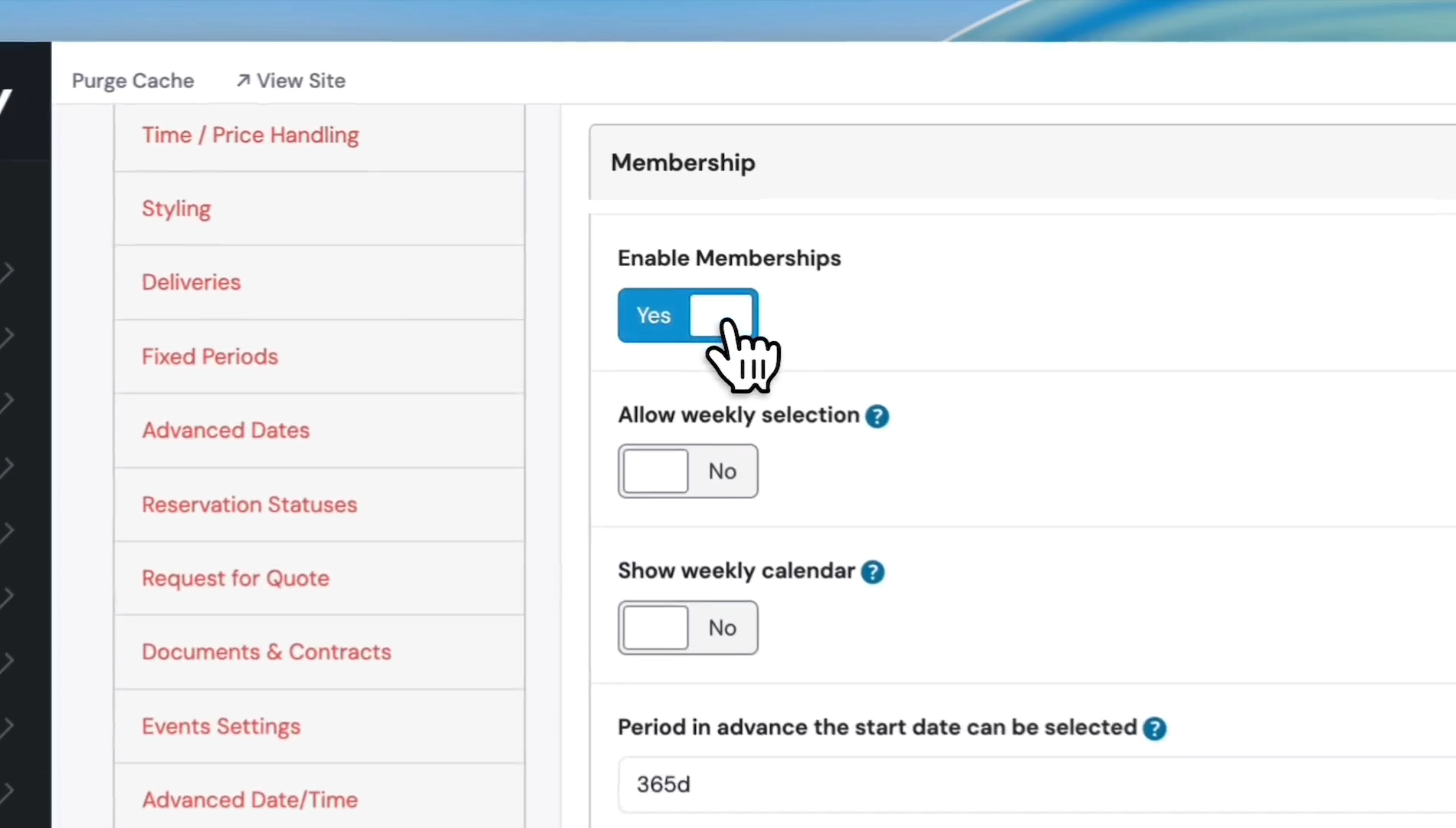 Switch the Enable Memberships toggle to Yes