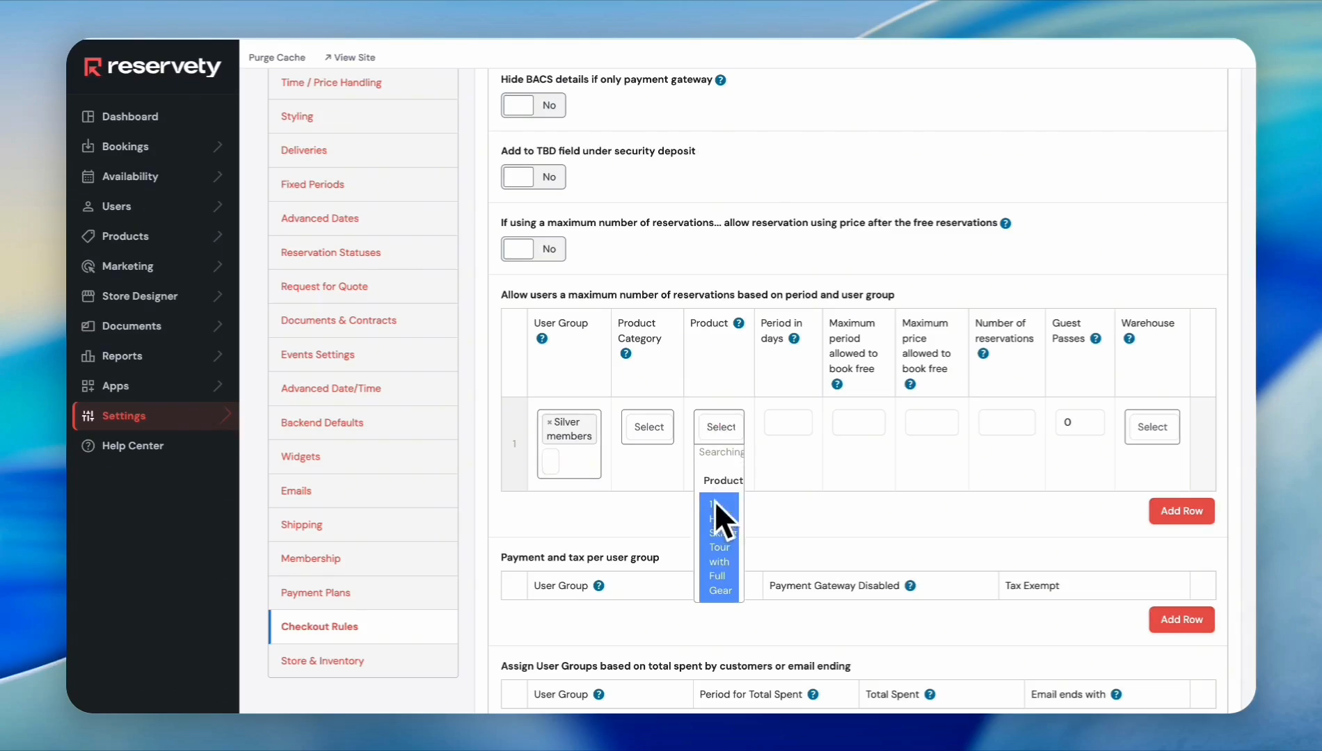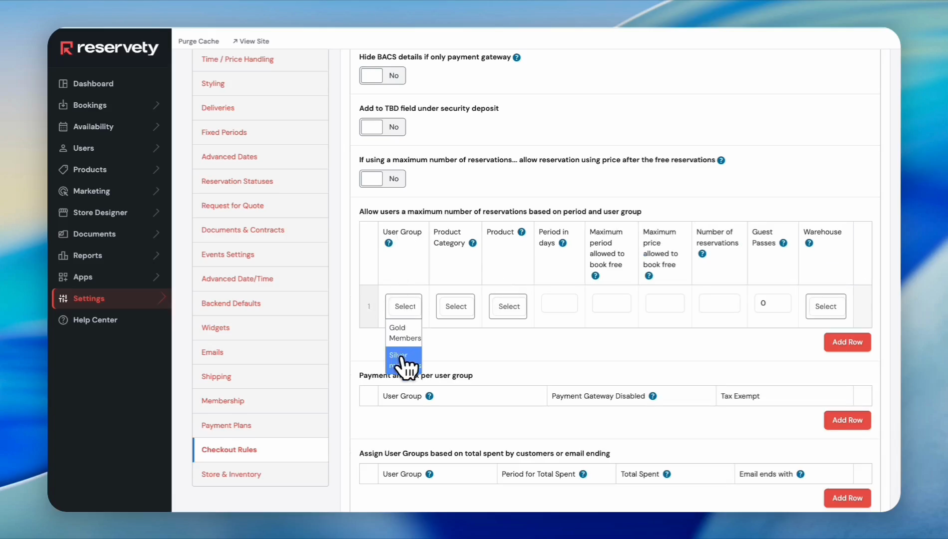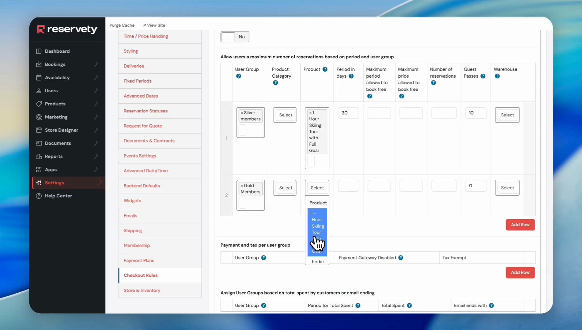 Learn how to configure membership tiers, create virtual subscription products, and assign guest pass rules by user group in your Reservety dashboard.