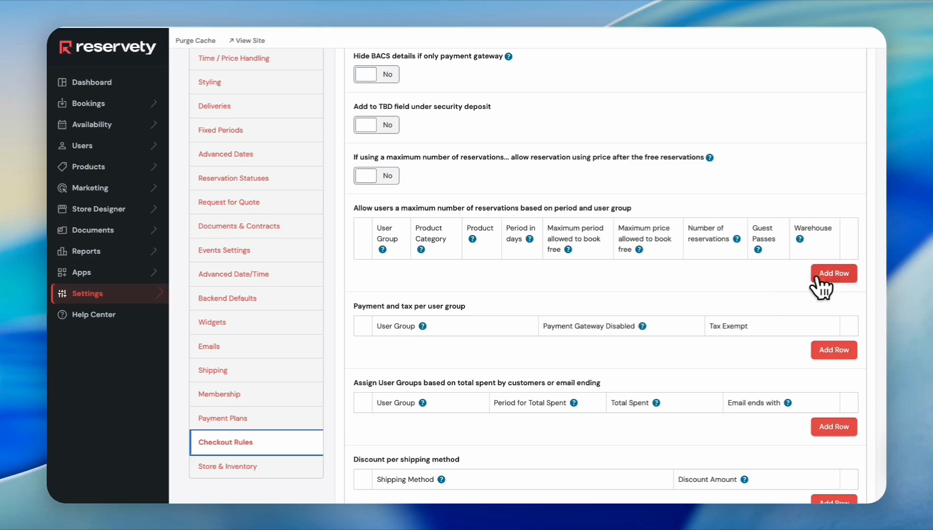 Scroll down and click Checkout Rules