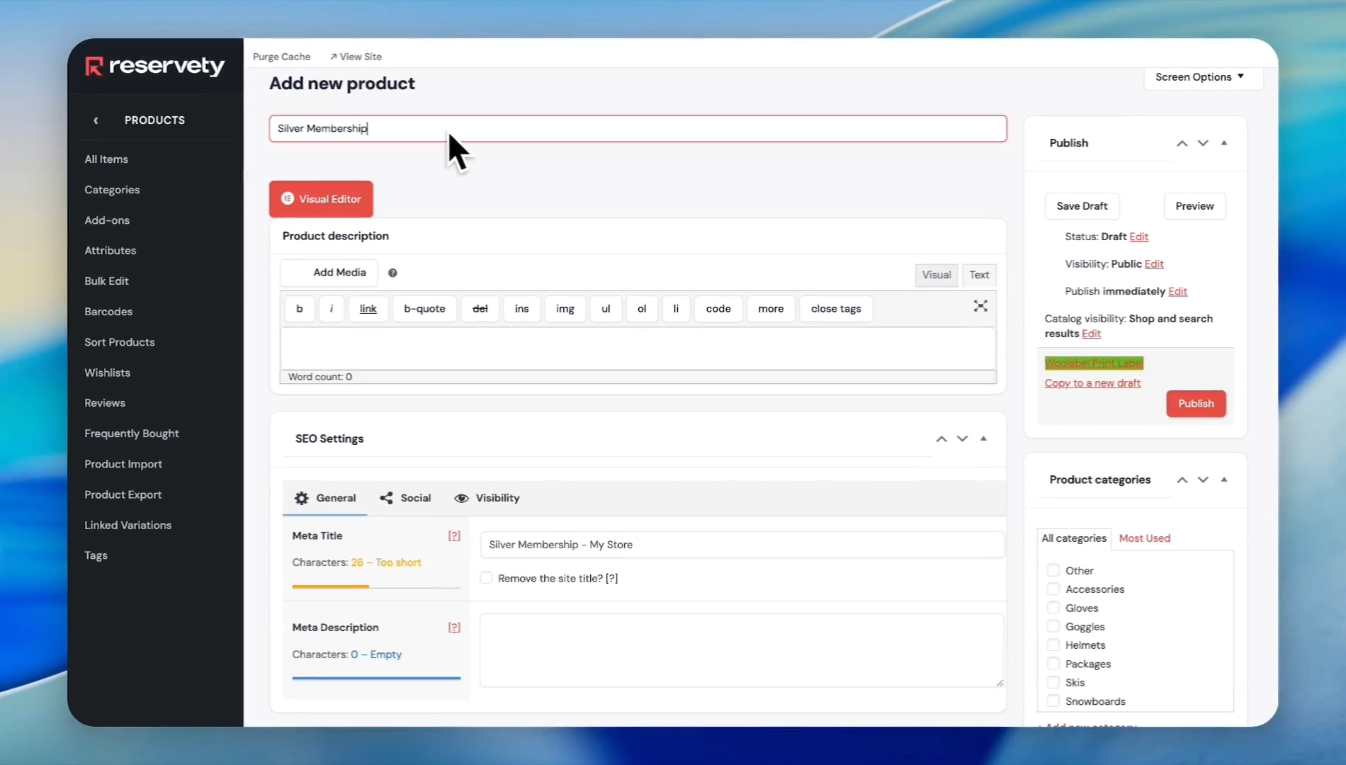Enter Silver Membership as the product name