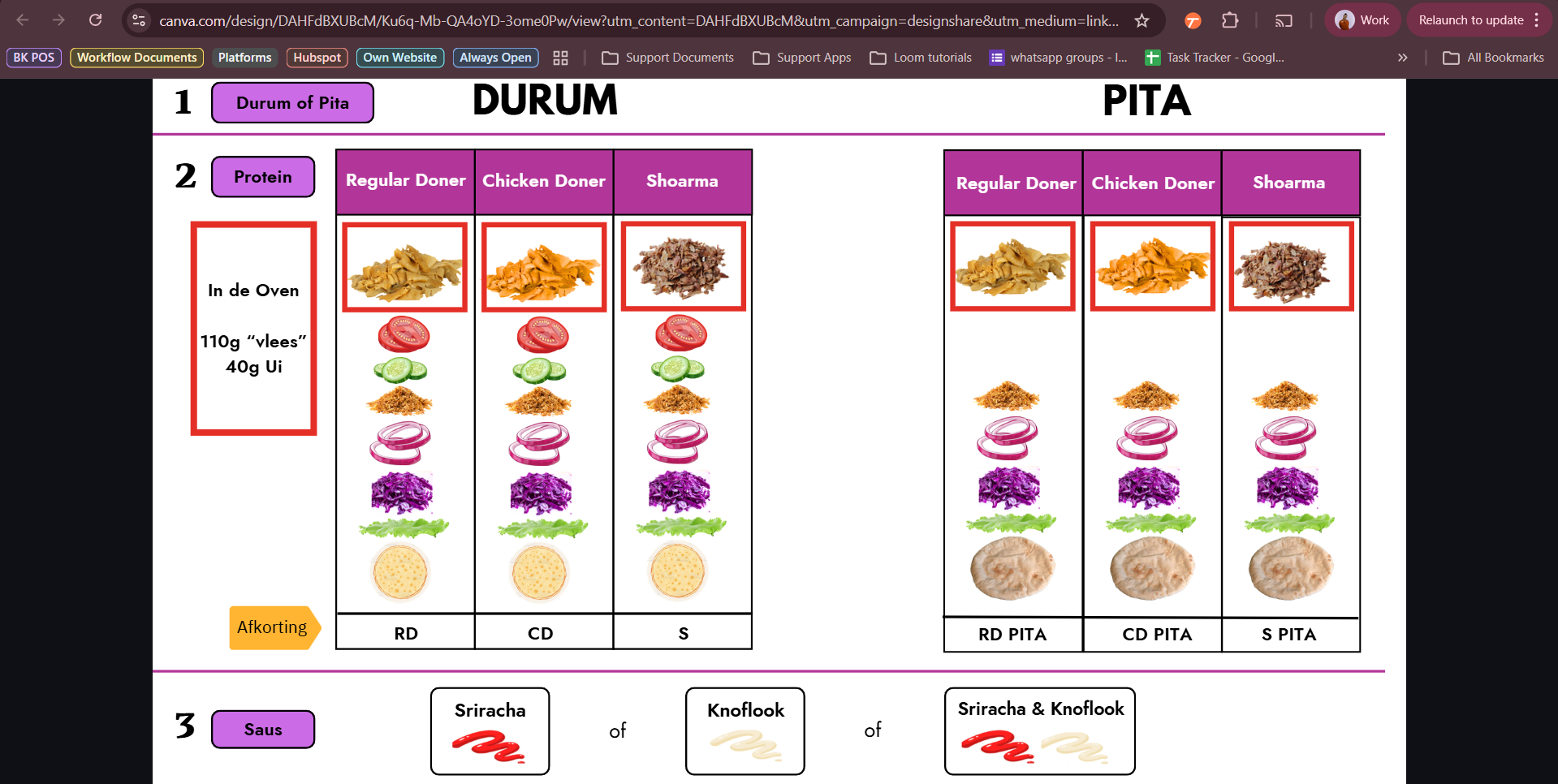 Om de "recipe sheets" te kunnen bekijken, kun je klikken op de brand-naam.