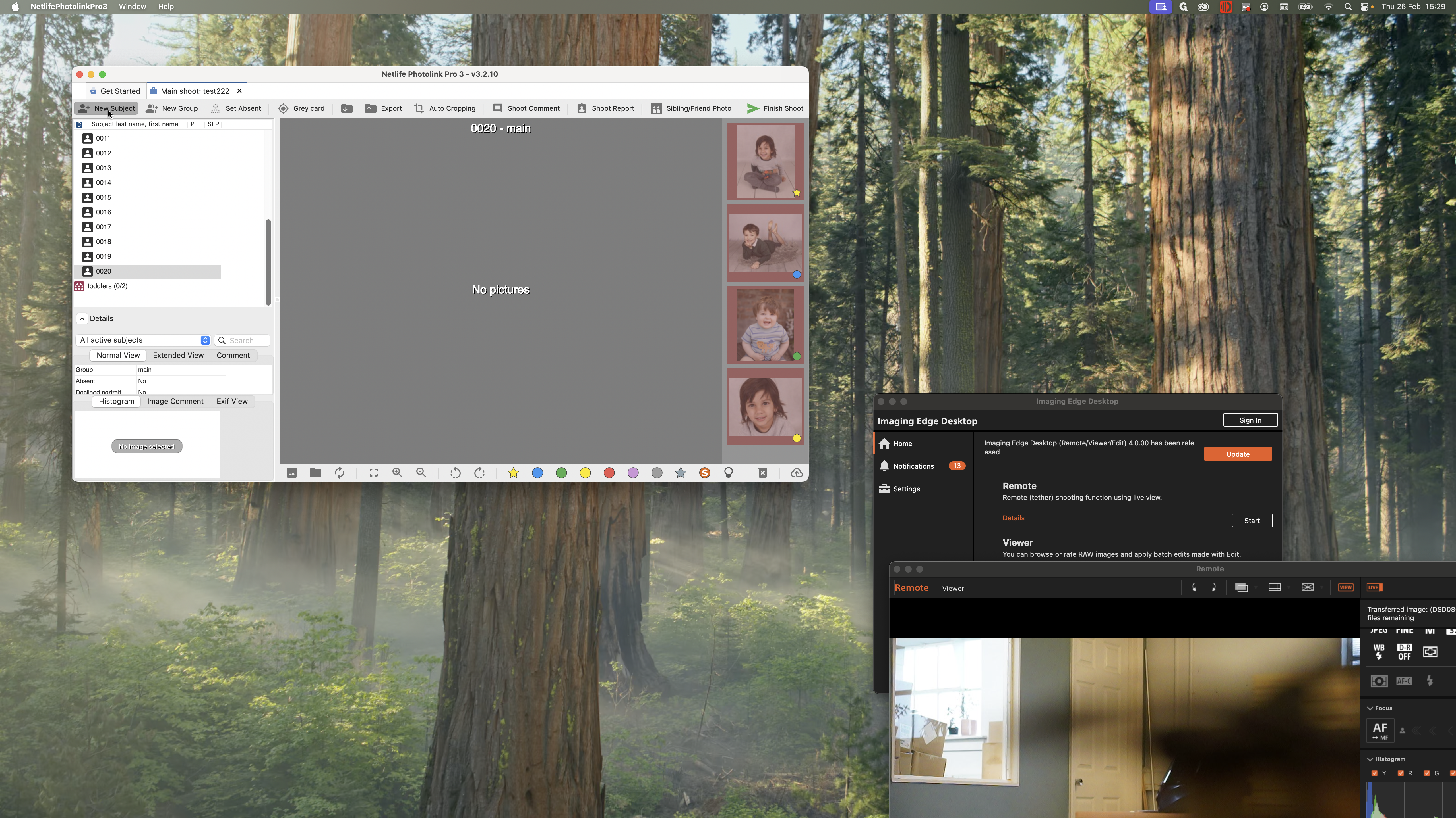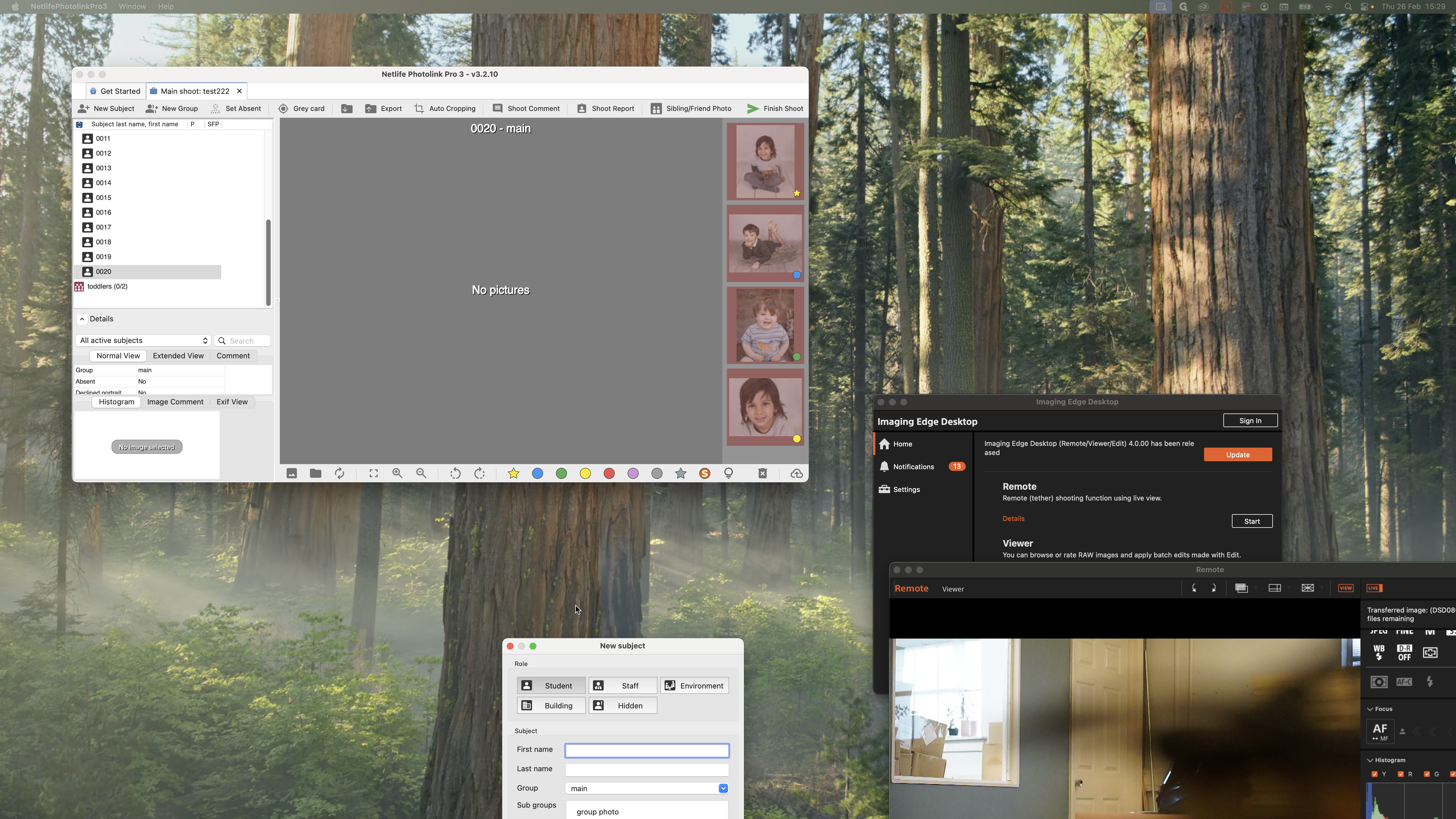 For example, I am going to photograph my first child. My camera is connected. When I take a photo, it should go directly to my child member number one. After taking the photos, move on to the next child. Click on child number two and take their photos.