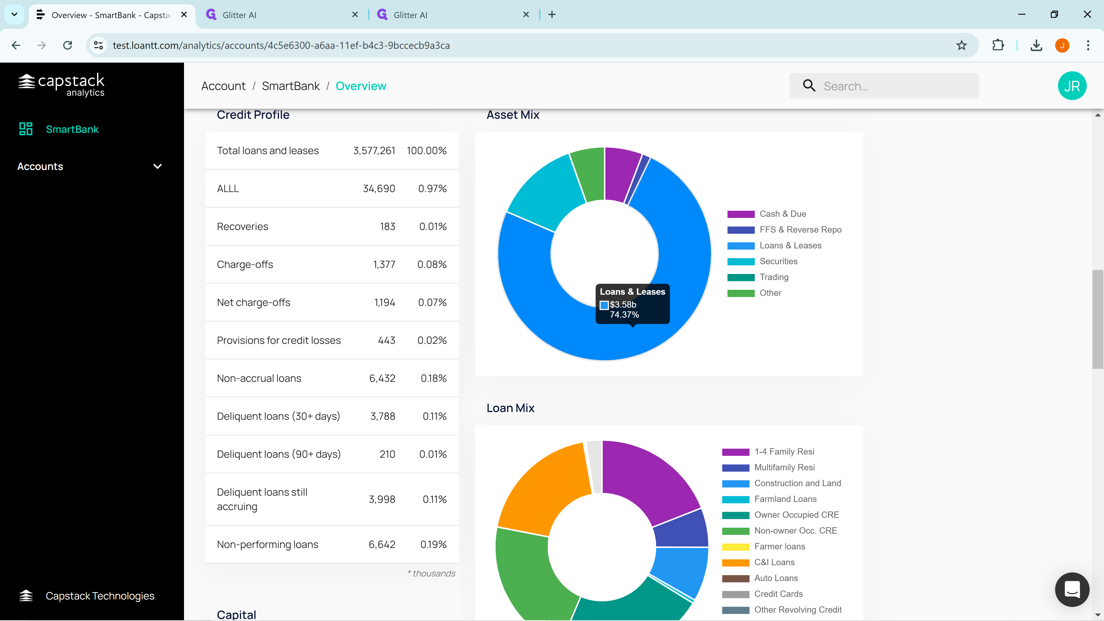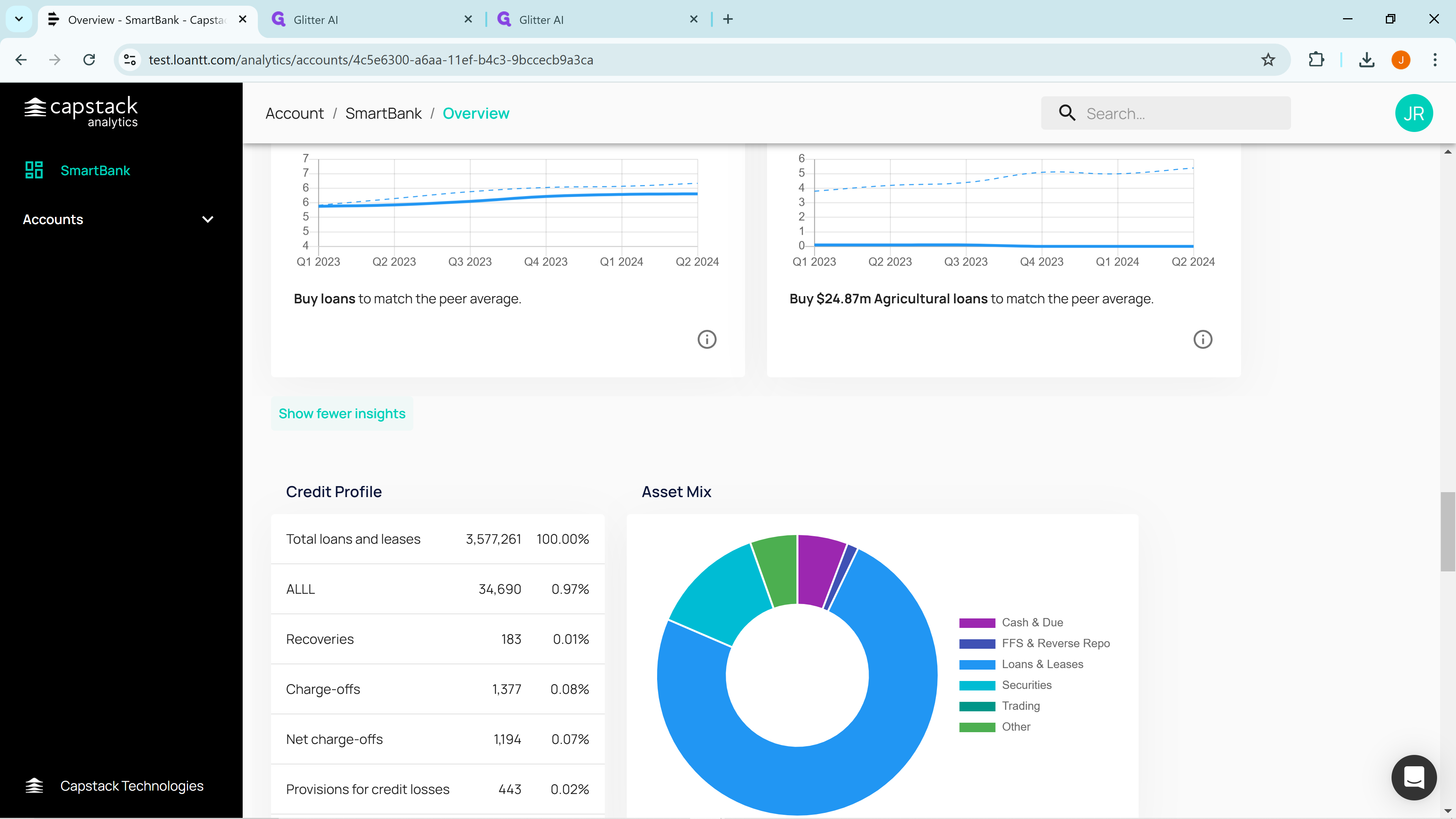 Here you are at 340% total capital in commercial real estate loans. That is above the FDIC upper guideline of 300% total capital in CRE. In this case, Capstack would identify you as a potential seller of commercial real estate loans. We generate many insights but only display the top three.