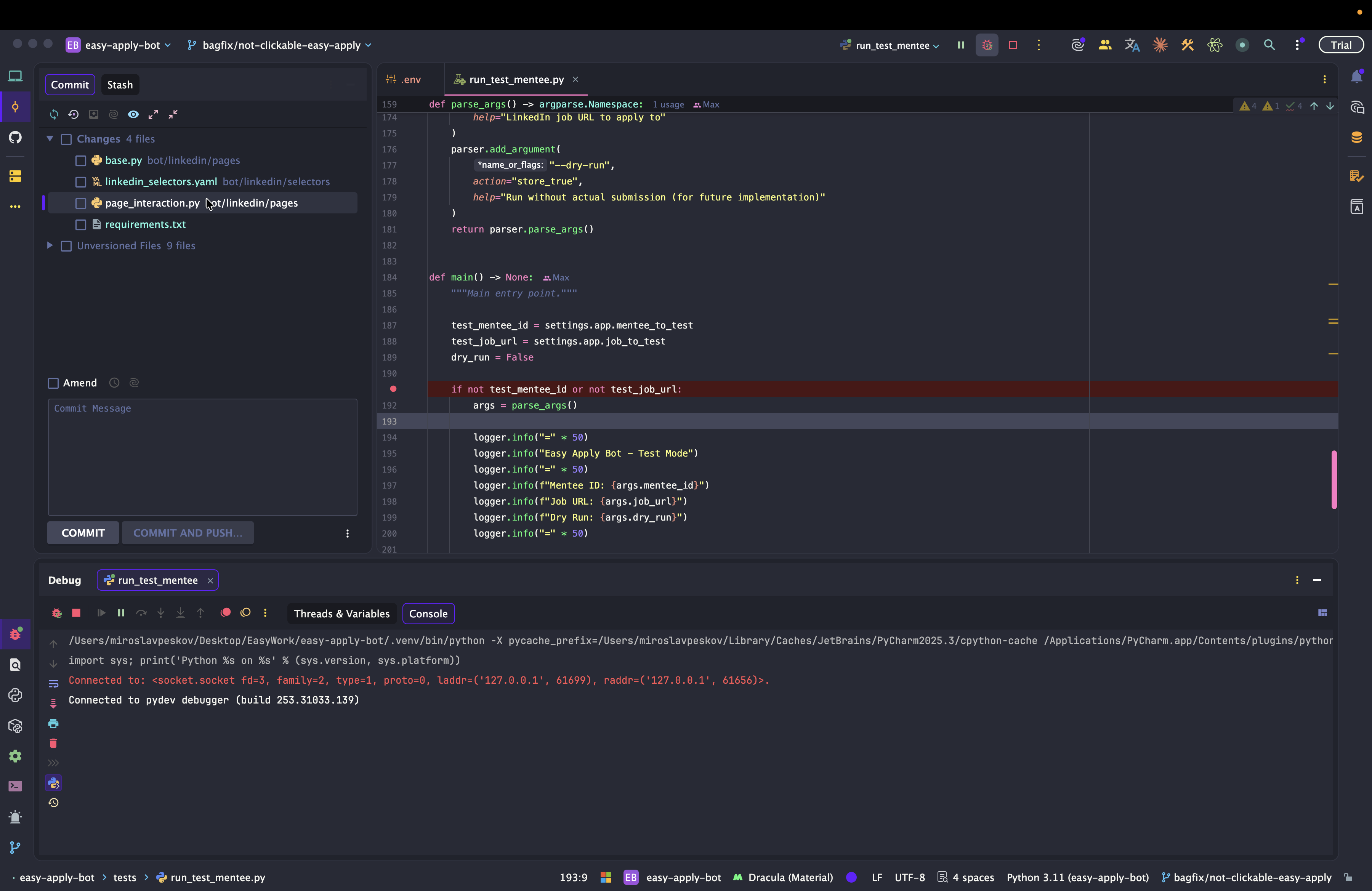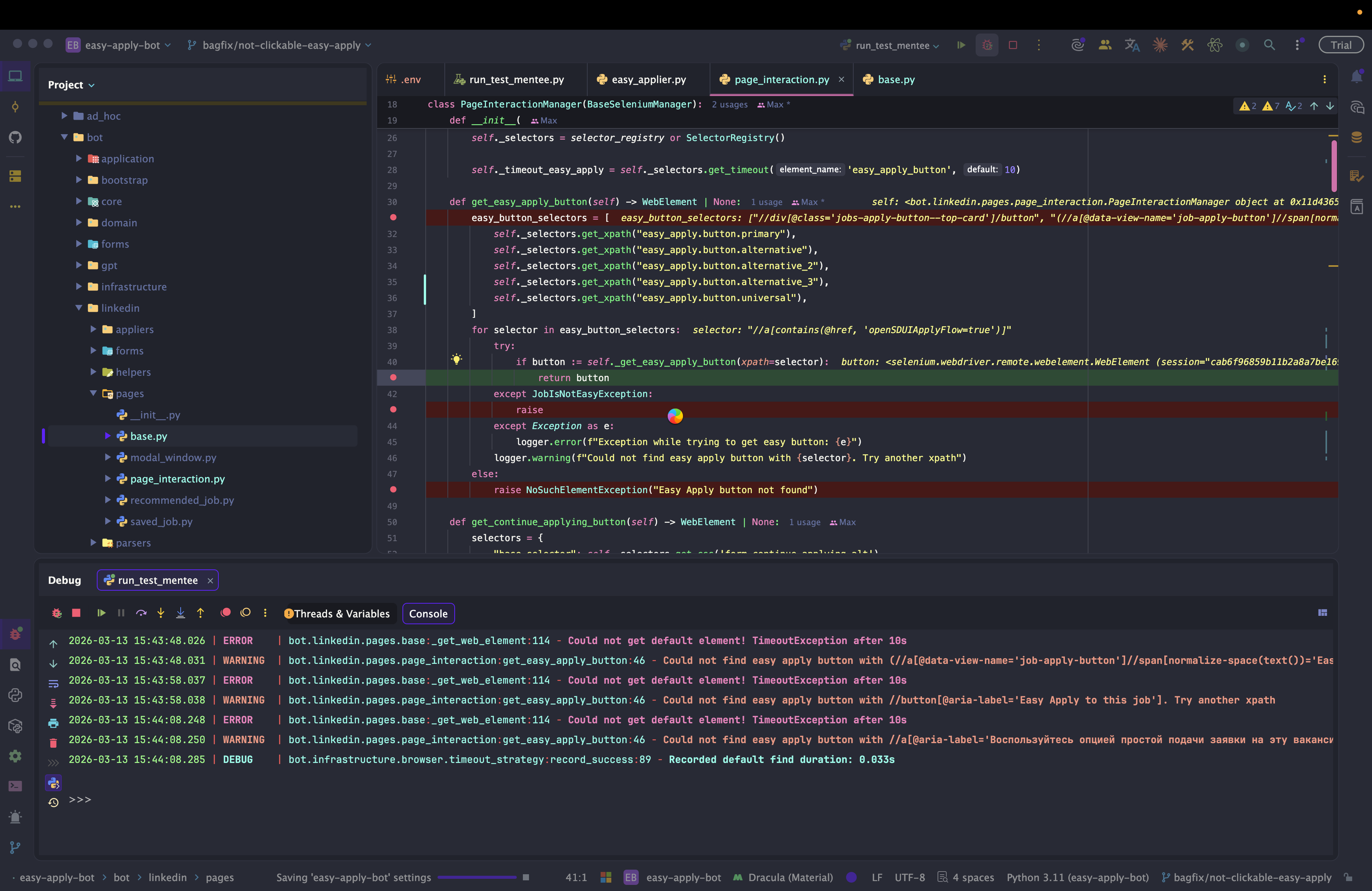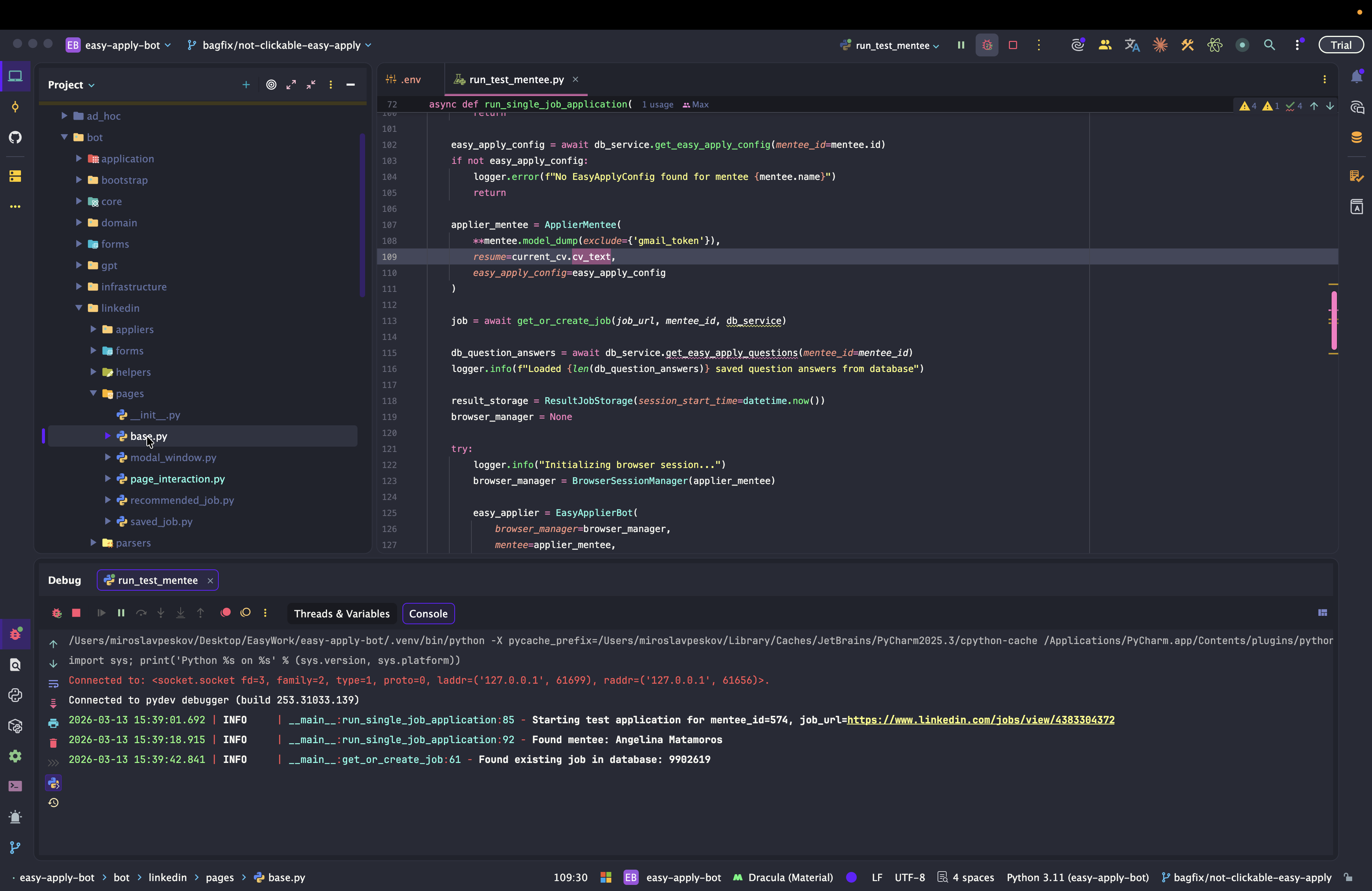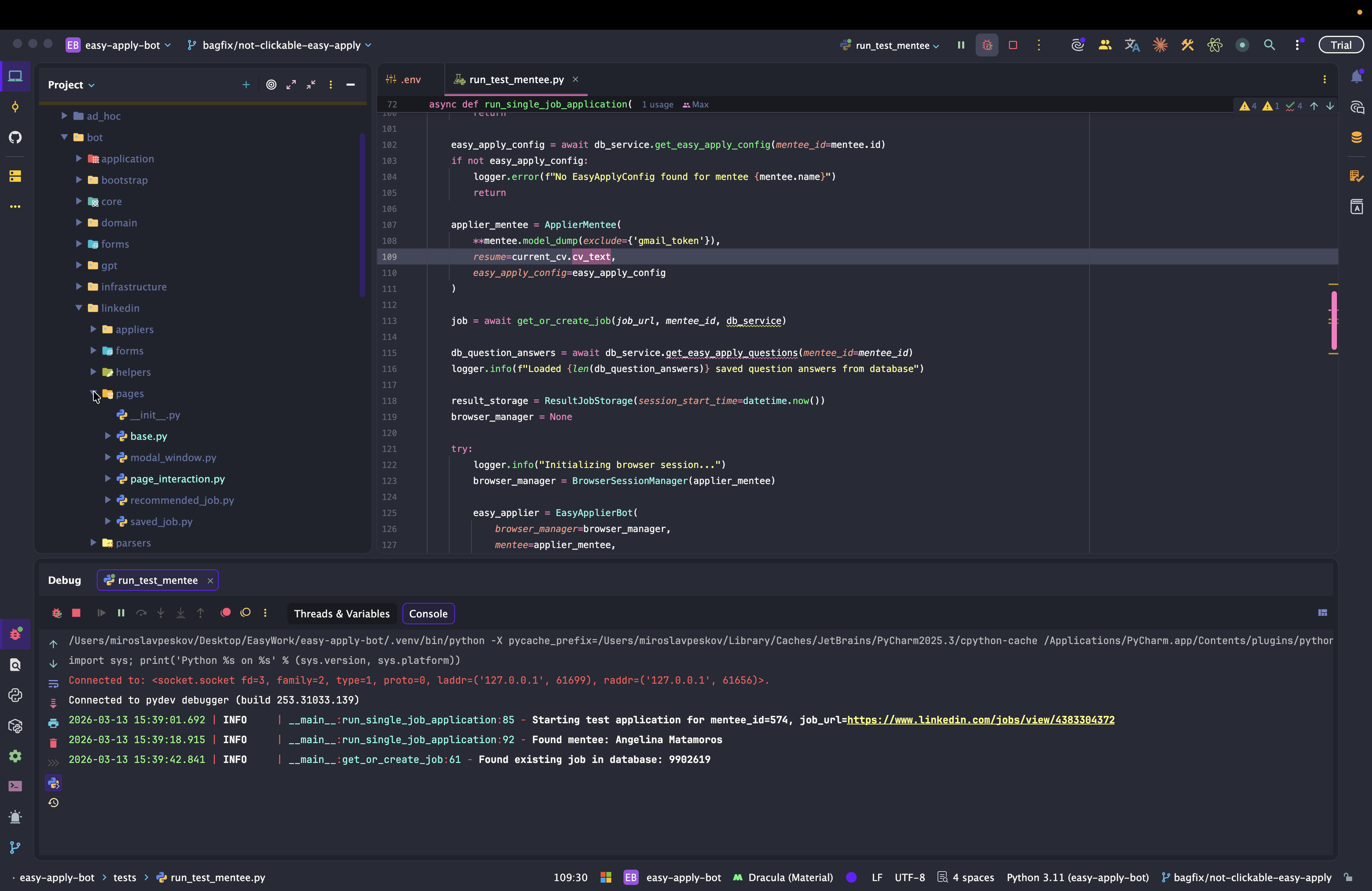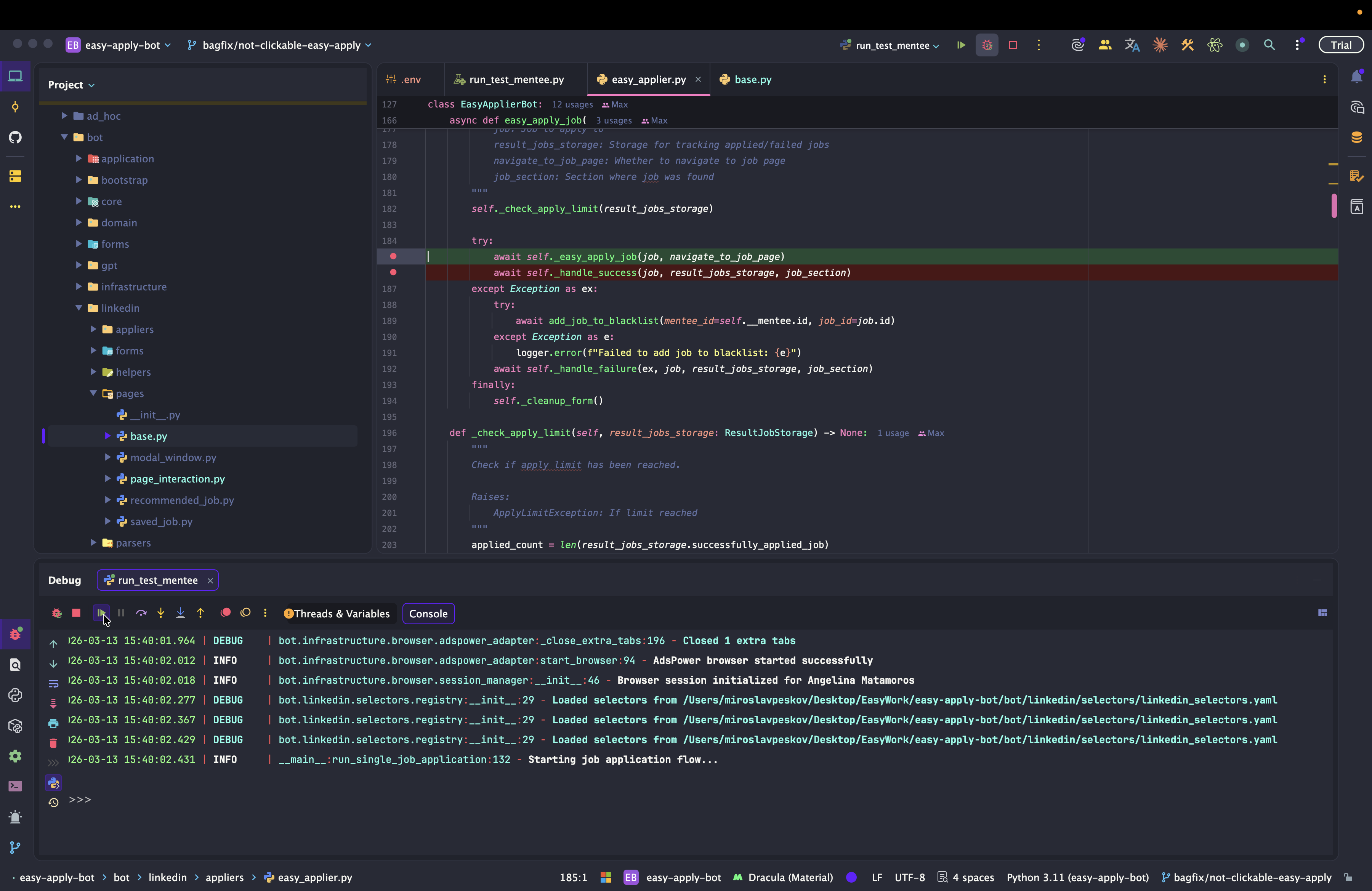 Dev: как отлаживать Easy Apply Bot