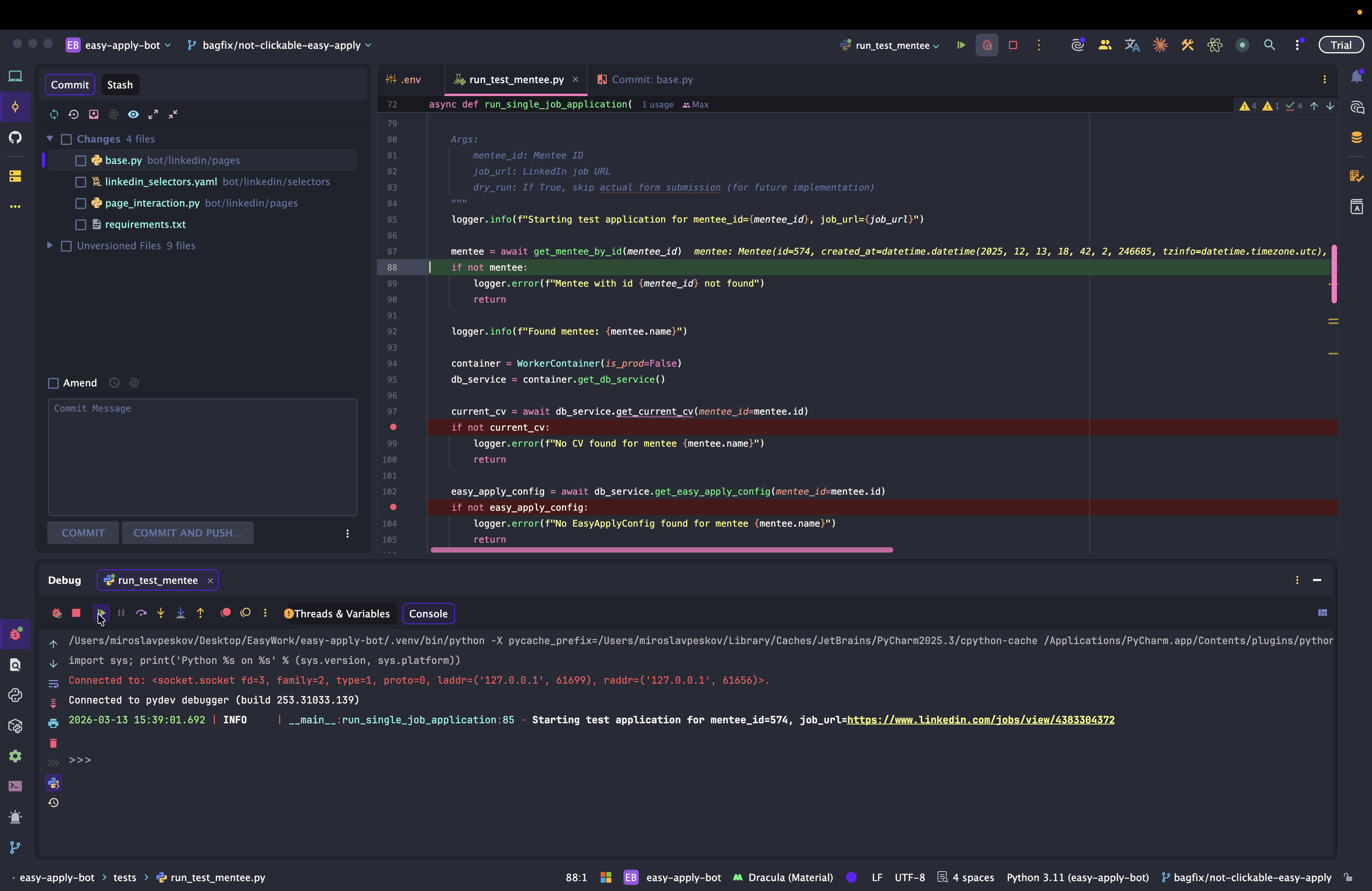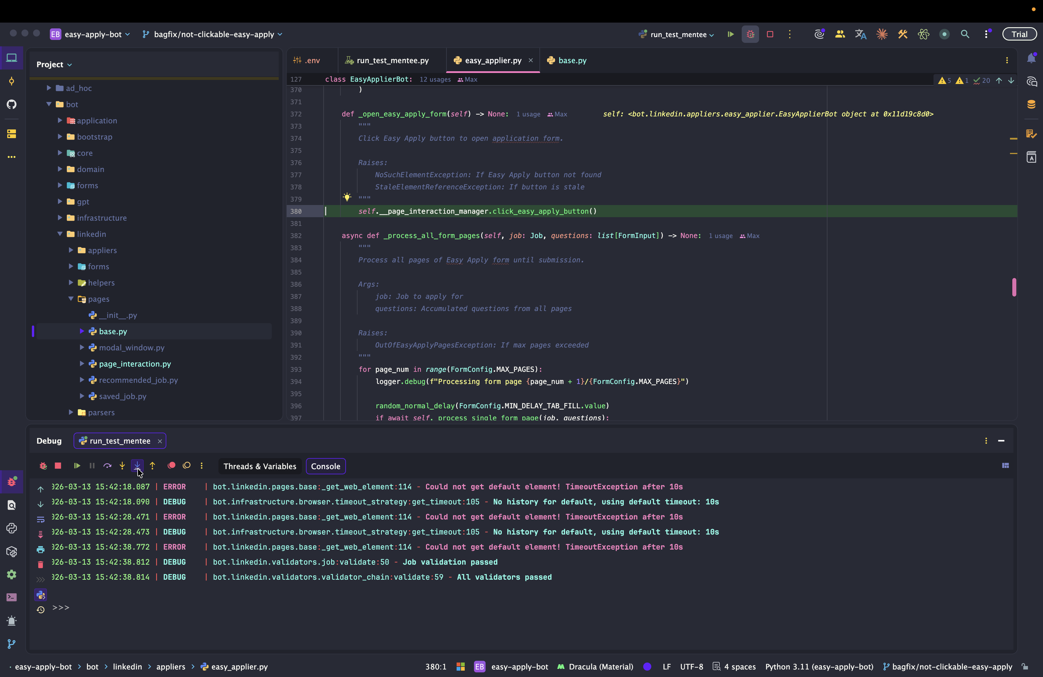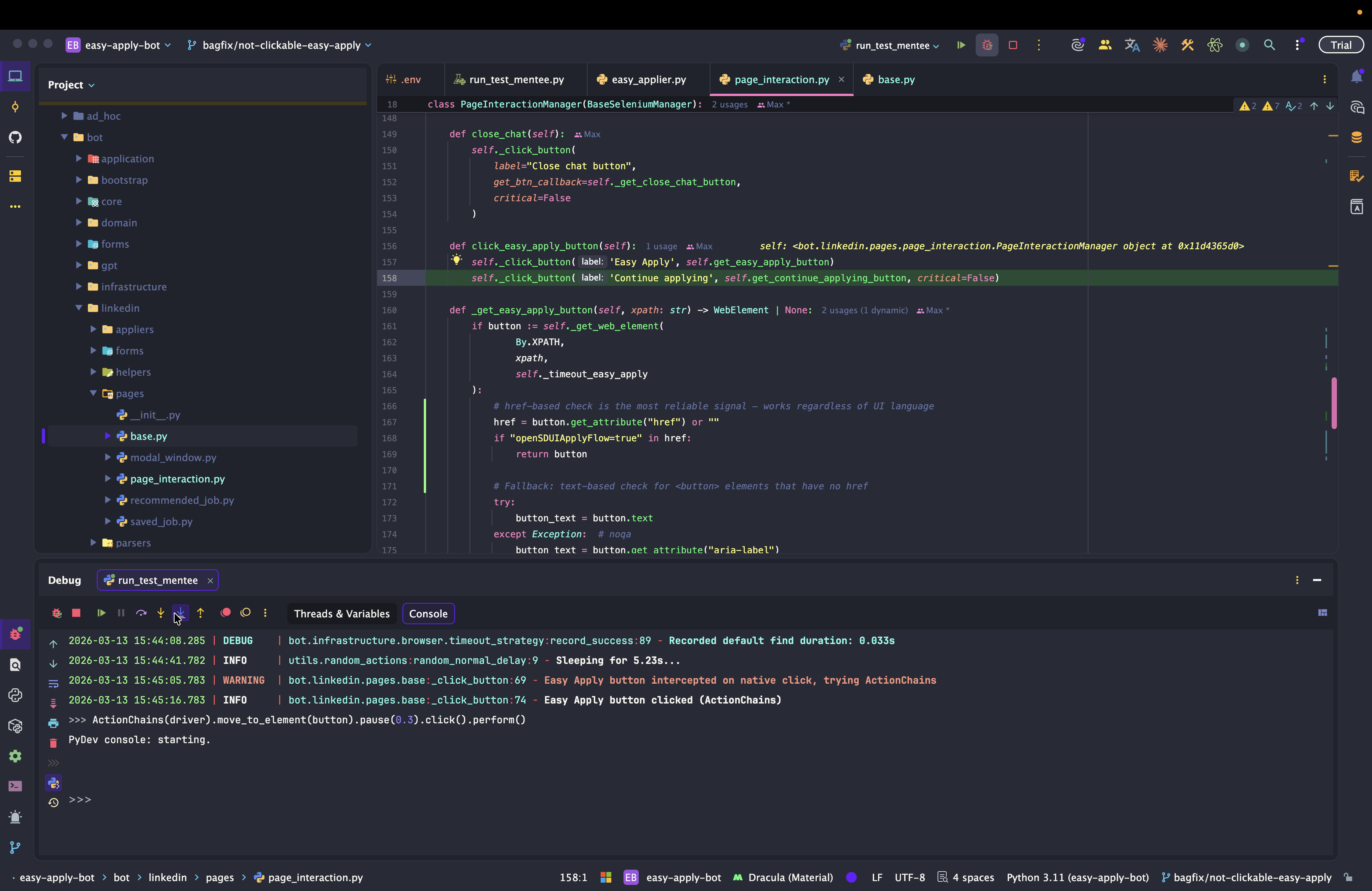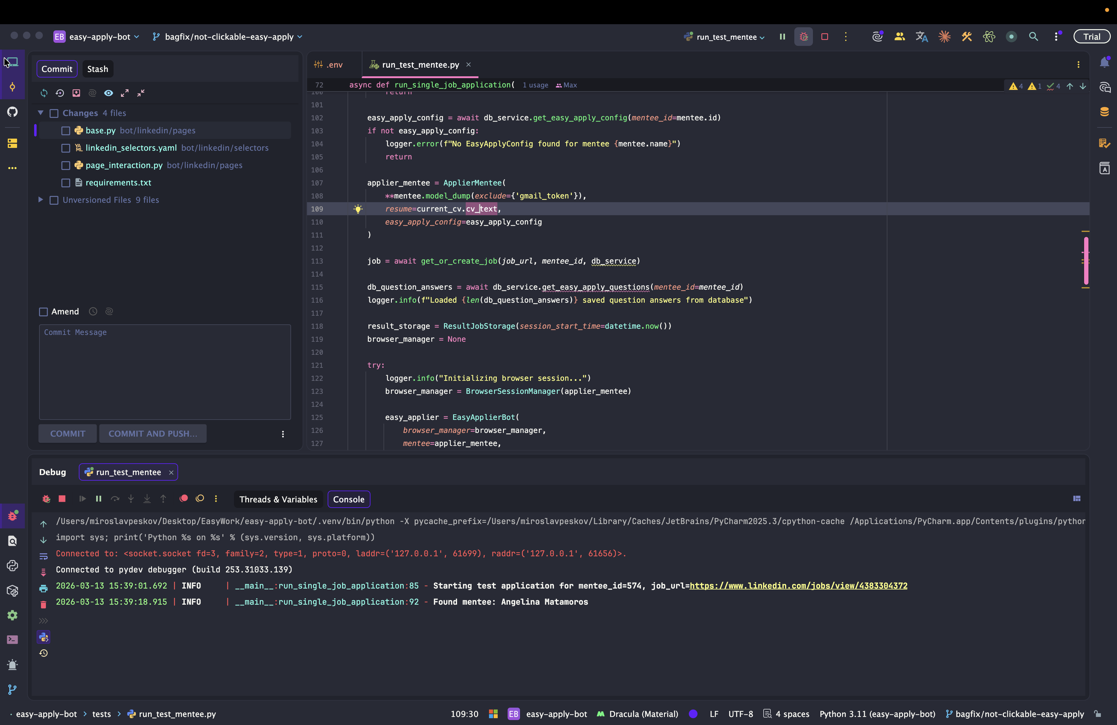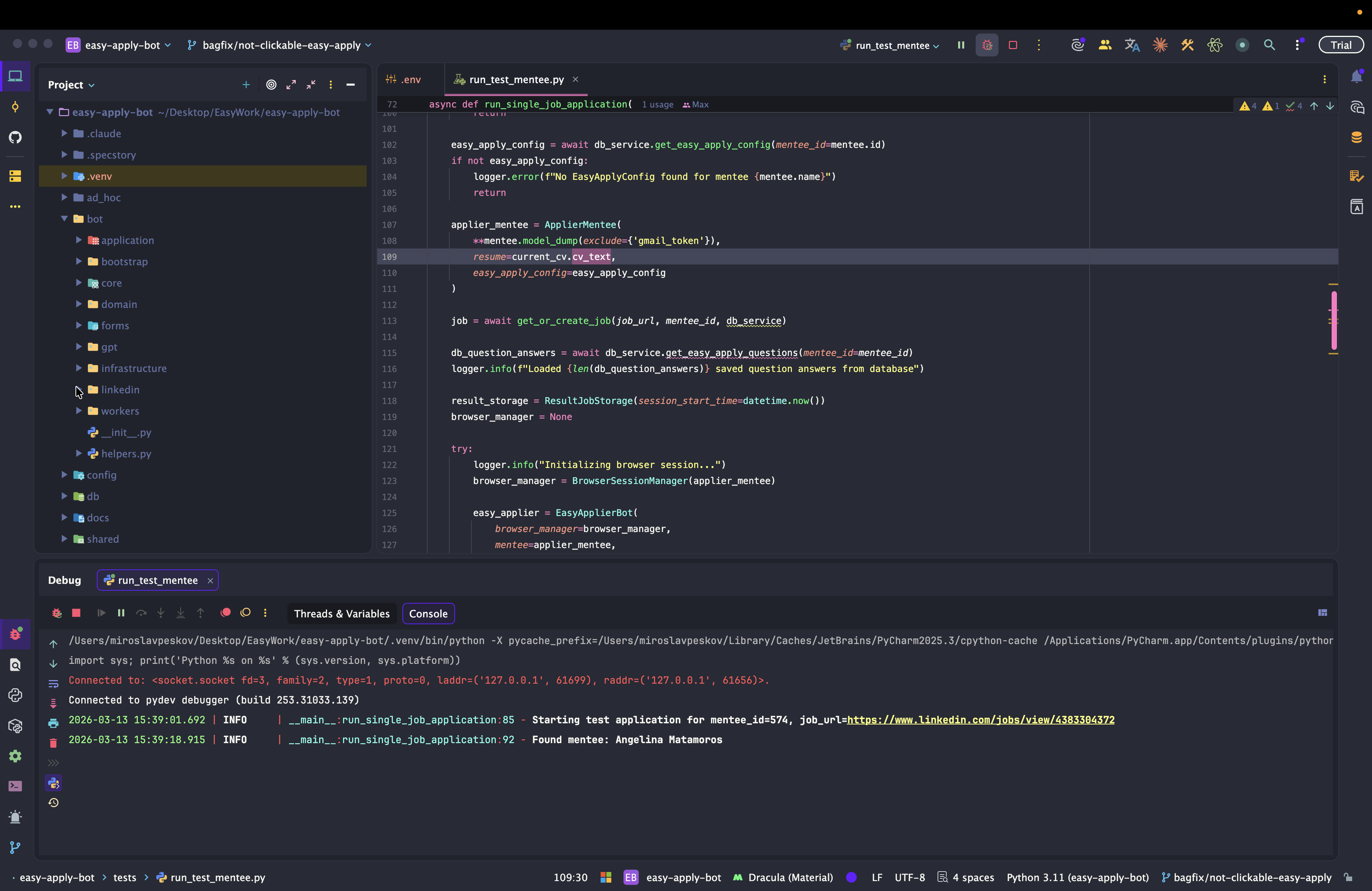Dev: как отлаживать Easy Apply Bot