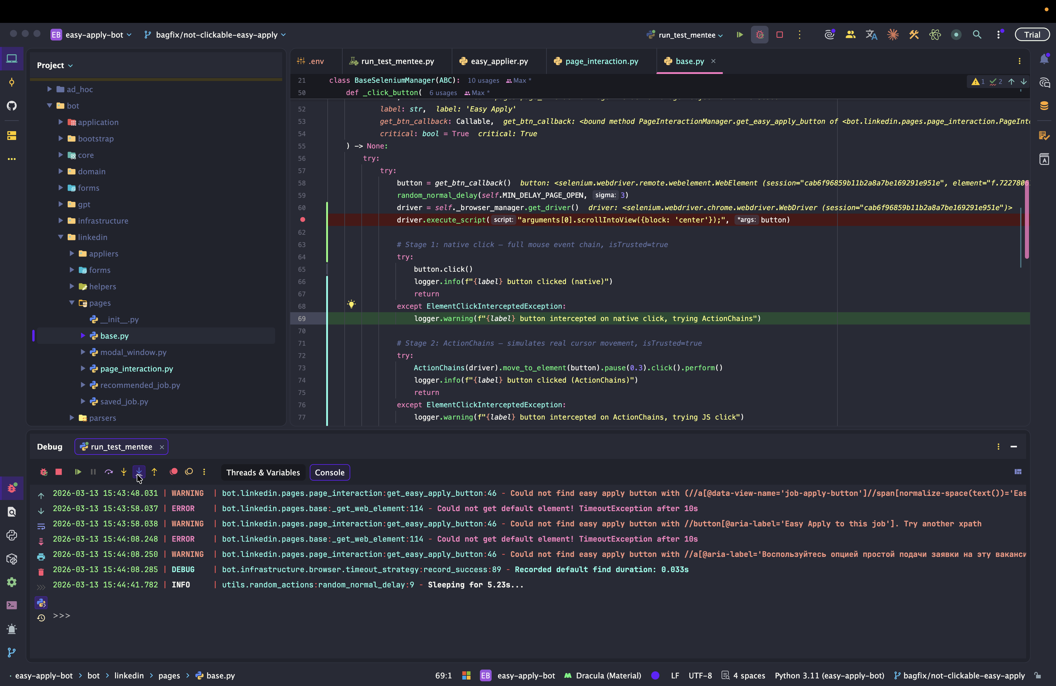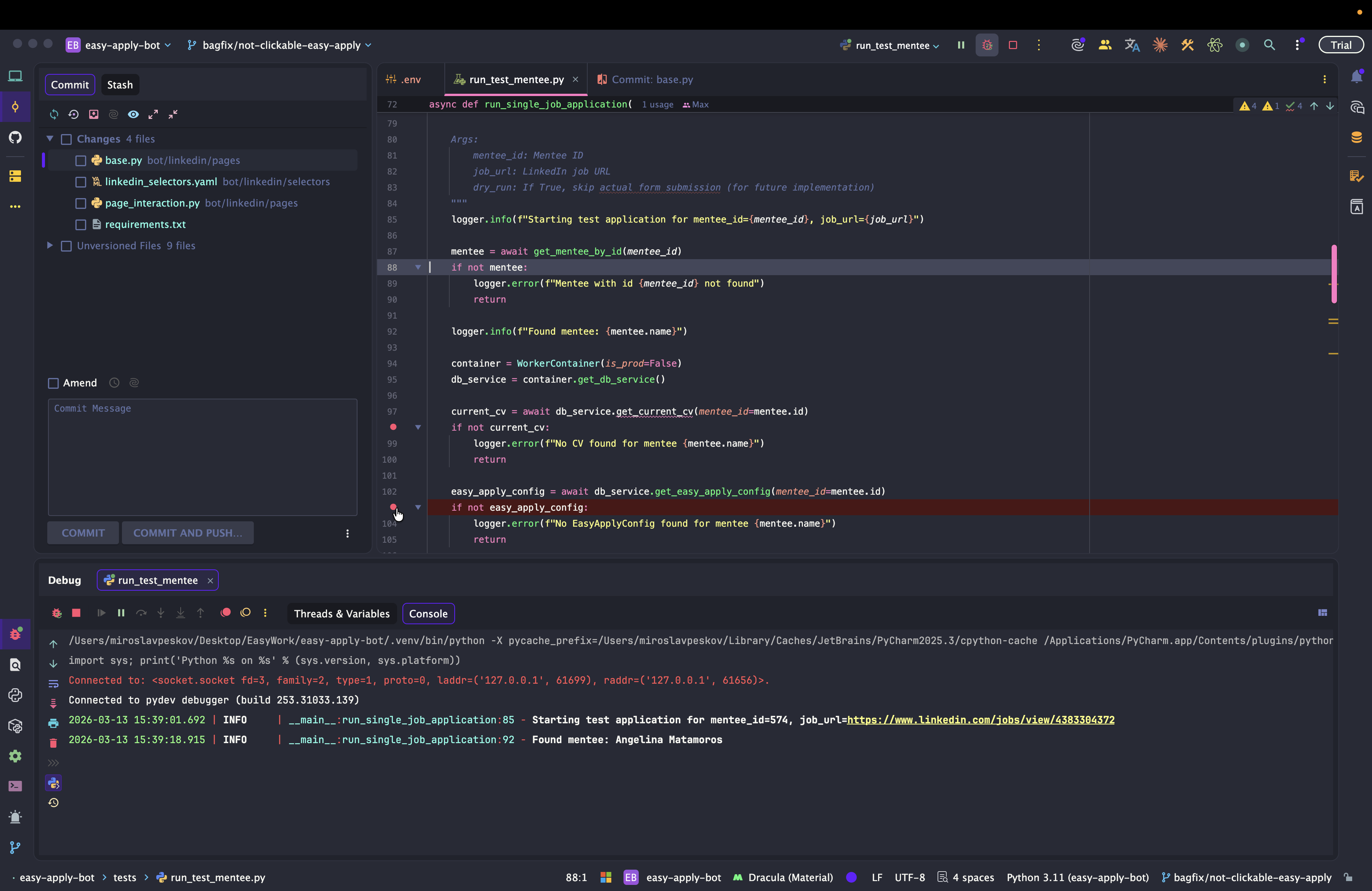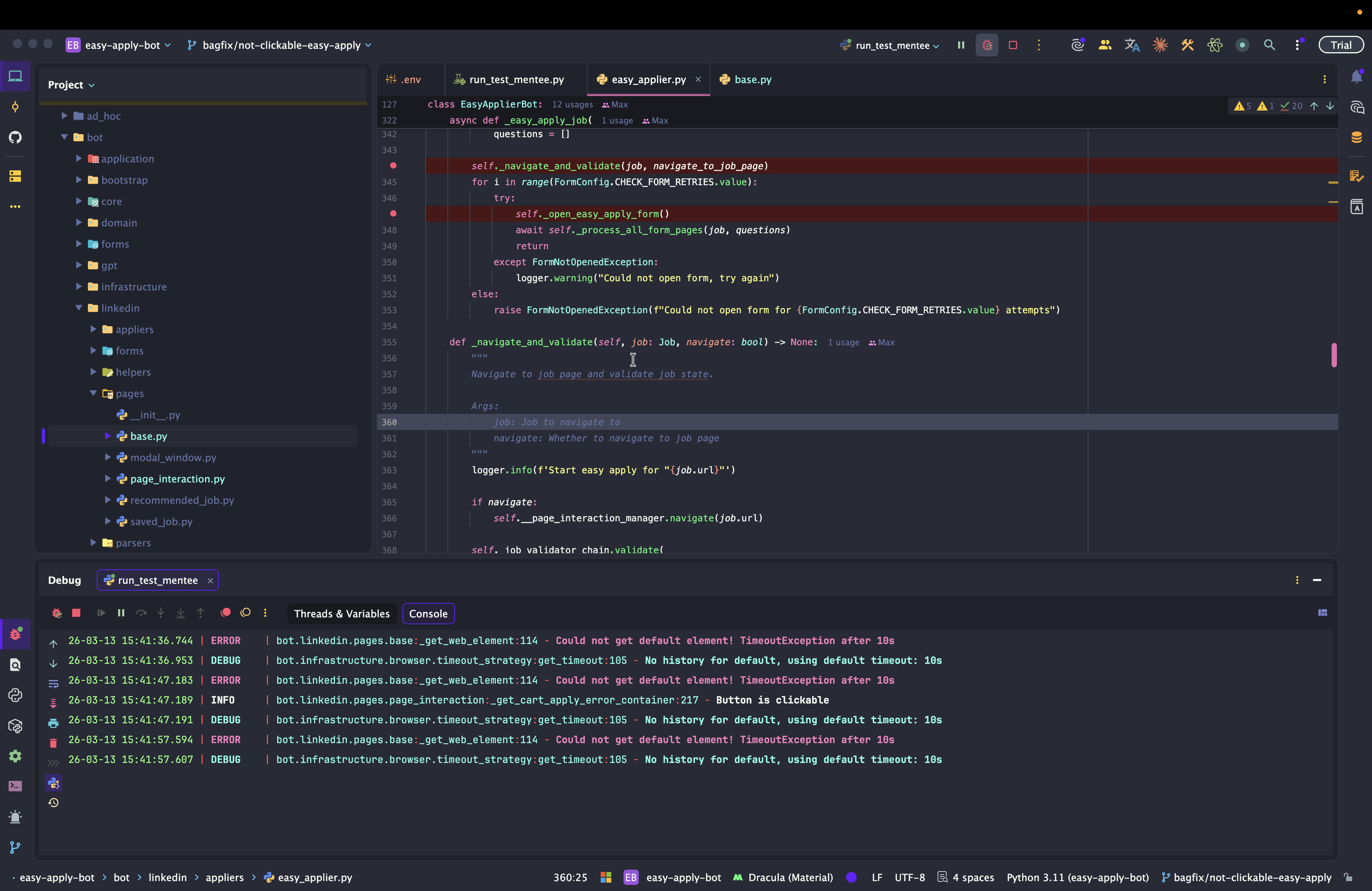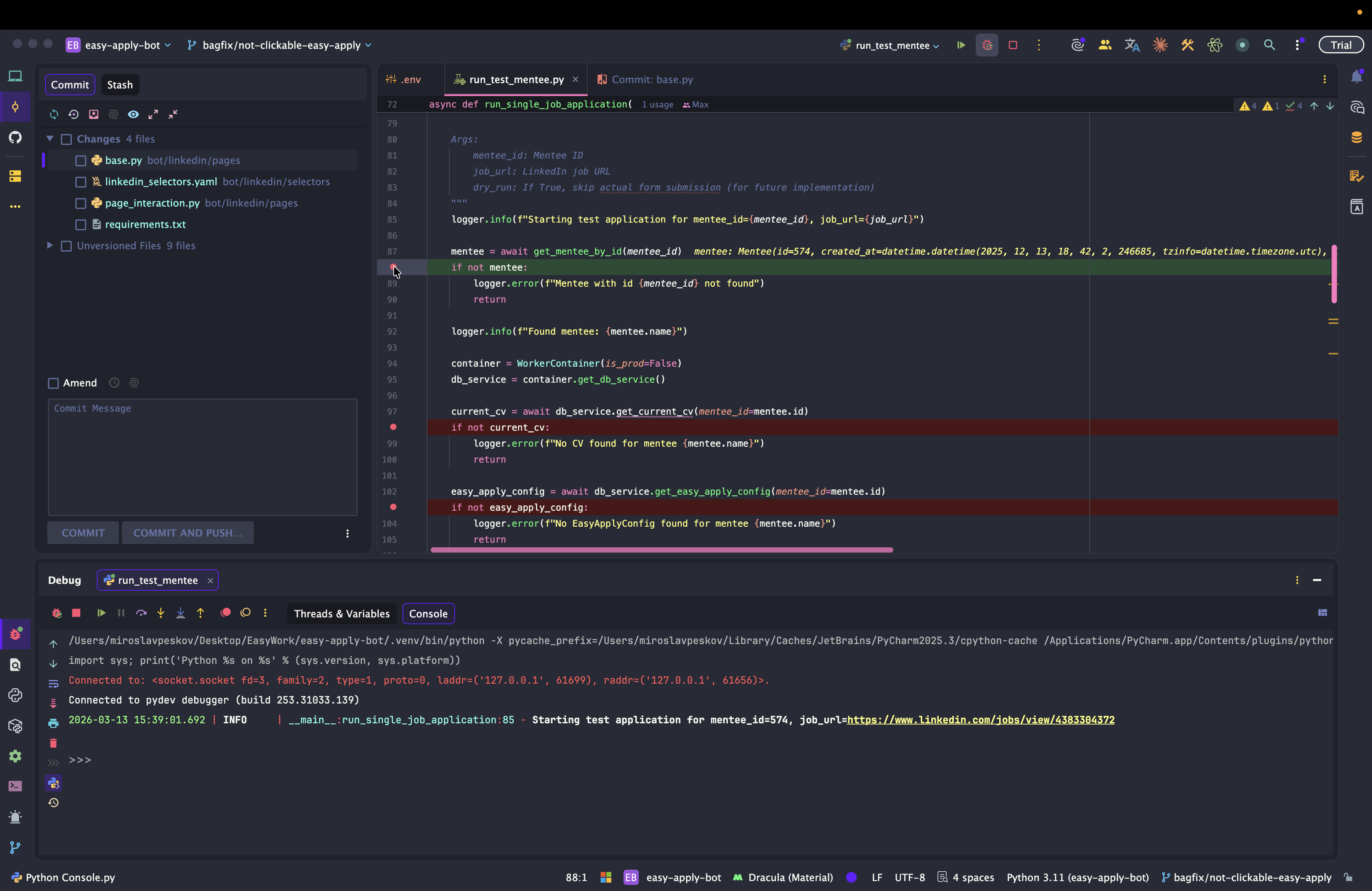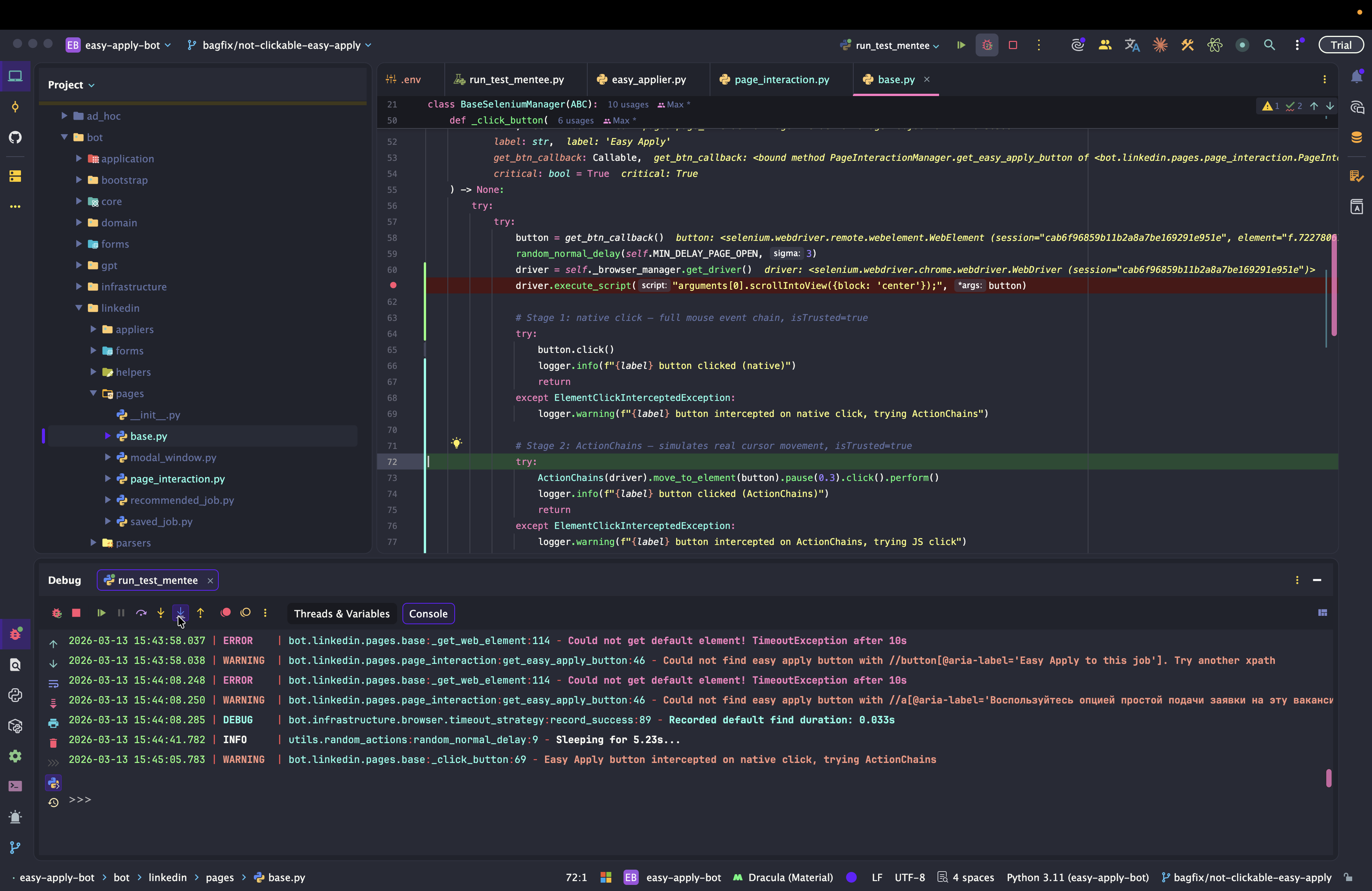 Dev: как отлаживать Easy Apply Bot