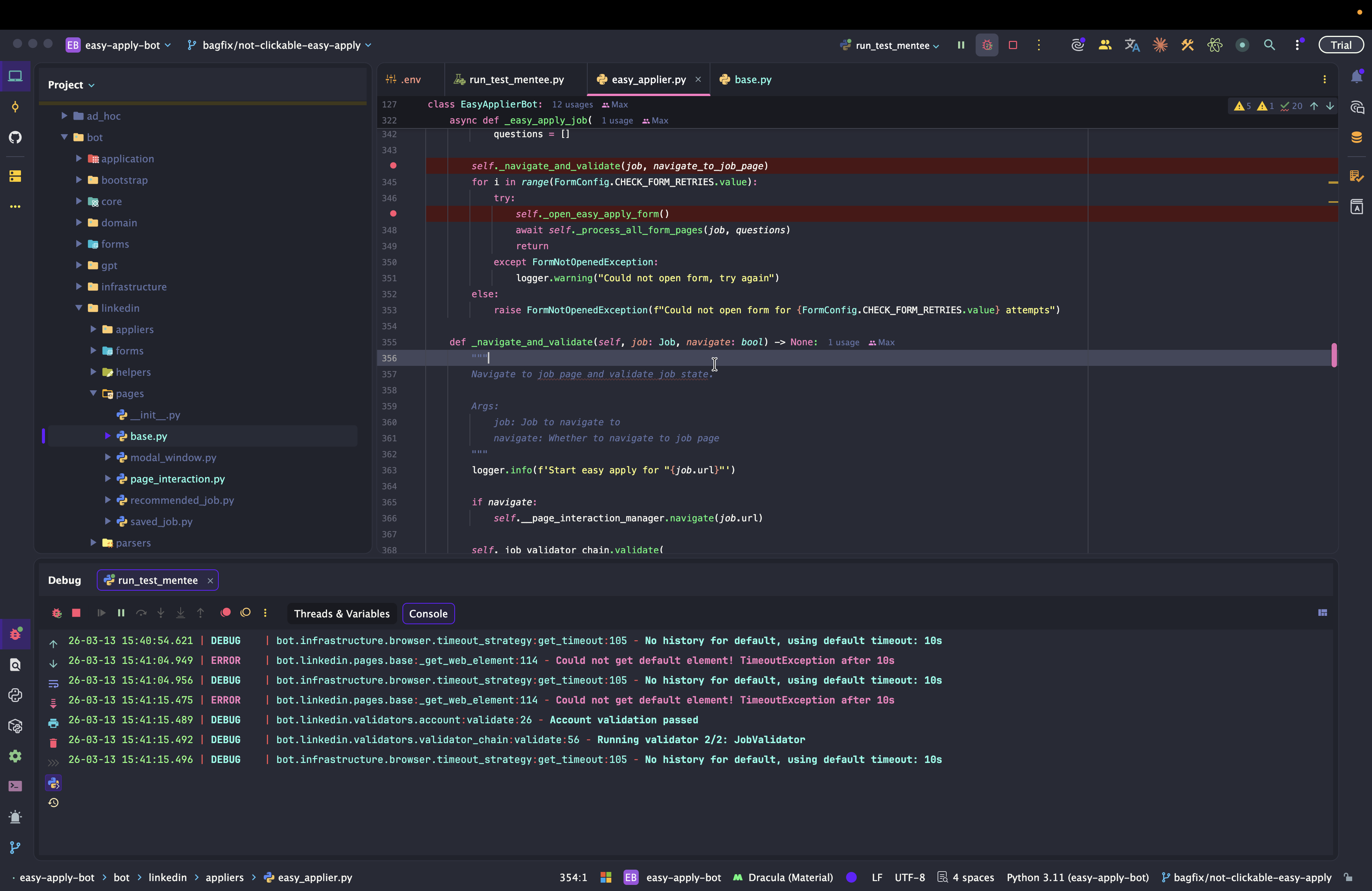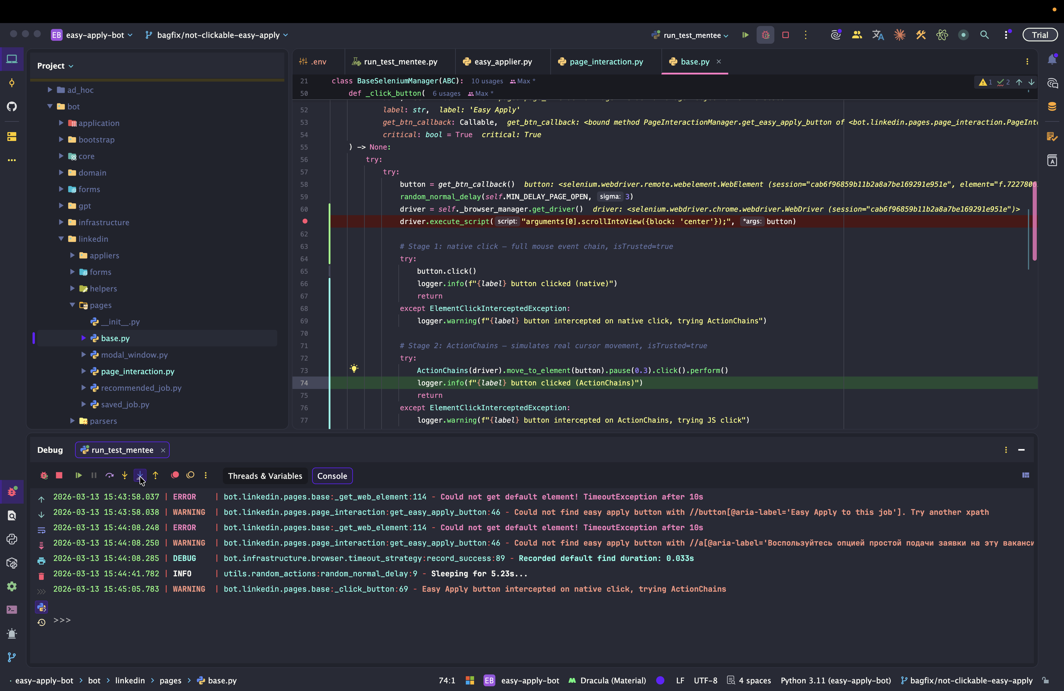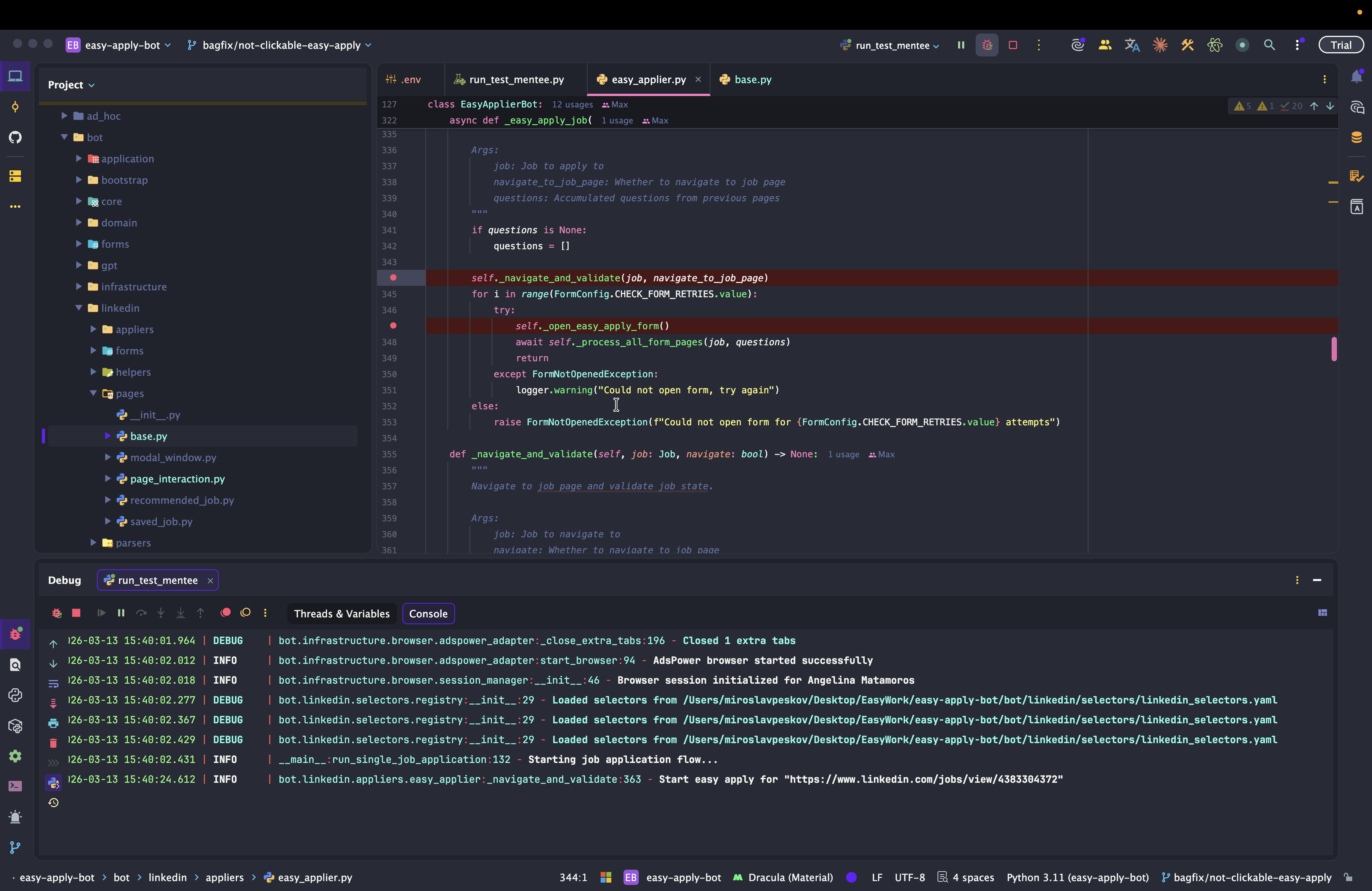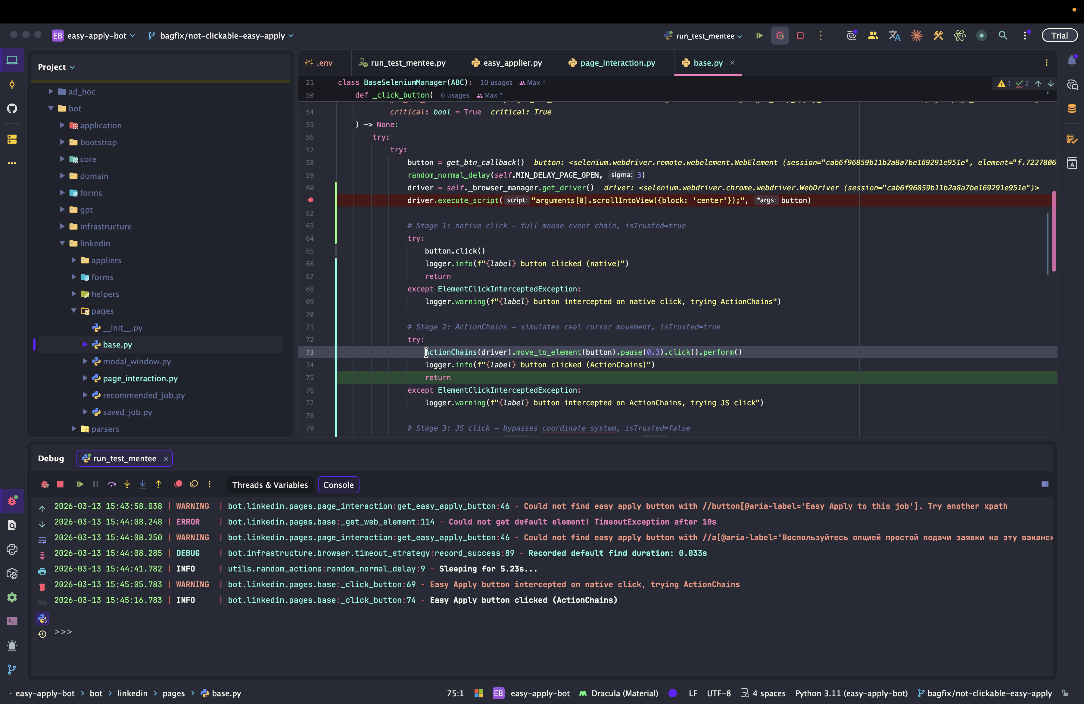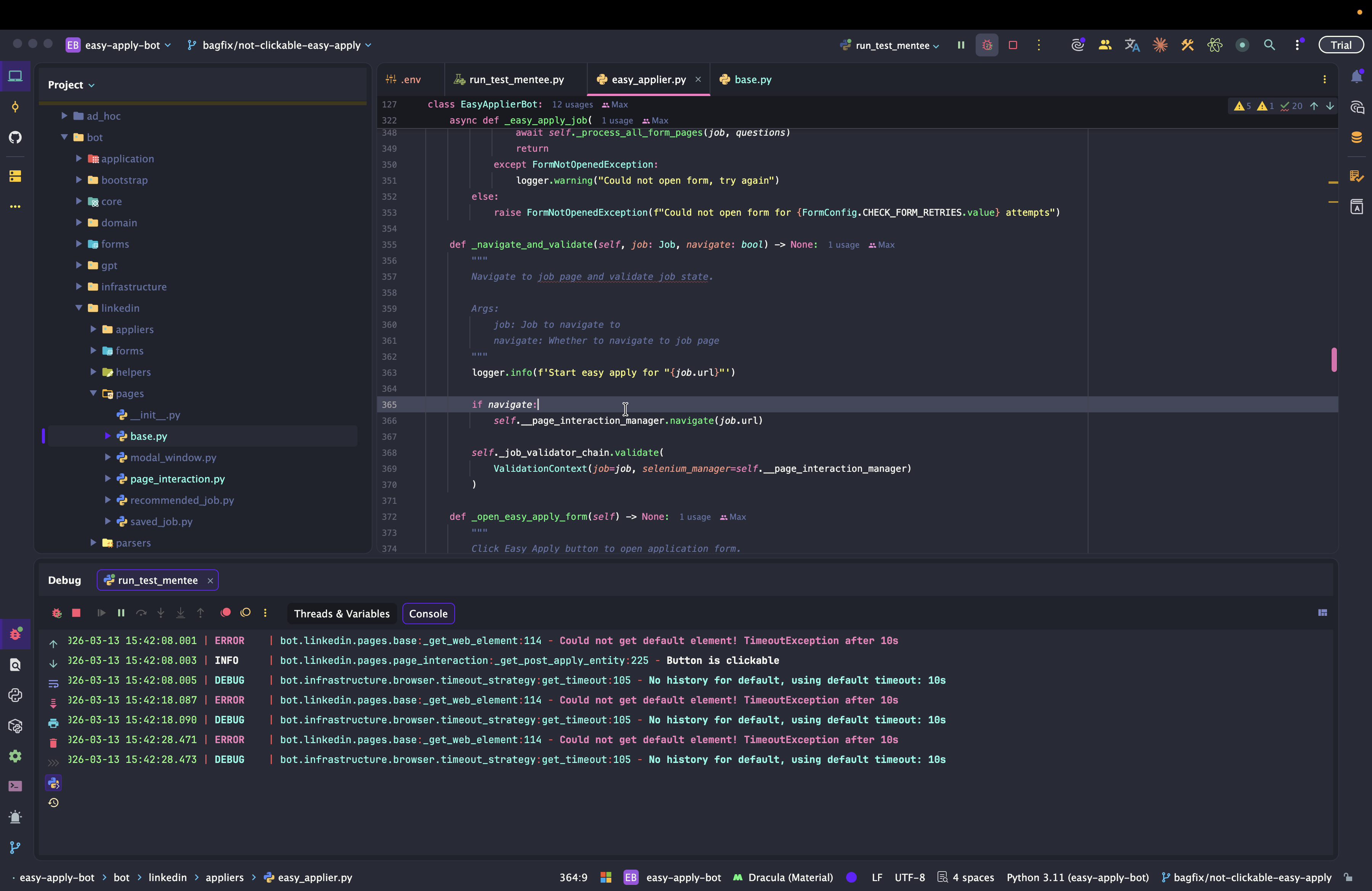 Dev: как отлаживать Easy Apply Bot