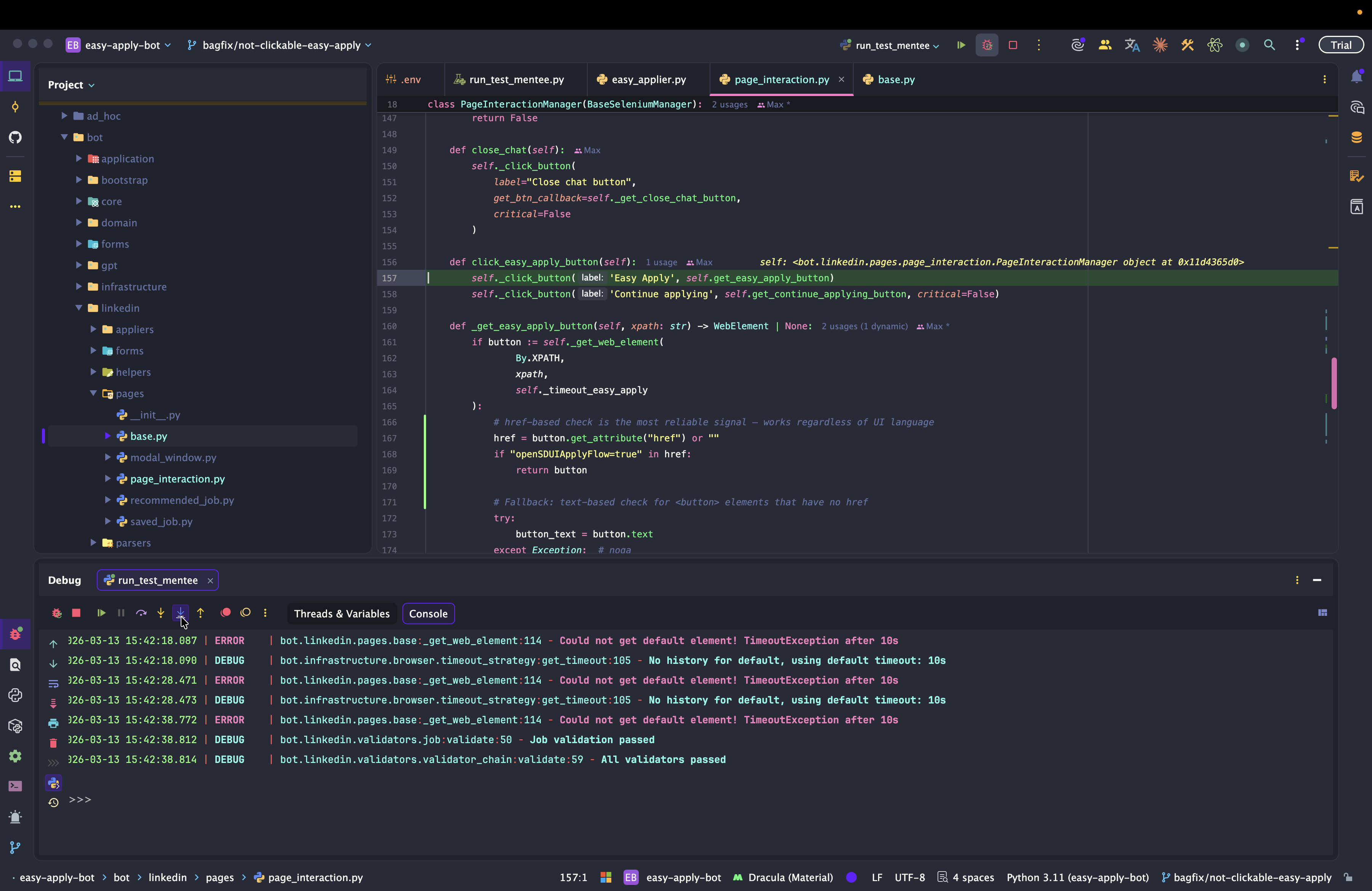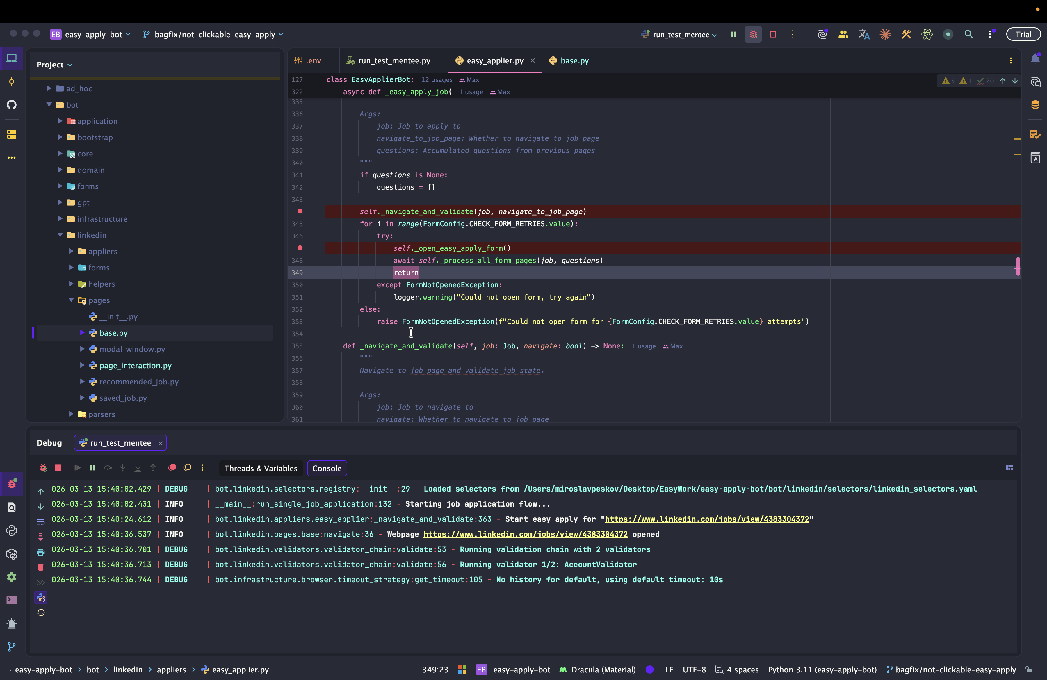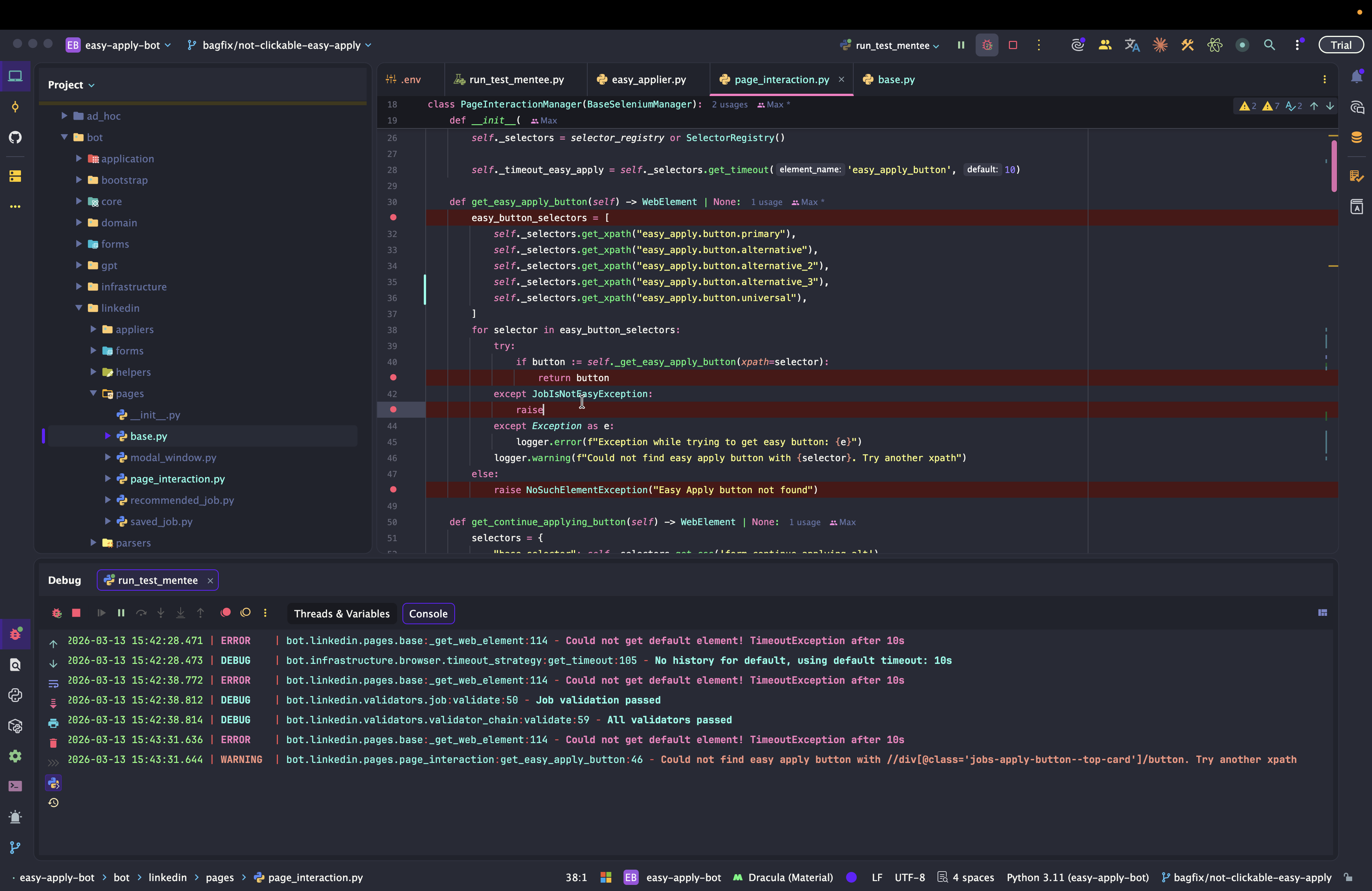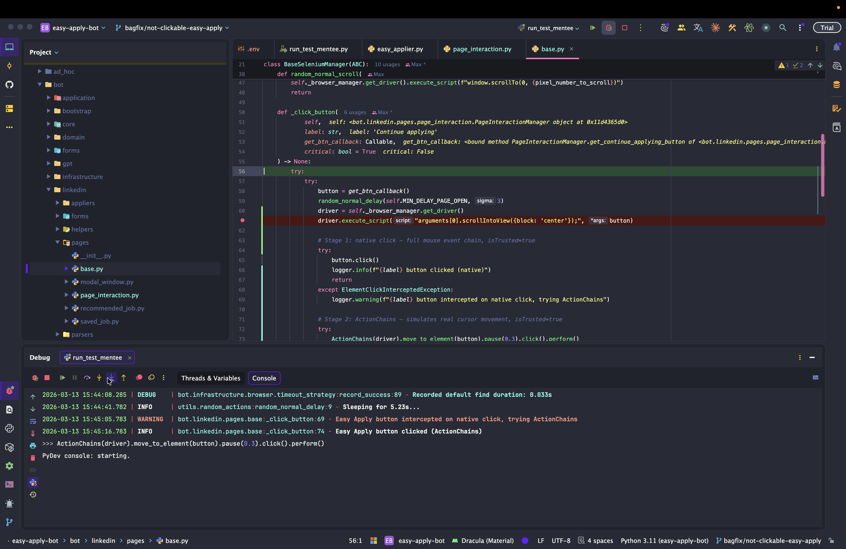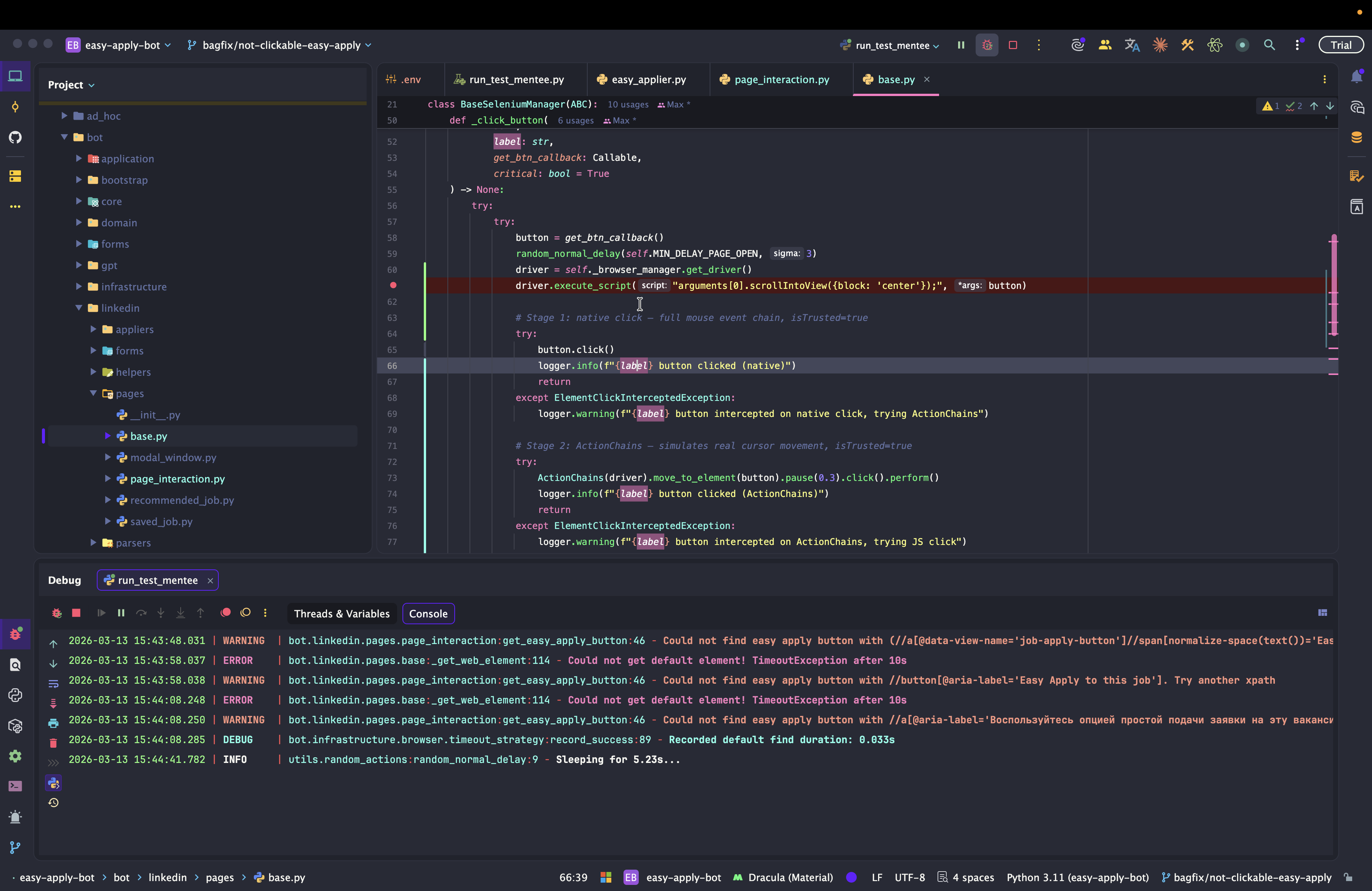 Dev: как отлаживать Easy Apply Bot