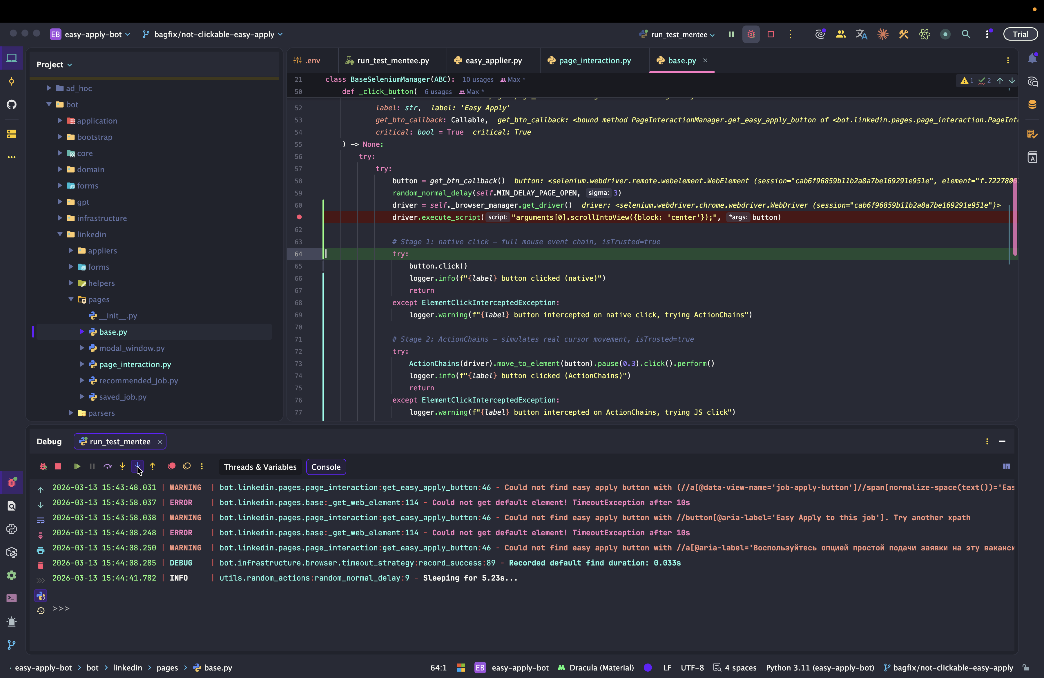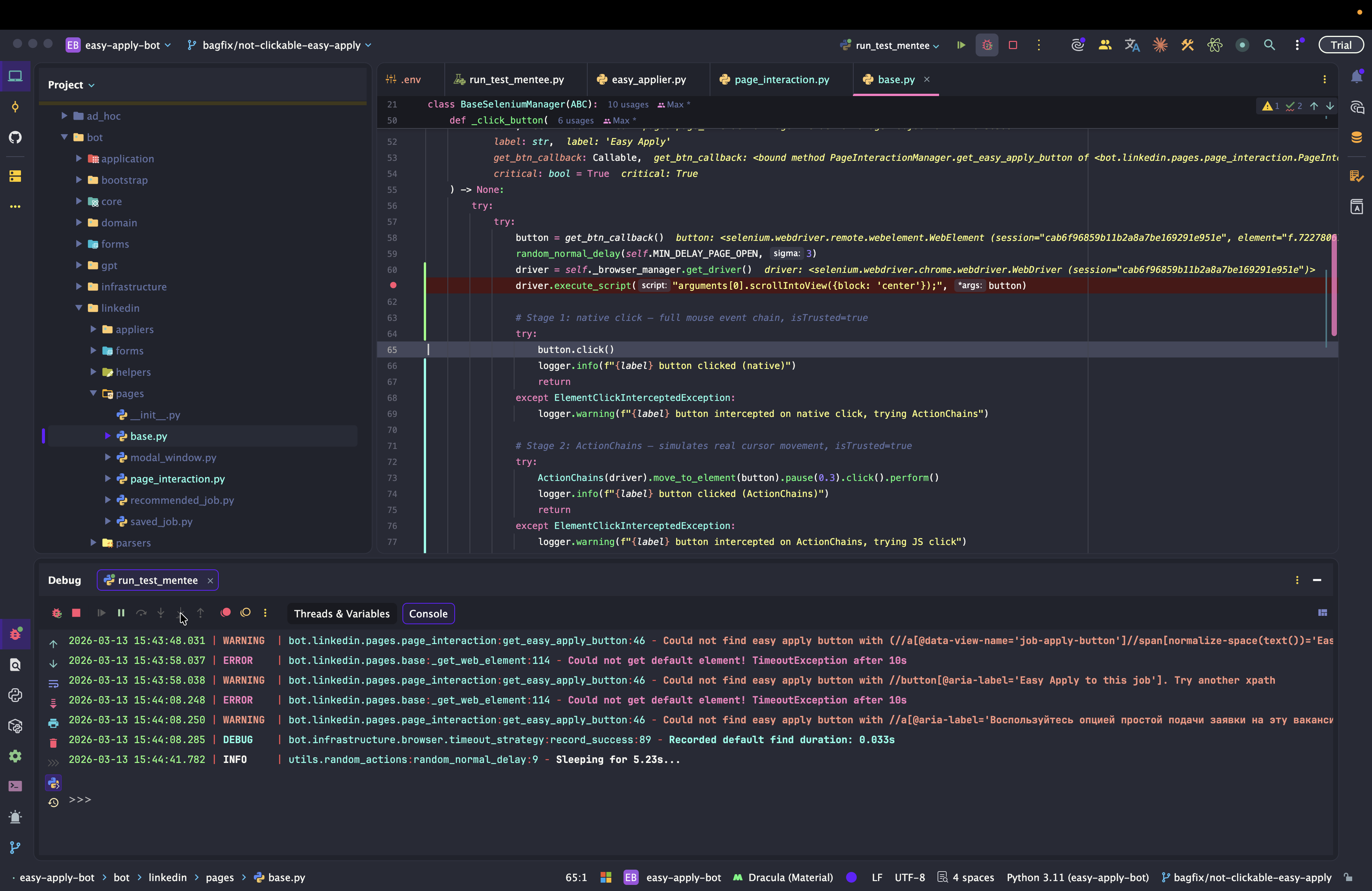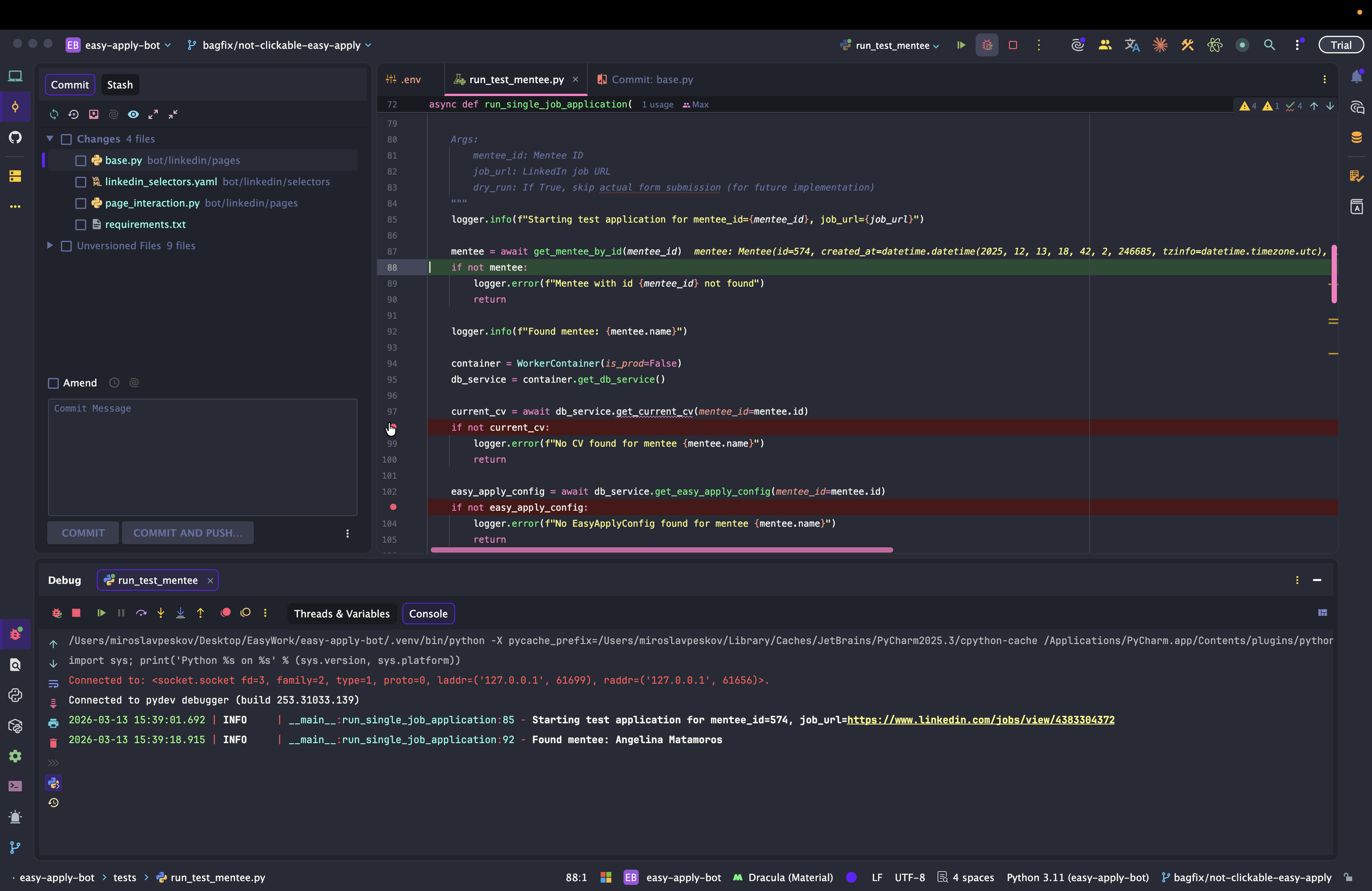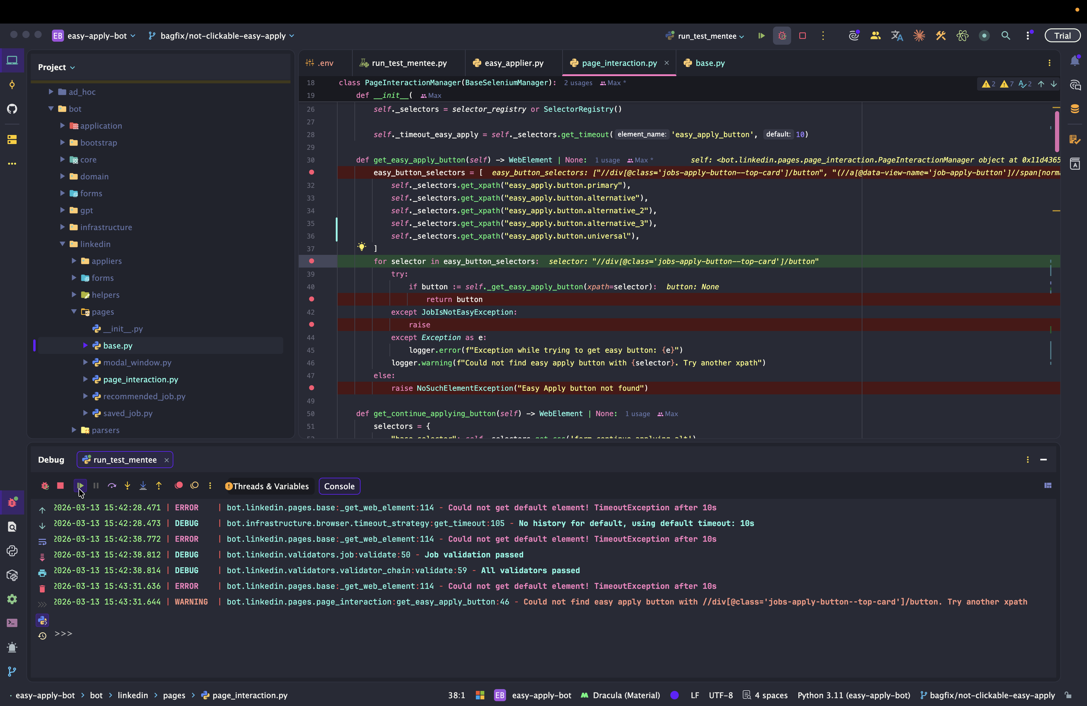 Dev: как отлаживать Easy Apply Bot