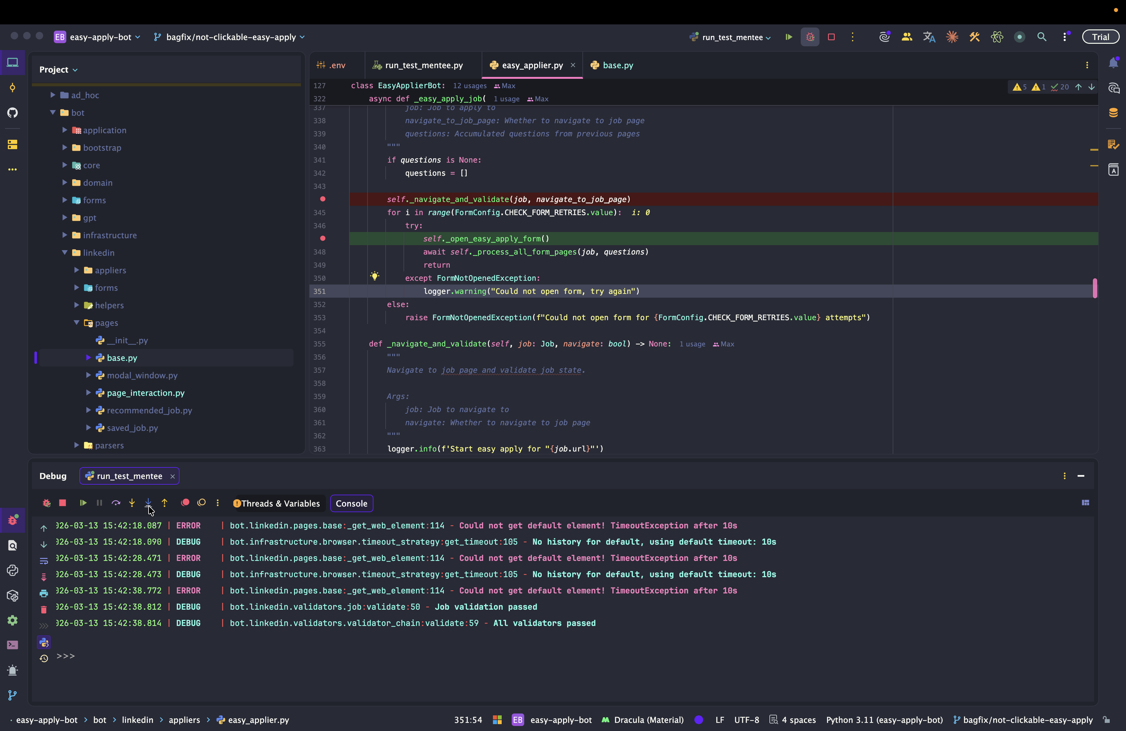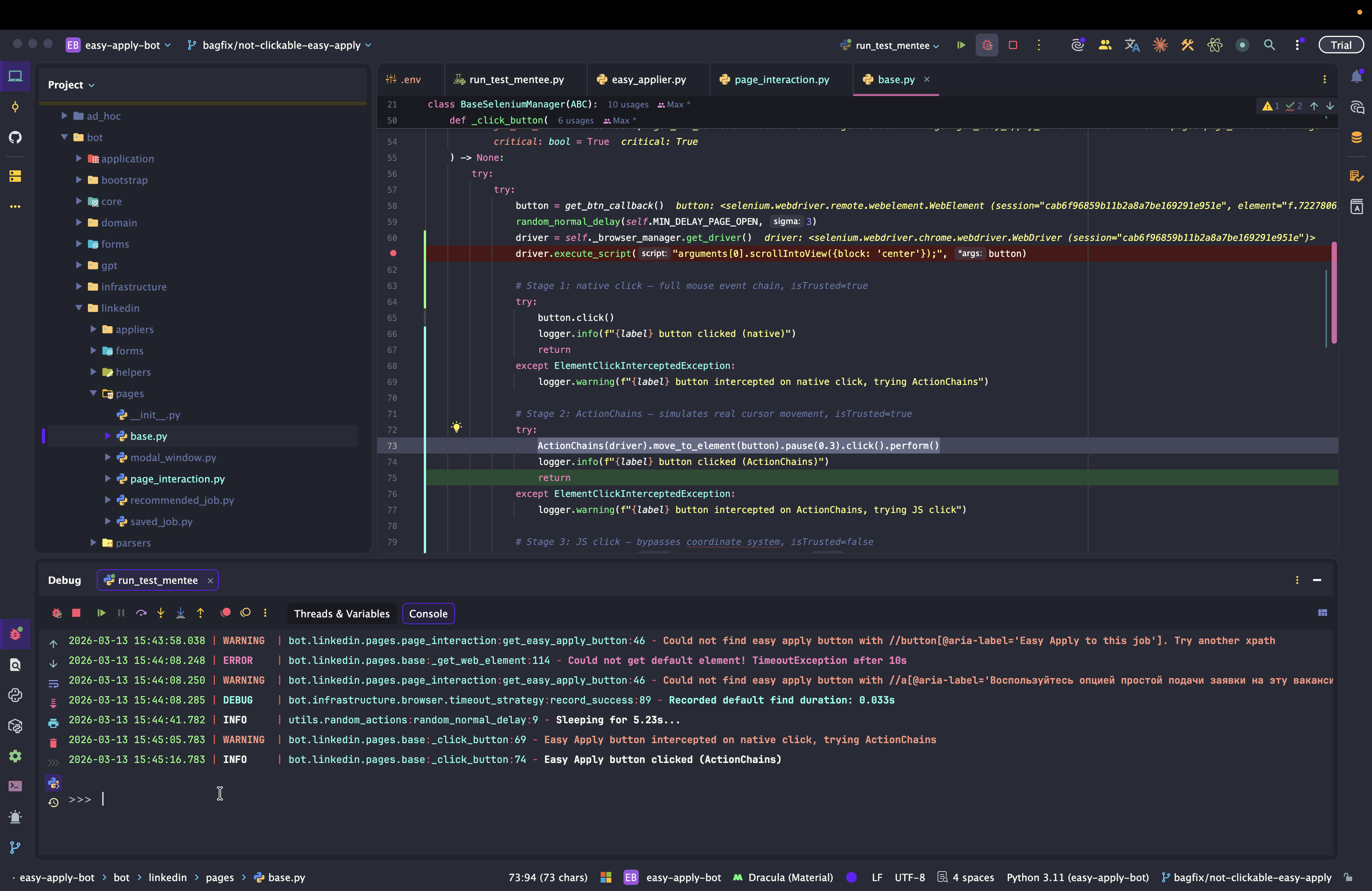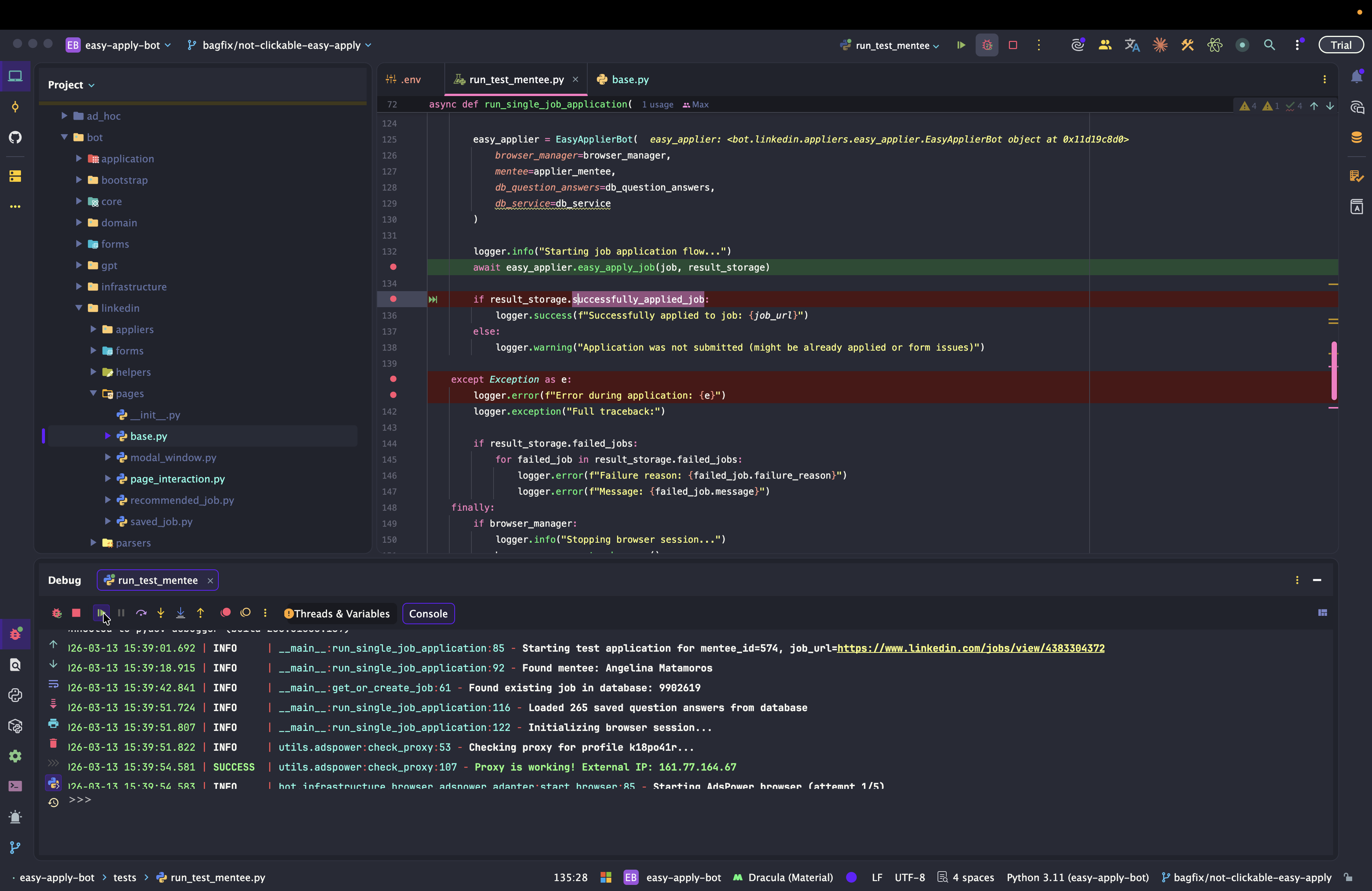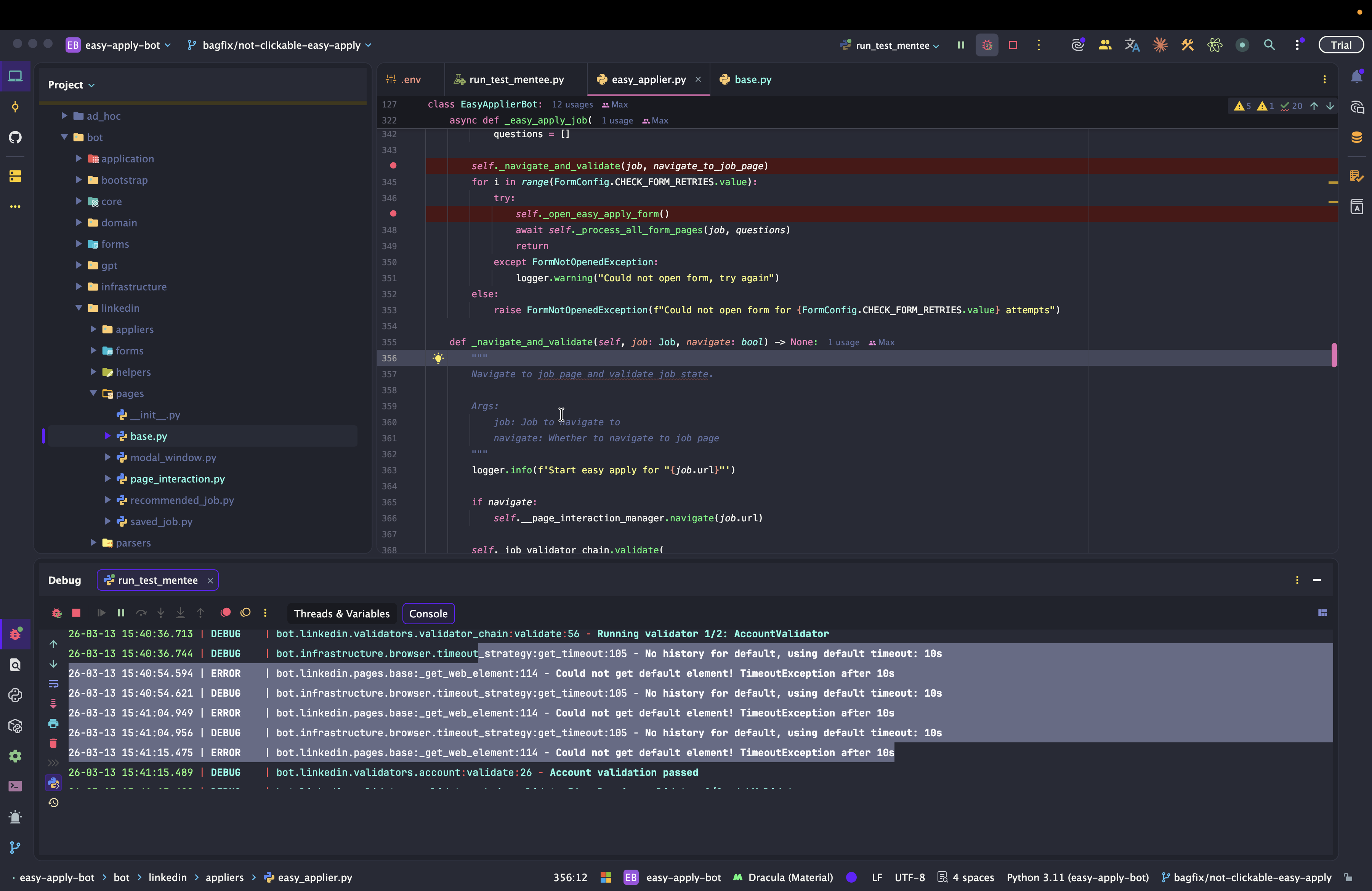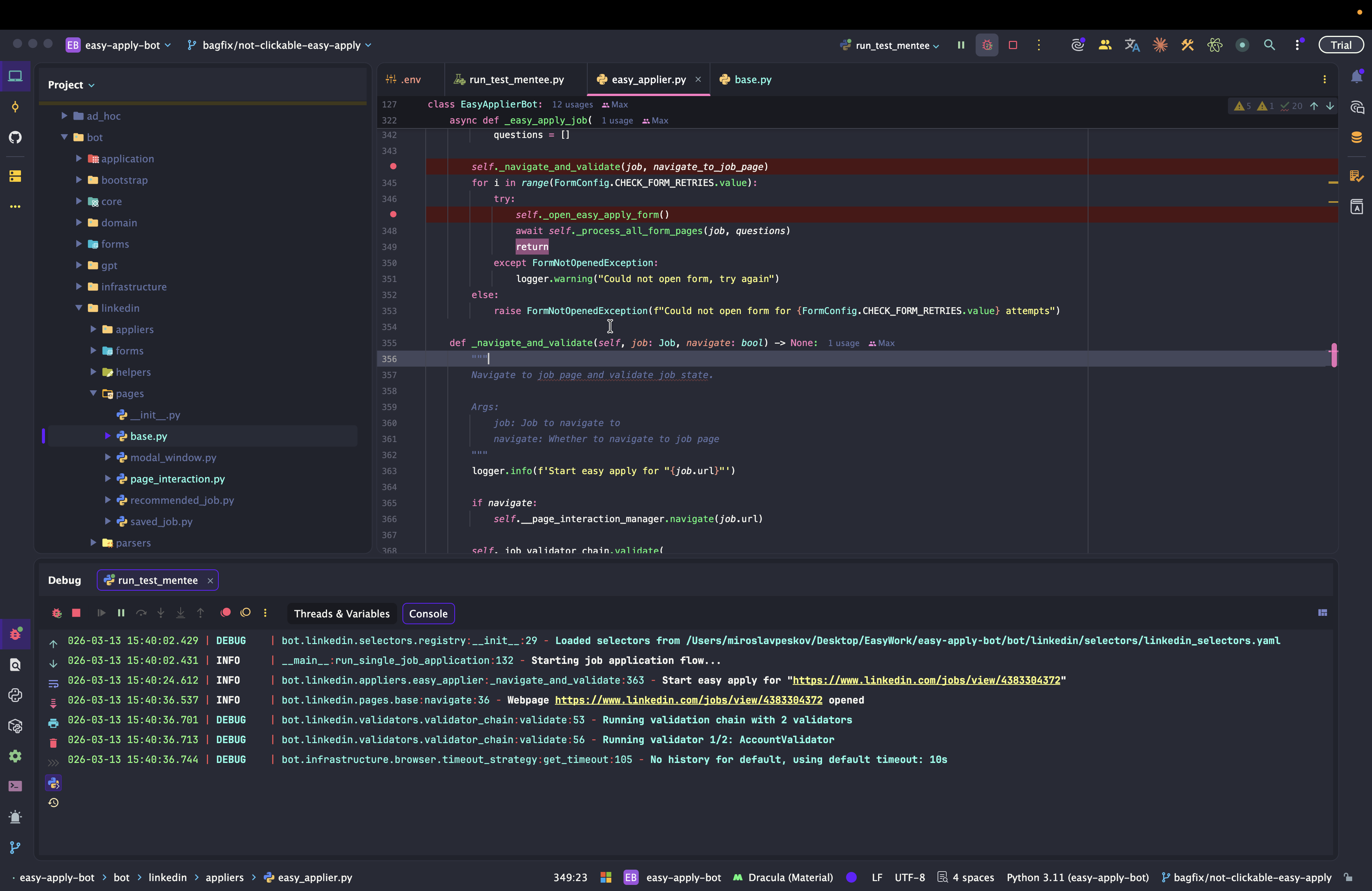 Dev: как отлаживать Easy Apply Bot