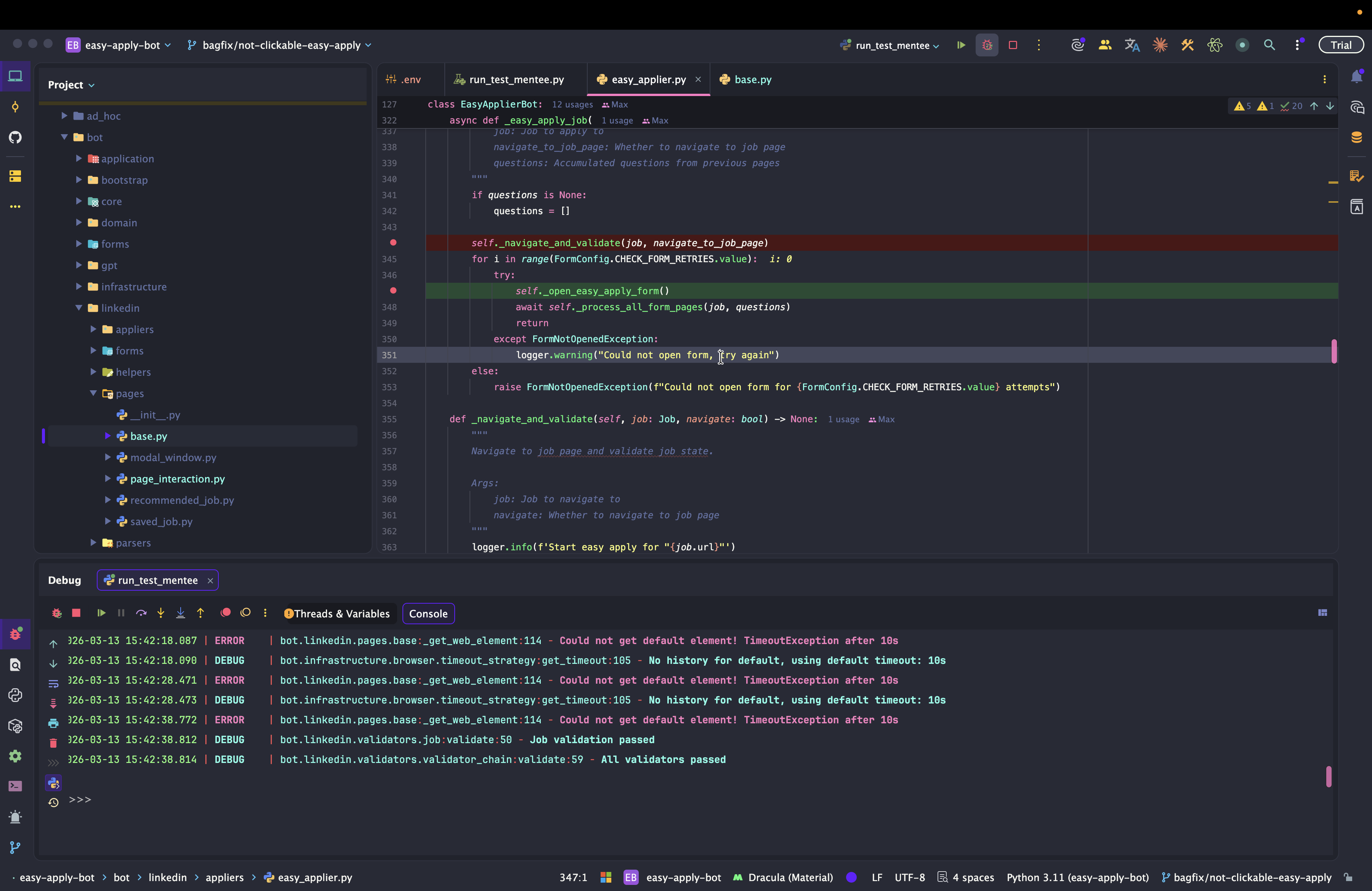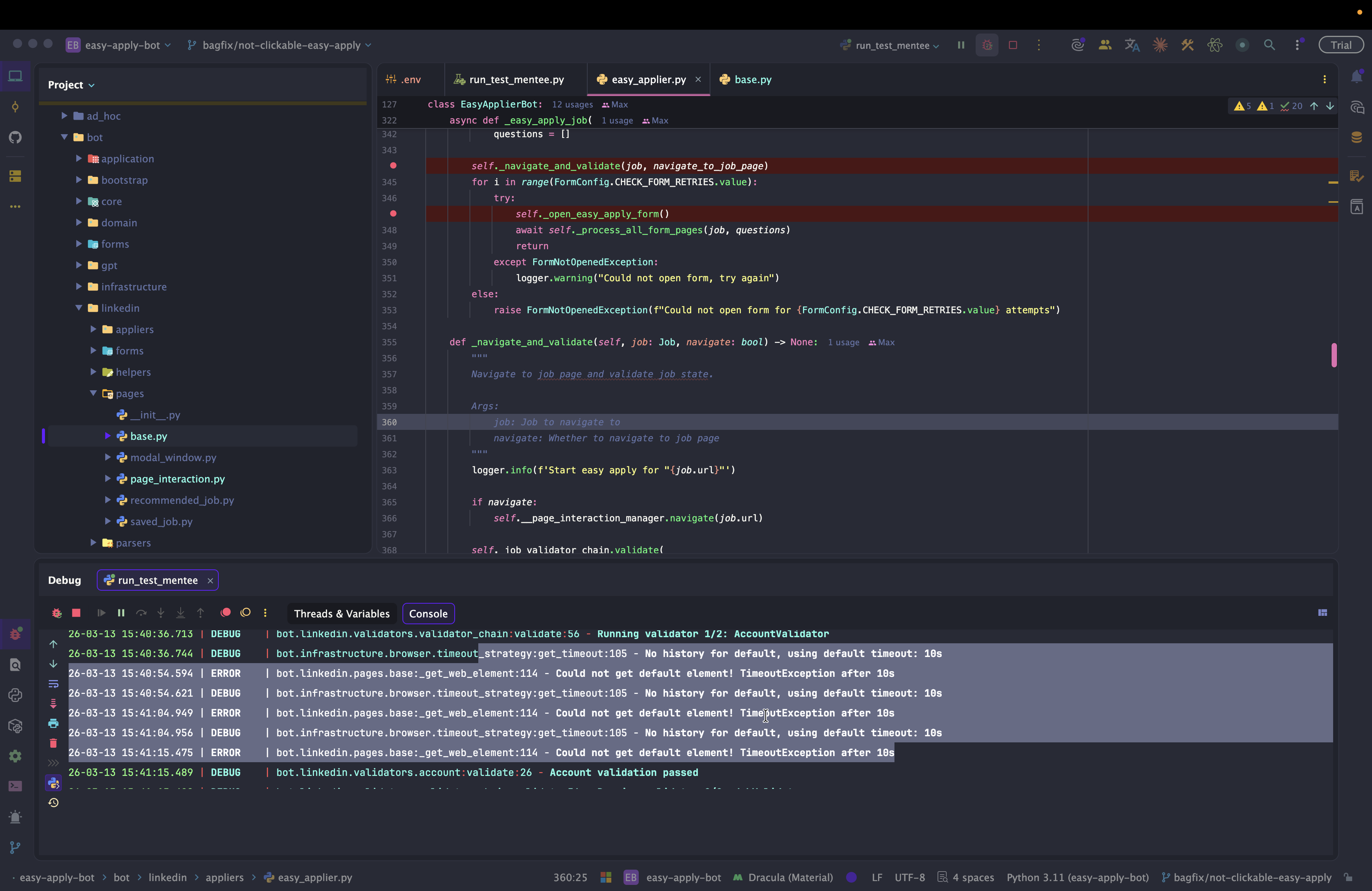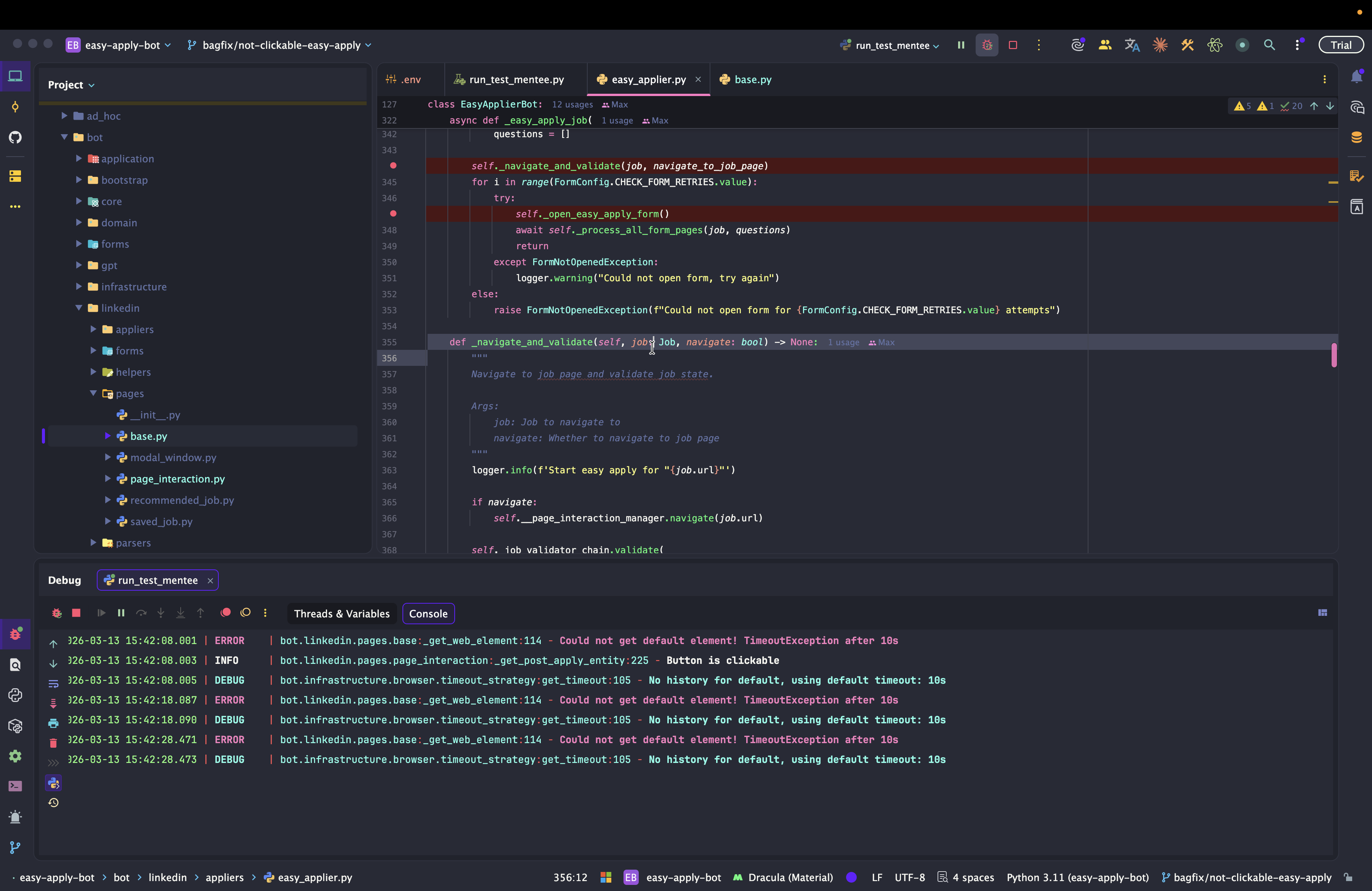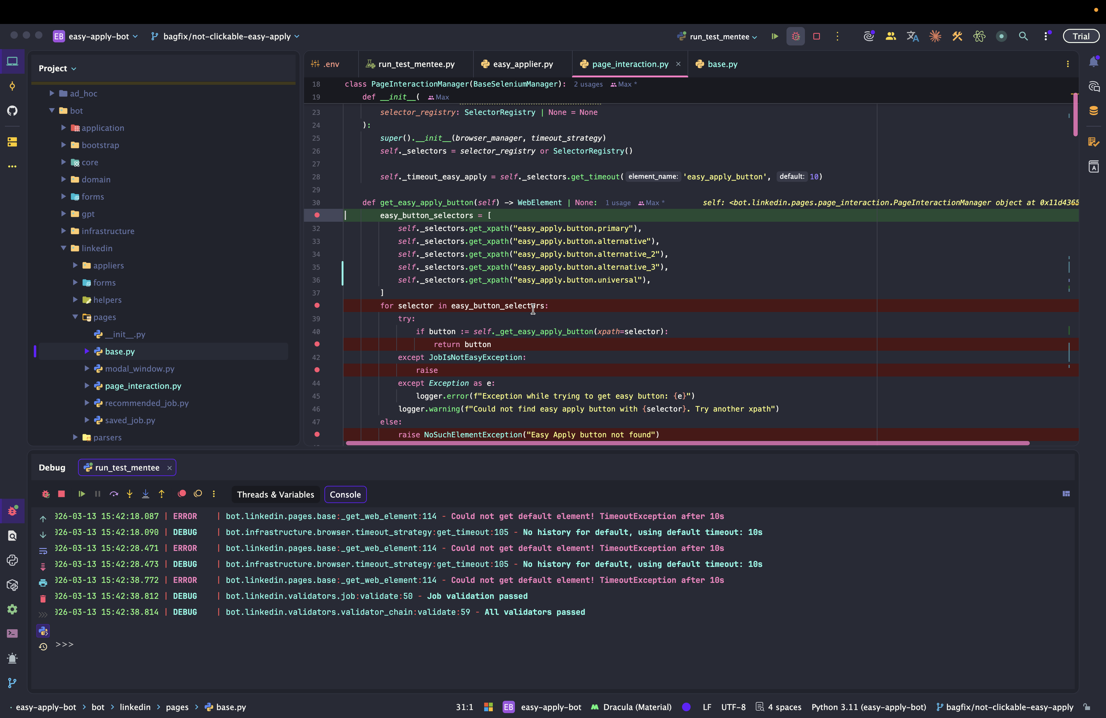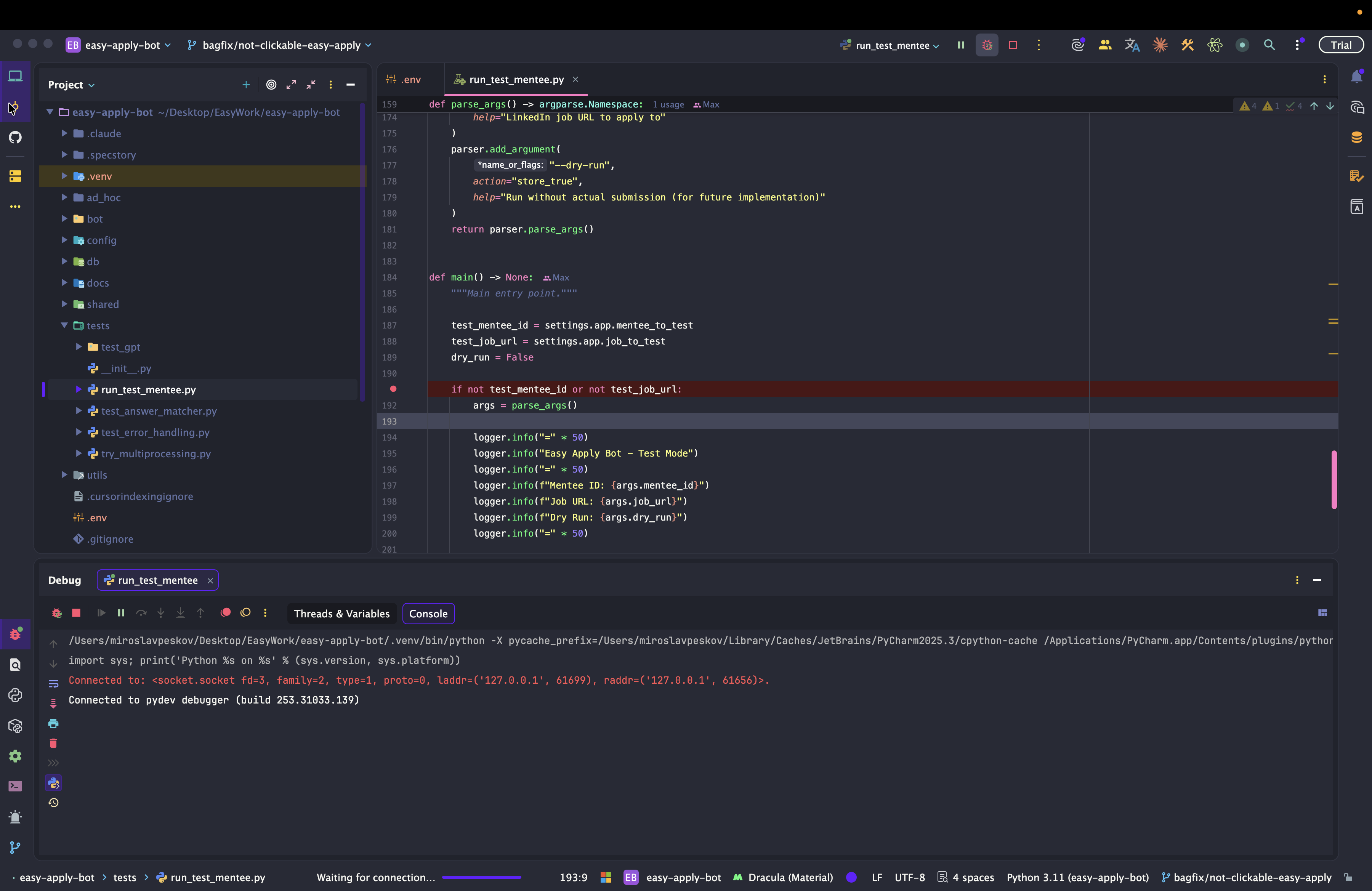 Dev: как отлаживать Easy Apply Bot