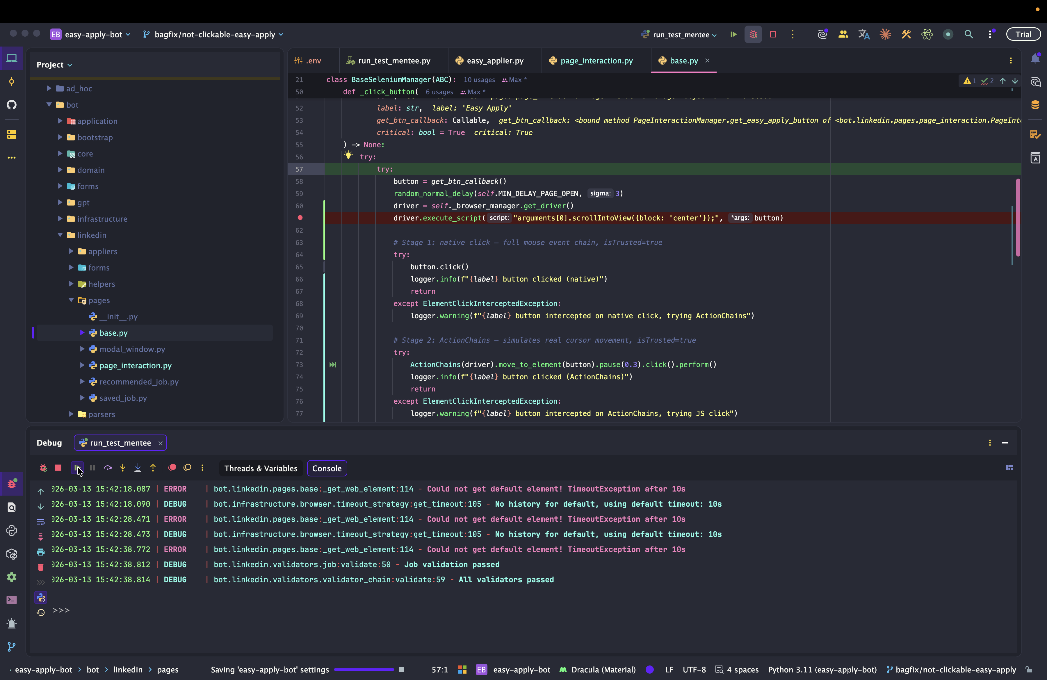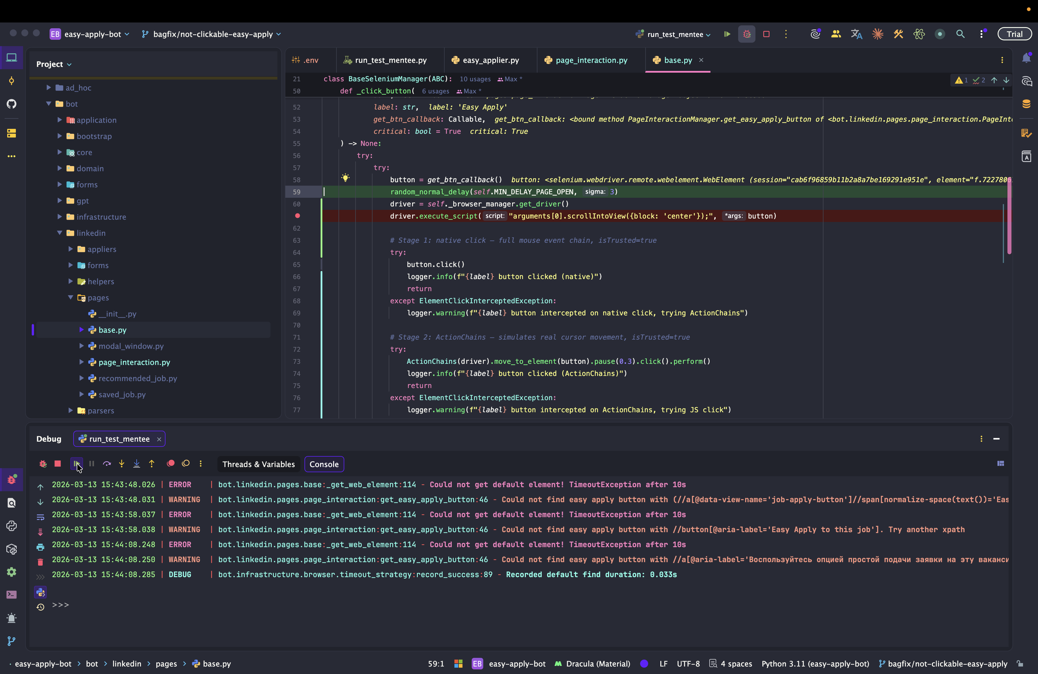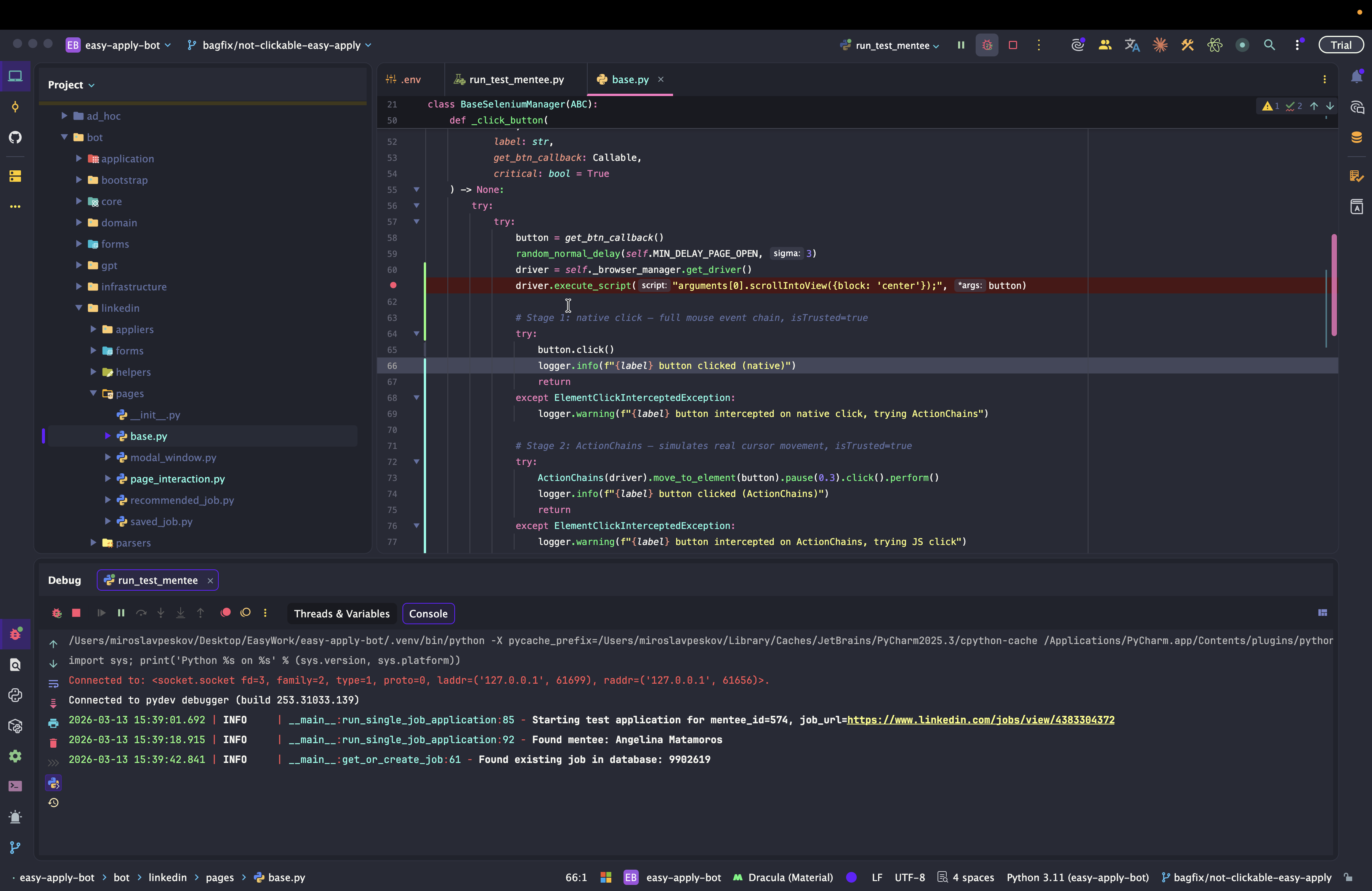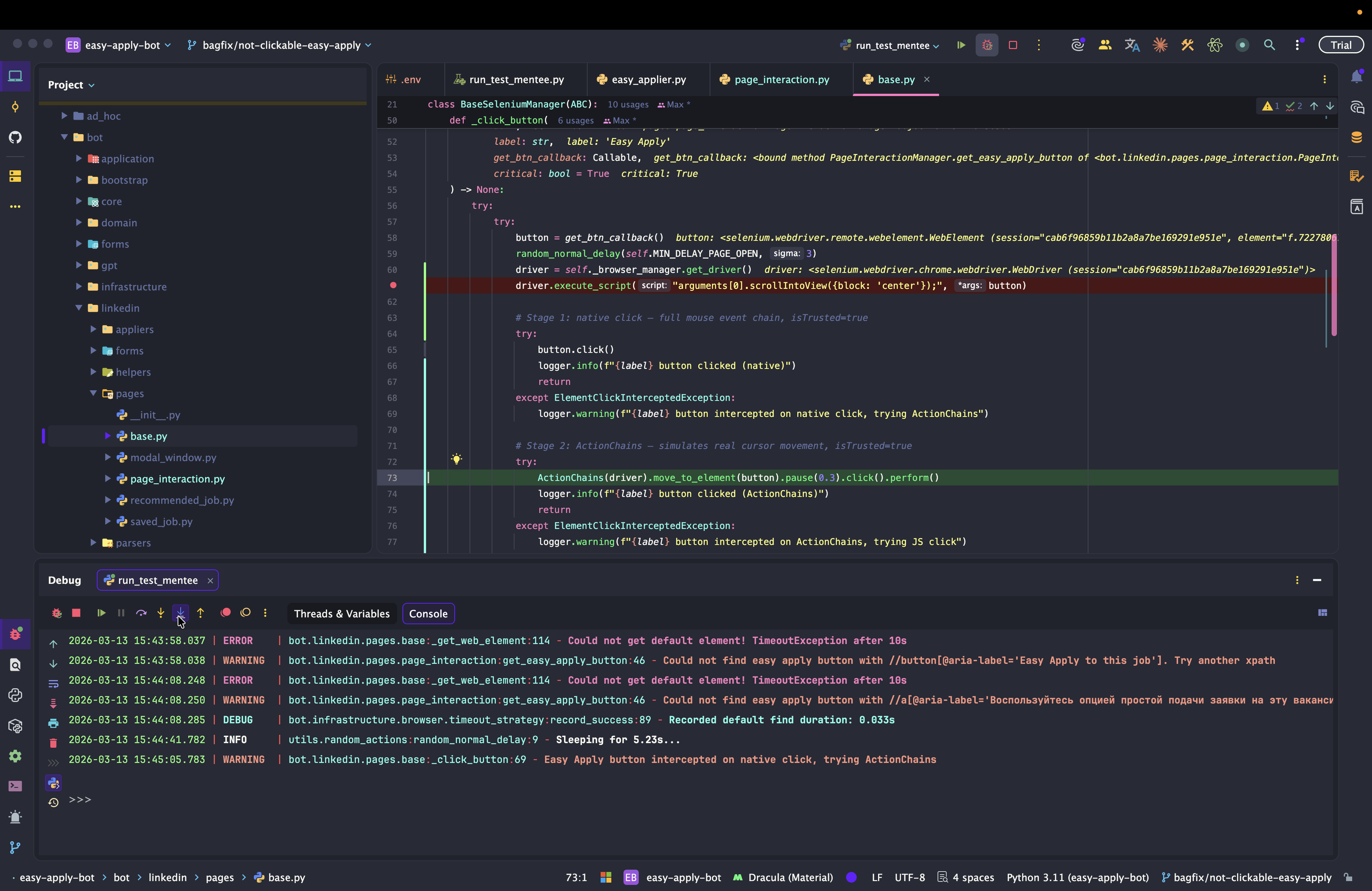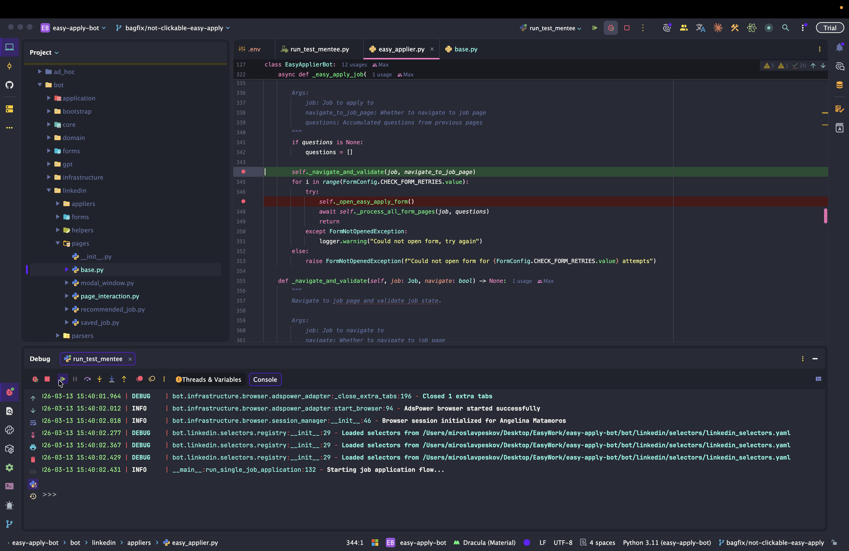 Dev: как отлаживать Easy Apply Bot