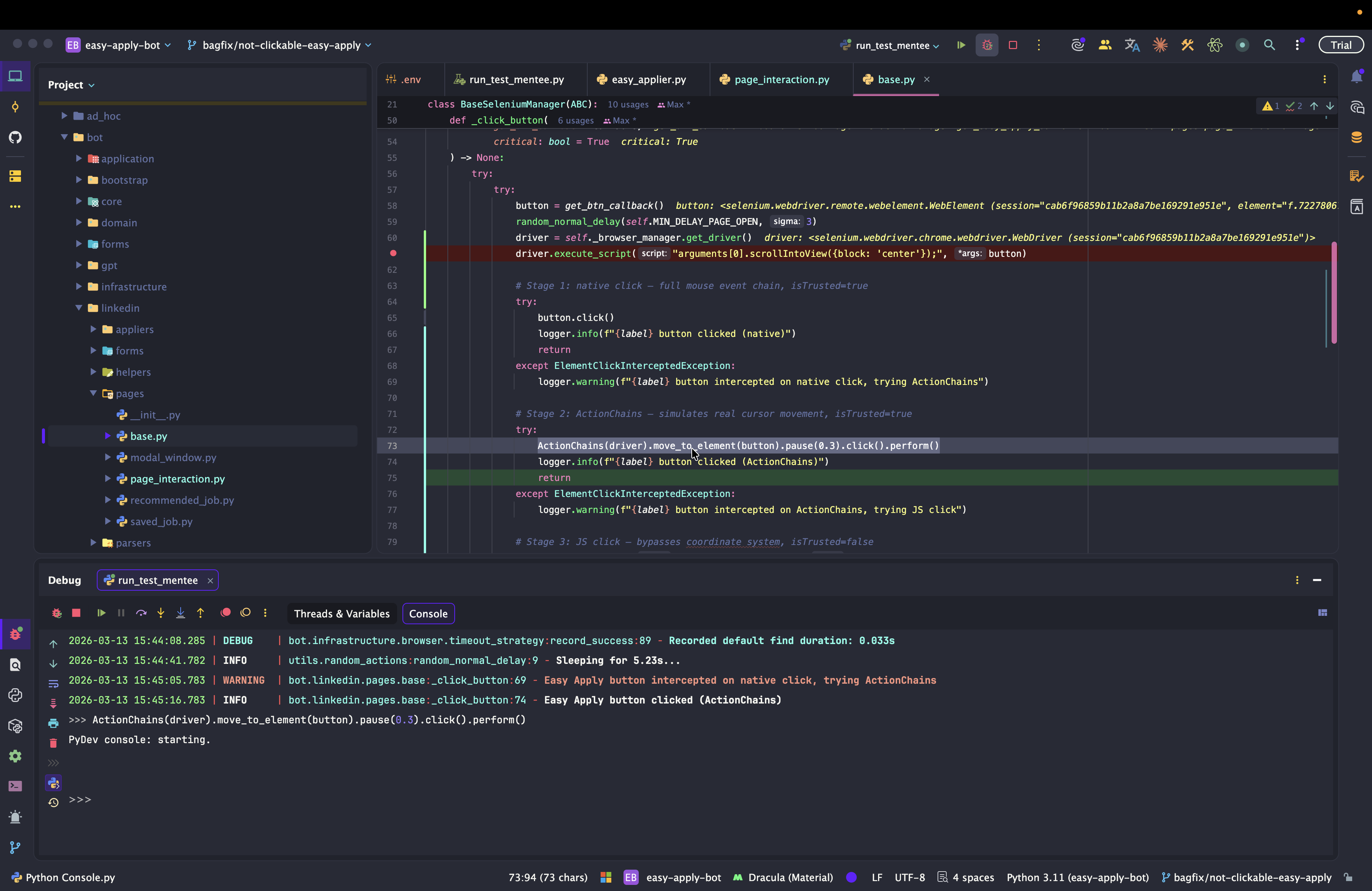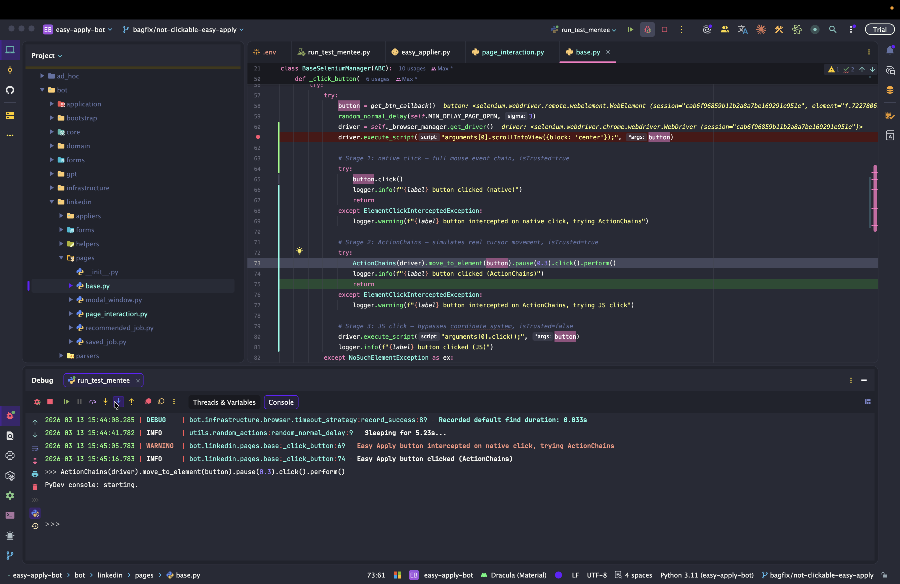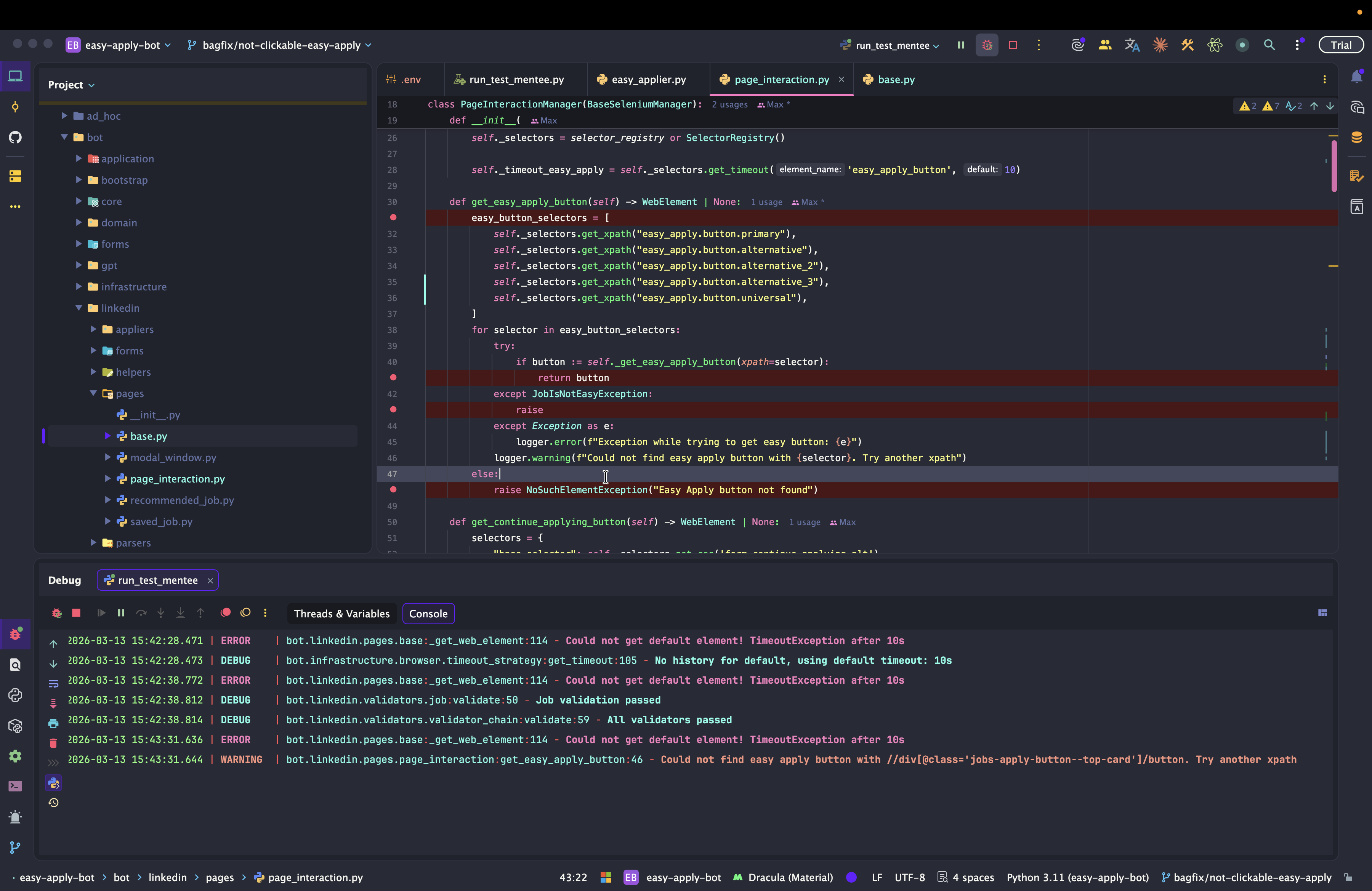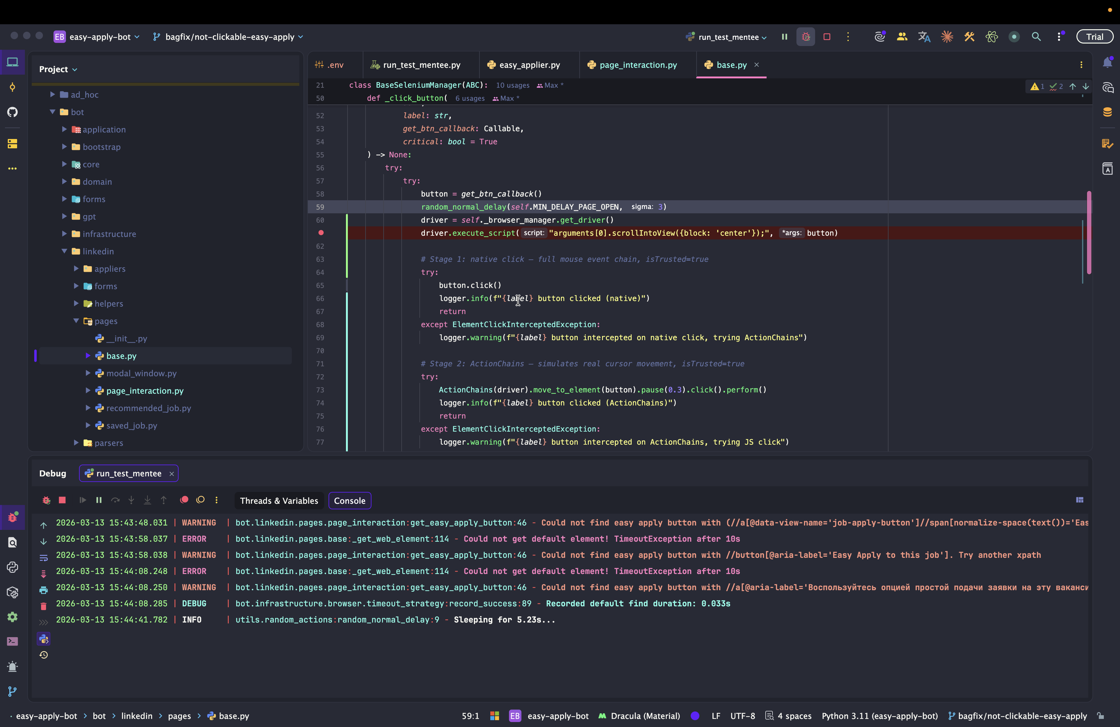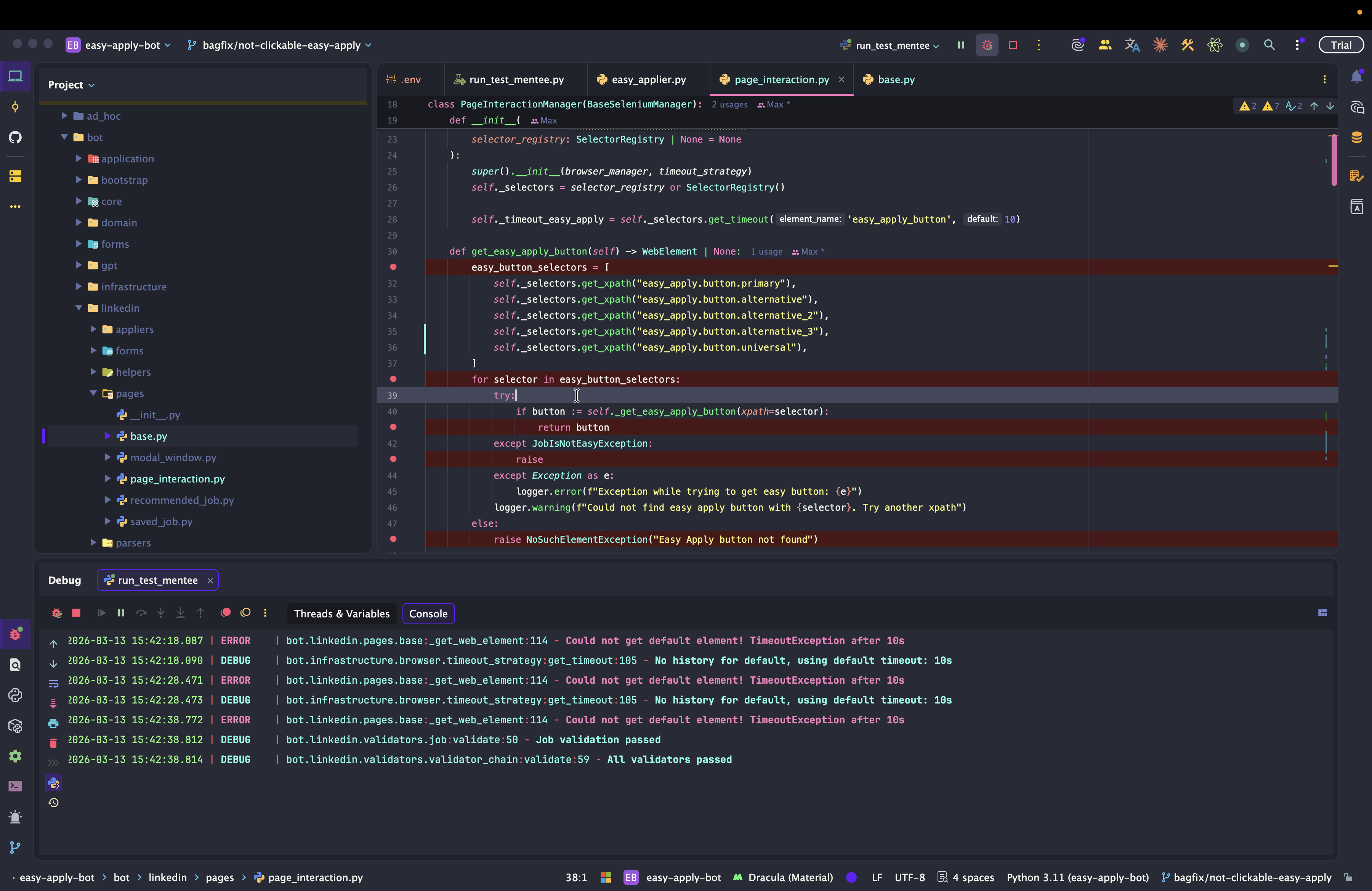 Dev: как отлаживать Easy Apply Bot