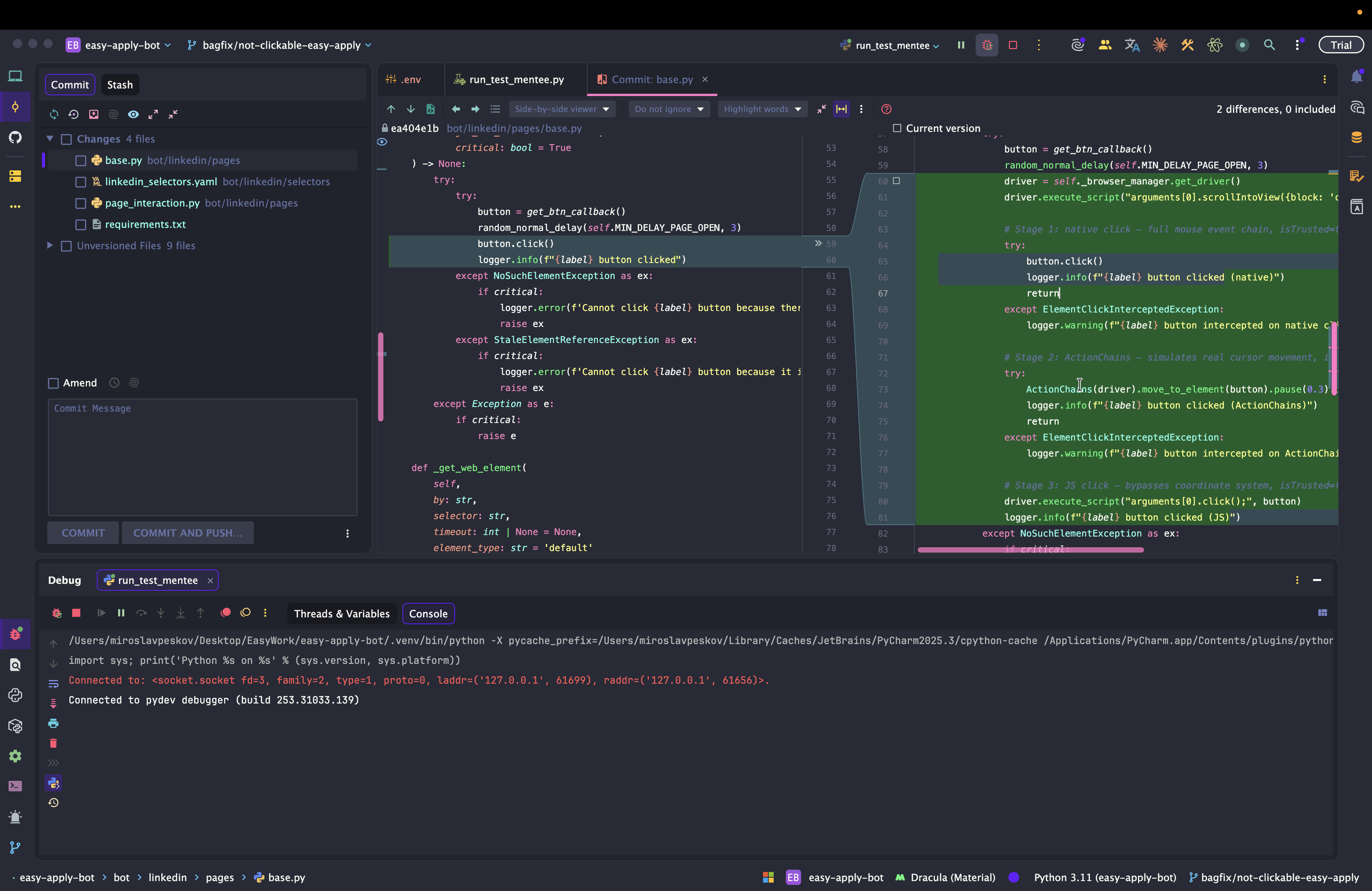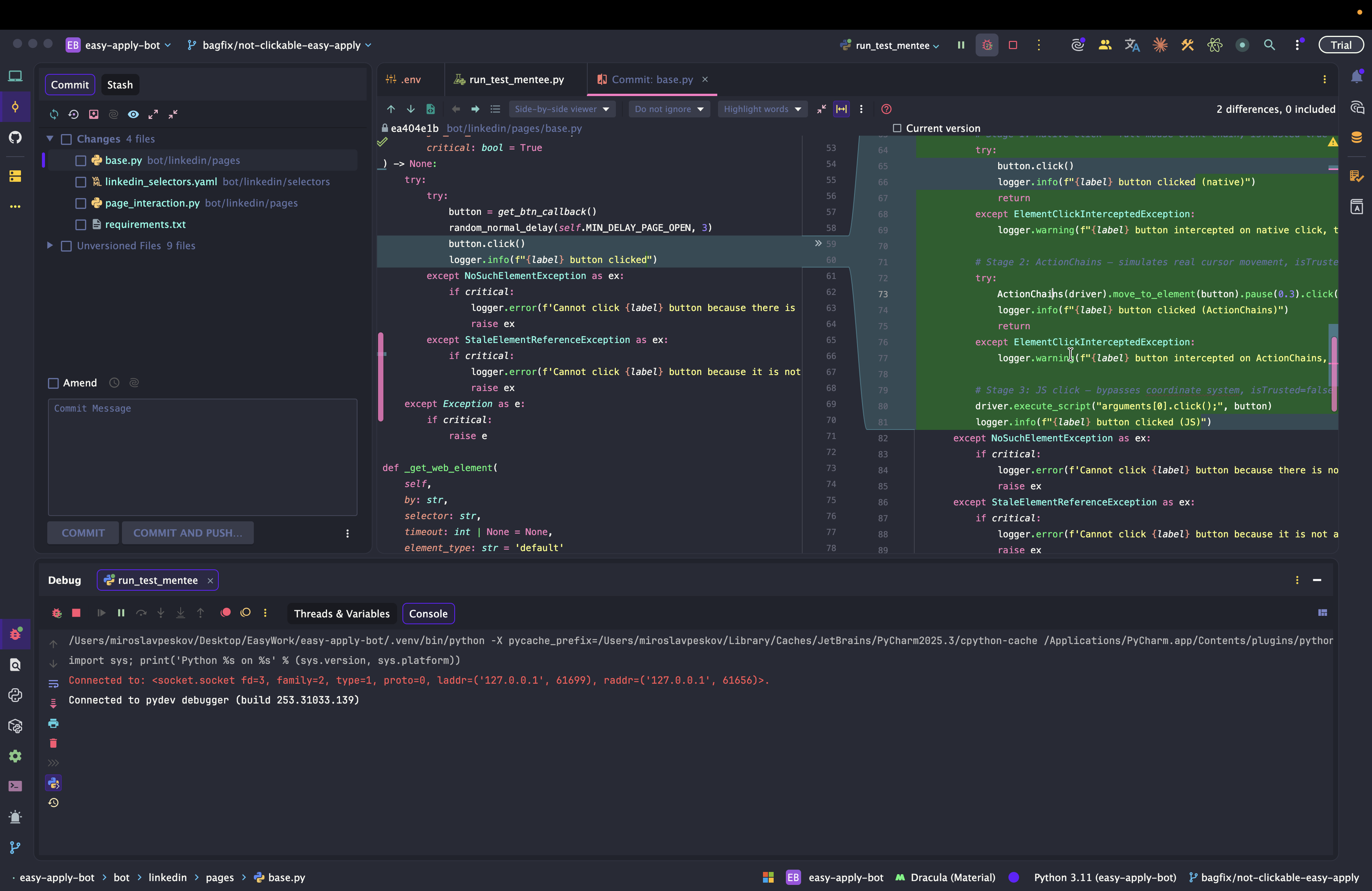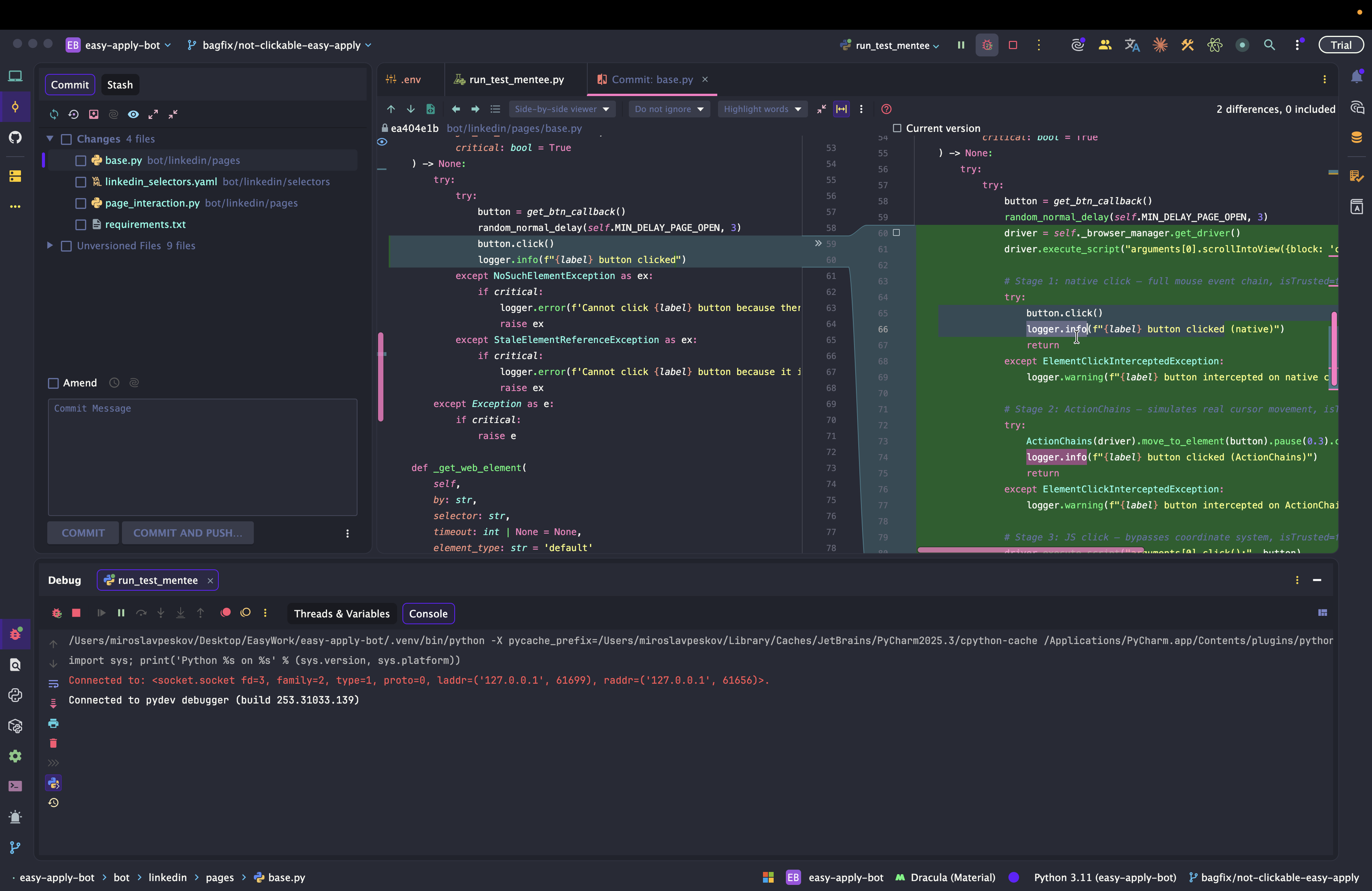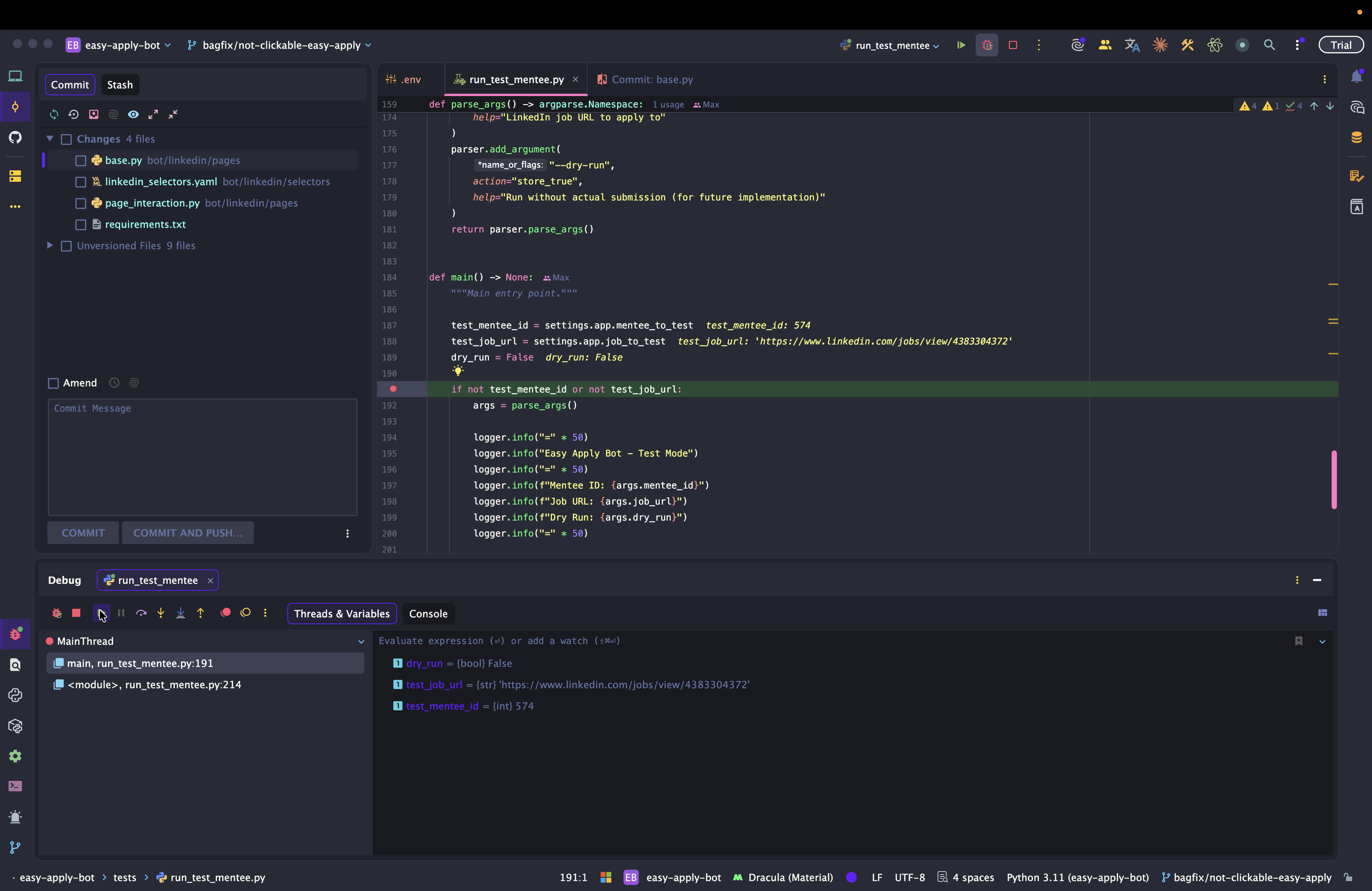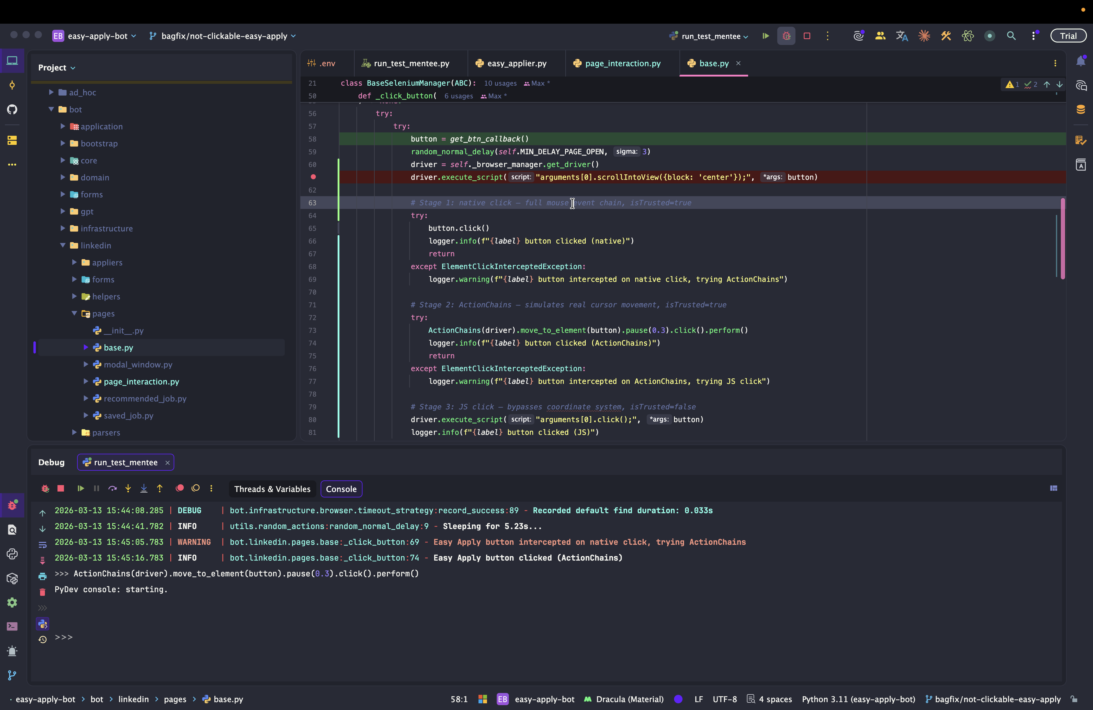Dev: как отлаживать Easy Apply Bot