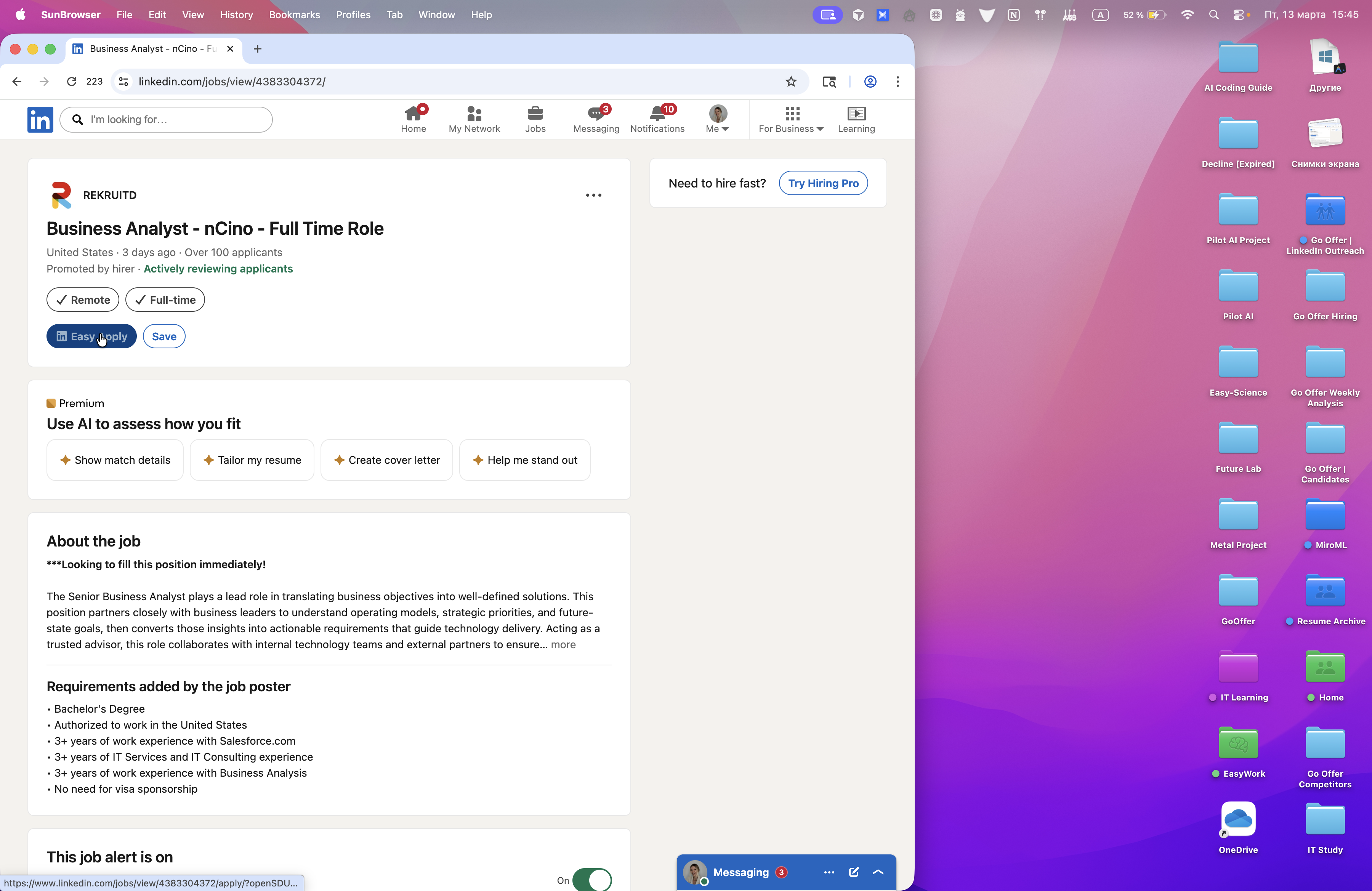 Все, кликаем. Вот Easy Apply.