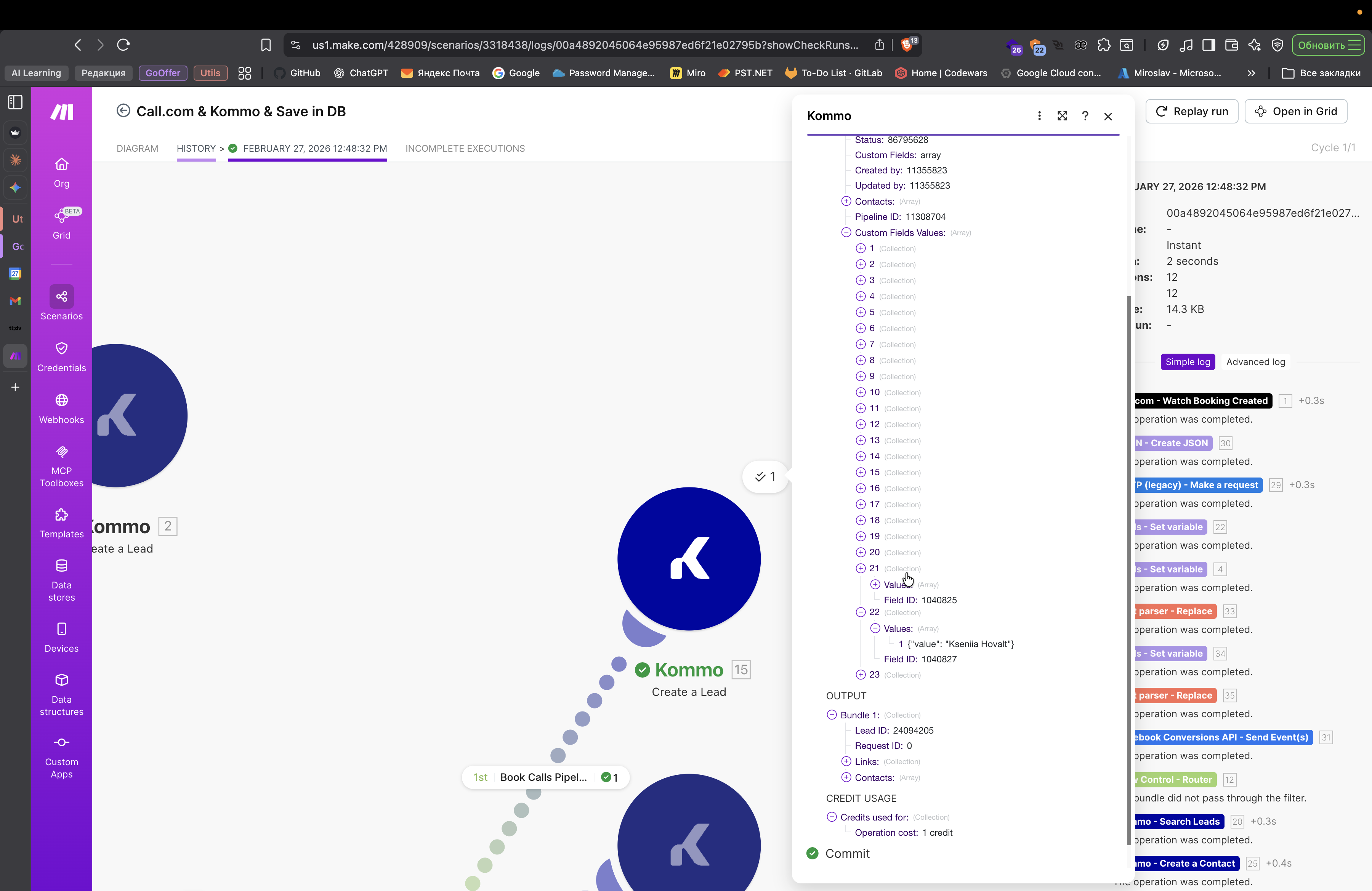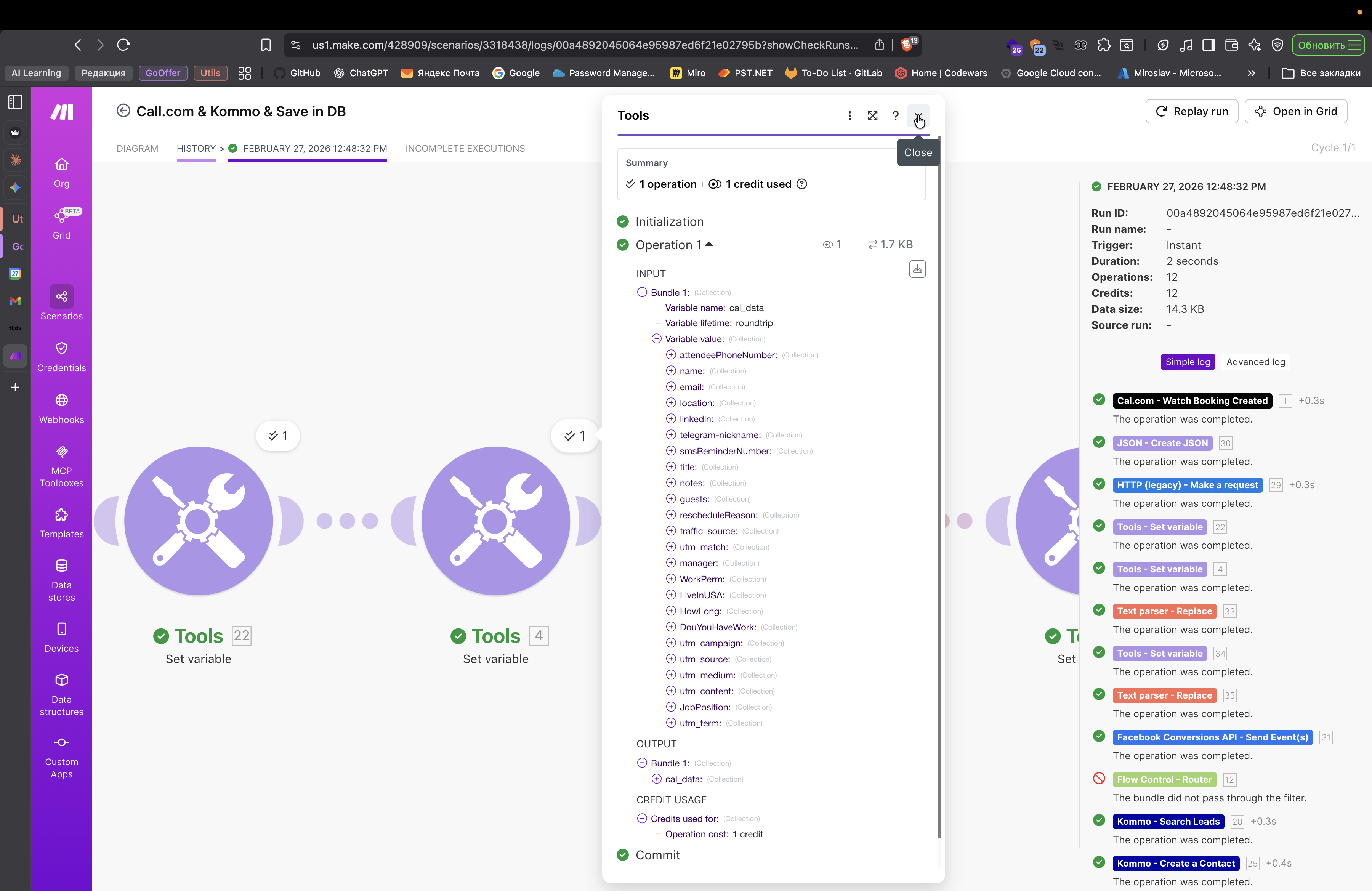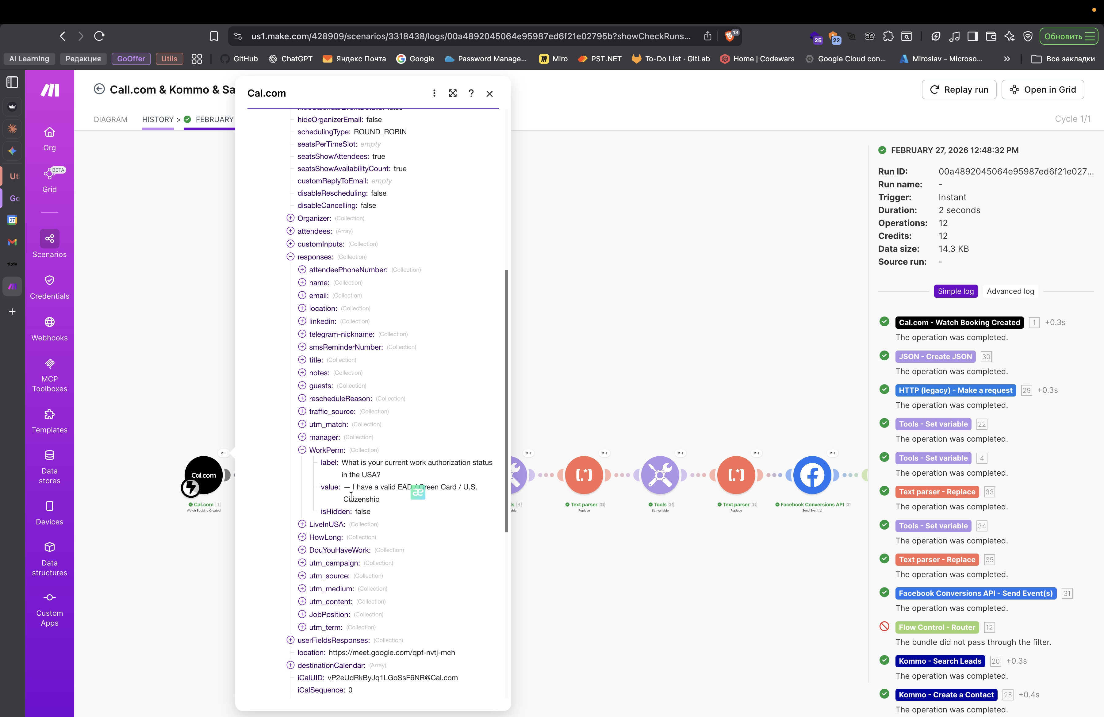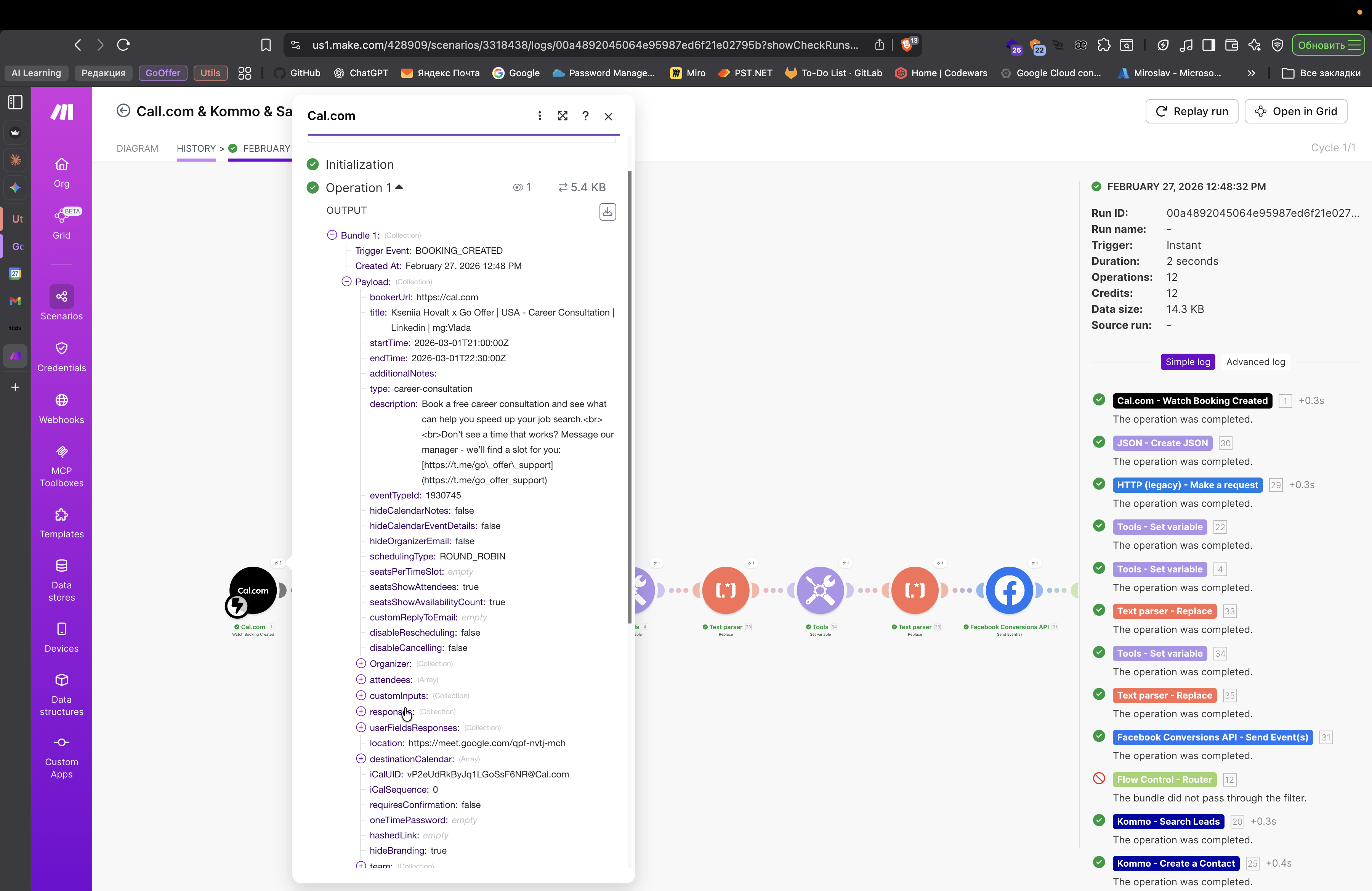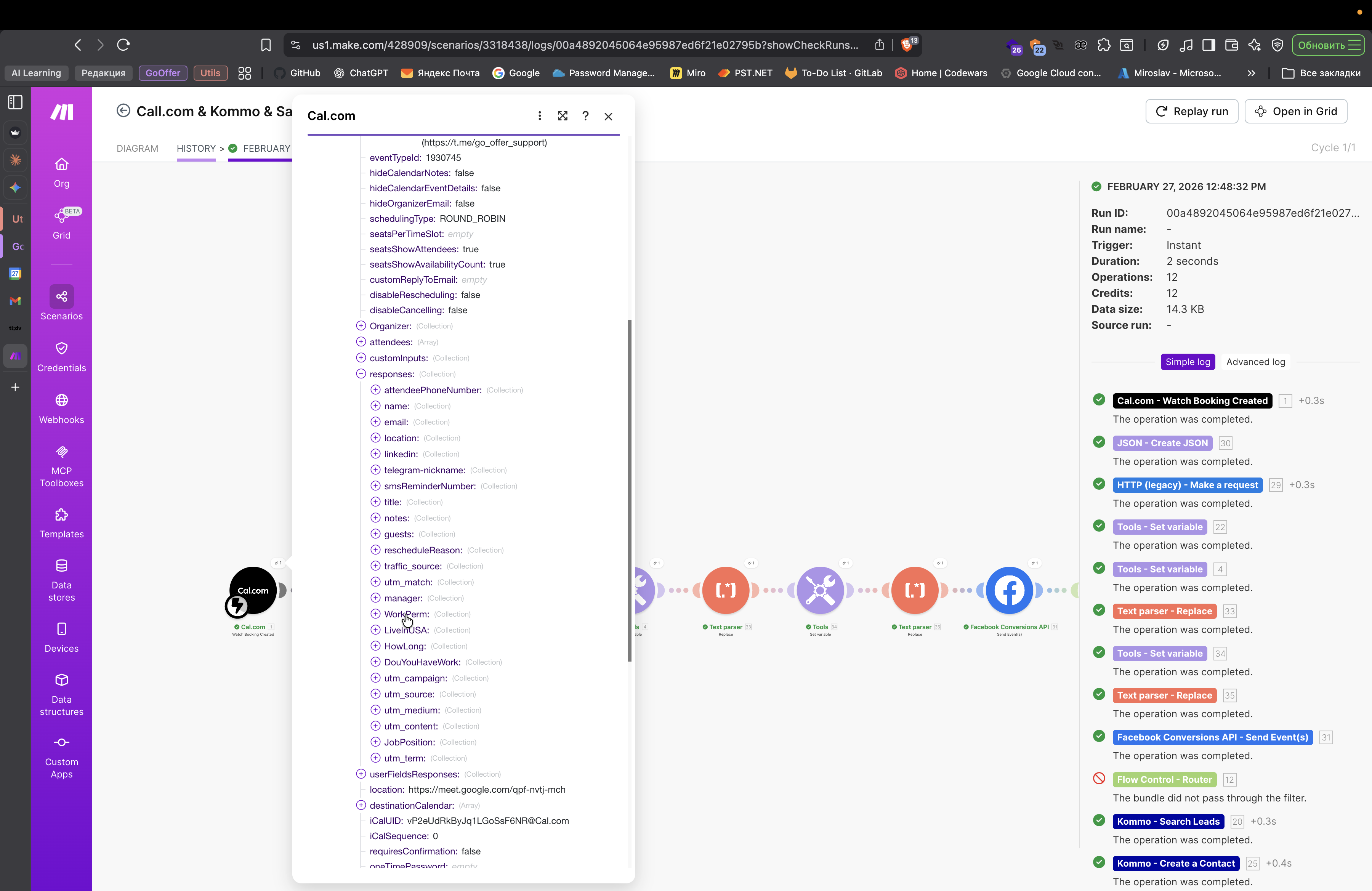 Но когда ты будешь бронировать звонок, у тебя здесь будет своё значение, которое ты настроил в Colcom. Сейчас я показываю звонок по нашей обычной форме. И так ты можешь дебагать и понимать, какие значения передаются.