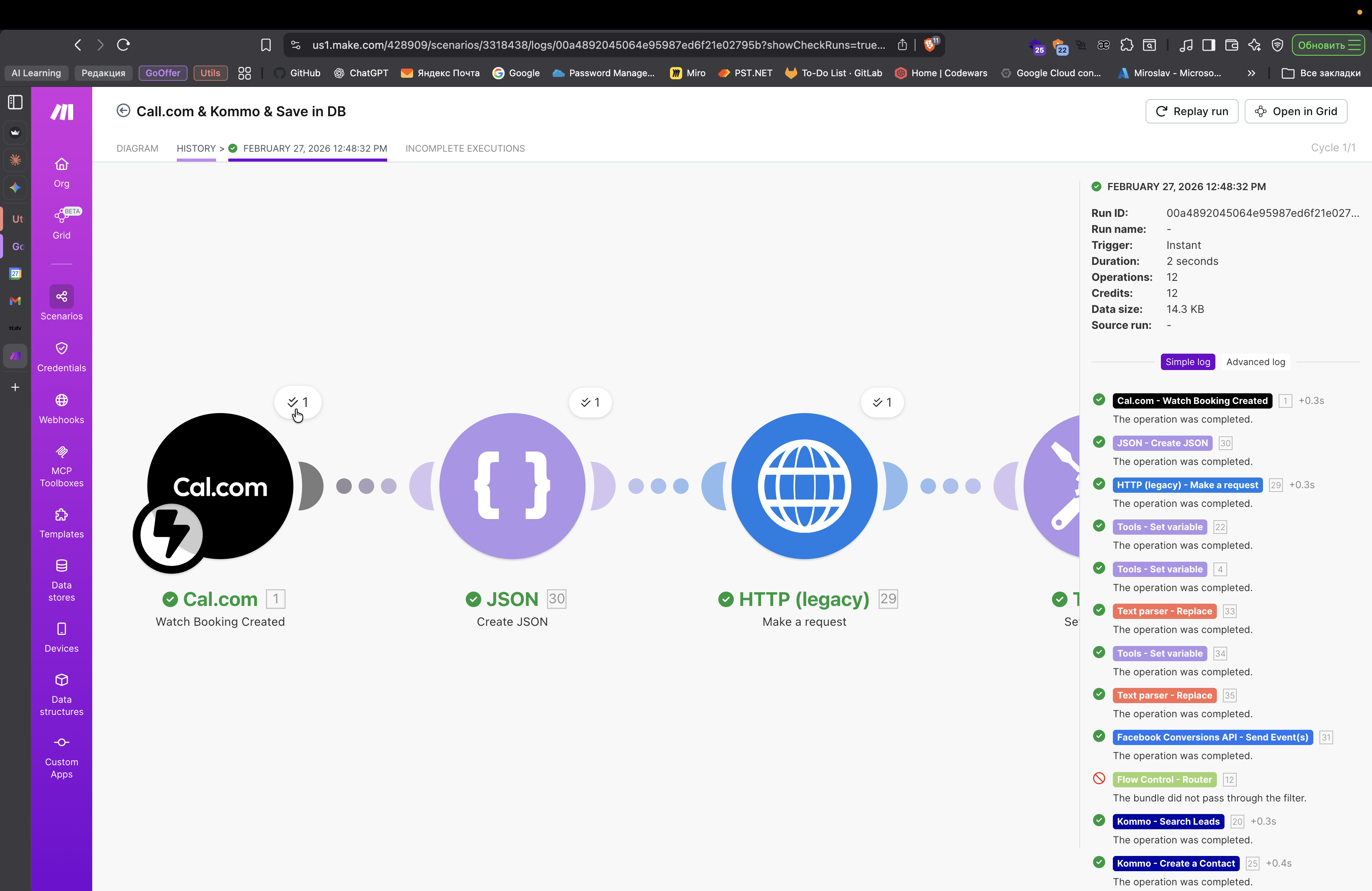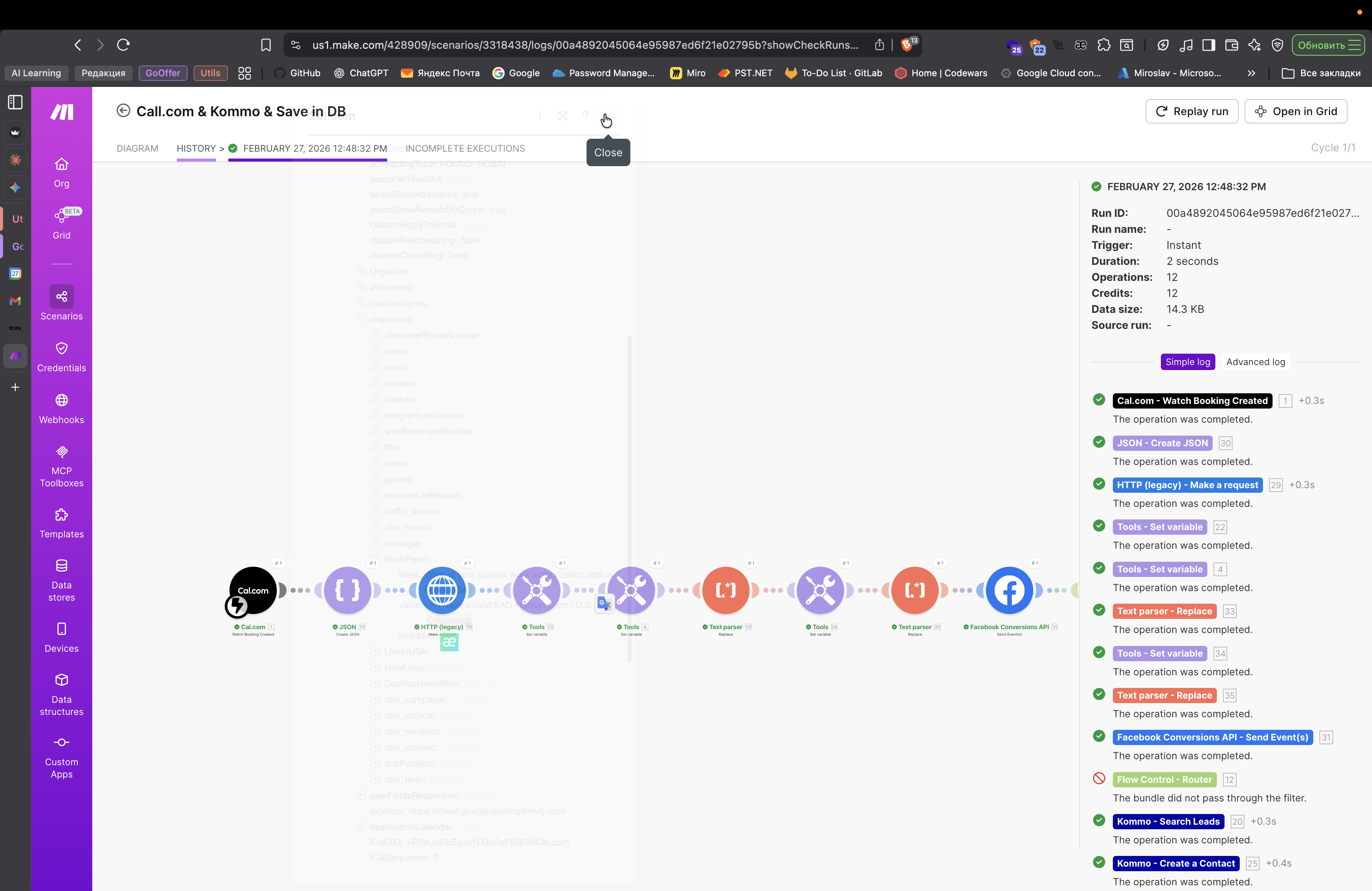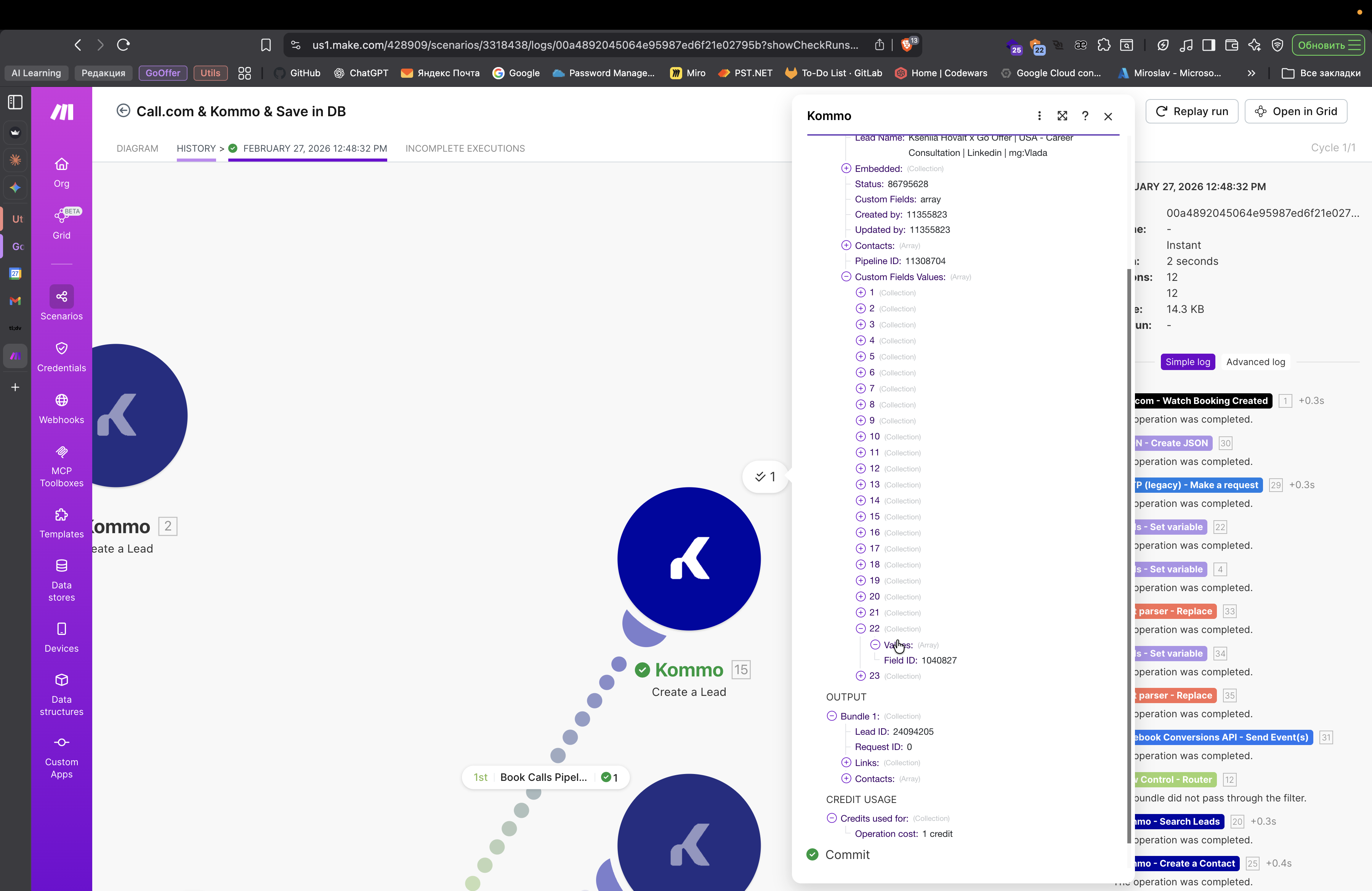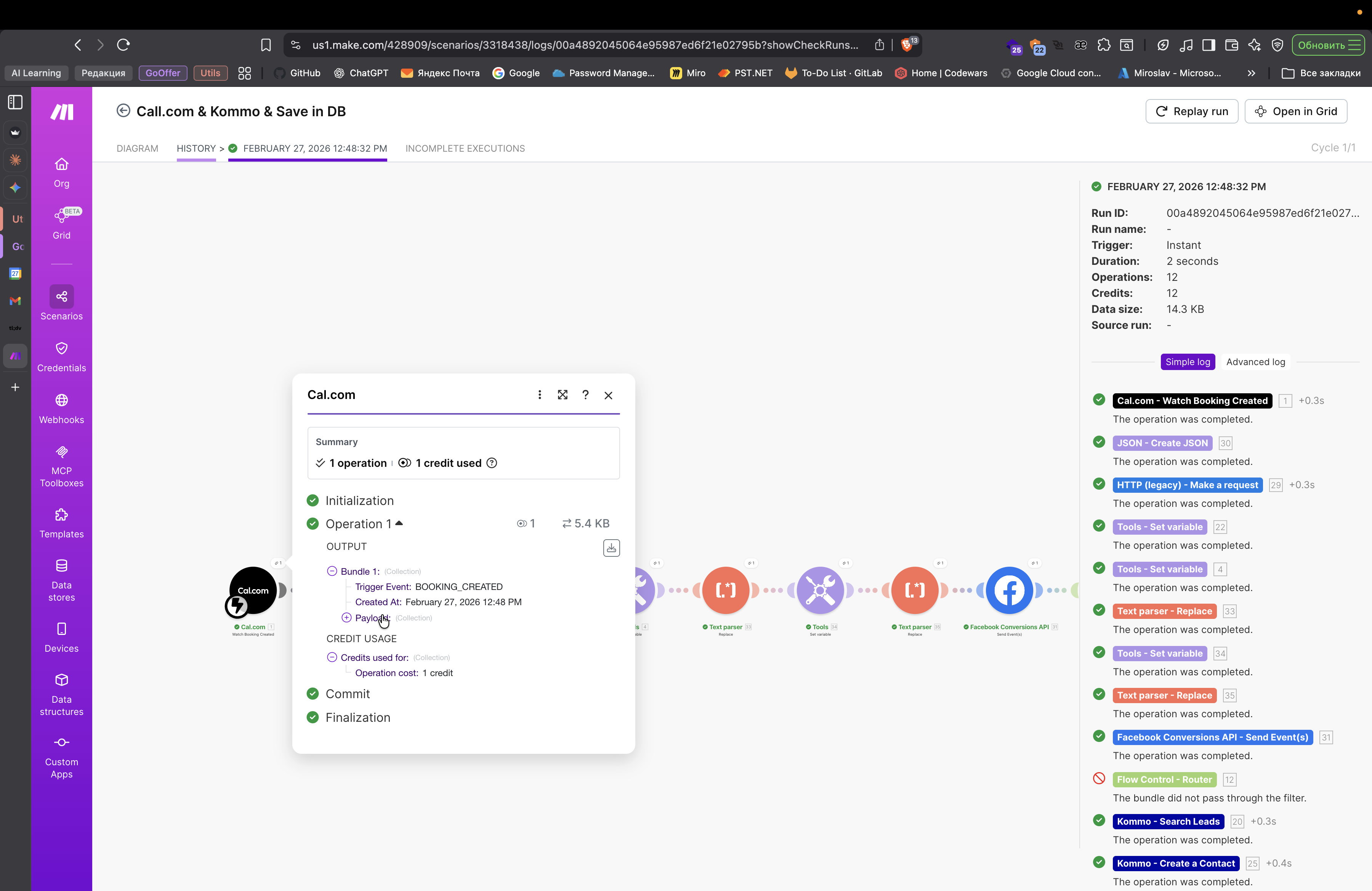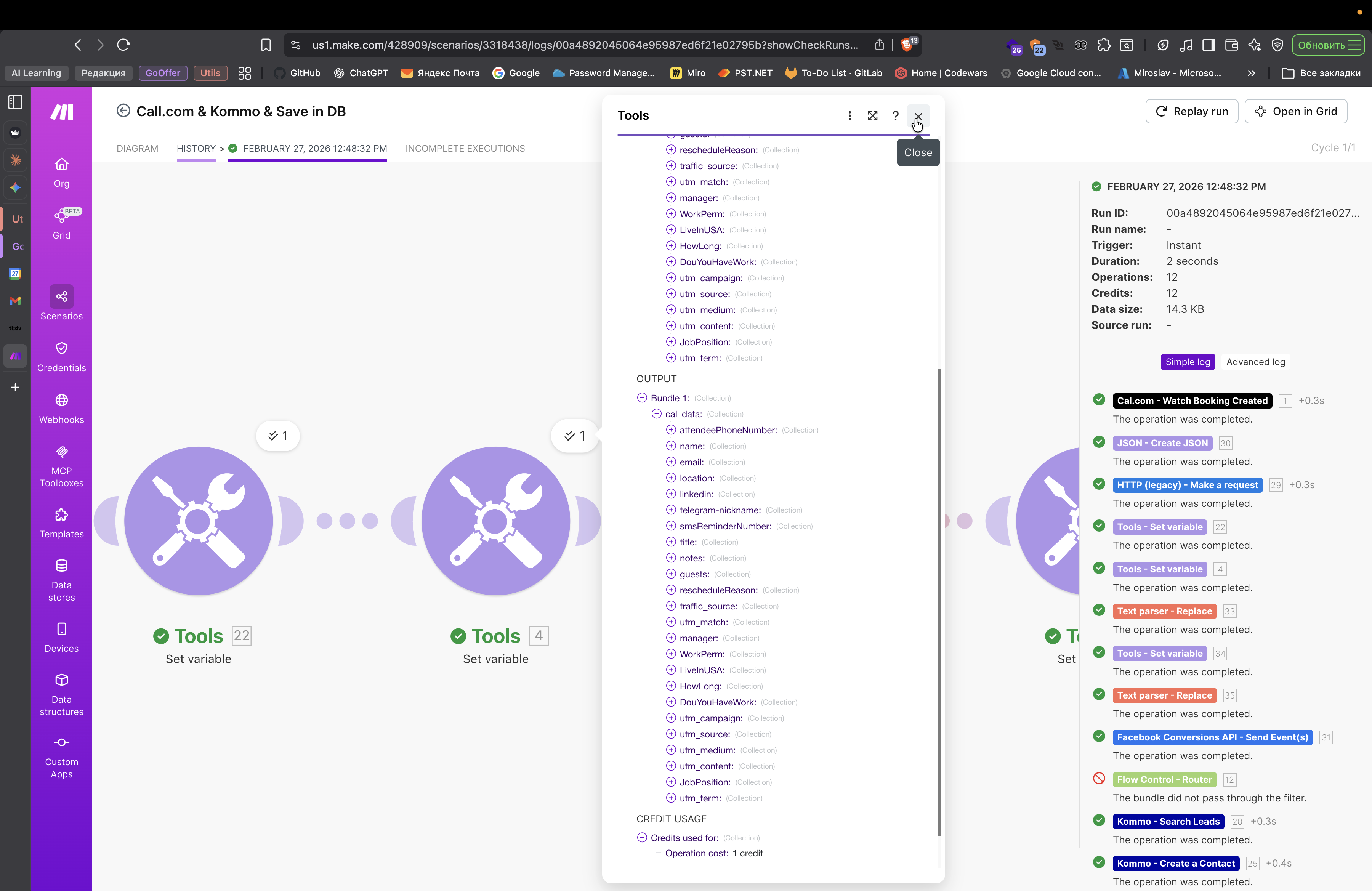 Но когда ты будешь бронировать звонок, у тебя здесь будет своё значение, которое ты настроил в Colcom. Сейчас я показываю звонок по нашей обычной форме. И так ты можешь дебагать и понимать, какие значения передаются.
