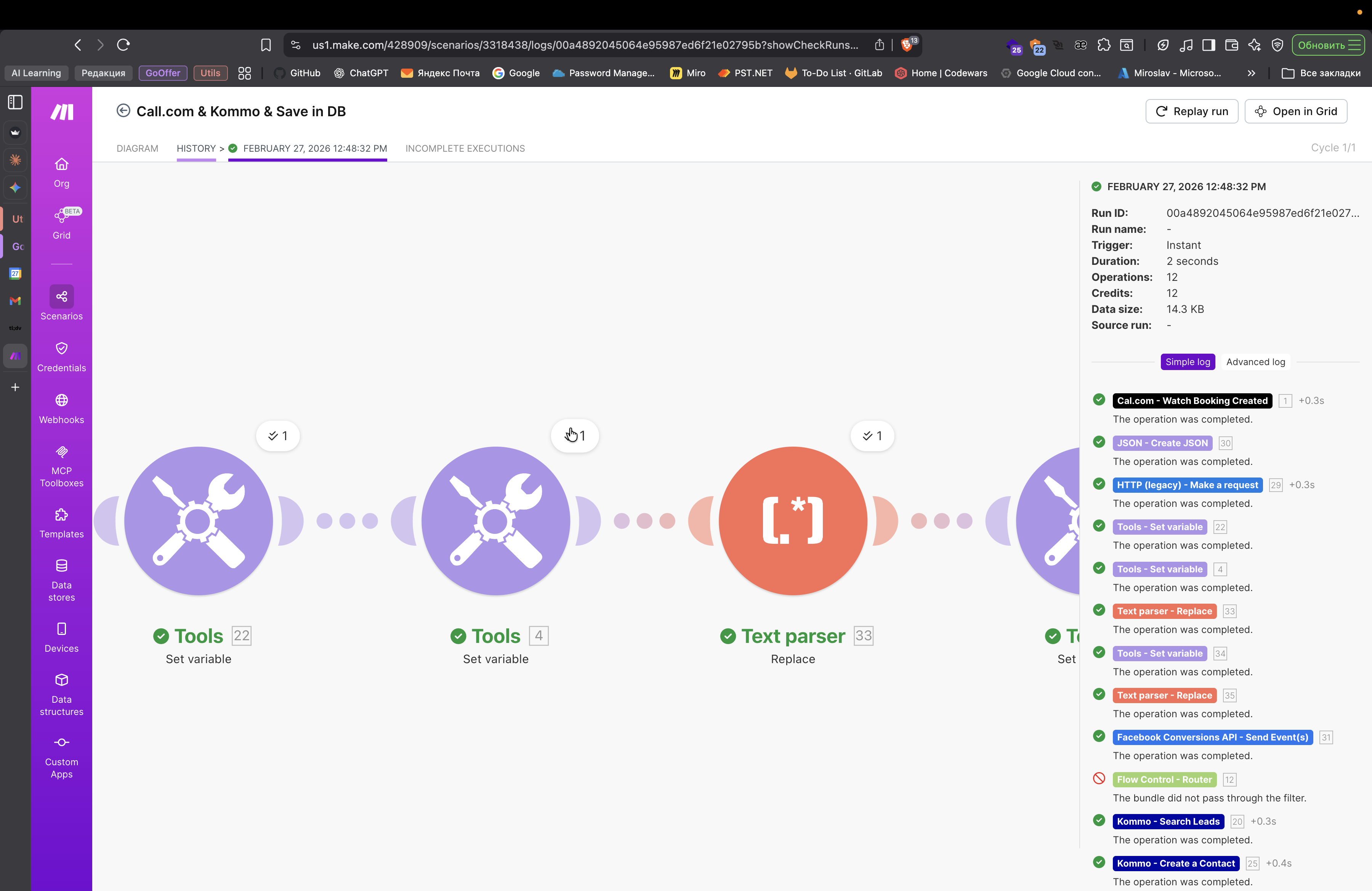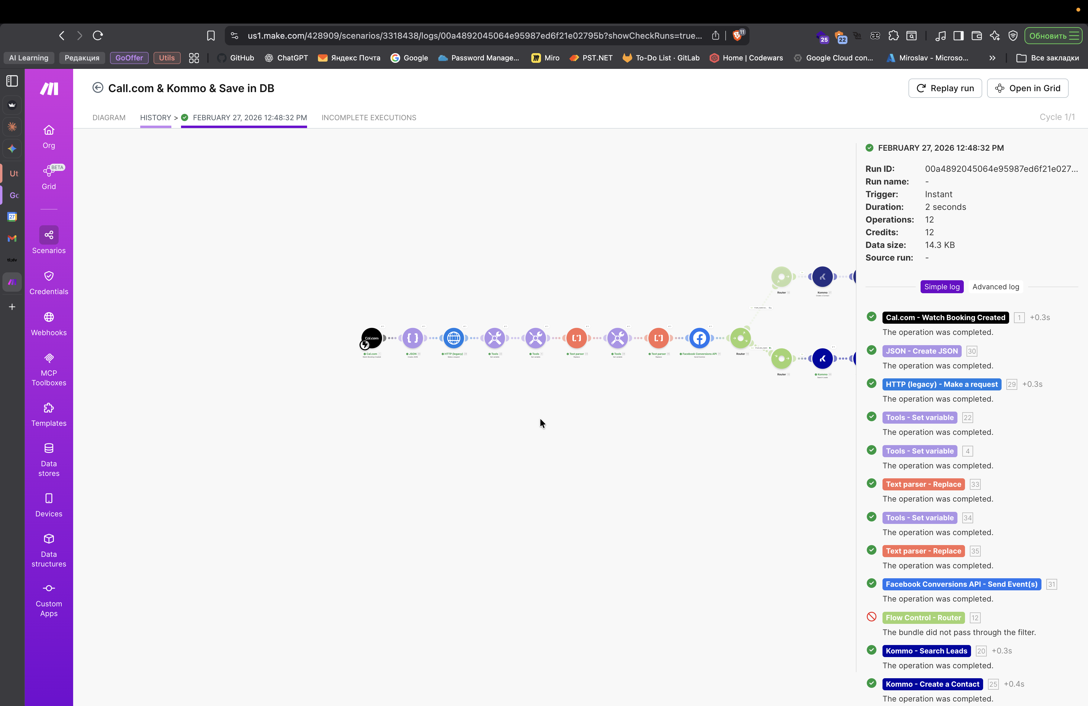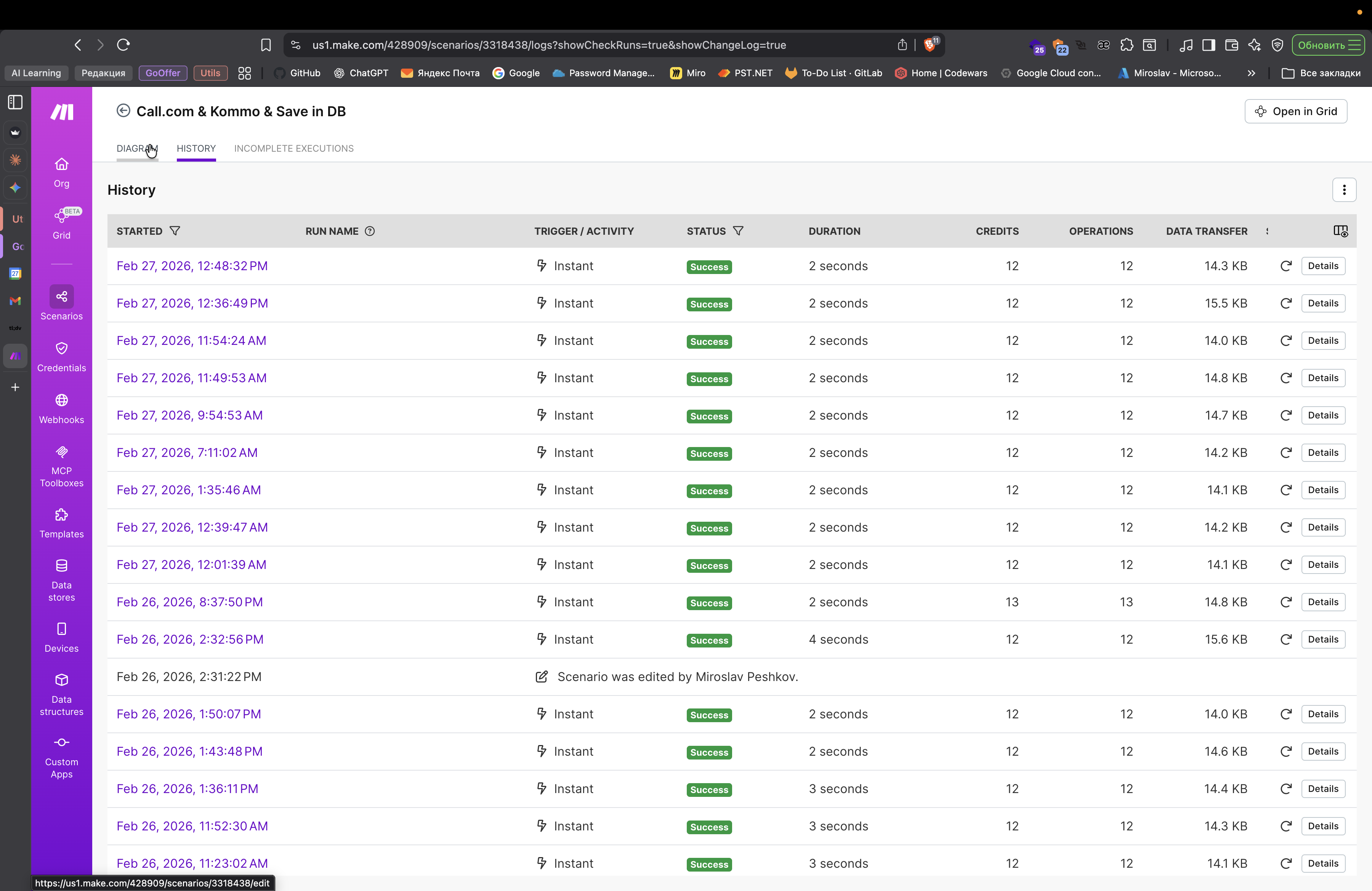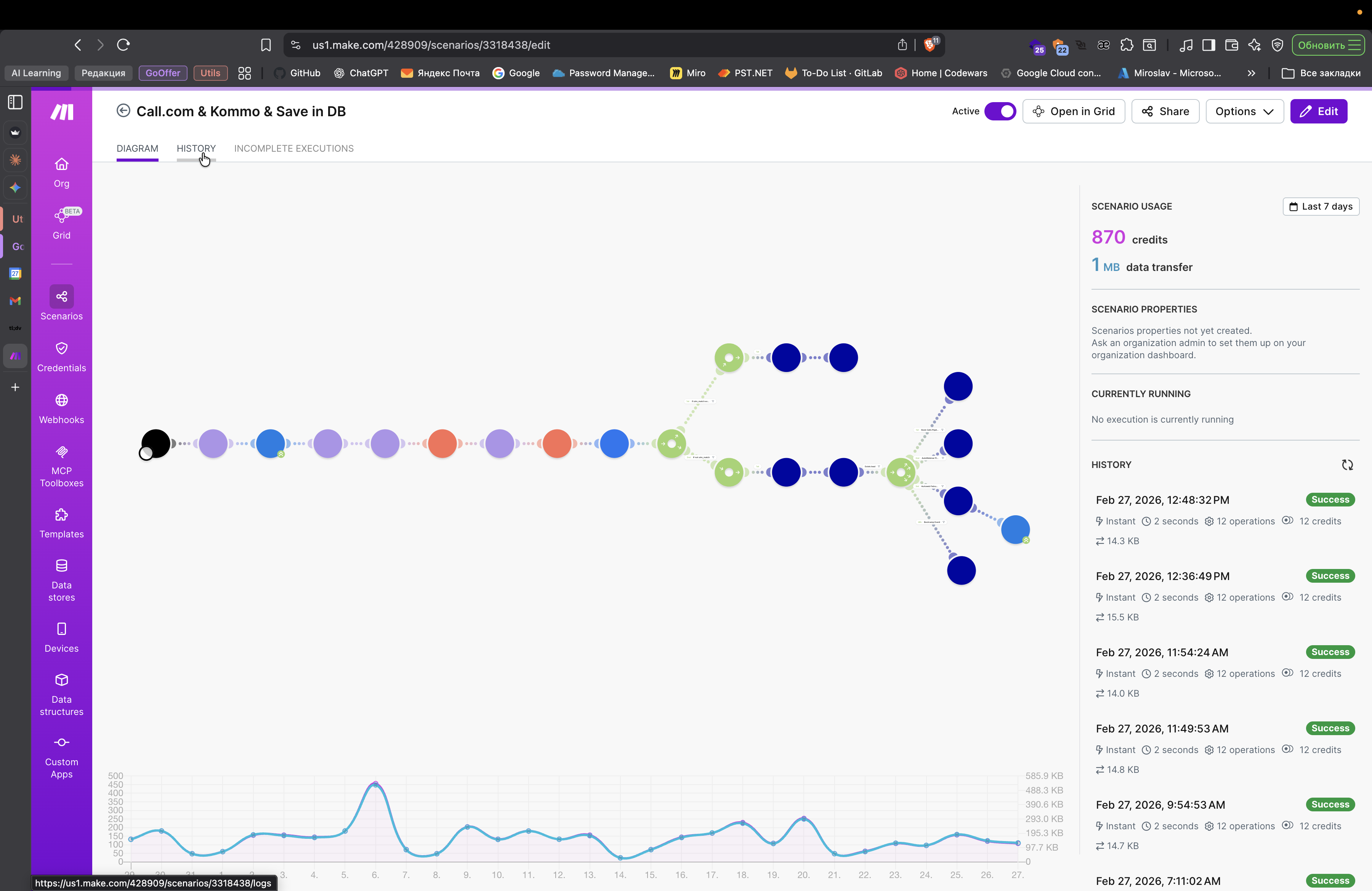 В этом руководстве мы узнаем, как просматривать и анализировать данные, которые передаются на каждом этапе сценария в разделе History. Это поможет понять, корректно ли настроена передача данных между полями и событиями, а также выявить возможные ошибки при тестировании.