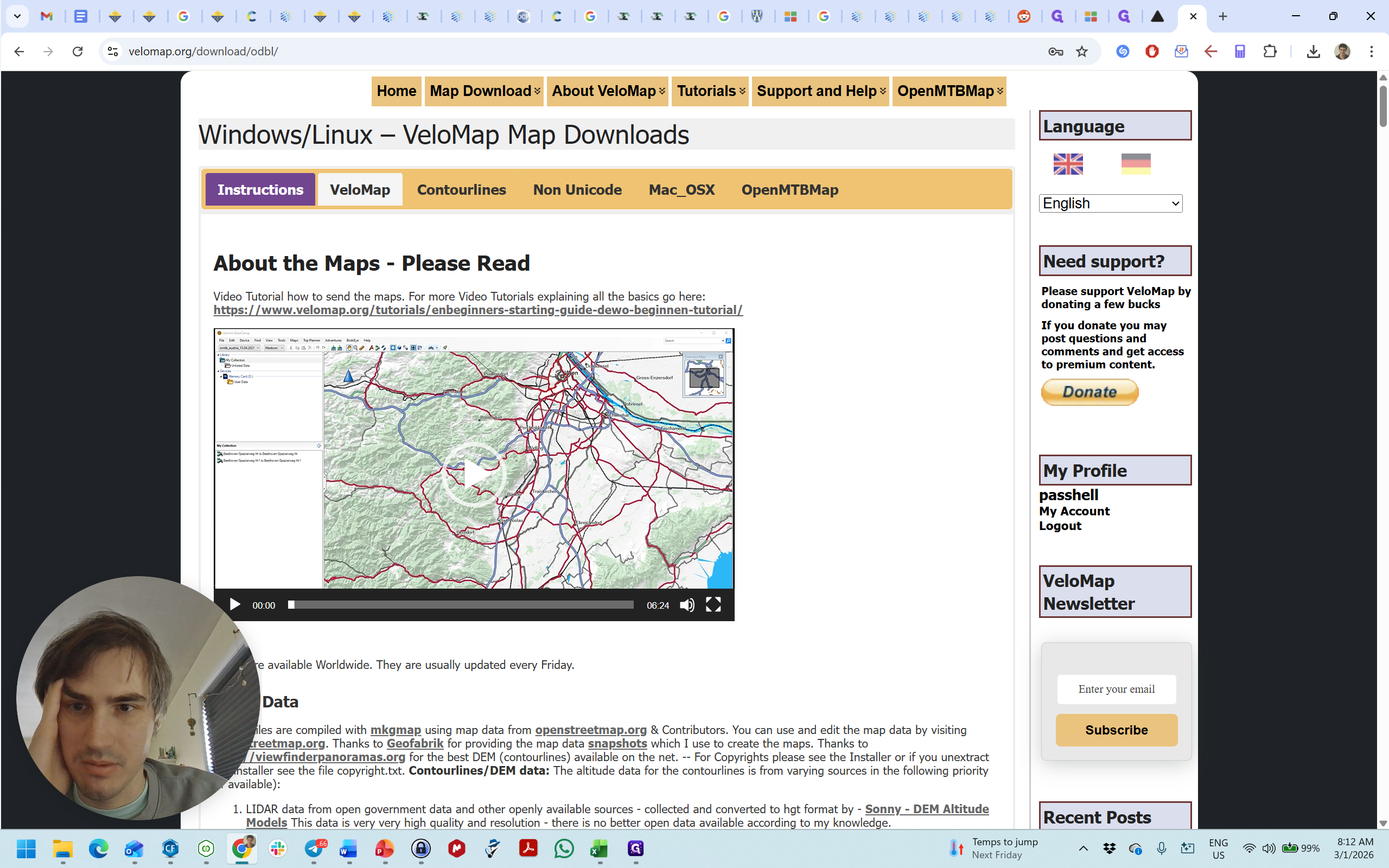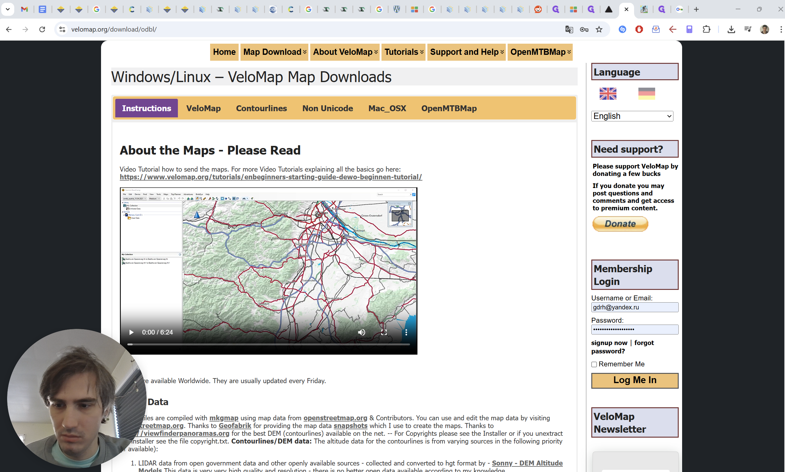 Дальше обычно ты просто скачиваешь бесплатную карту (без регистрации). Если нужна платная (для контурных линий некоторых стран), то требуется платная подписка. Я (Паша) могу помочь разобраться с дополнительными файлами.