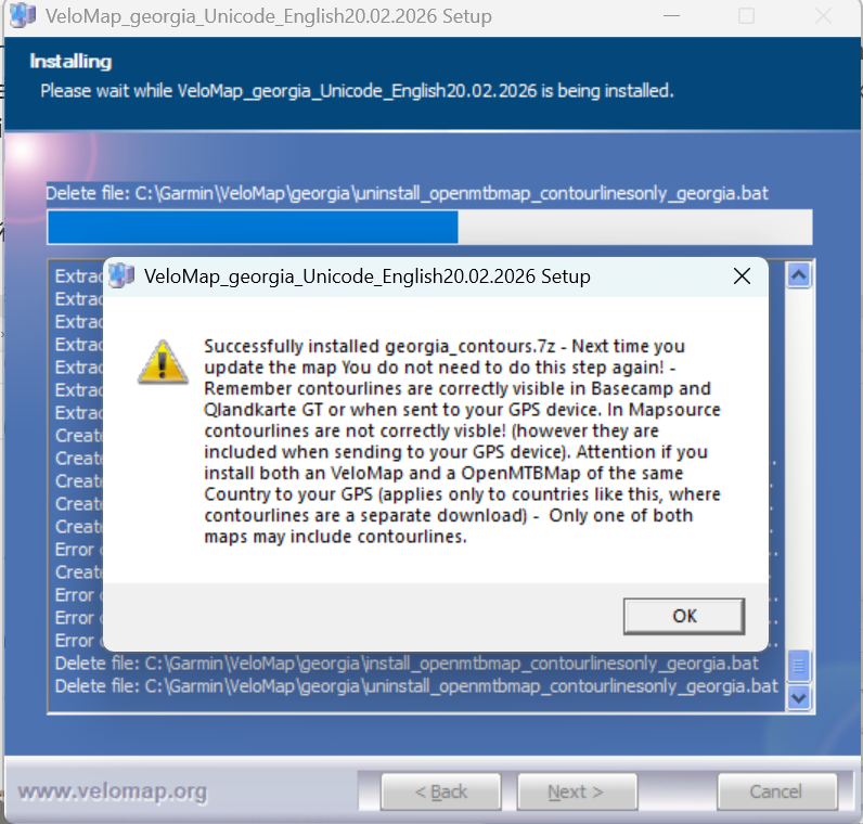Во вкладке Contour lines выбираем 20м контурные линии и скачиваем нужный файл. Внимание, название файла должно совпадать с тем, который требует установщик (В данном случае - georgia_contours.7z .