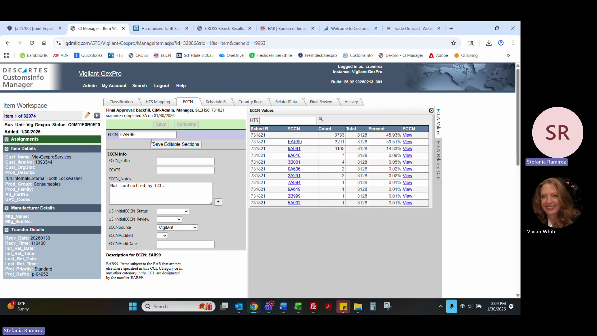 Click the ECCN tab and verify the classification.