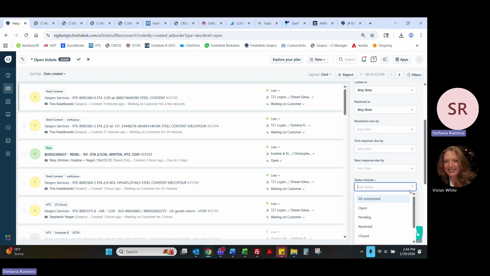 In Freshdesk, filter the ticket list by Status Includes: All Unresolved.
