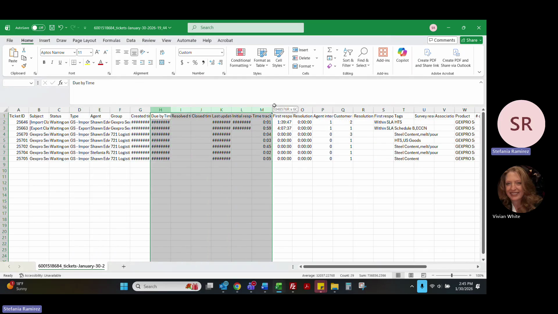 Clean up the Excel sheet by deleting irrelevant columns (e.g., Priority, First Response, Associations).