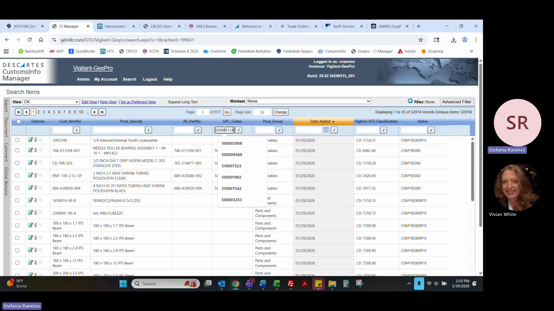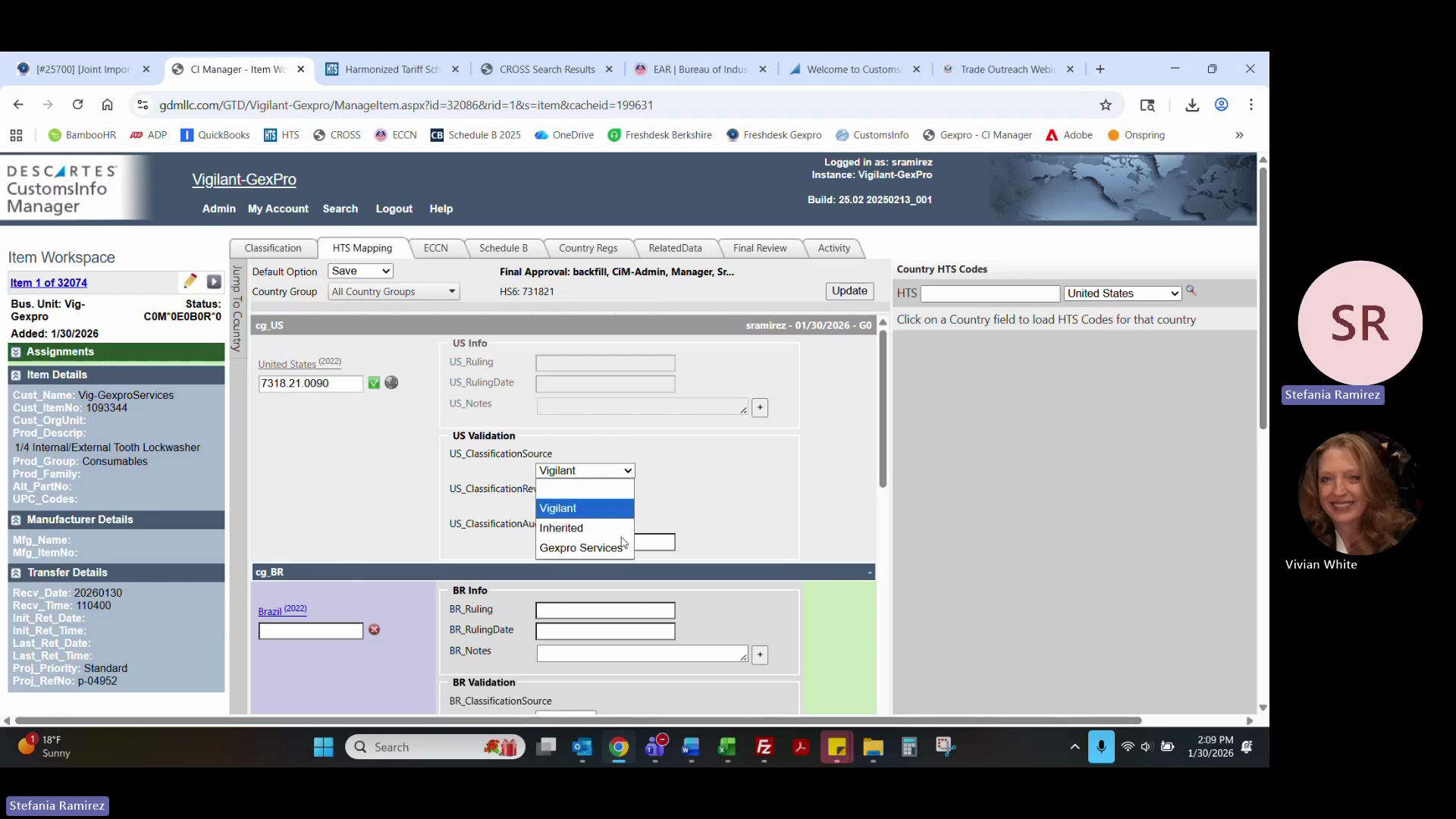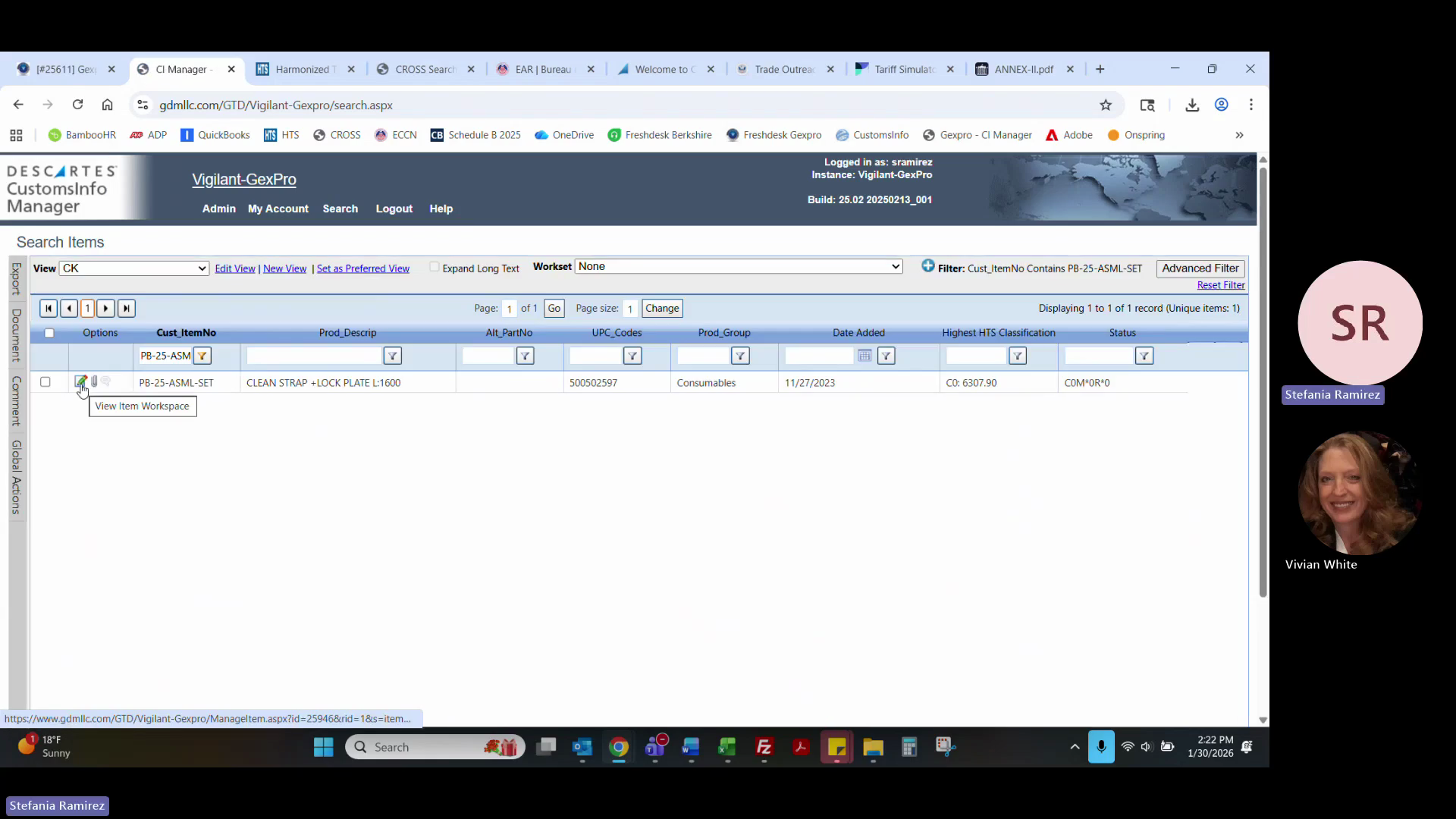 Copy the updated HTS, Schedule B, ECCN, and duty/tariff data (including Section 232 and 301 duties) into your Excel response template.