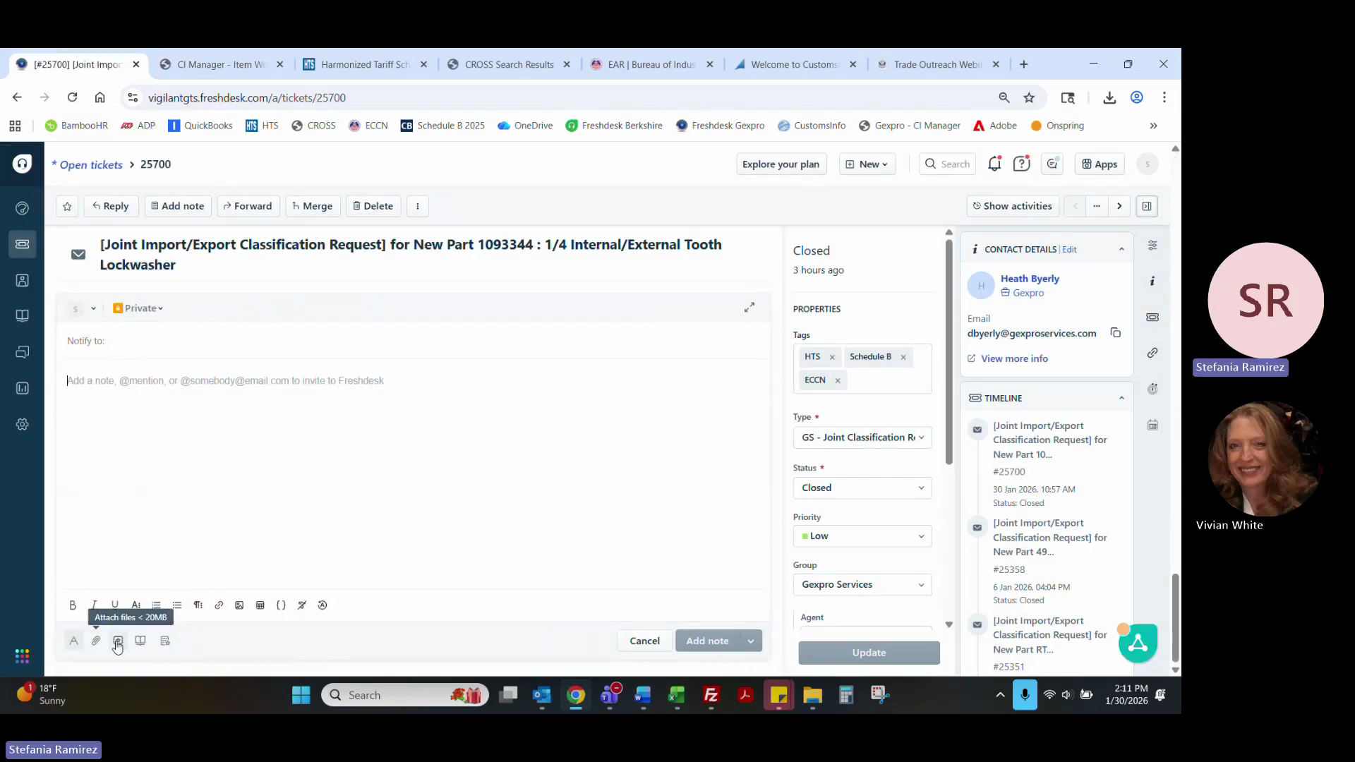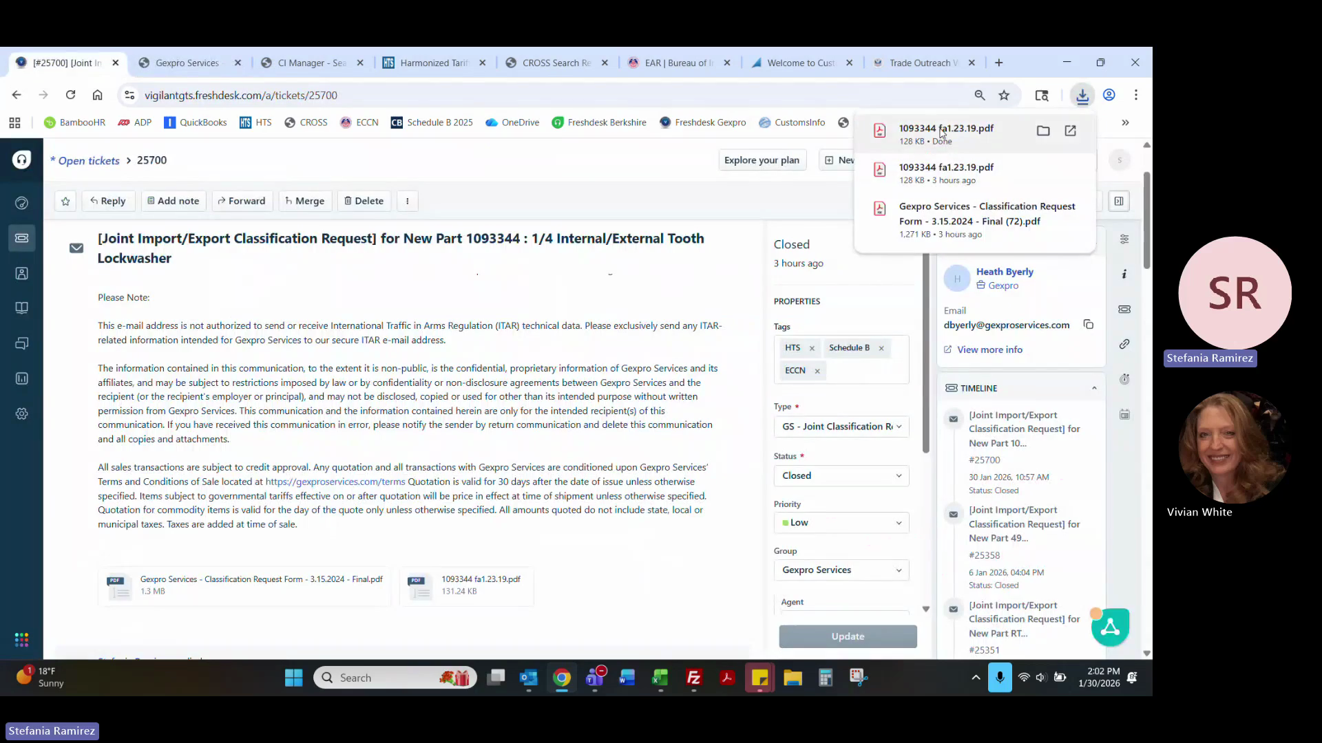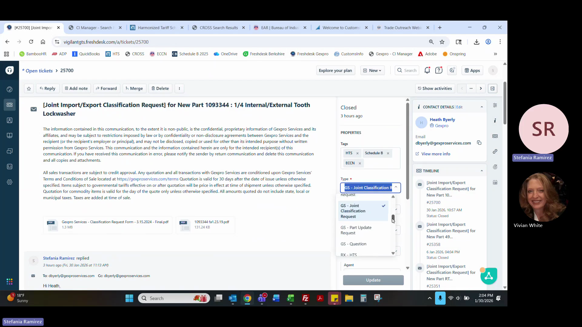 If applicable, update the ticket type to 01 - Import/Export Classification Request or Part Update if a UPC code was recently assigned to the product.