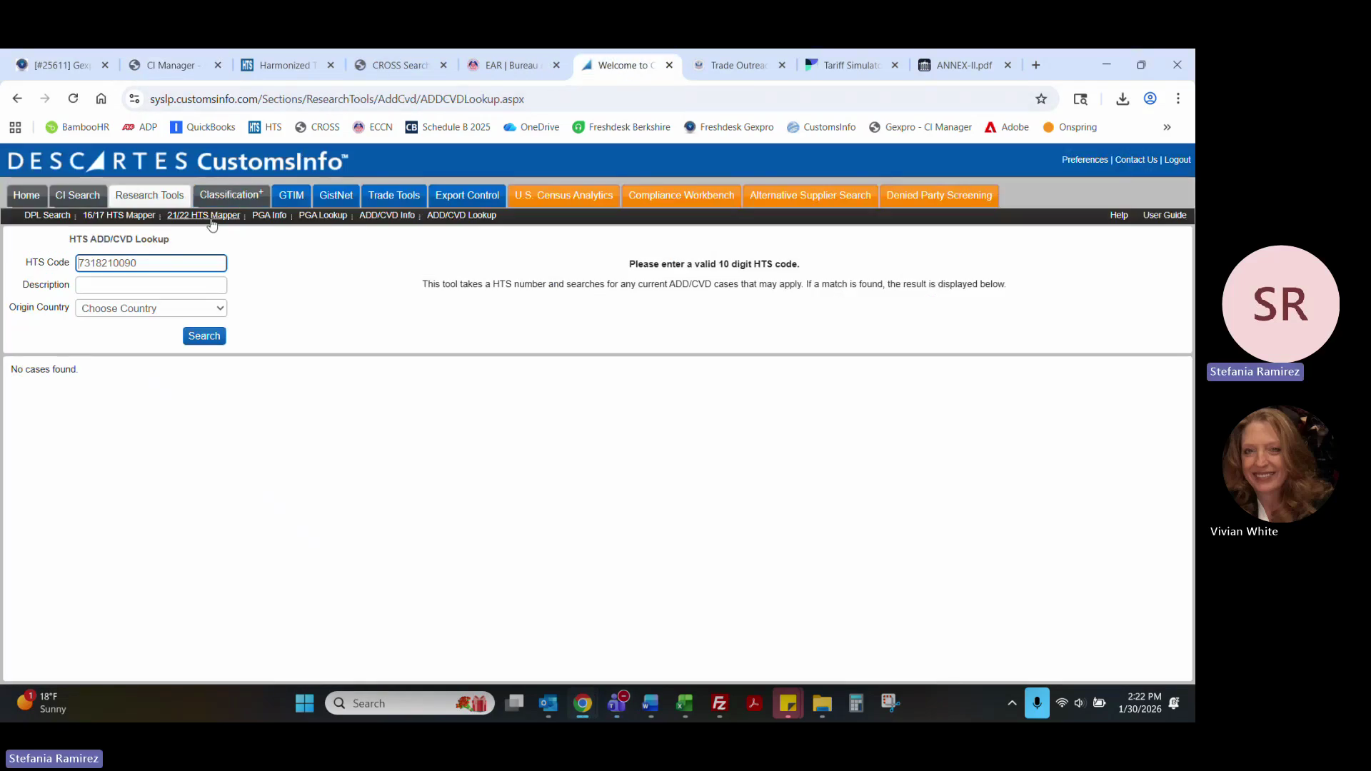 Navigate to Research Tools > HTS AD/CVD Lookup and enter the HTS code to check for active cases.